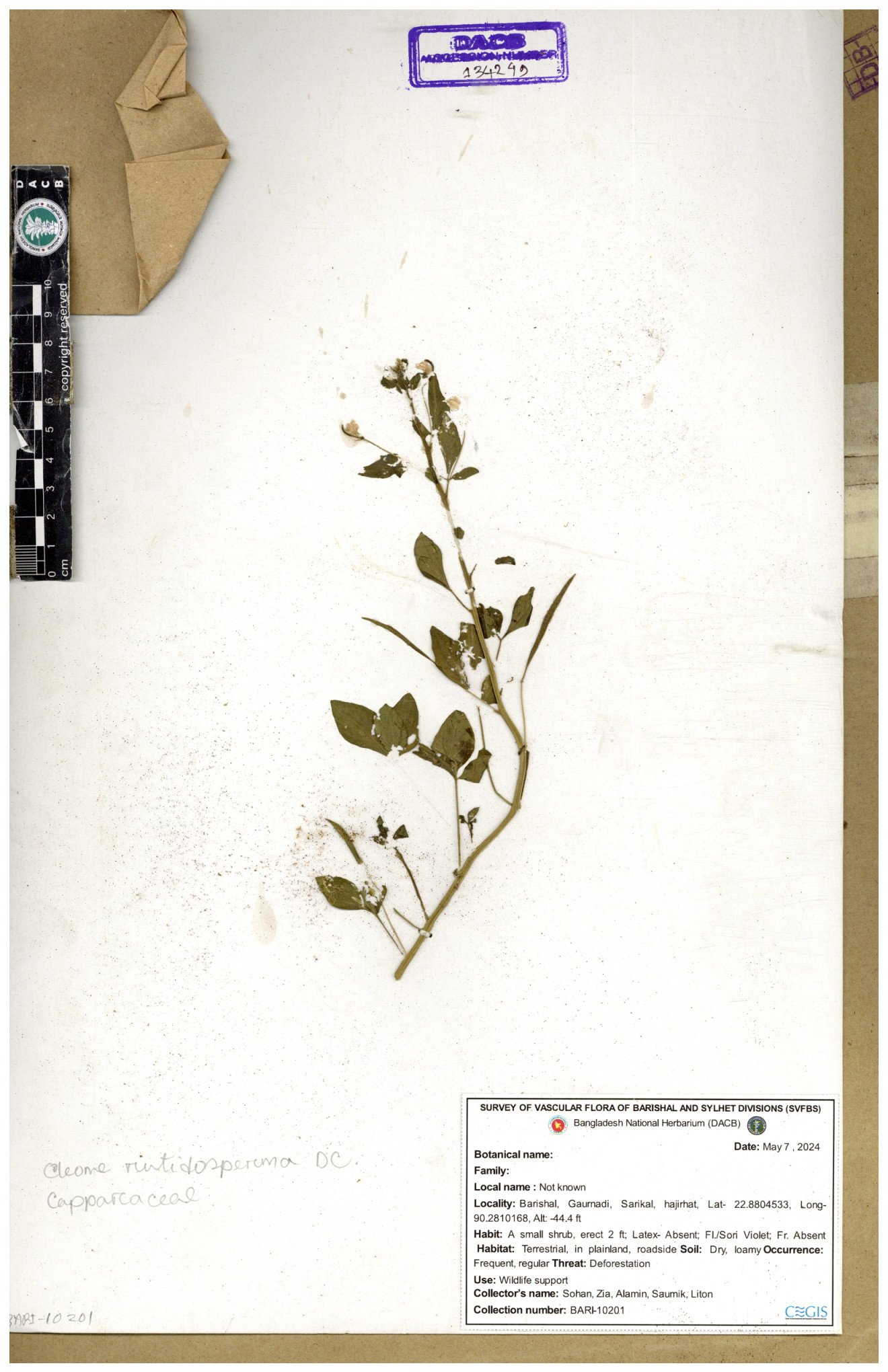 | 134250 | Capparaceae | Cleome rutidosperma | Sohan, Zia, Alamin, Saumik, Liton | 30-11--0001 |