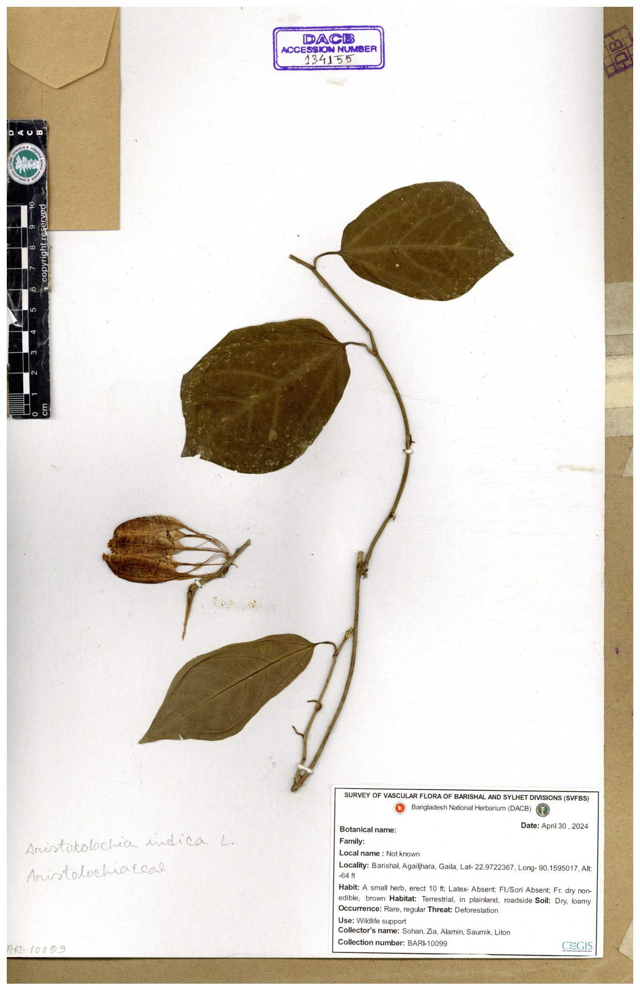 | 134155 | Aristolochiaceae | Aristolochia indica | Sohan, Zia, Alamin, Saumik, Liton | 30-11--0001 |