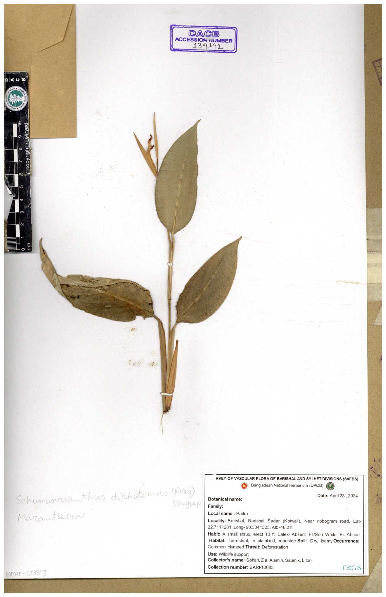 | 134319 | Marantaceae | Schumannianthus dichotomus | Sohan, Zia, Alamin, Saumik, Liton | 30-11--0001 |