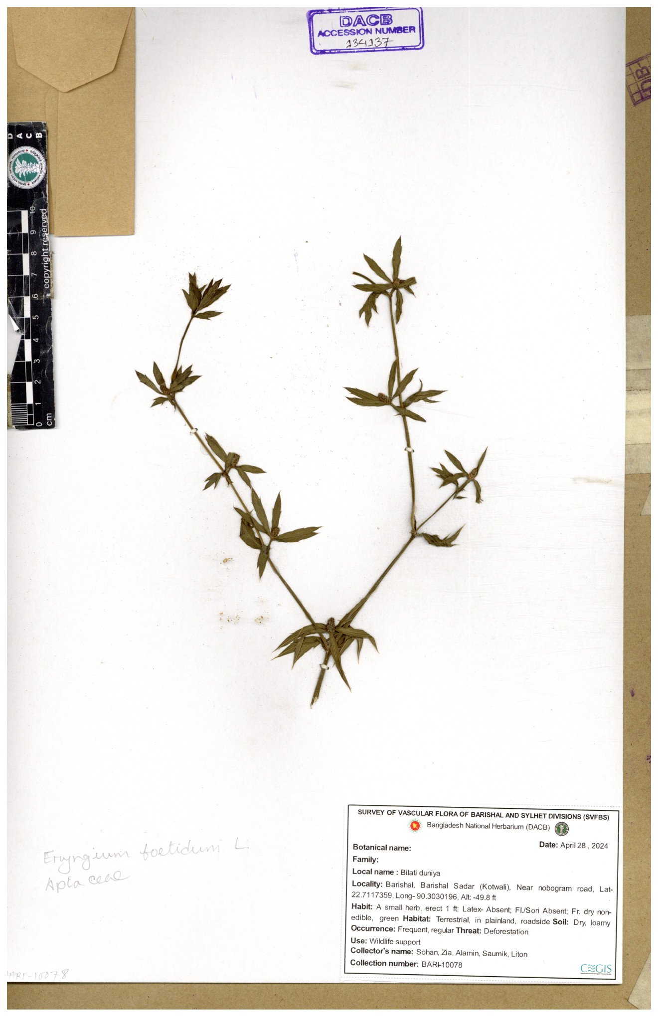 | 134137 | Apiaceae | Eryngium foetidum | Sohan, Zia, Alamin, Saumik, Liton | 30-11--0001 |