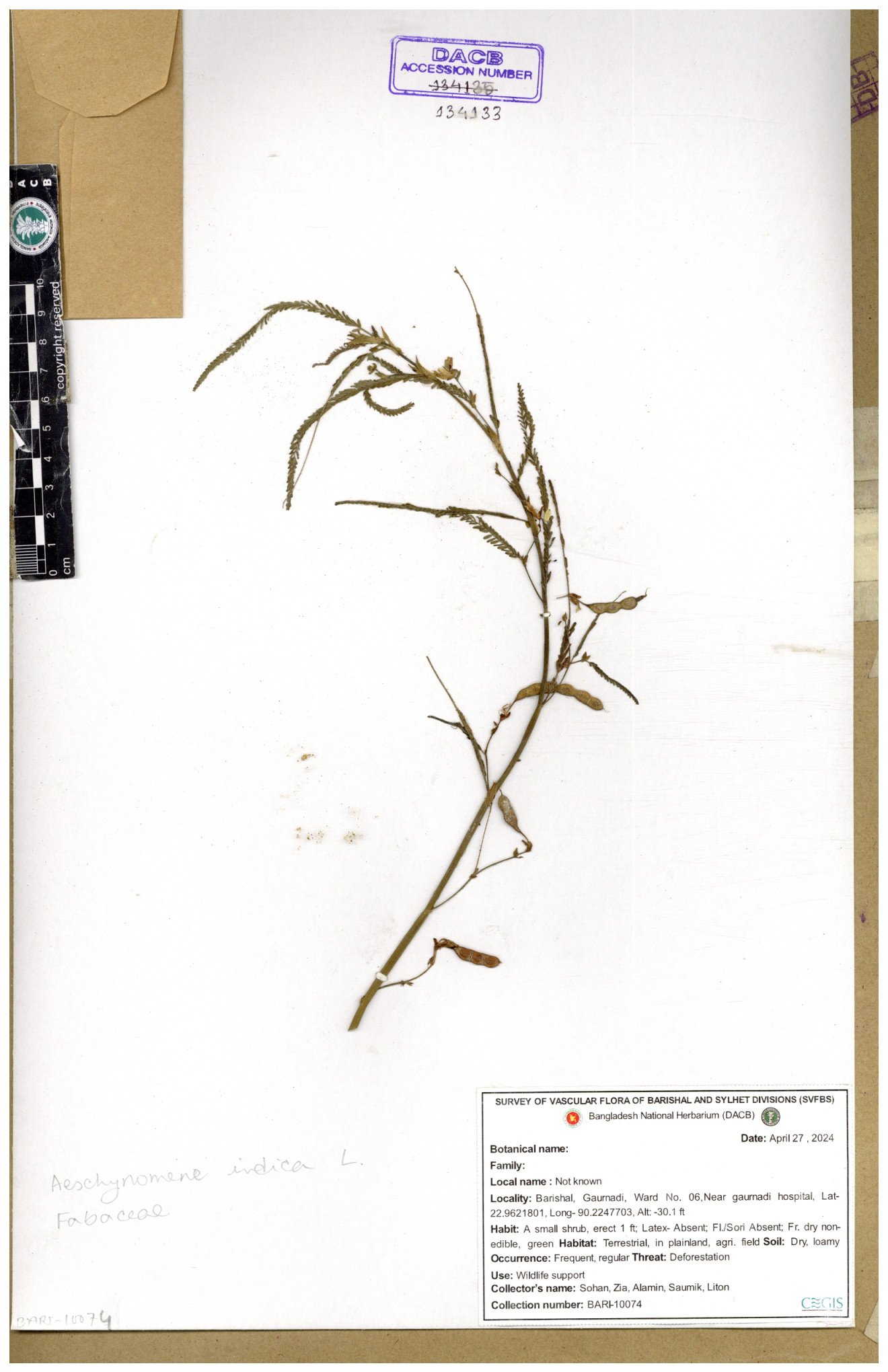 | 134133 | Fabaceae | Aeschynomene indica | Sohan, Zia, Alamin, Saumik, Liton | 30-11--0001 |