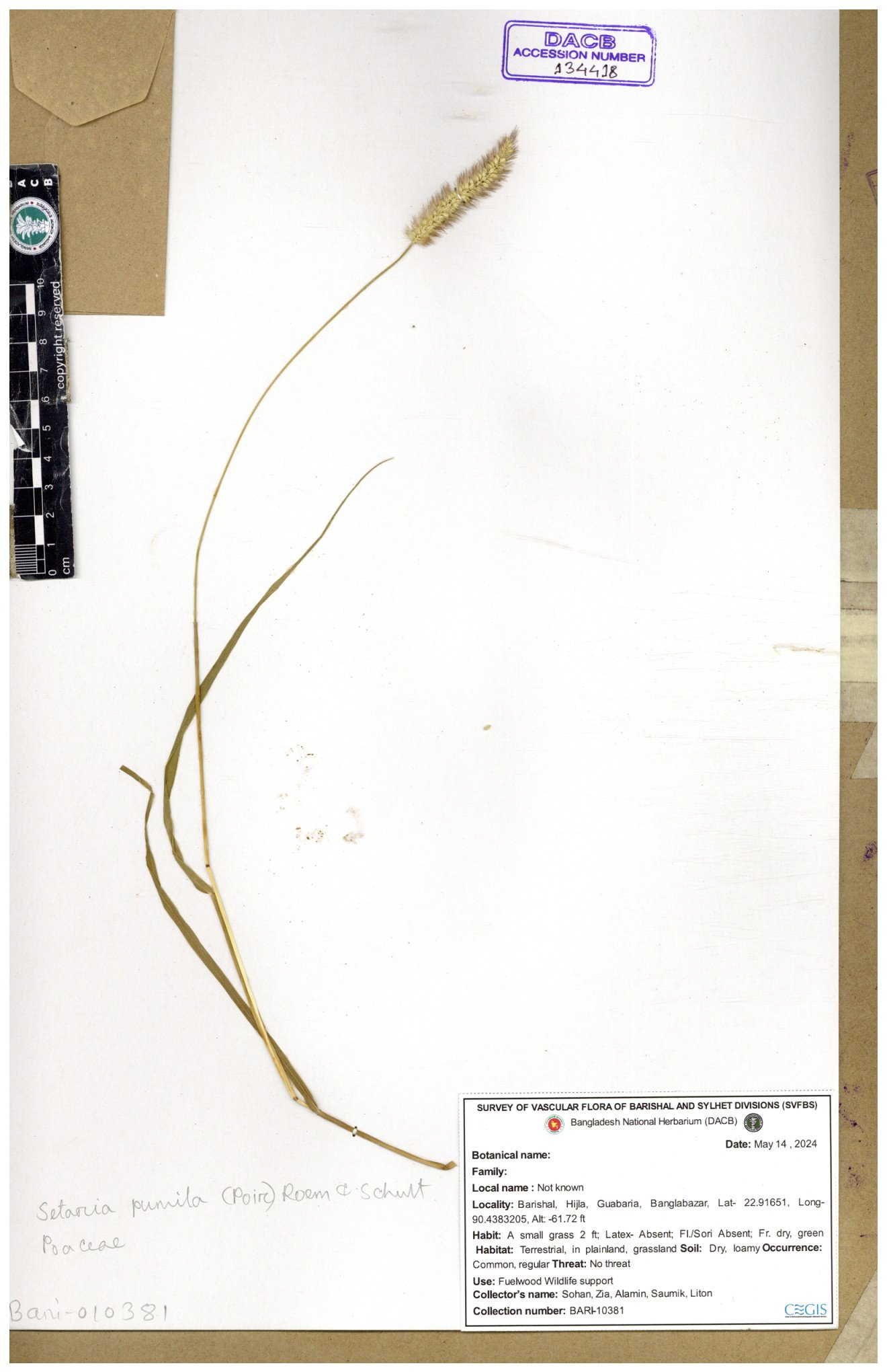 | 134418 | Poaceae | Setaria pumila | Sohan, Zia, Alamin, Saumik, Liton | 30-11--0001 |