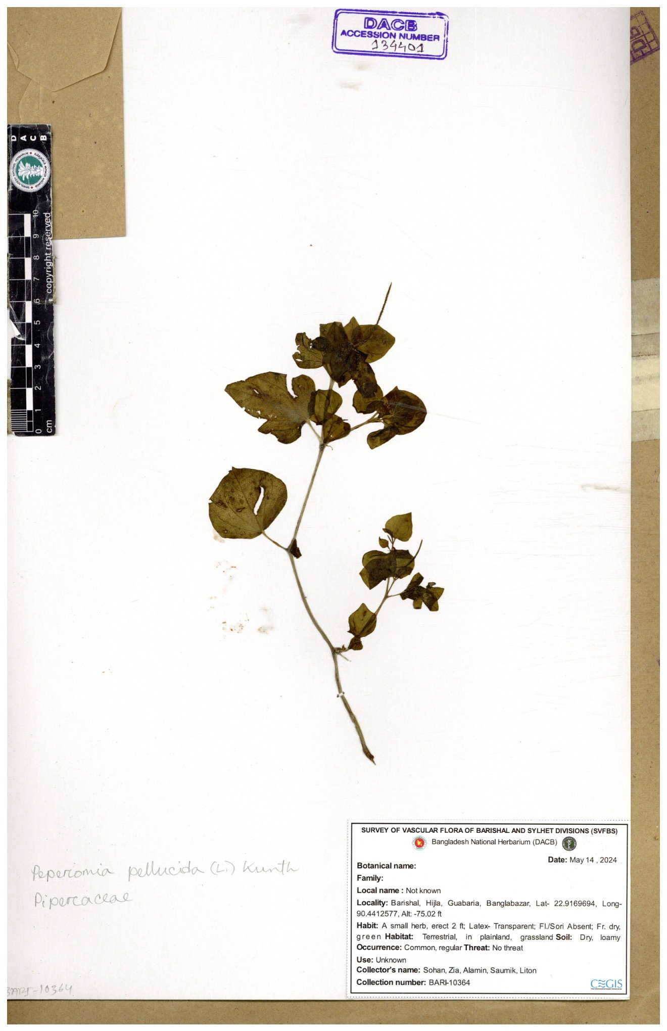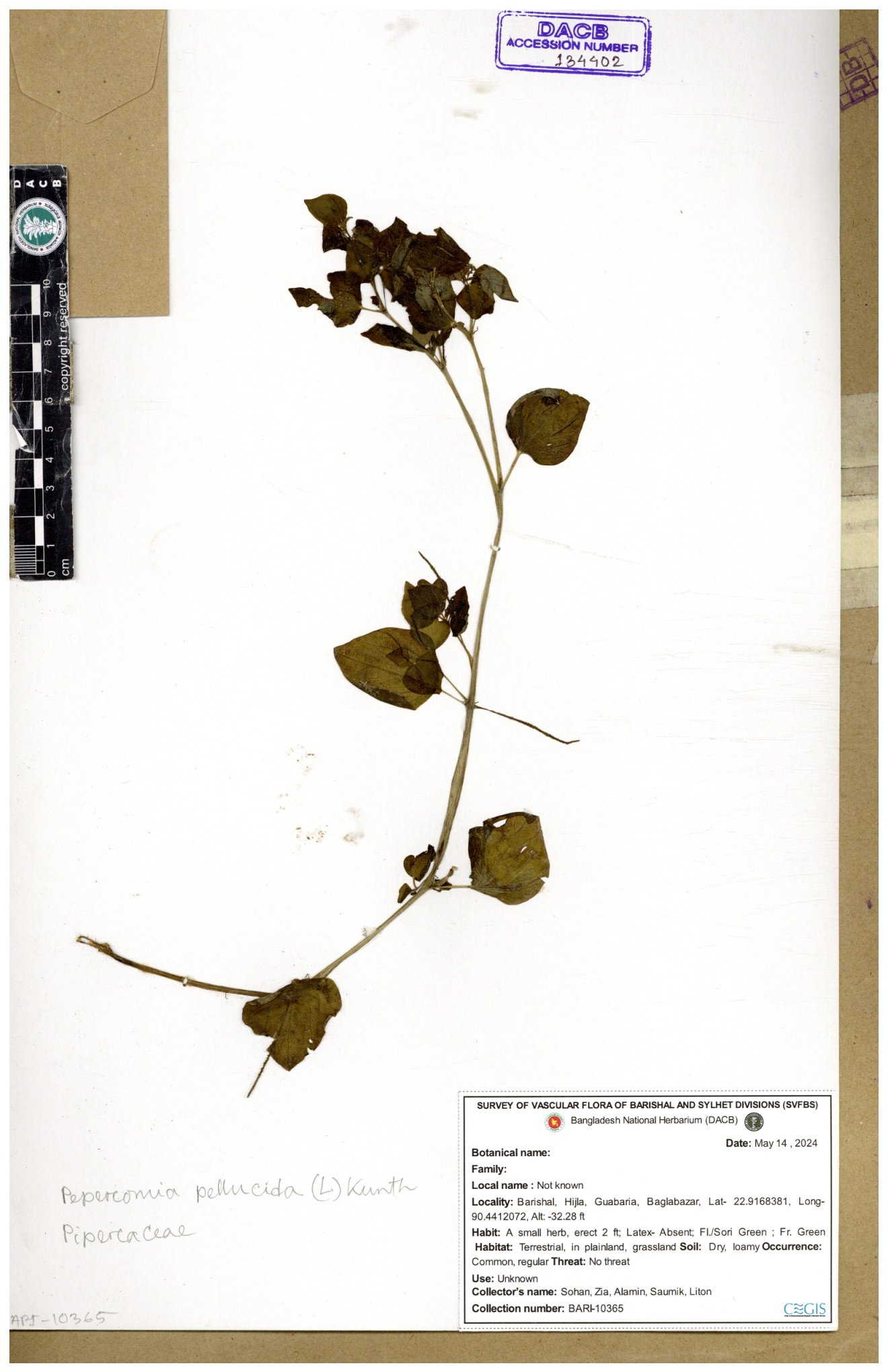 | 134402 | Piperaceae | Peperomia pellucida | Sohan, Zia, Alamin, Saumik, Liton | 30-11--0001 |