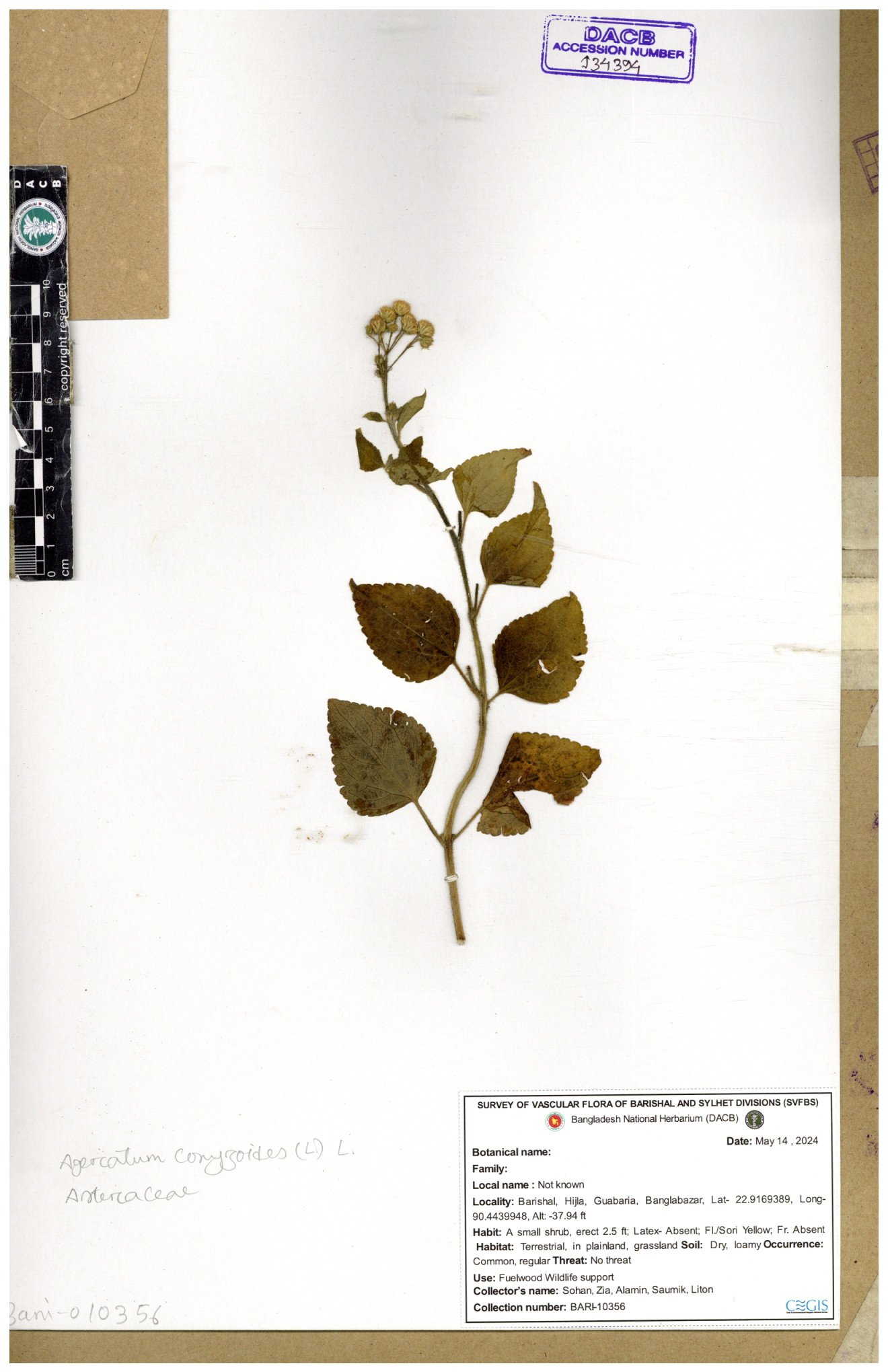 | 134394 | Asteraceae | Ageratum conyzoides | Sohan, Zia, Alamin, Saumik, Liton | 30-11--0001 |