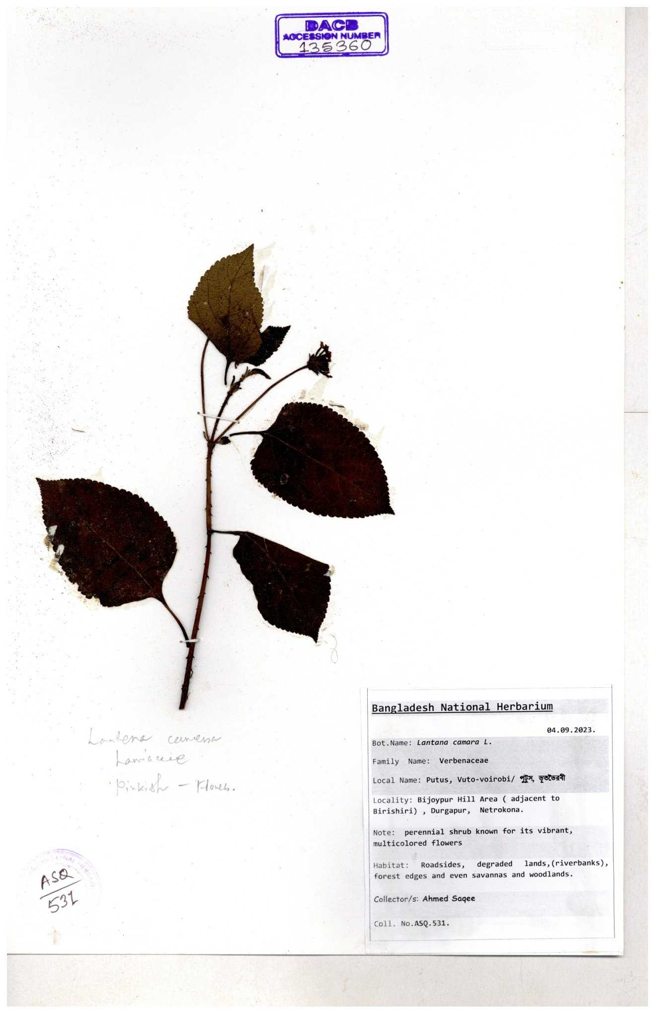 | 135360 | Verbenaceae | Lantana camara | Ahmed Saqee | ASQ 531 04-09-2023 |