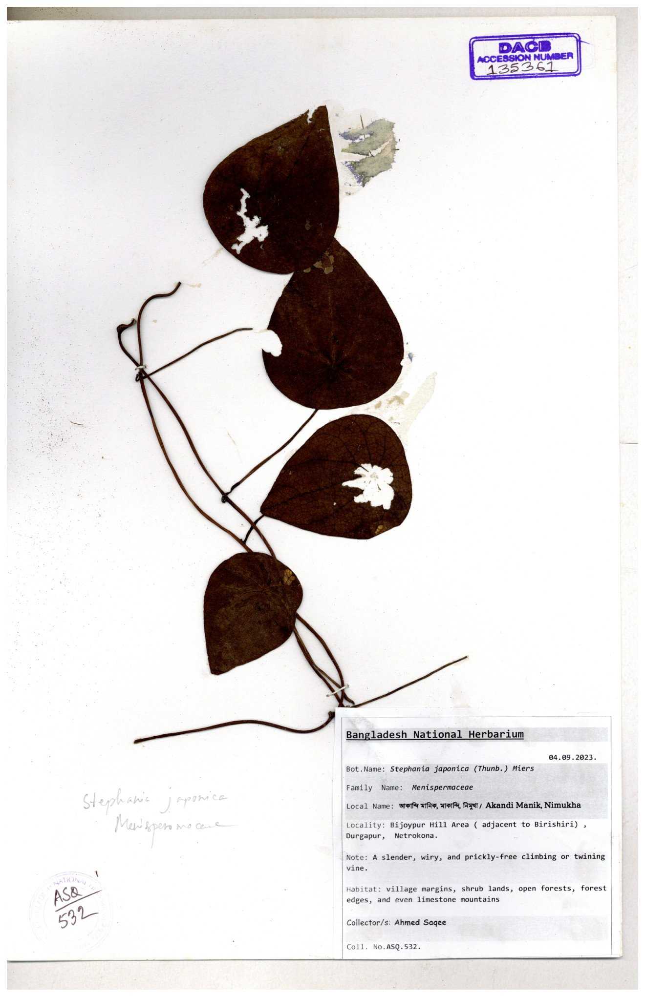 | 135361 | Menispermaceae | Stephania japonica | Ahmed Saqee | ASQ 532 04-09-2023 |