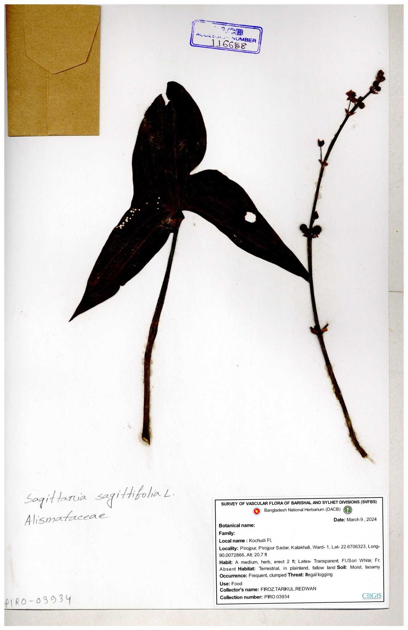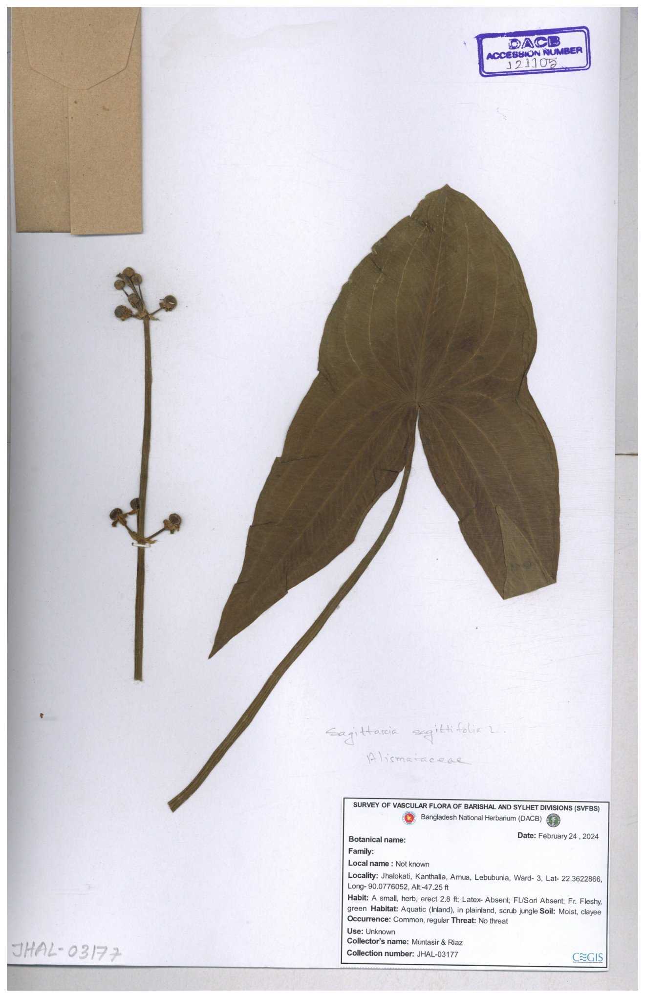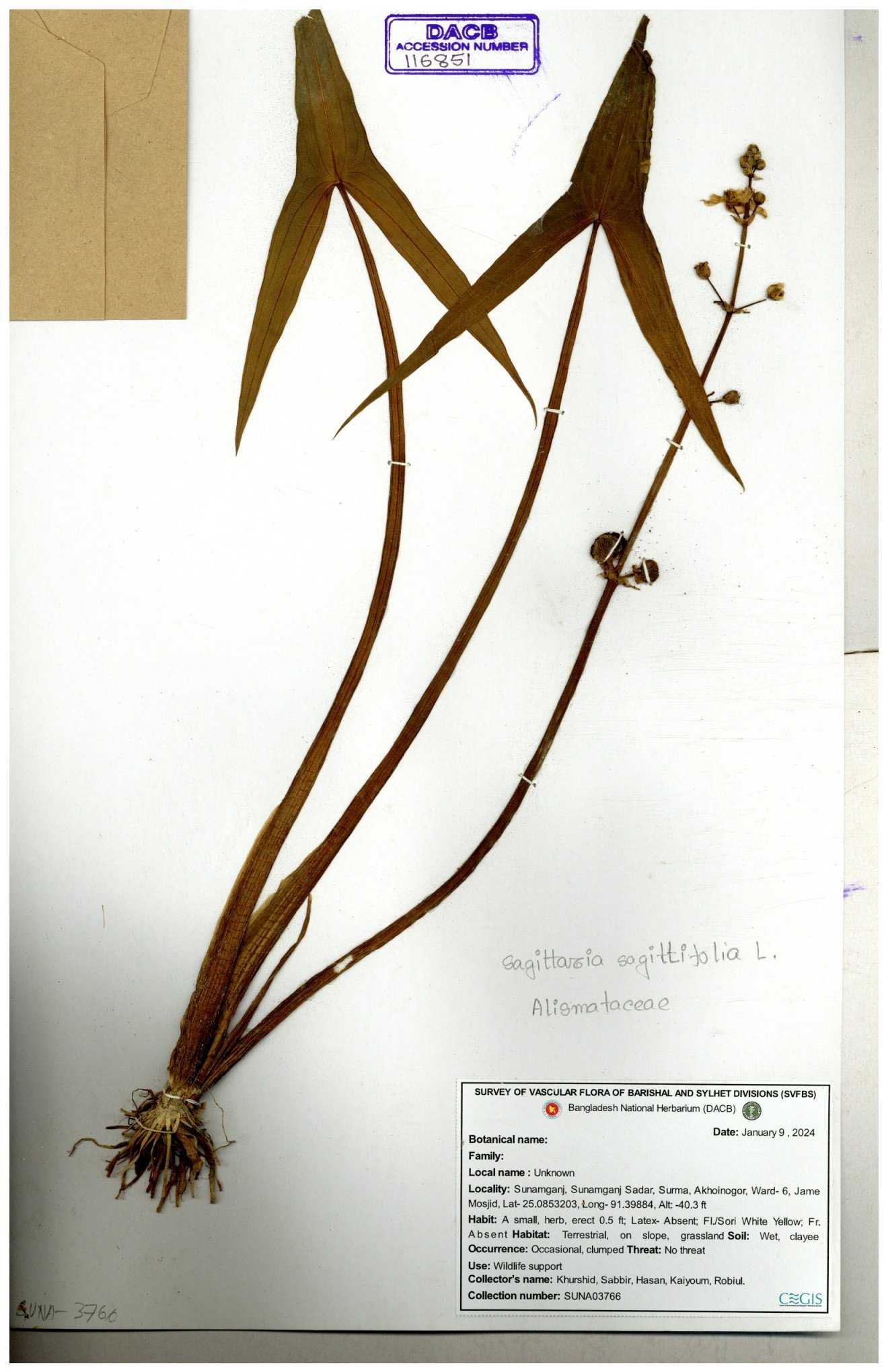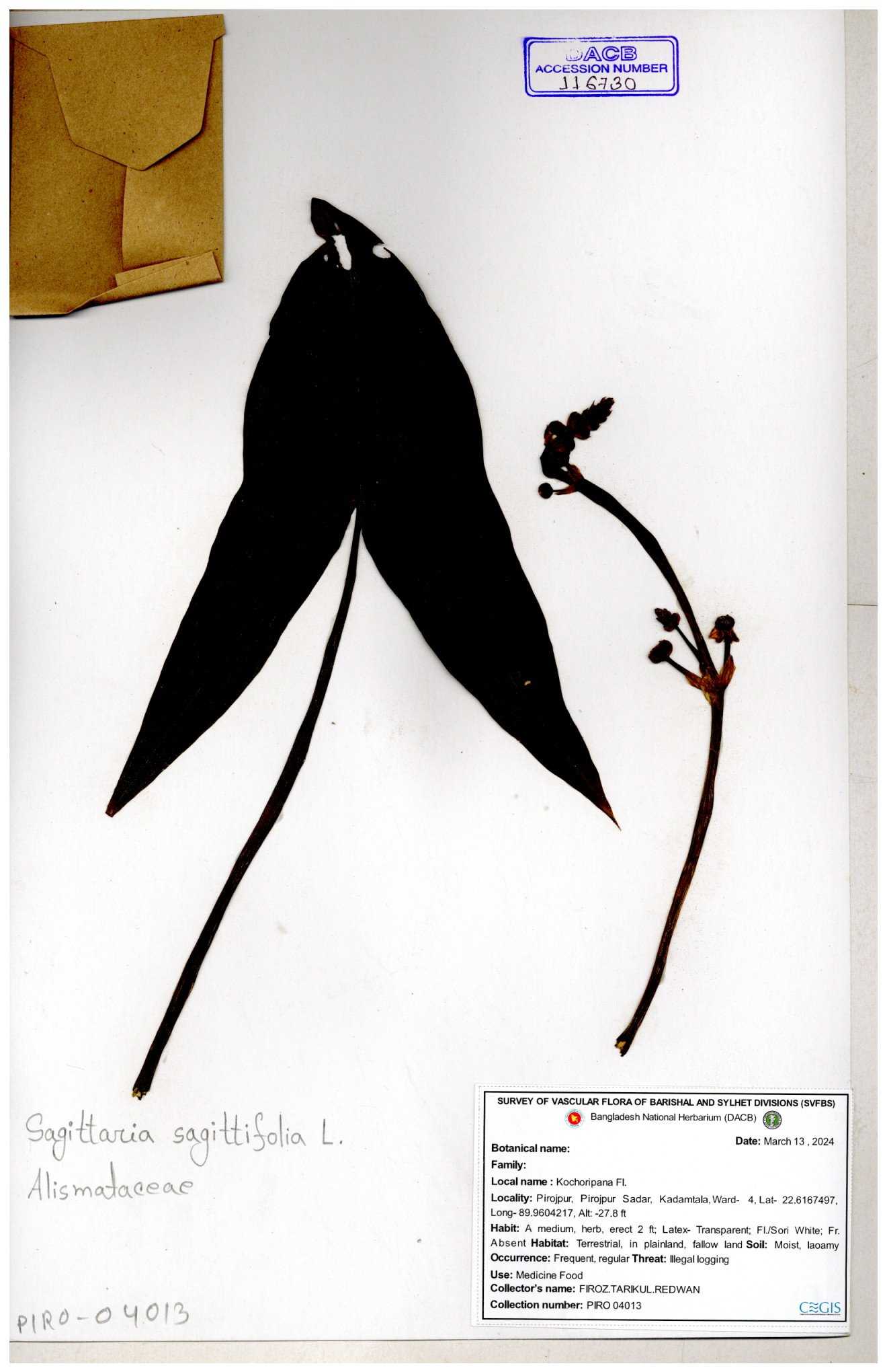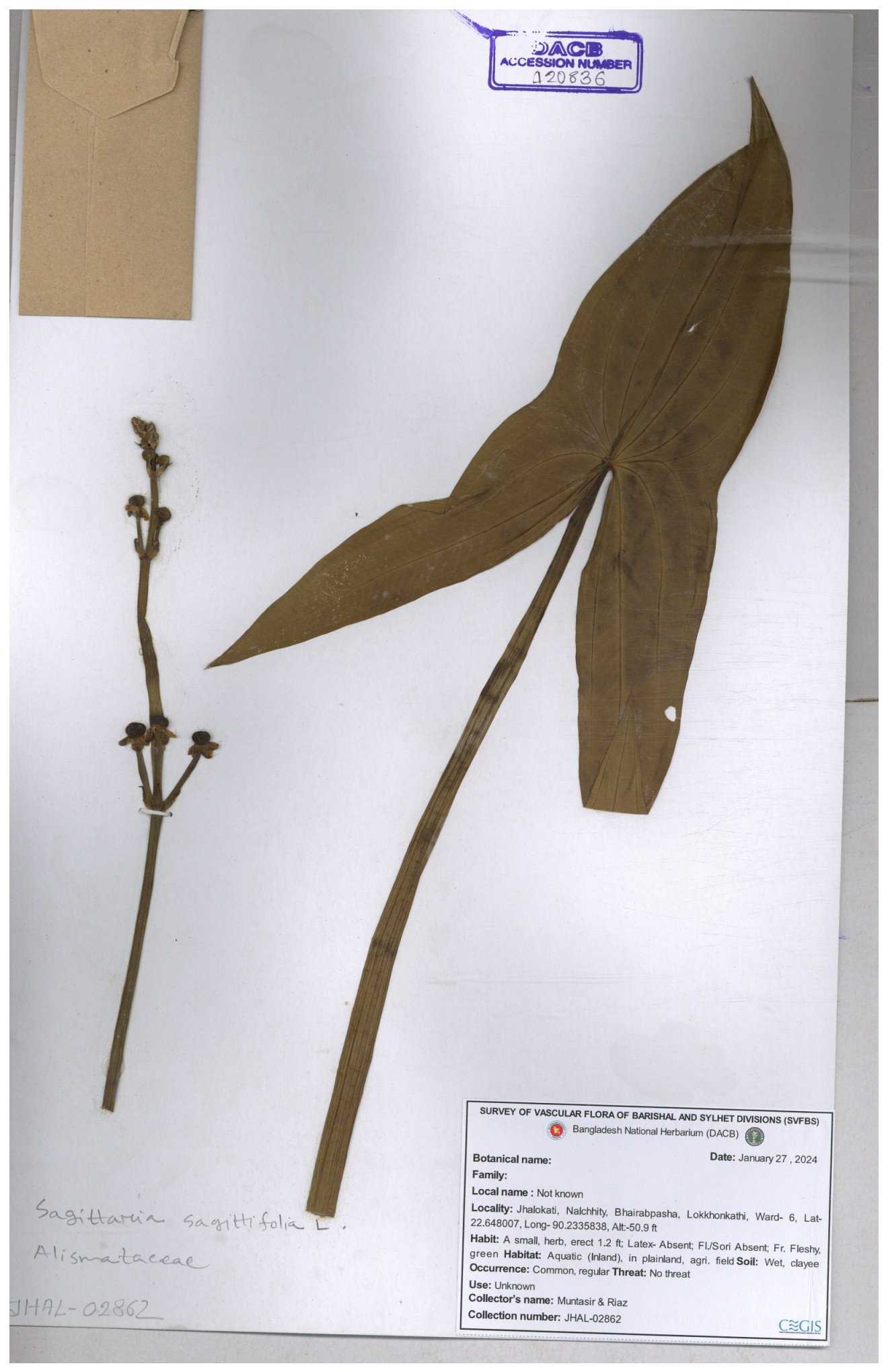 | 116851 | Alismataceae | Sagittaria sagittitolia | 30-11--0001 |