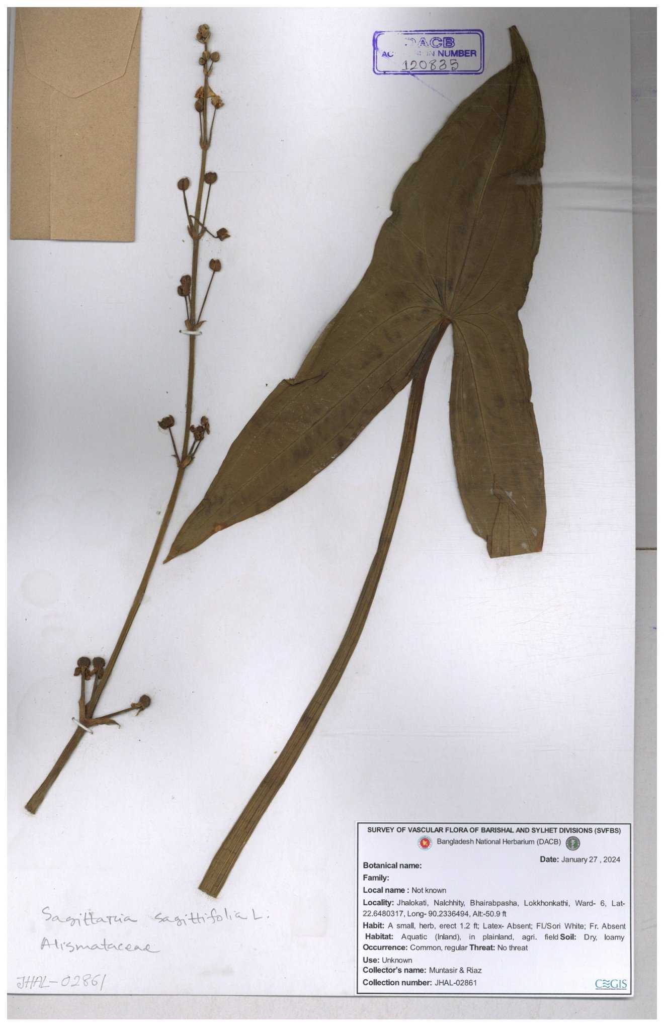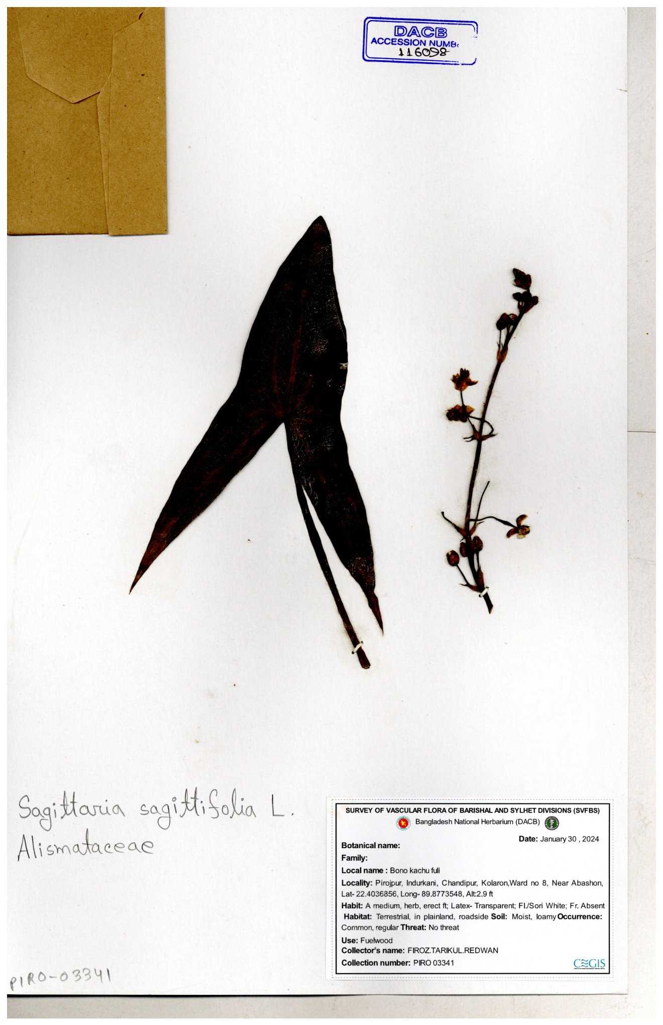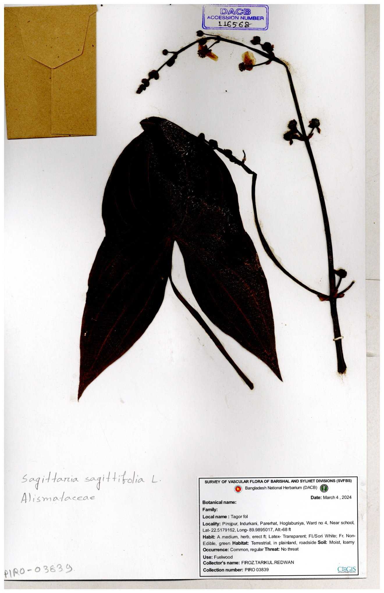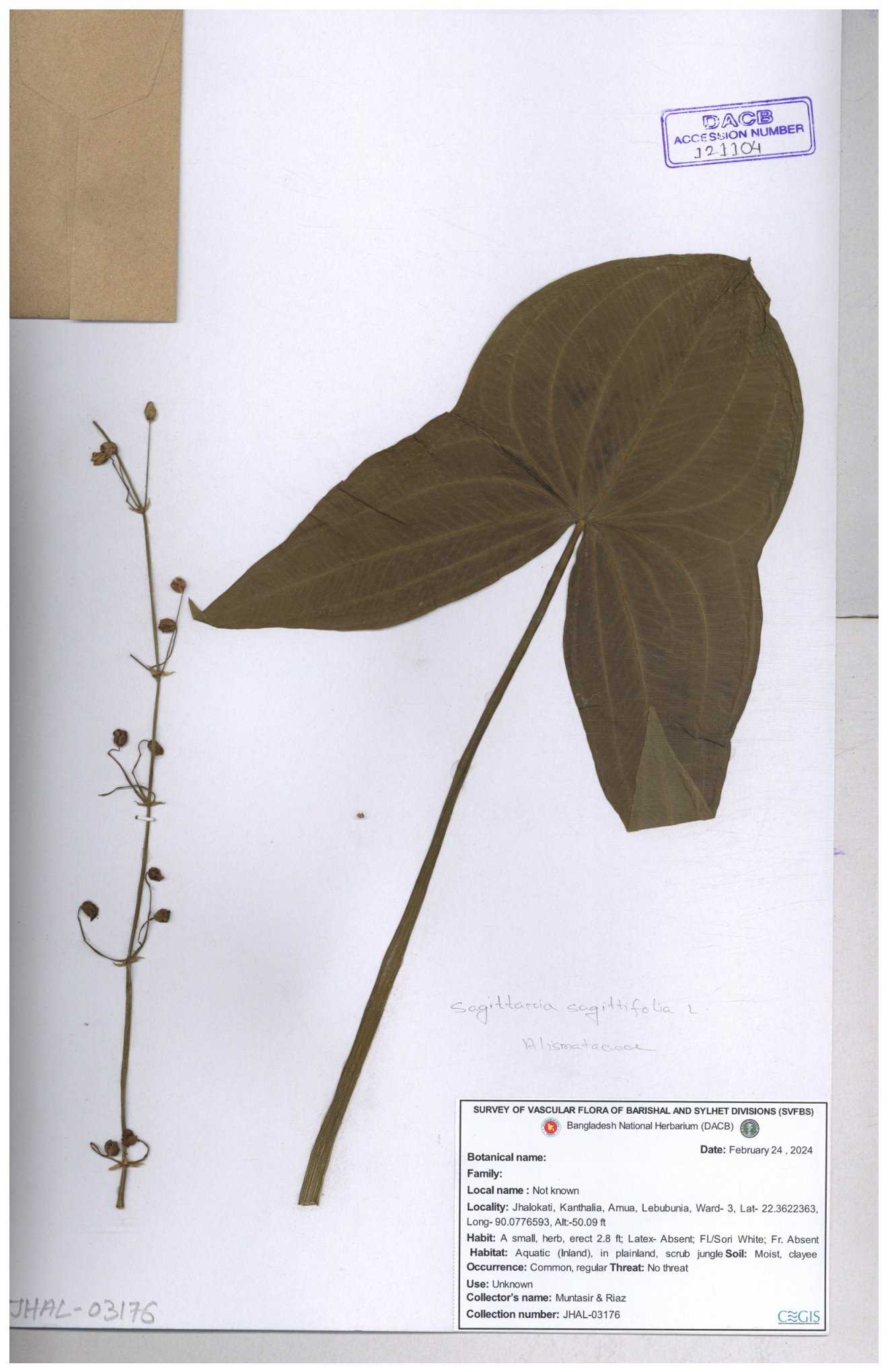 | 116851 | Alismataceae | Sagittaria sagittitolia | 30-11--0001 |