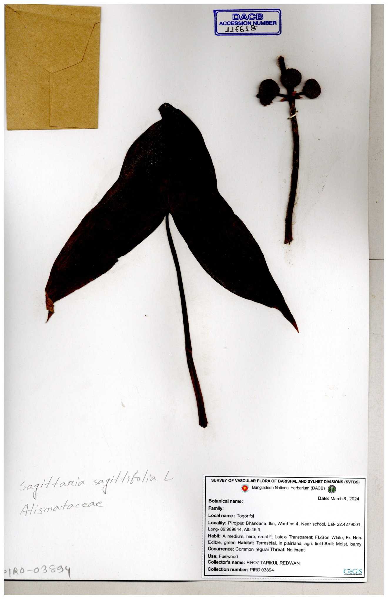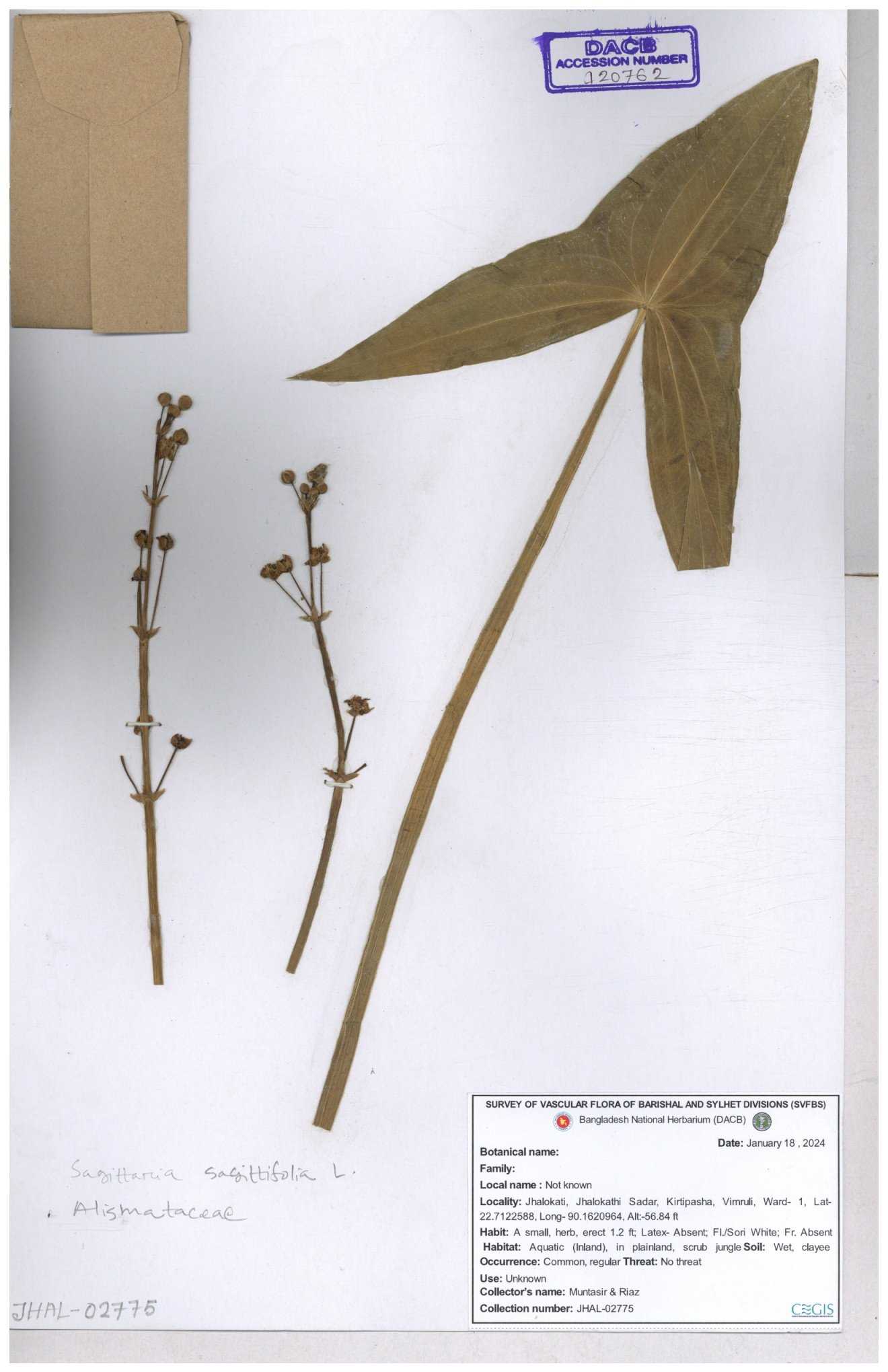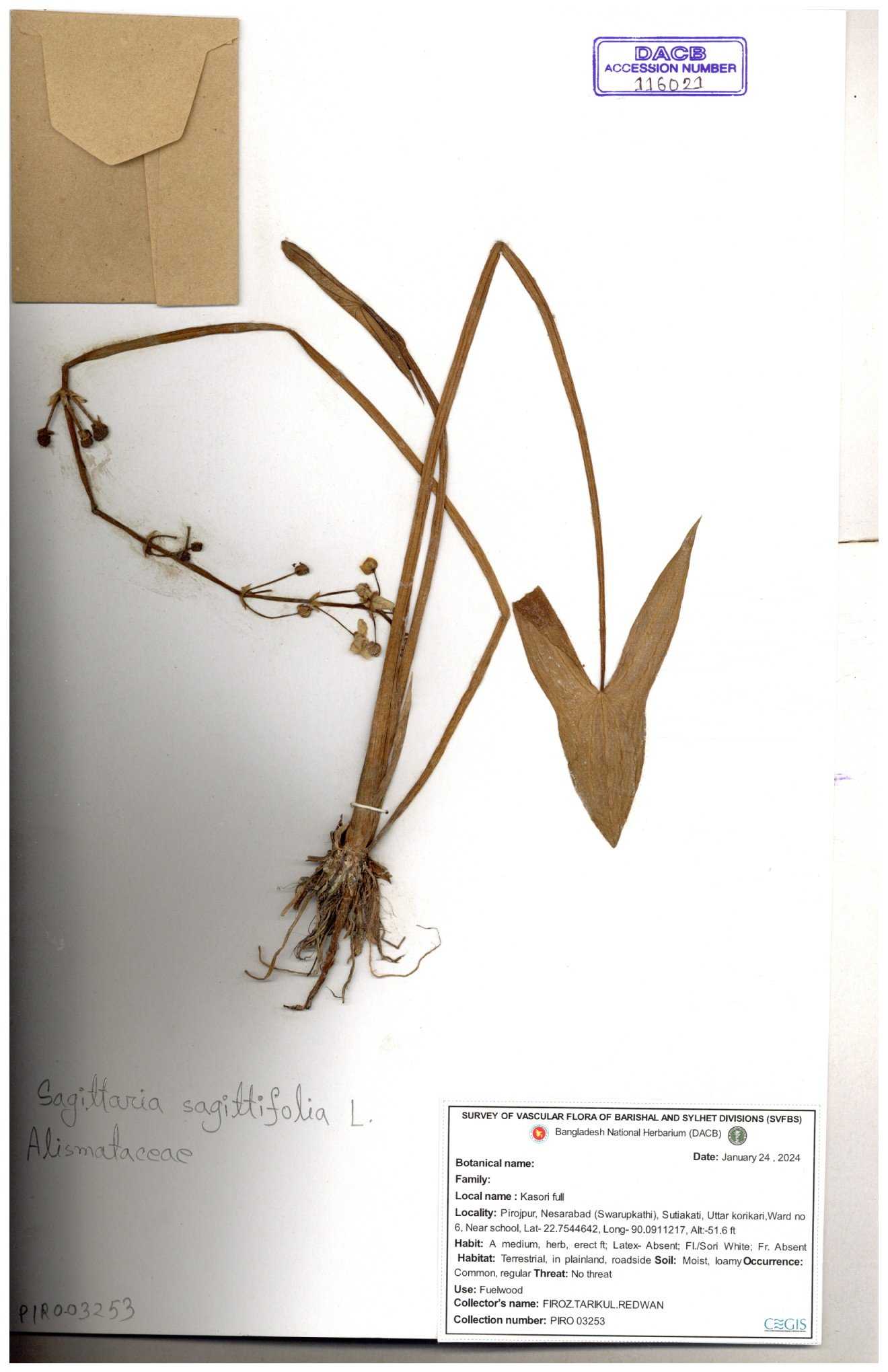 | 116852 | Alismataceae | Sagittaria sagittitolia | 30-11--0001 |