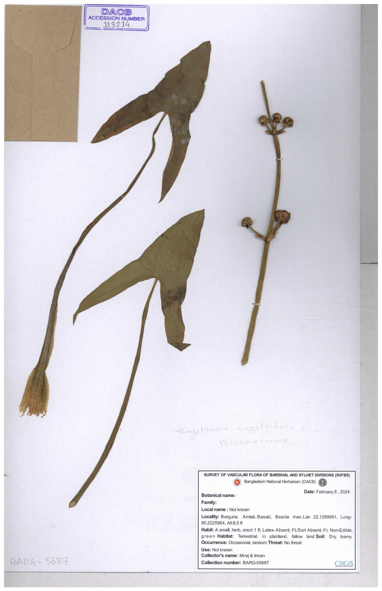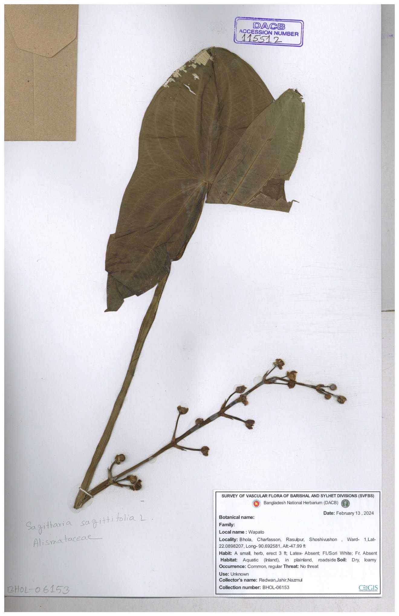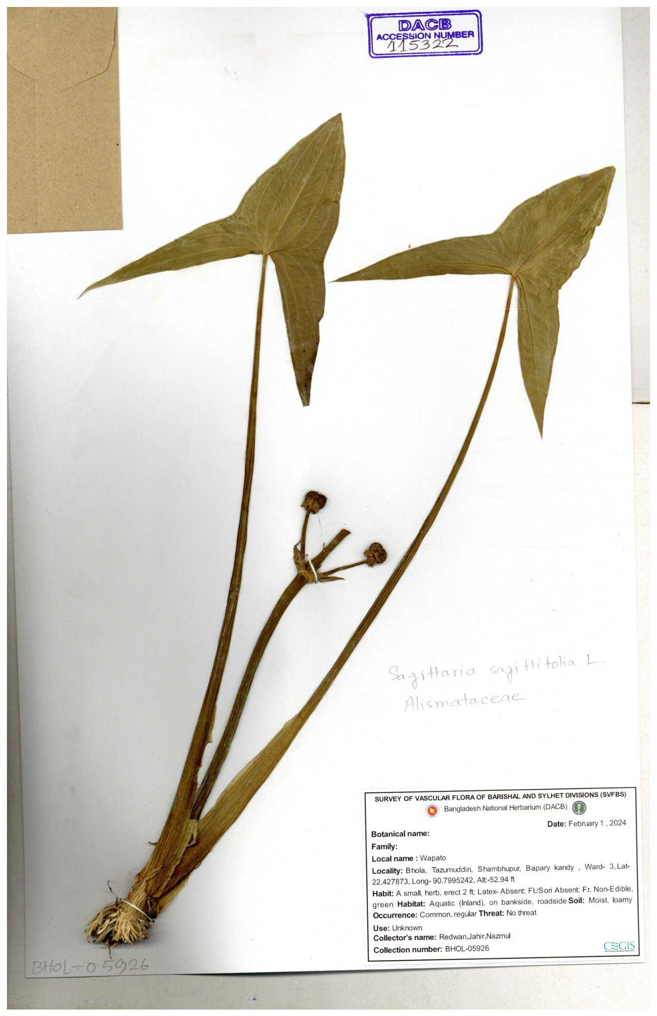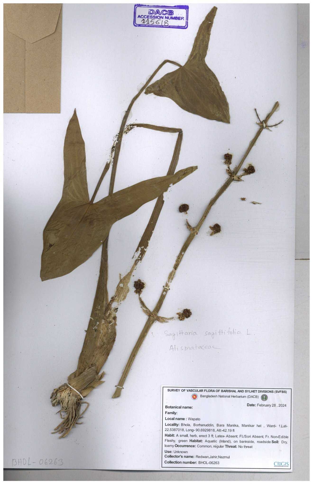 | 113915 | Alismataceae | Sagittaria sagittitolia | 30-11--0001 |