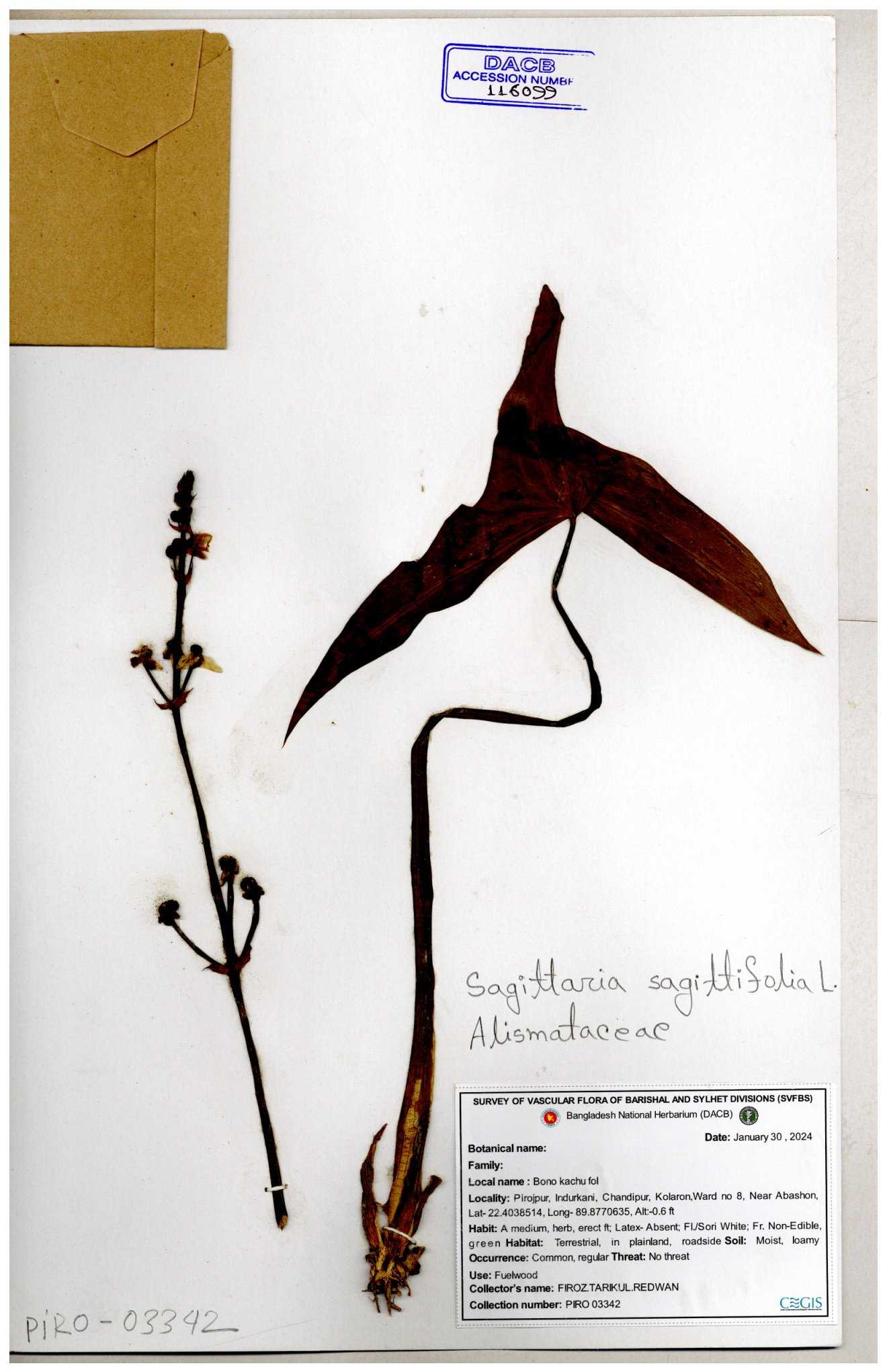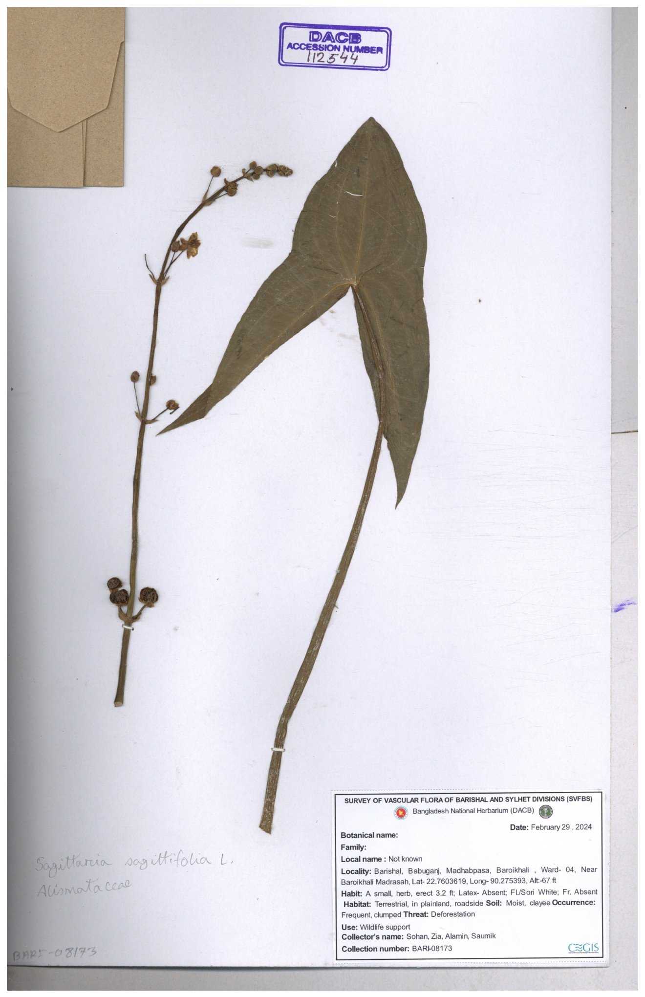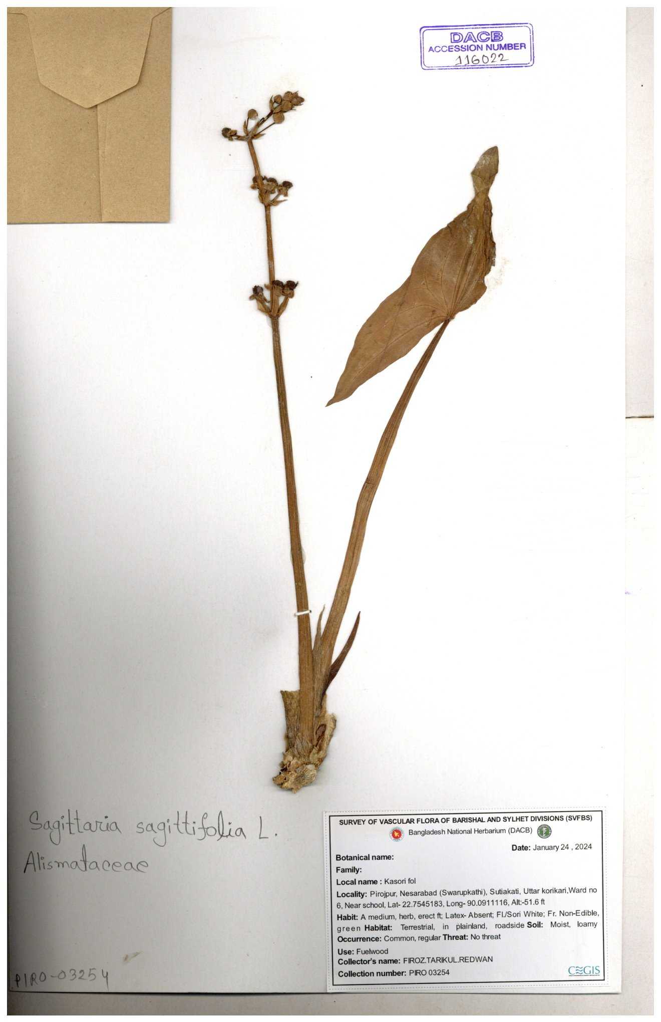 | 116281 | Alismataceae | Sagittaria sagittilolia | 30-11--0001 |