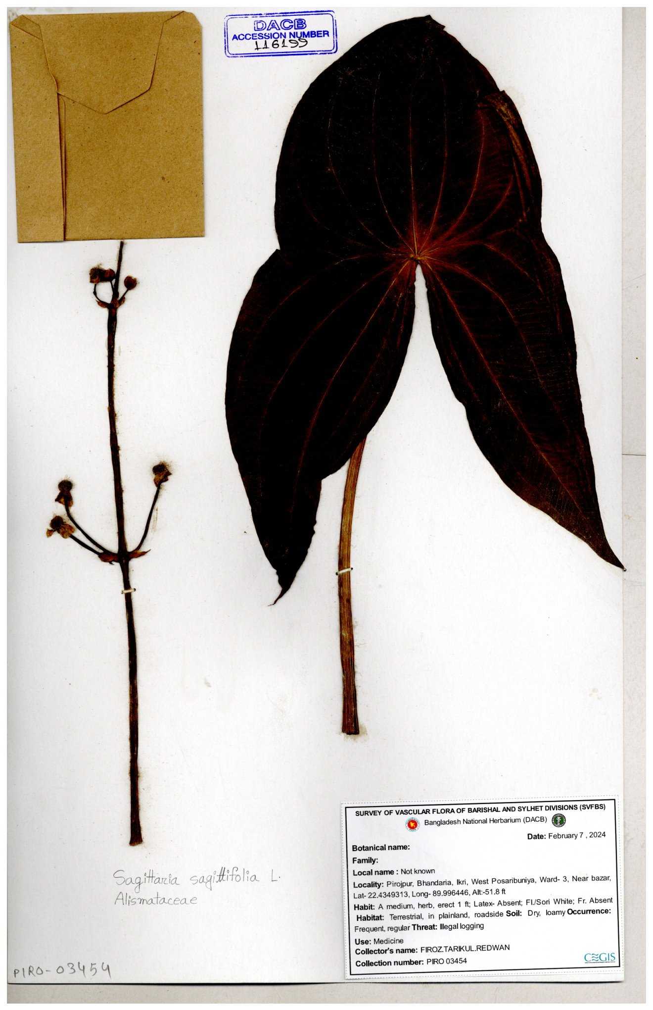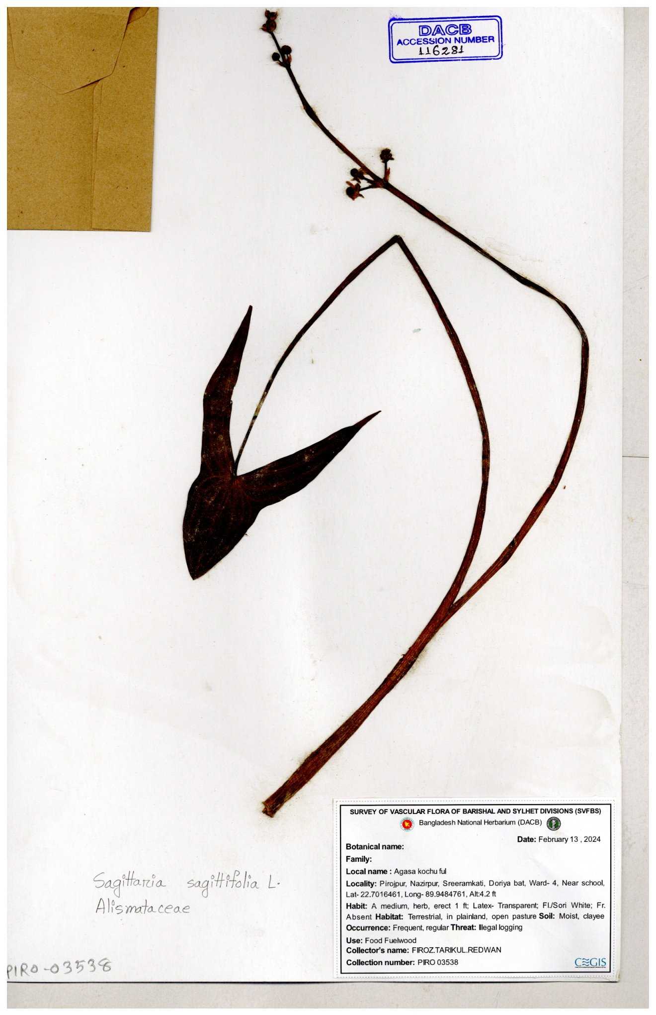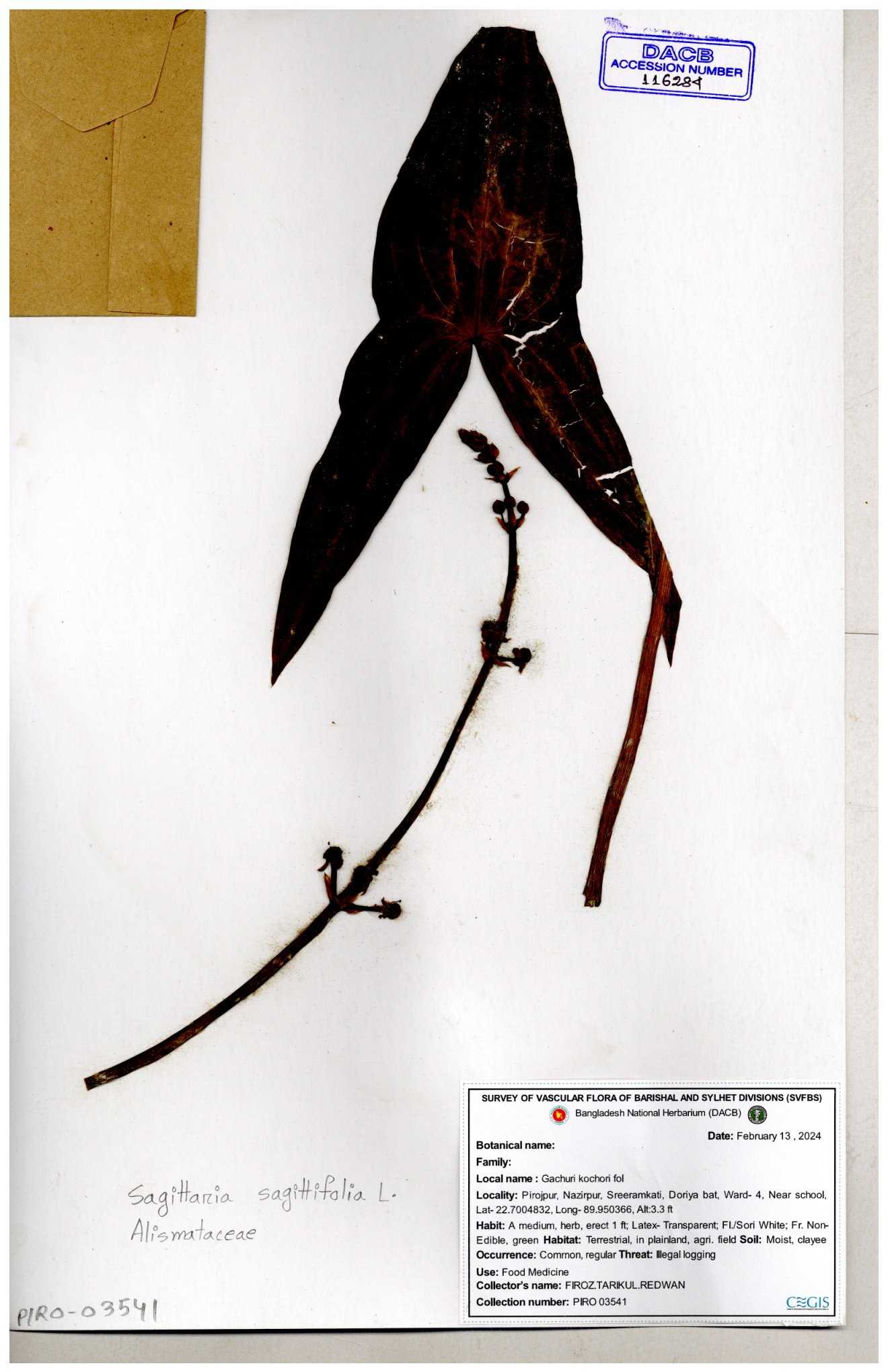 | 116281 | Alismataceae | Sagittaria sagittilolia | 30-11--0001 |
