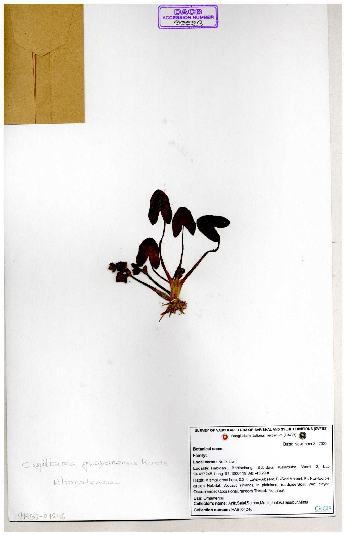 | 95417 | Alismataceae | Sagittaria guayanensis | 30-11--0001 |