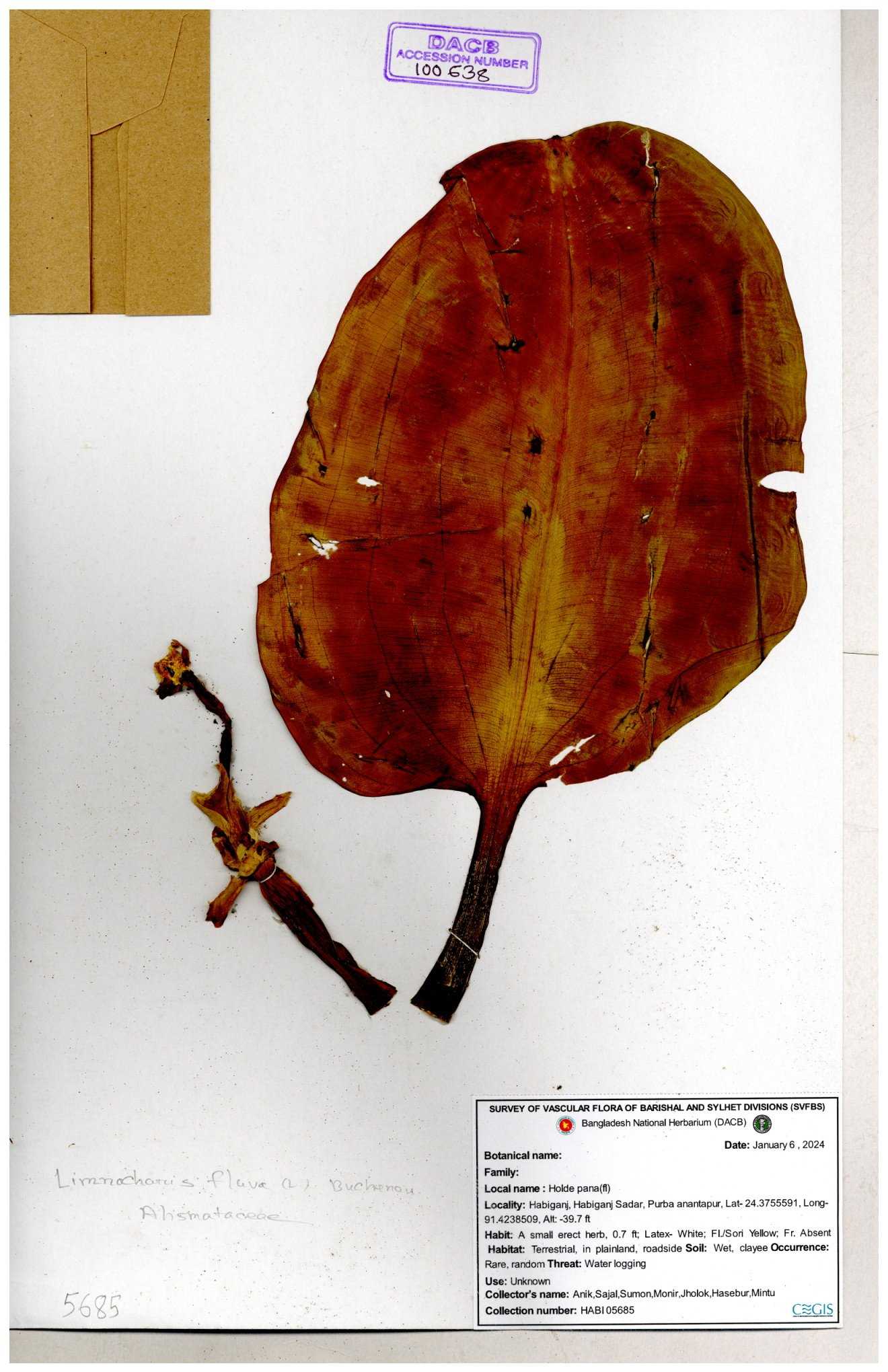 | 100638 | Alismataceae | Limnophyton sp. | 30-11--0001 |