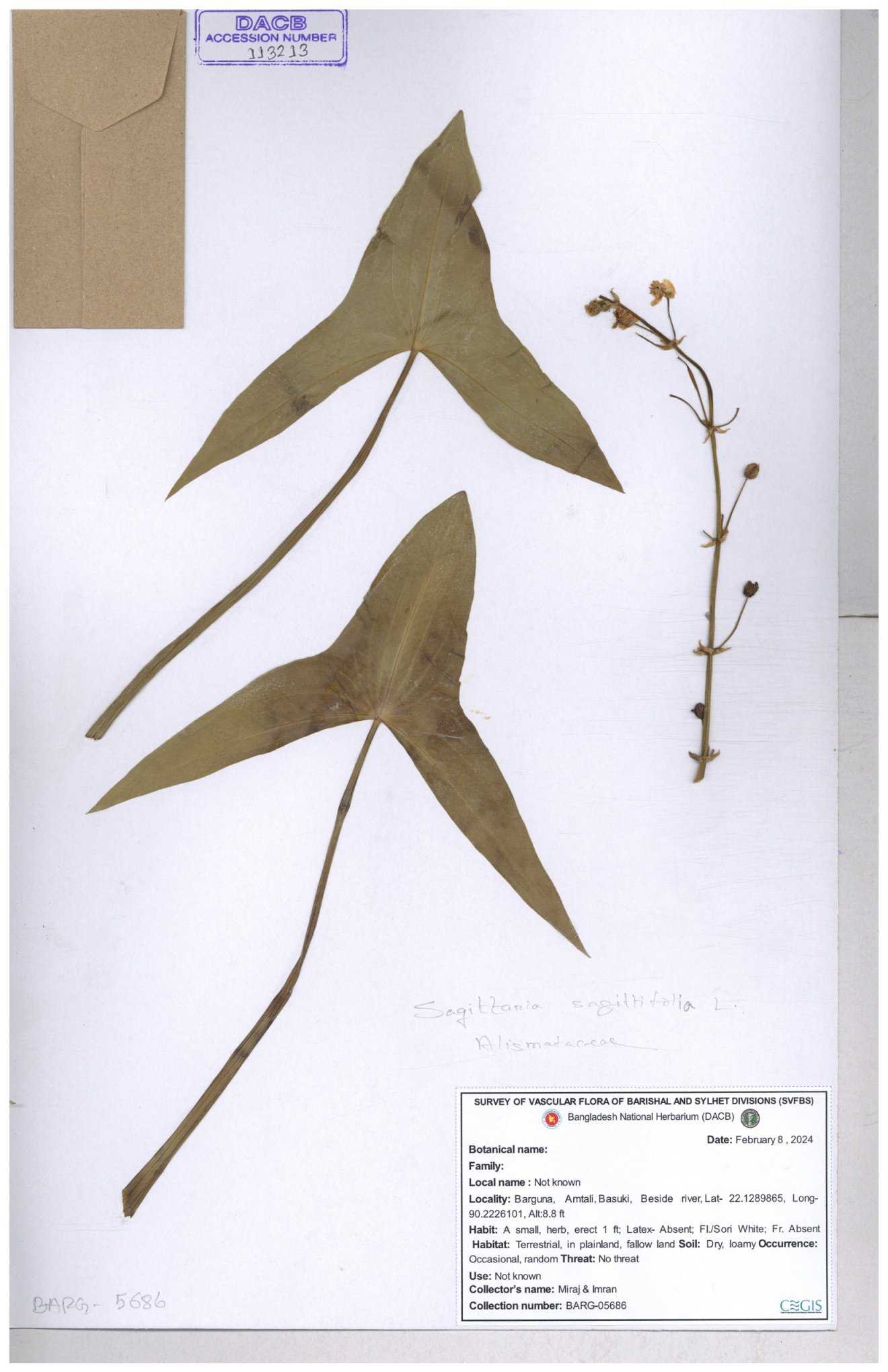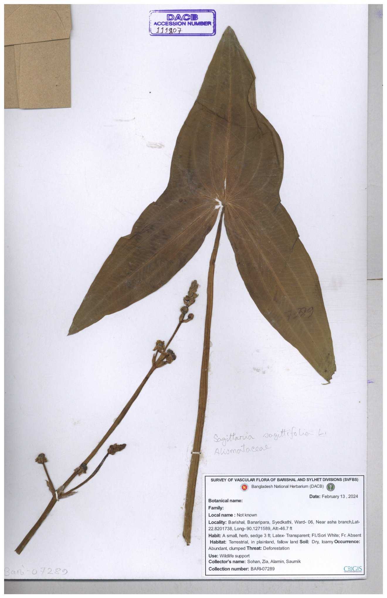 | 113916 | Alismataceae | Sagittaria sagittitolia | 30-11--0001 |
