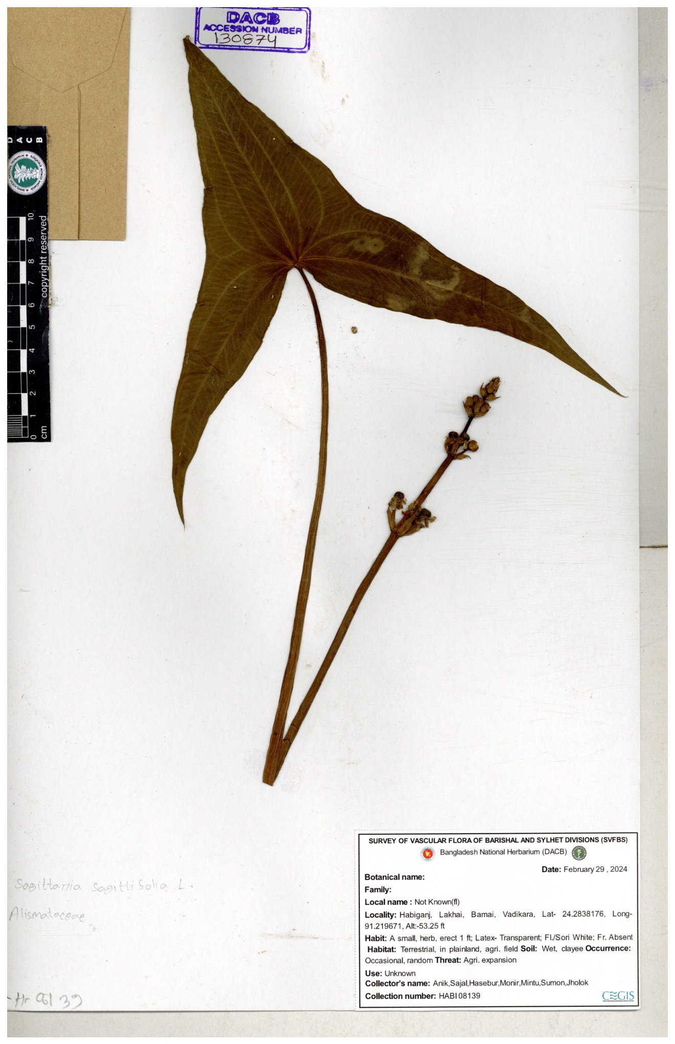 | 93754 | Alismataceae | Sagittaria sagitlifolia | 30-11--0001 |