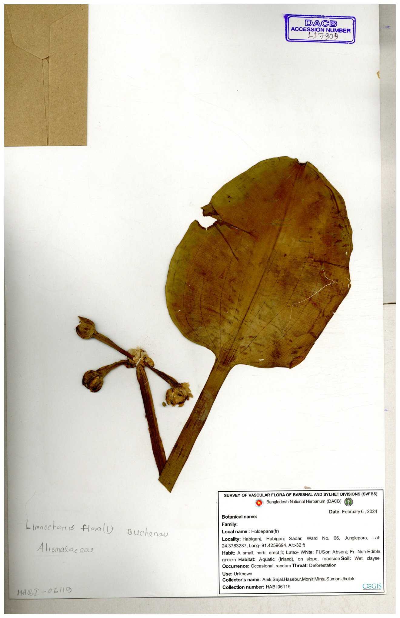 | 117909 | Alismataceae | Limnophyton flava | 30-11--0001 |