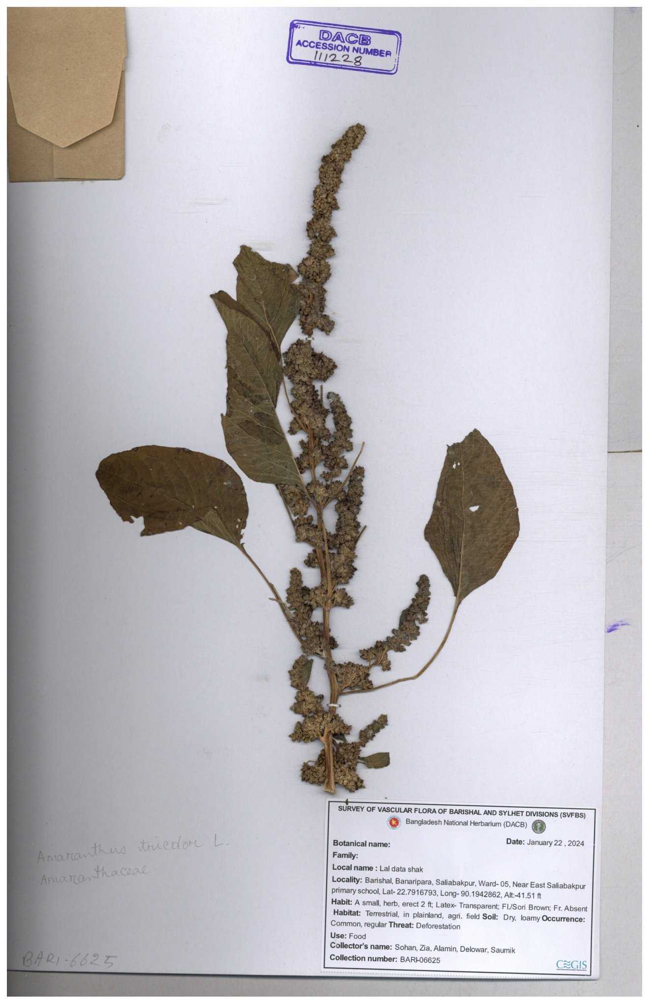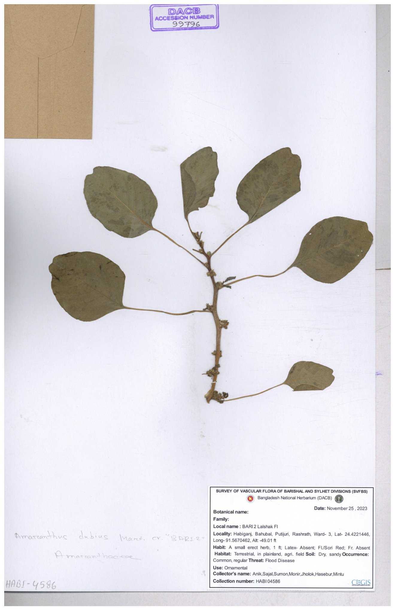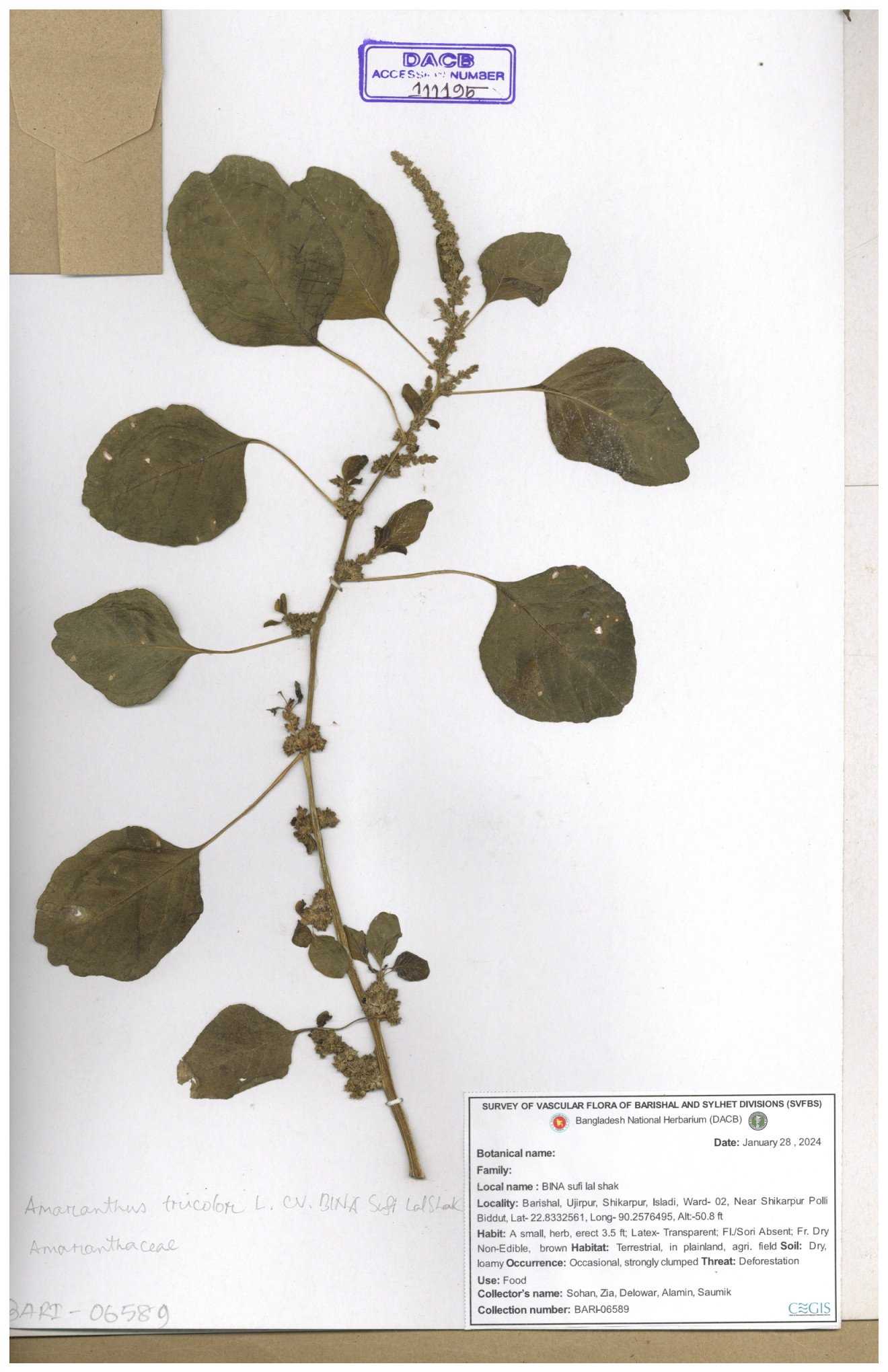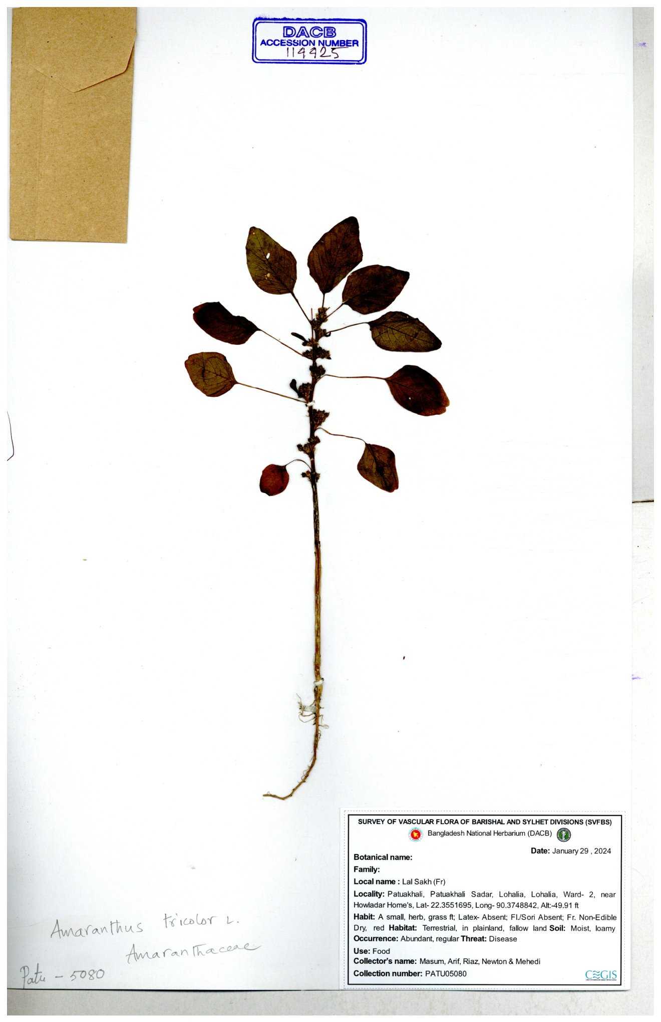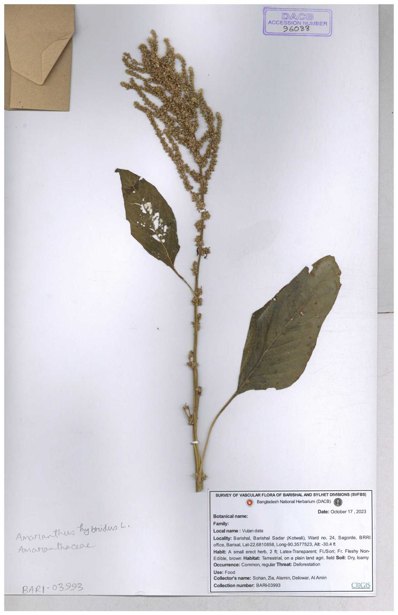 | 80879 | Amaranthaceae | Amaranthus viridis L. | Dr. M. Sultana | DMS-3628 24-03-2021 |