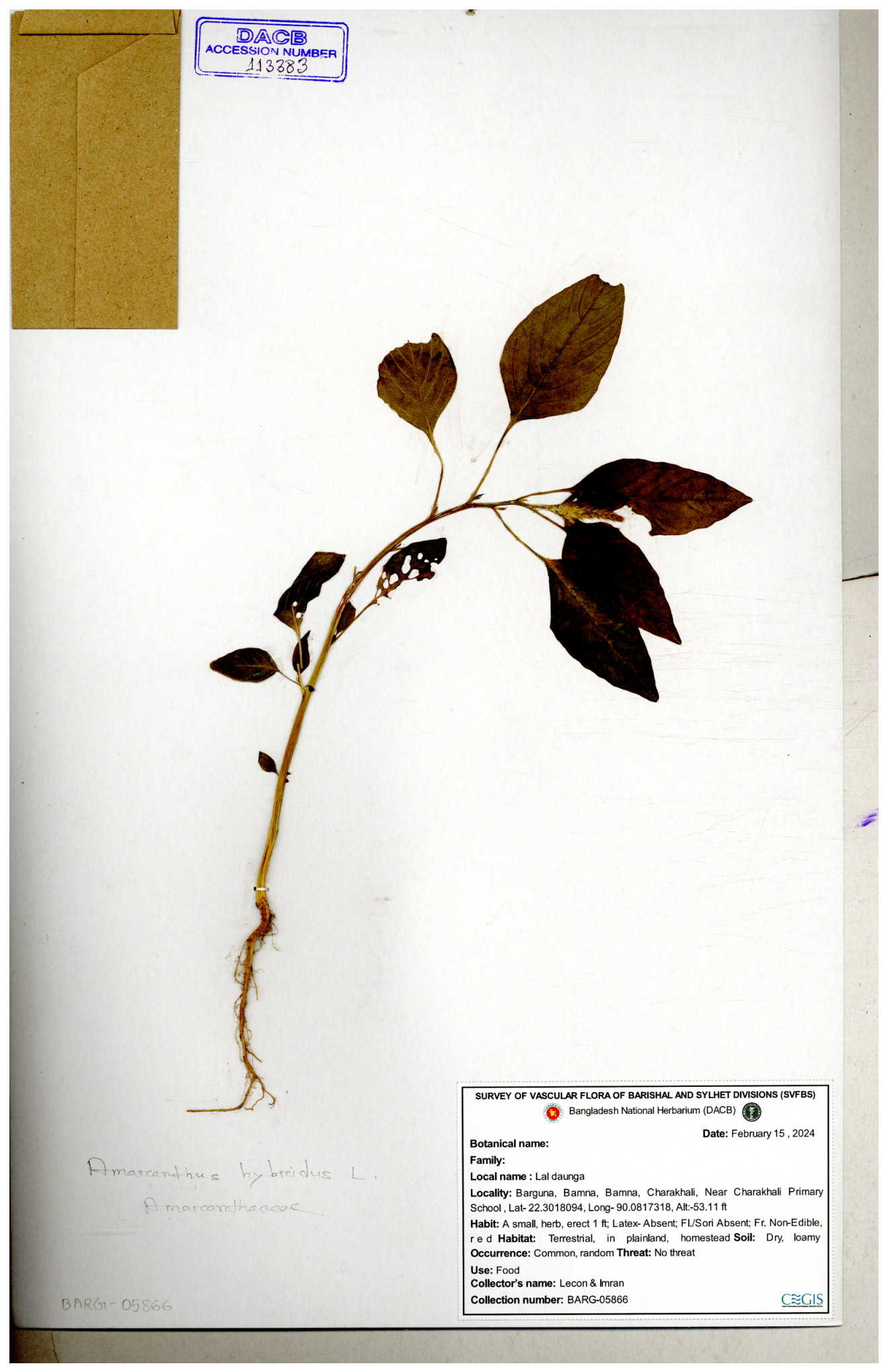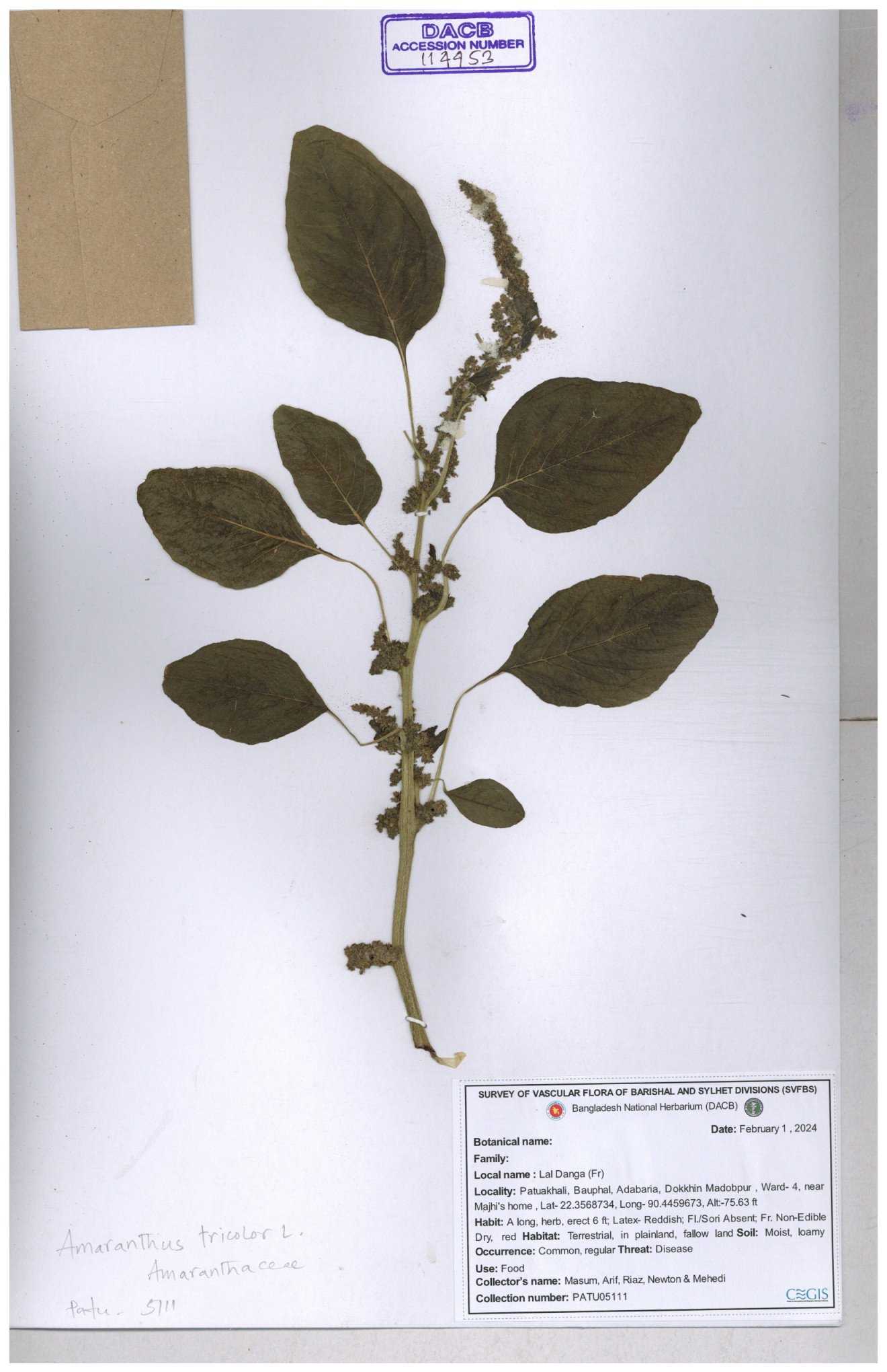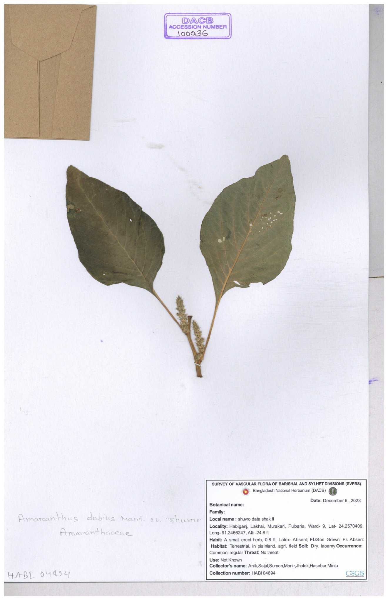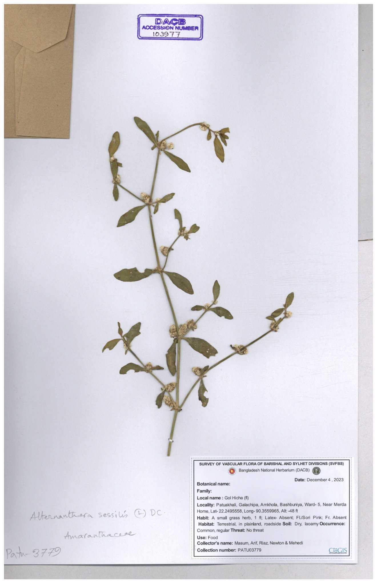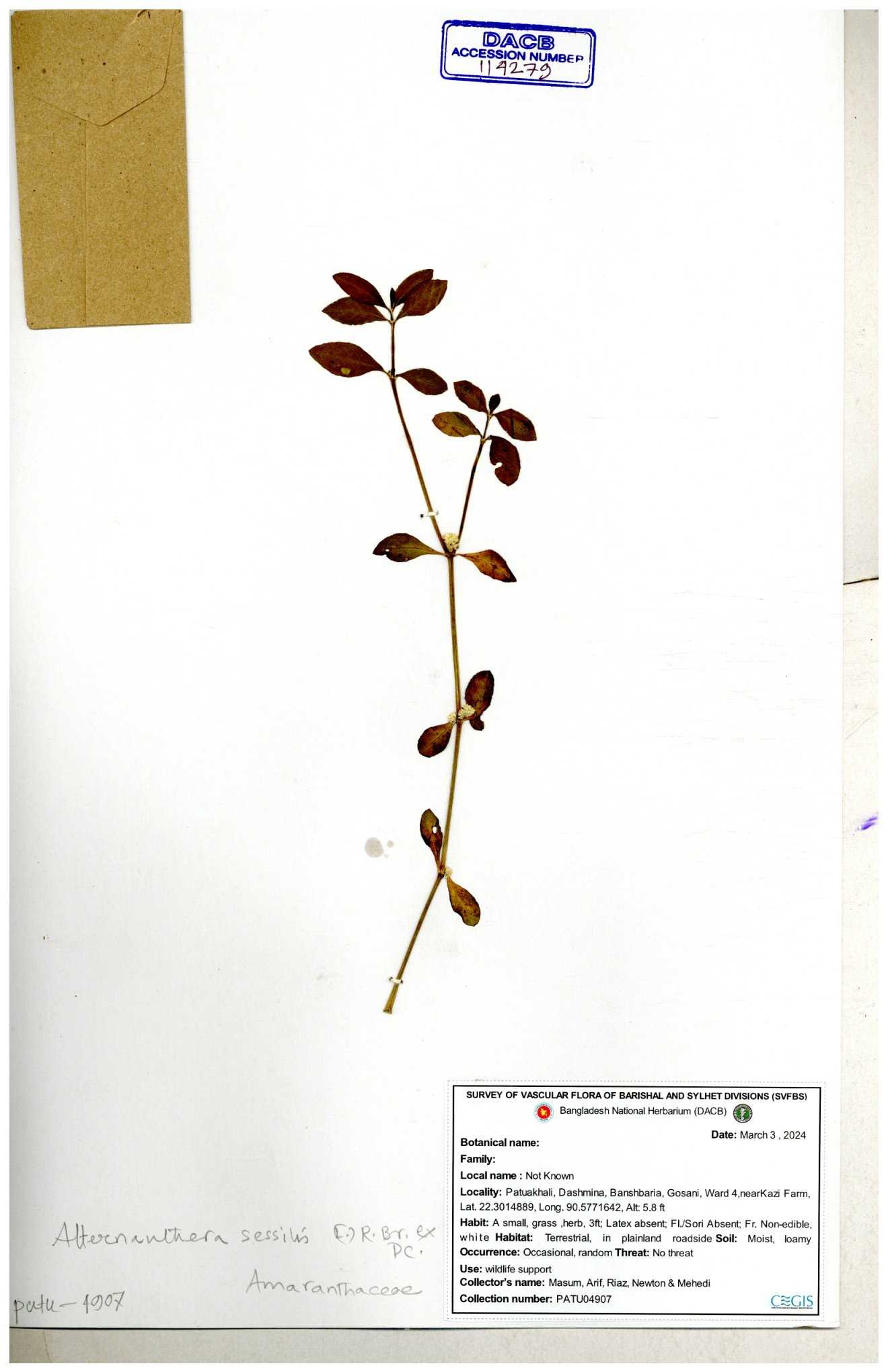 | 80879 | Amaranthaceae | Amaranthus viridis L. | Dr. M. Sultana | DMS-3628 24-03-2021 |