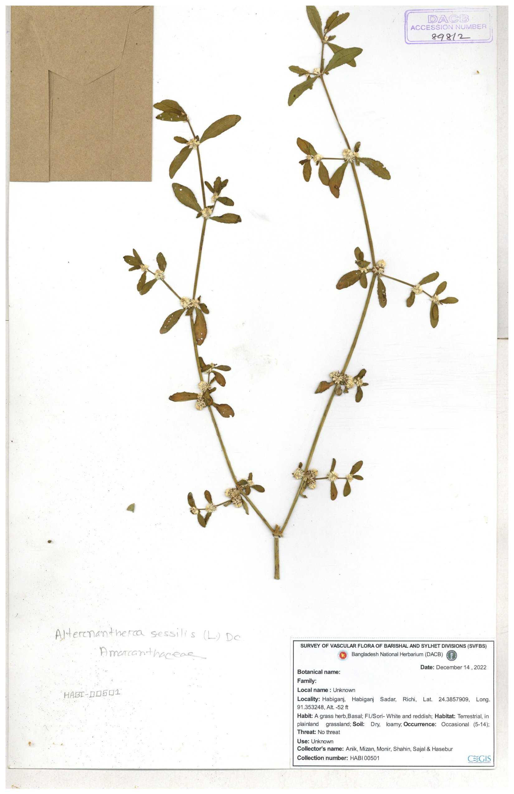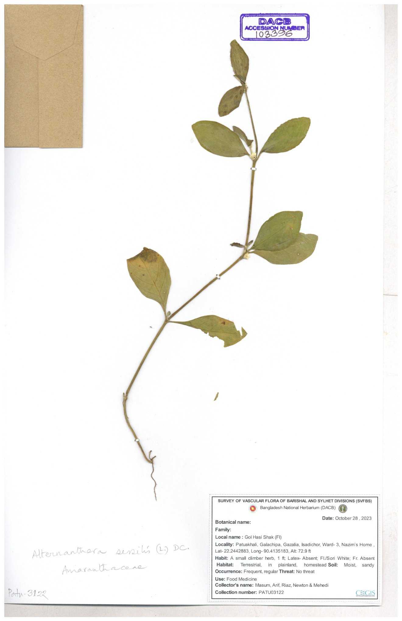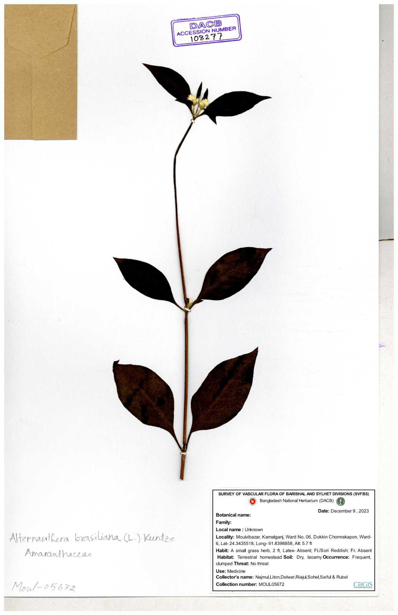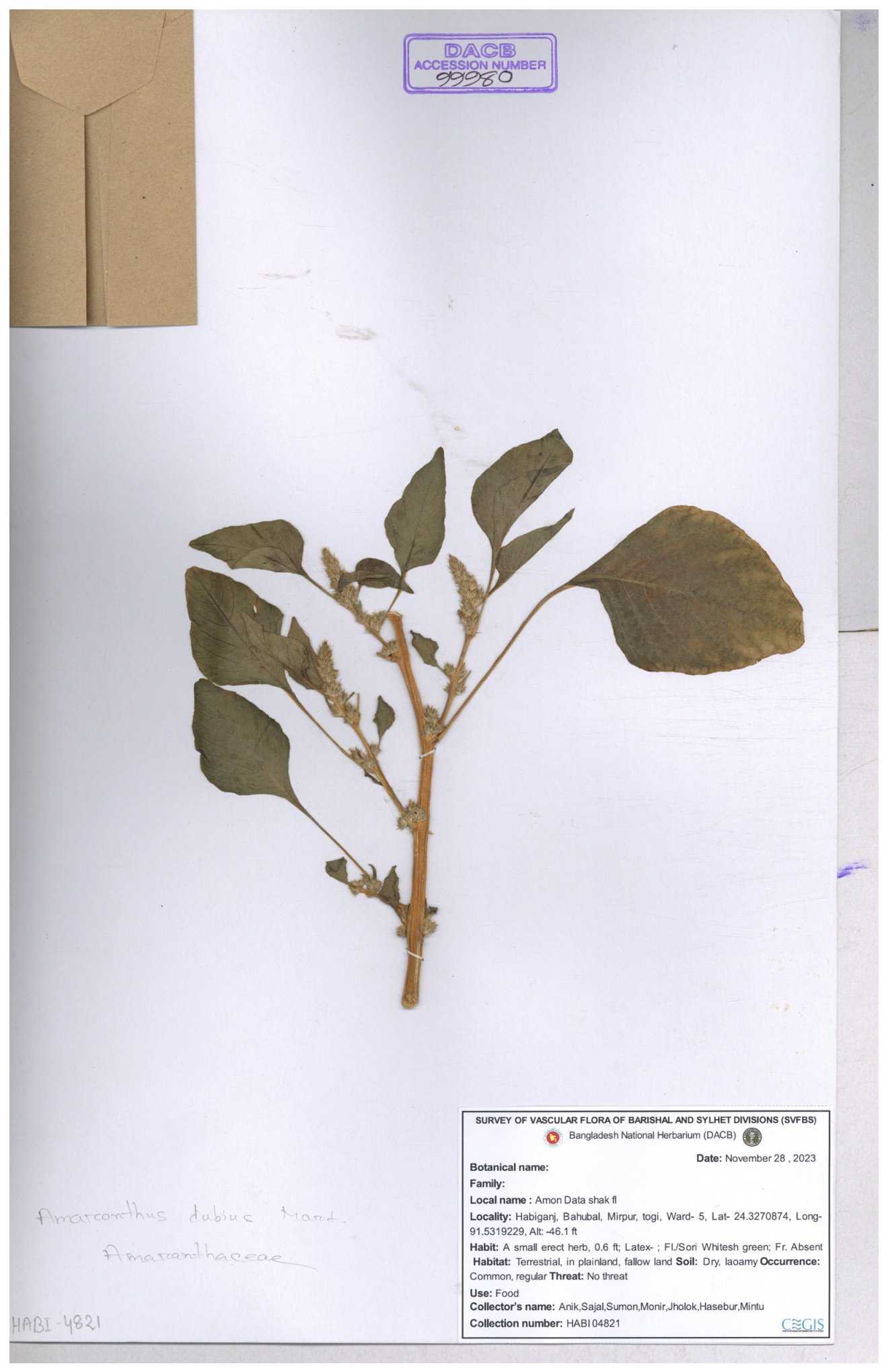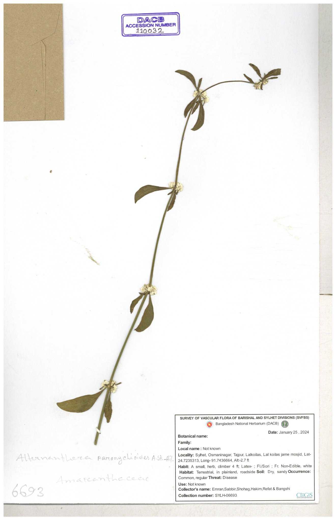 | 80879 | Amaranthaceae | Amaranthus viridis L. | Dr. M. Sultana | DMS-3628 24-03-2021 |