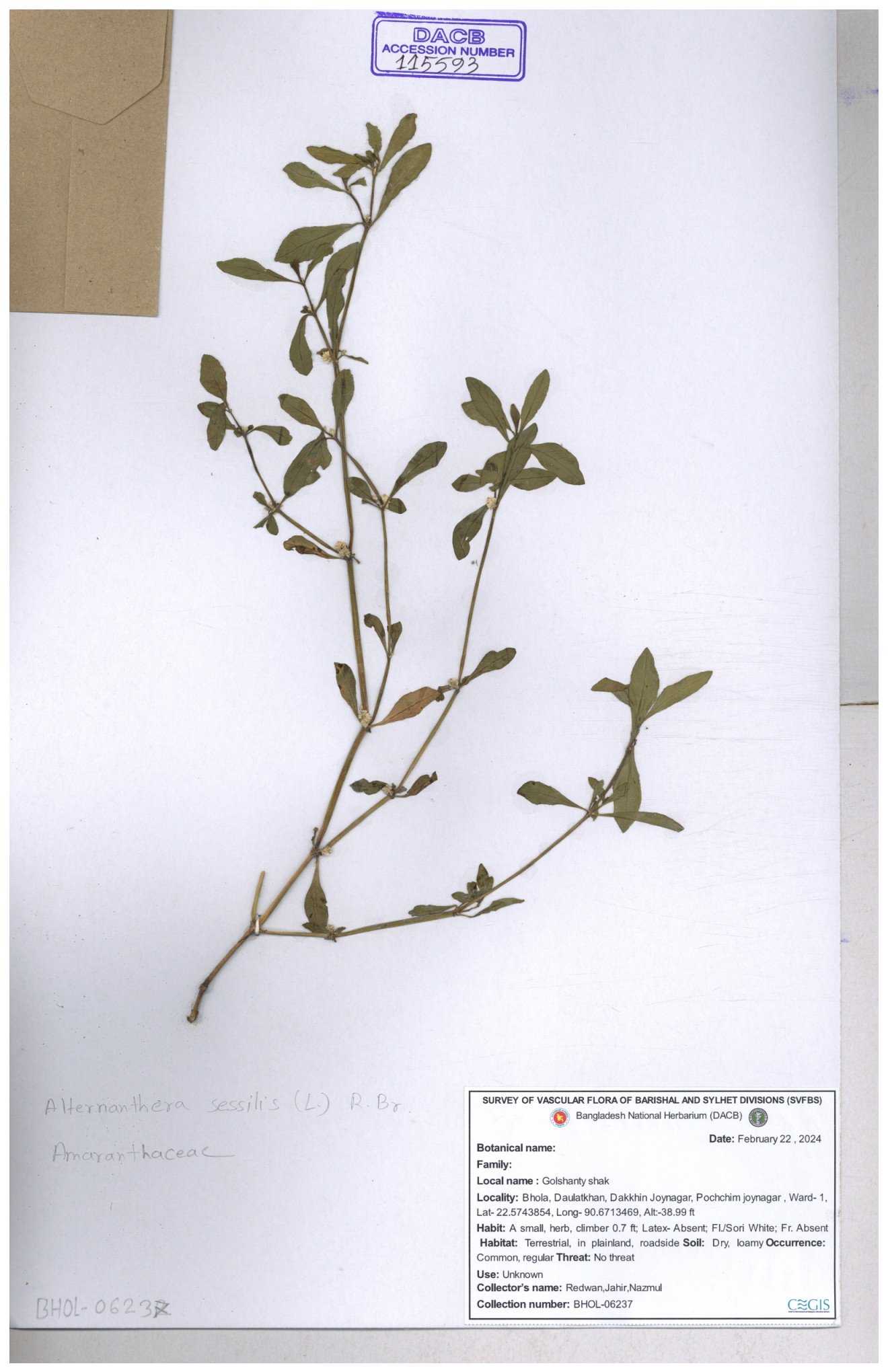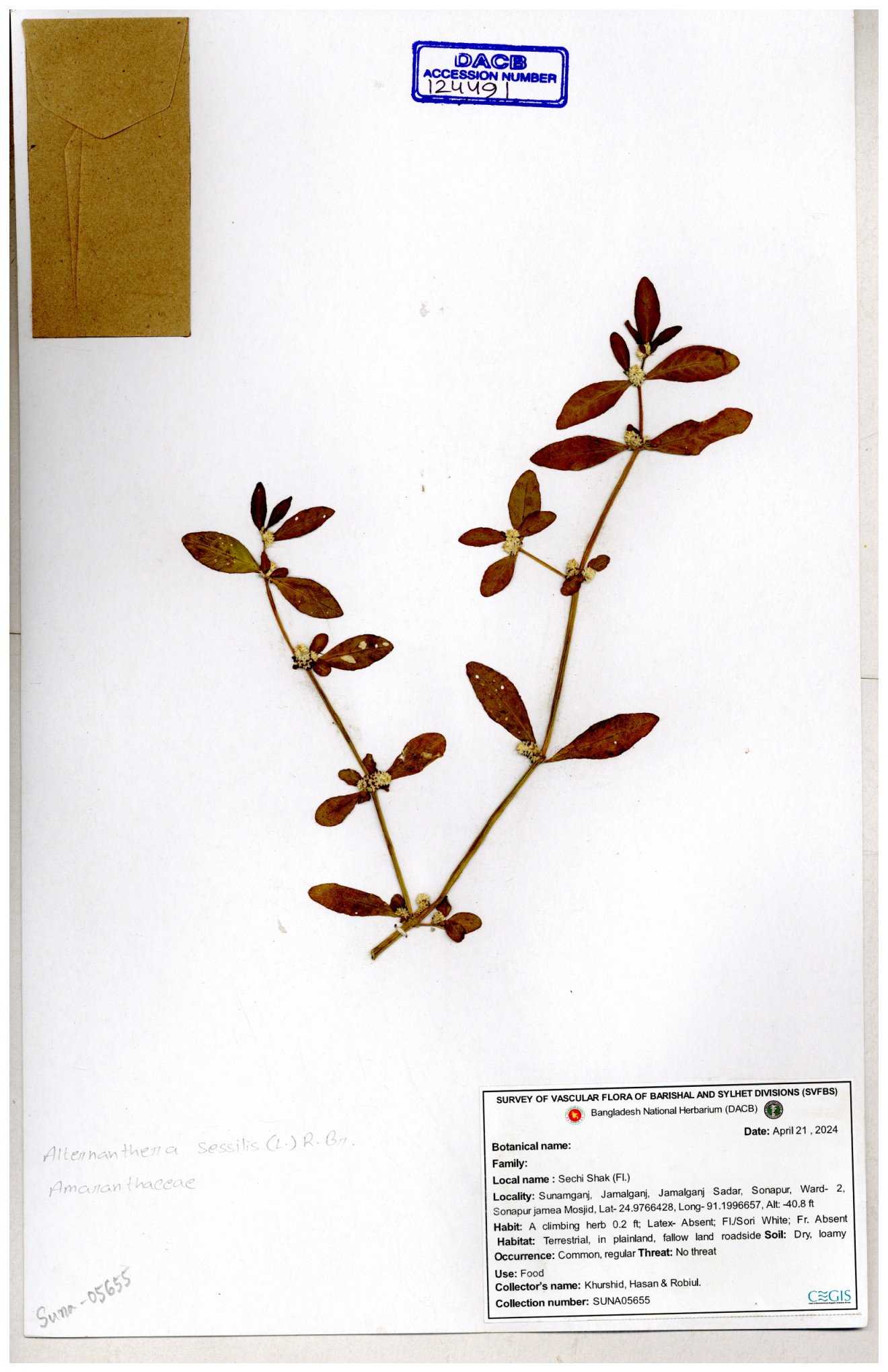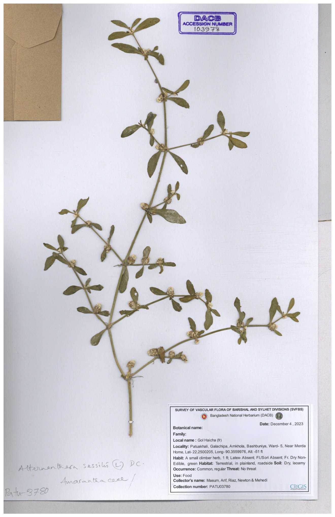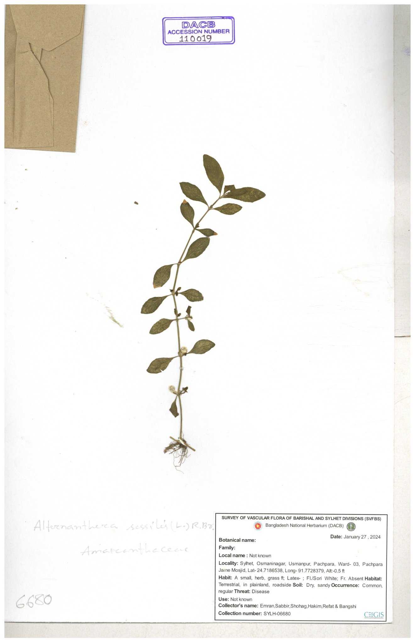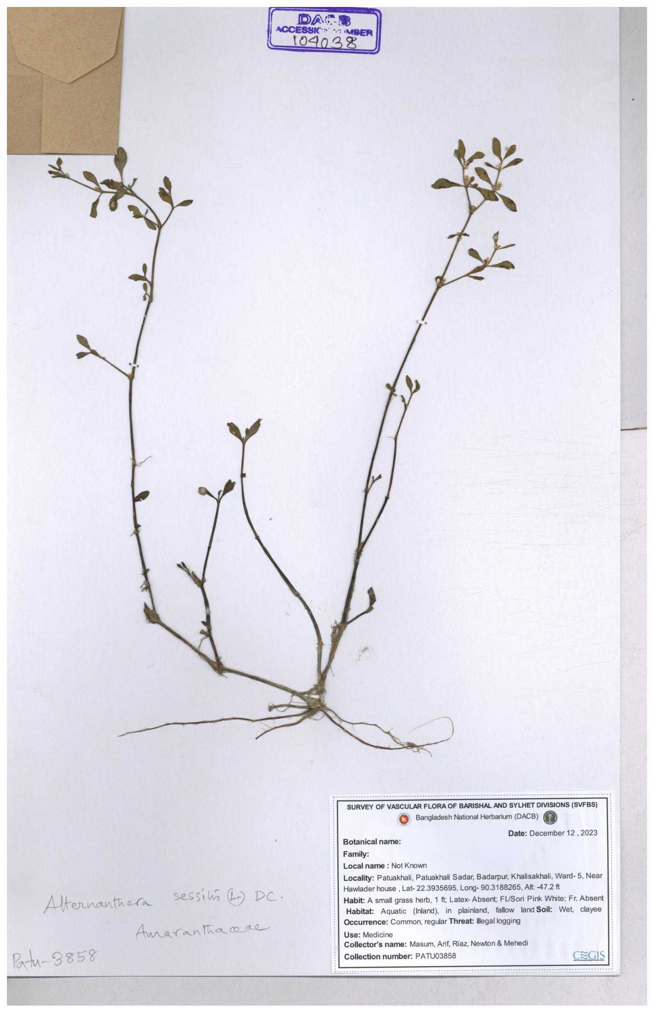 | 80879 | Amaranthaceae | Amaranthus viridis L. | Dr. M. Sultana | DMS-3628 24-03-2021 |