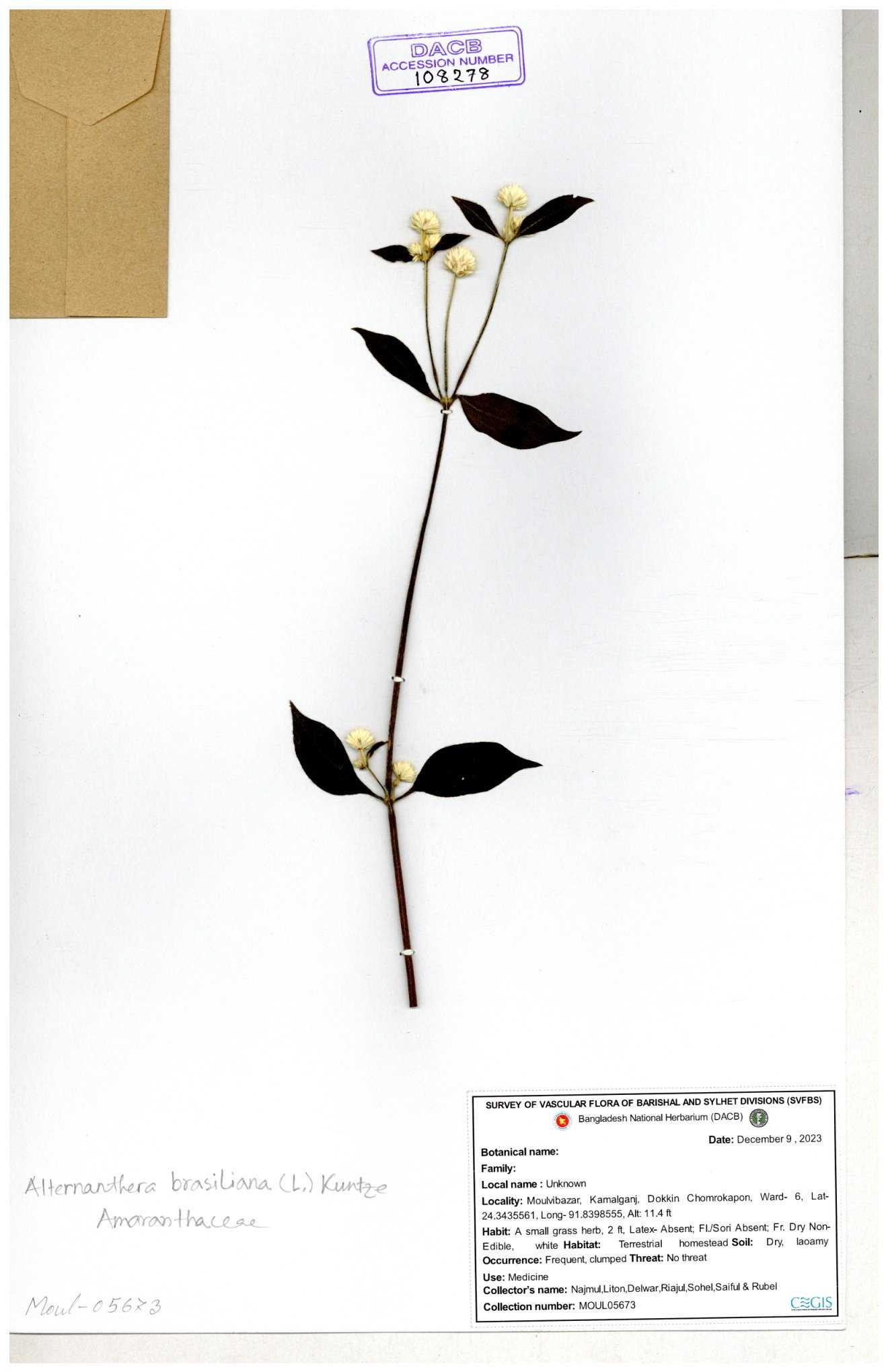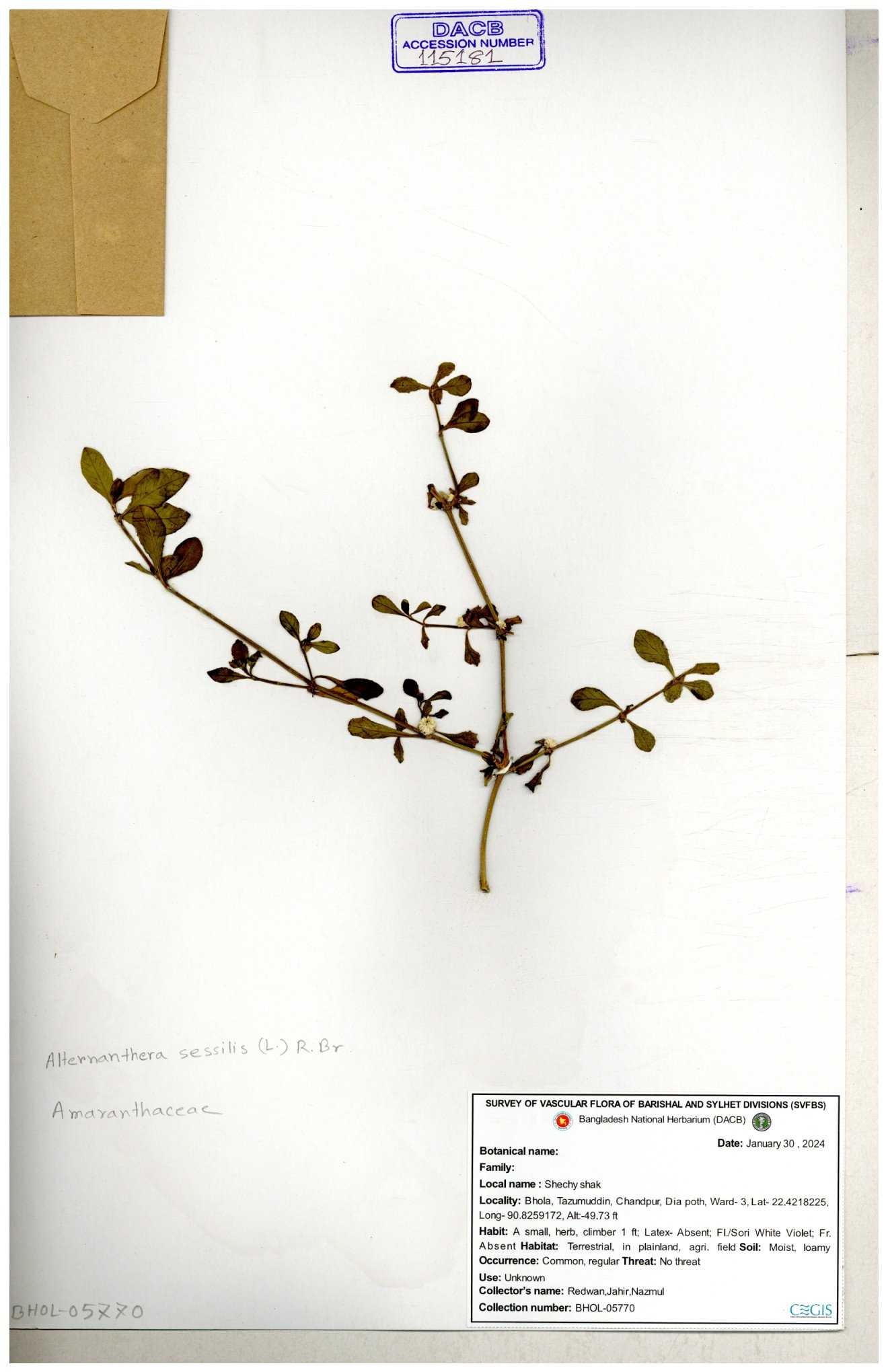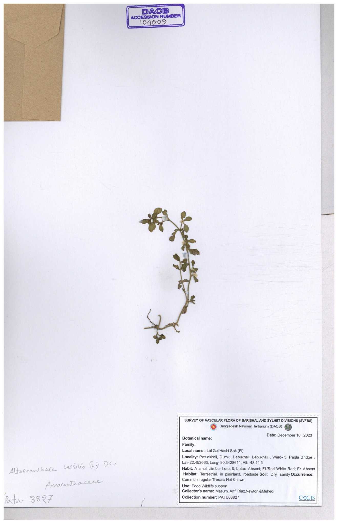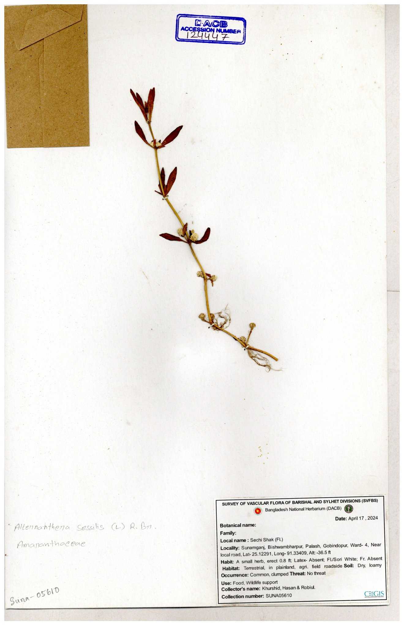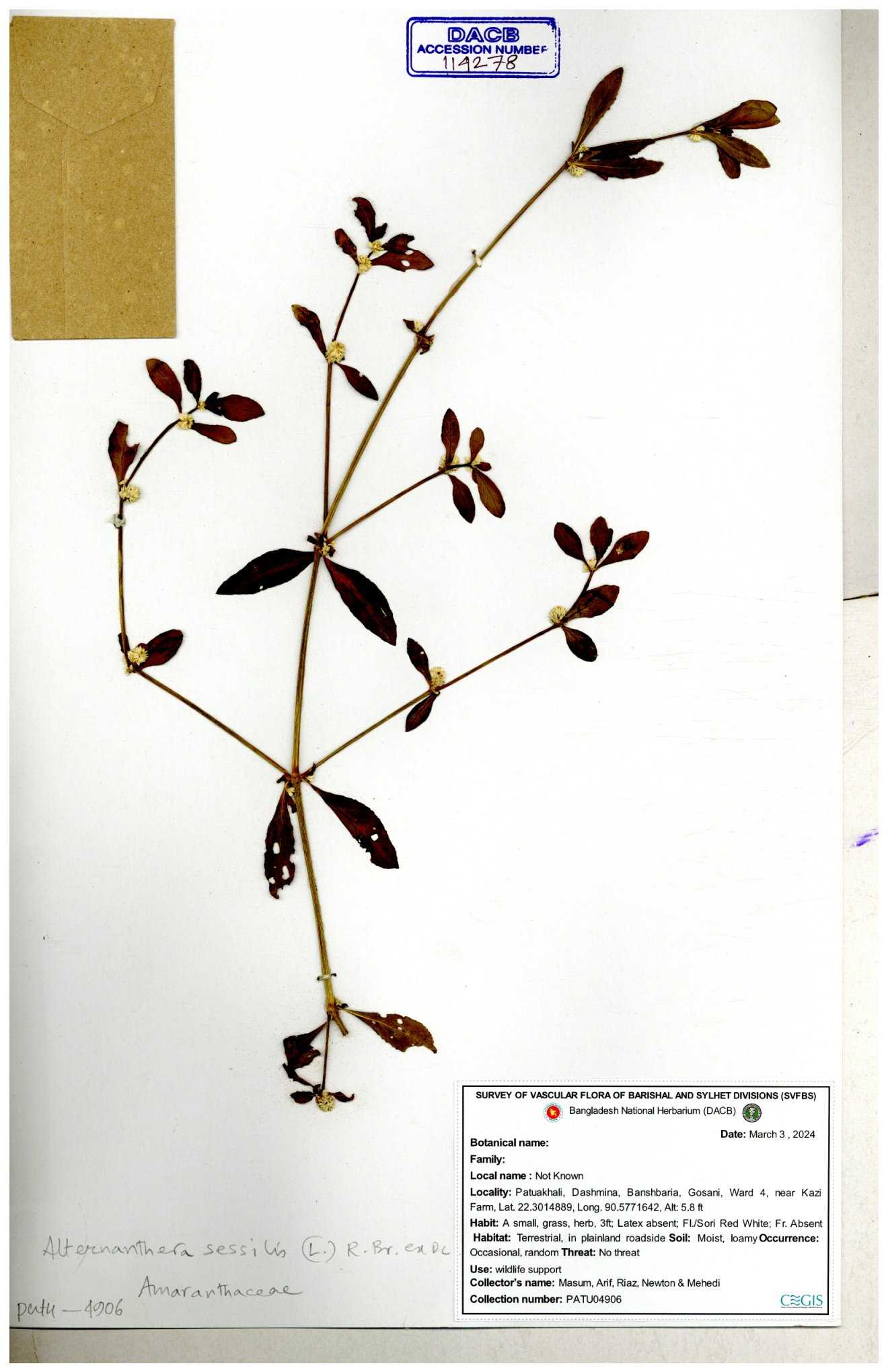 | 80879 | Amaranthaceae | Amaranthus viridis L. | Dr. M. Sultana | DMS-3628 24-03-2021 |
