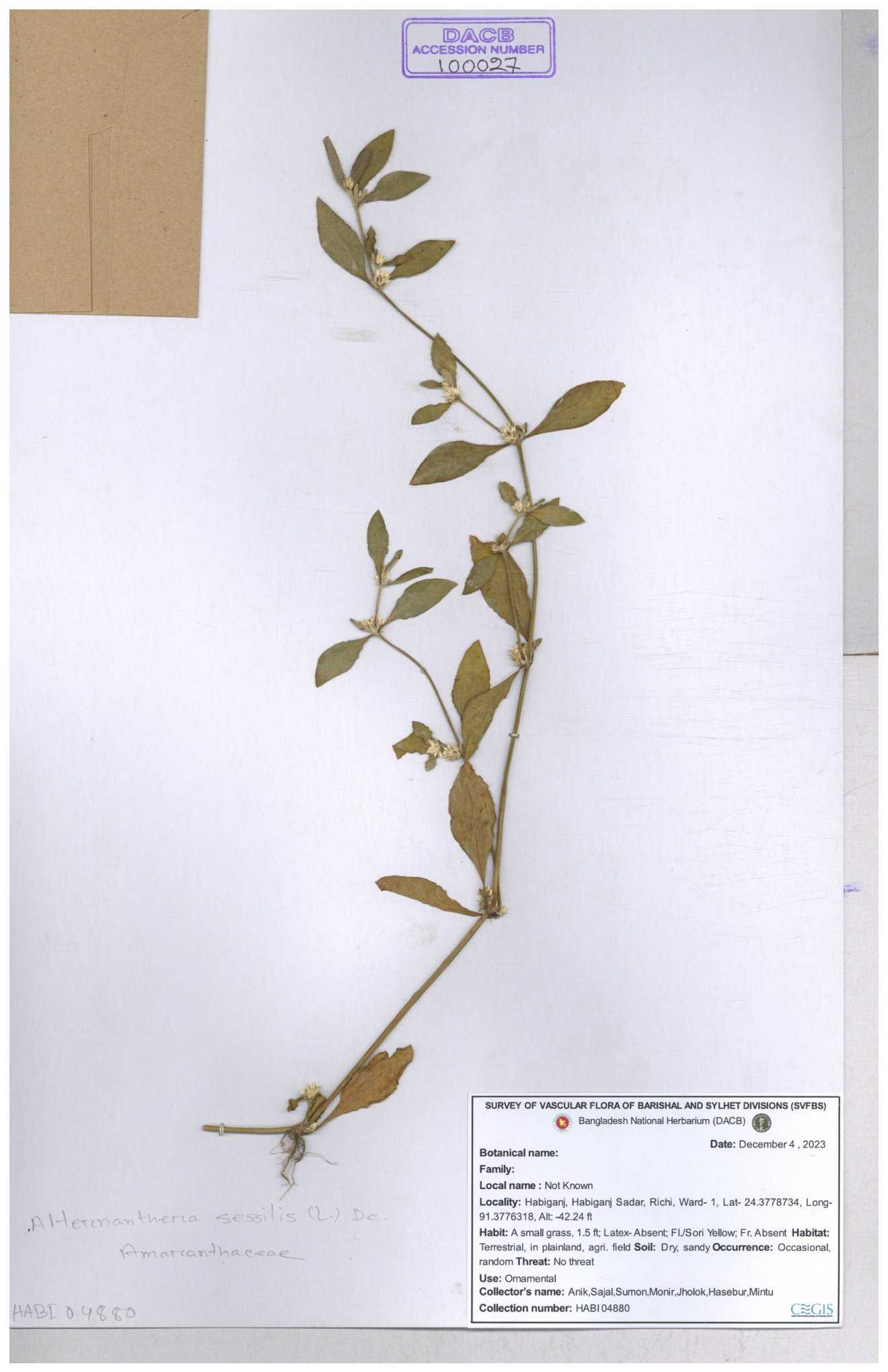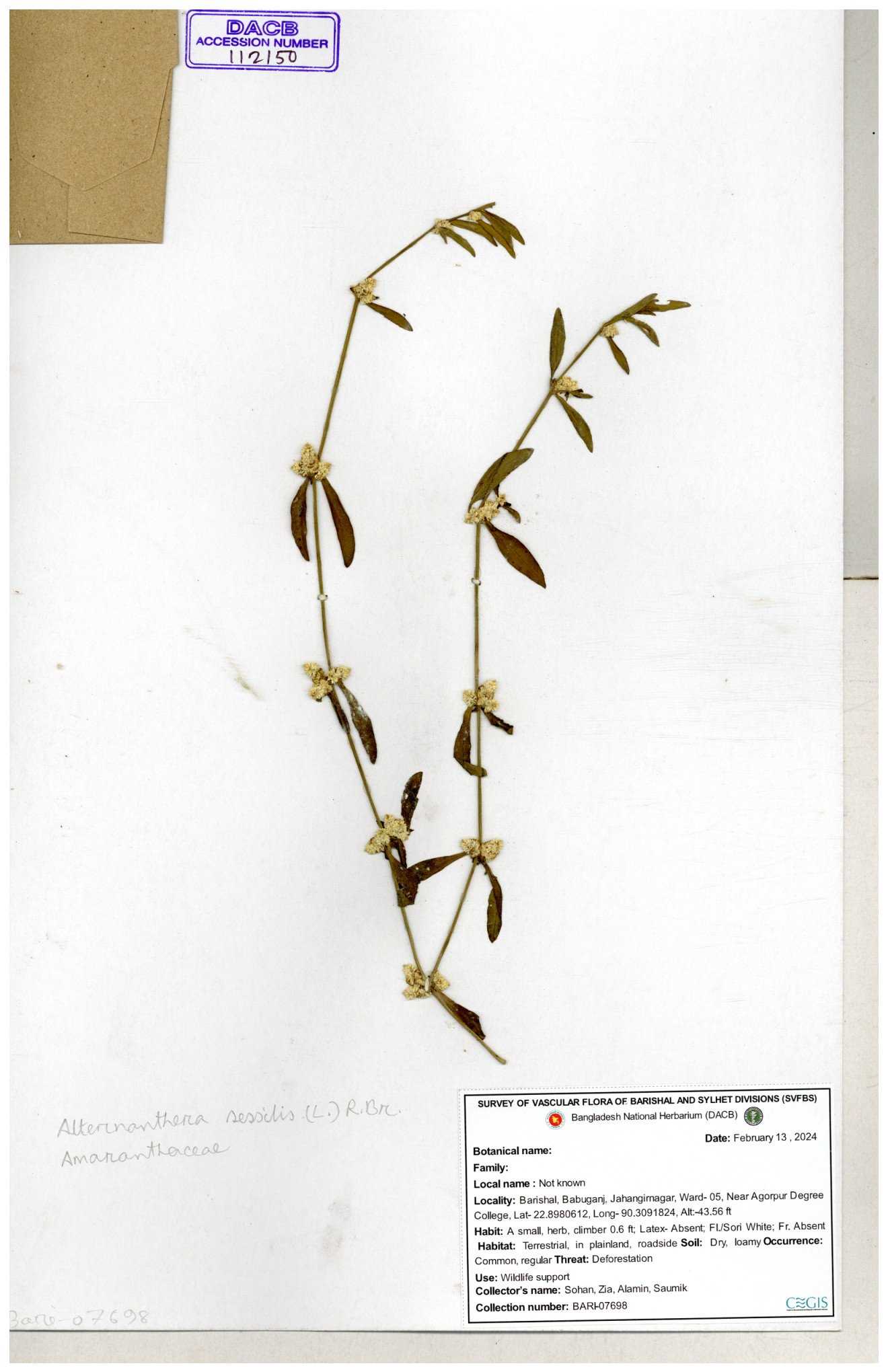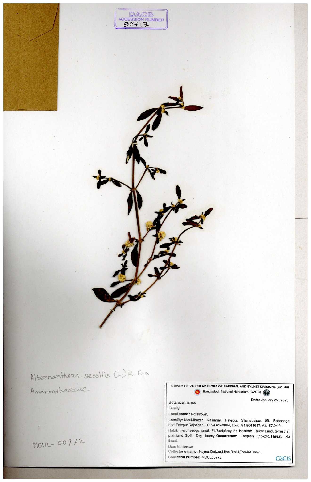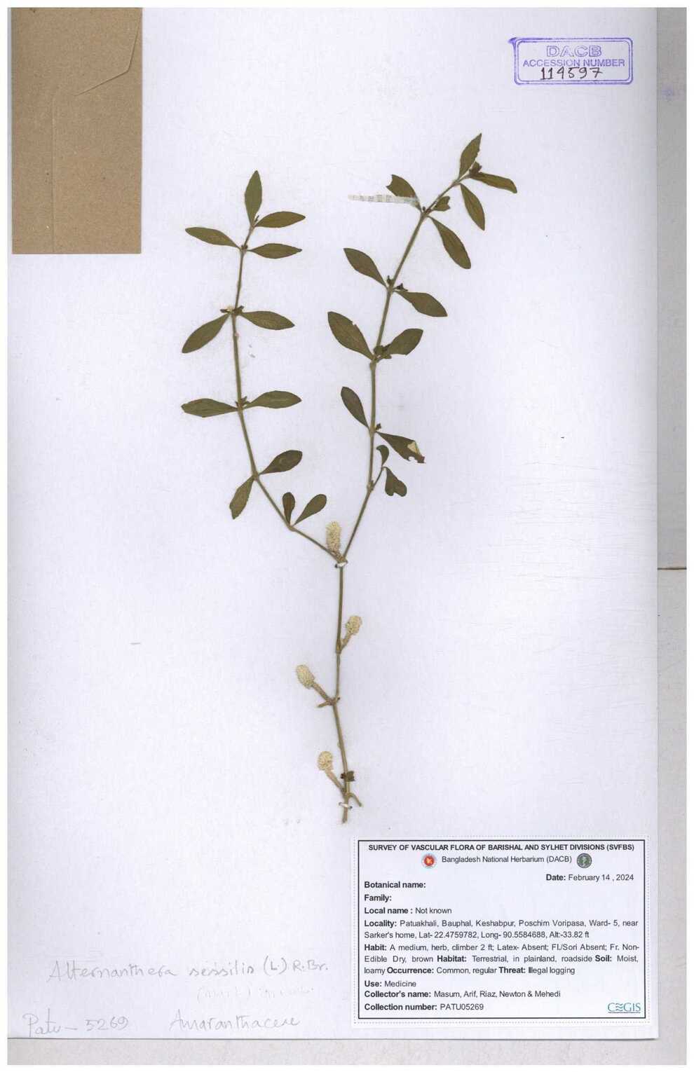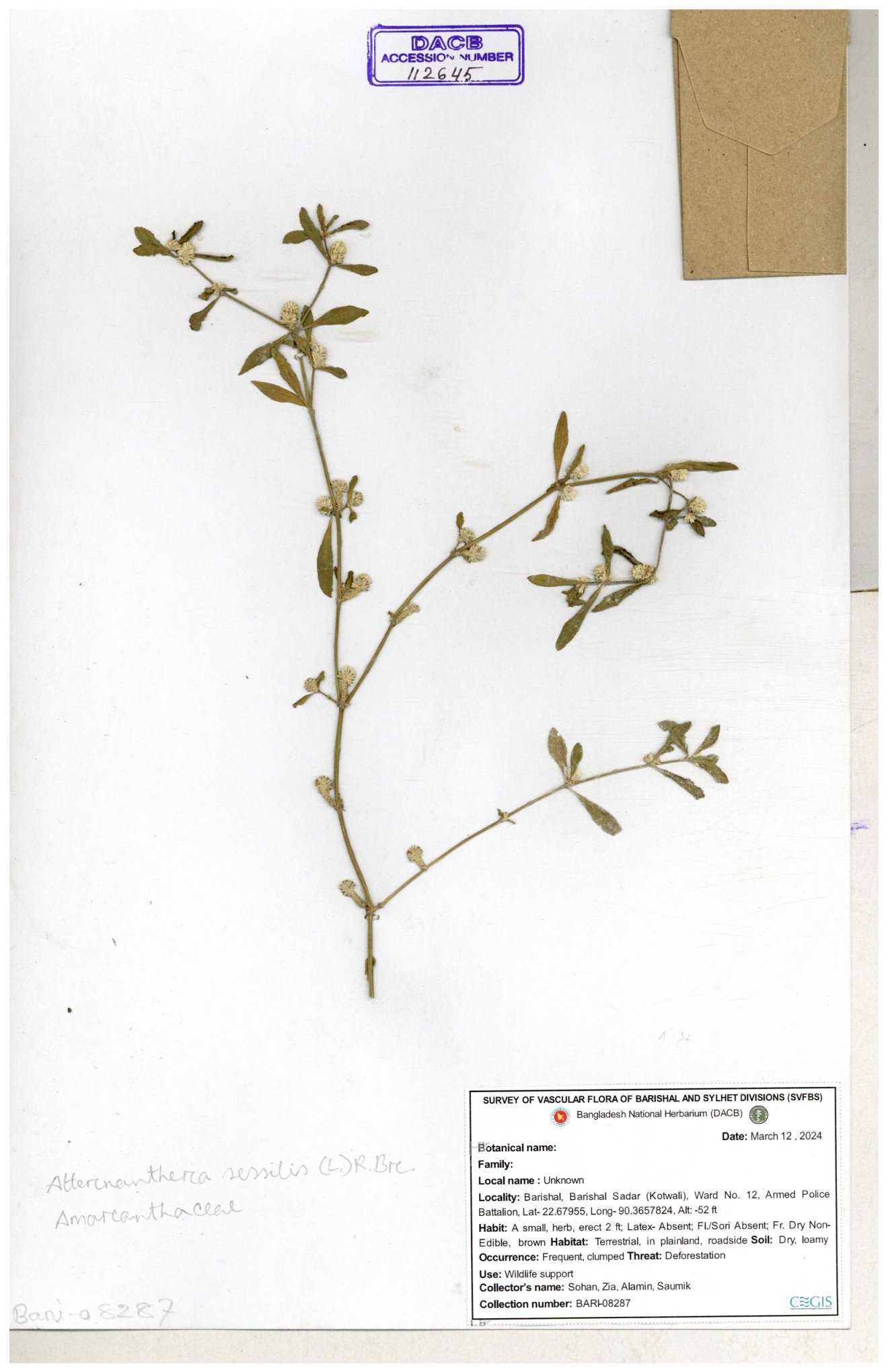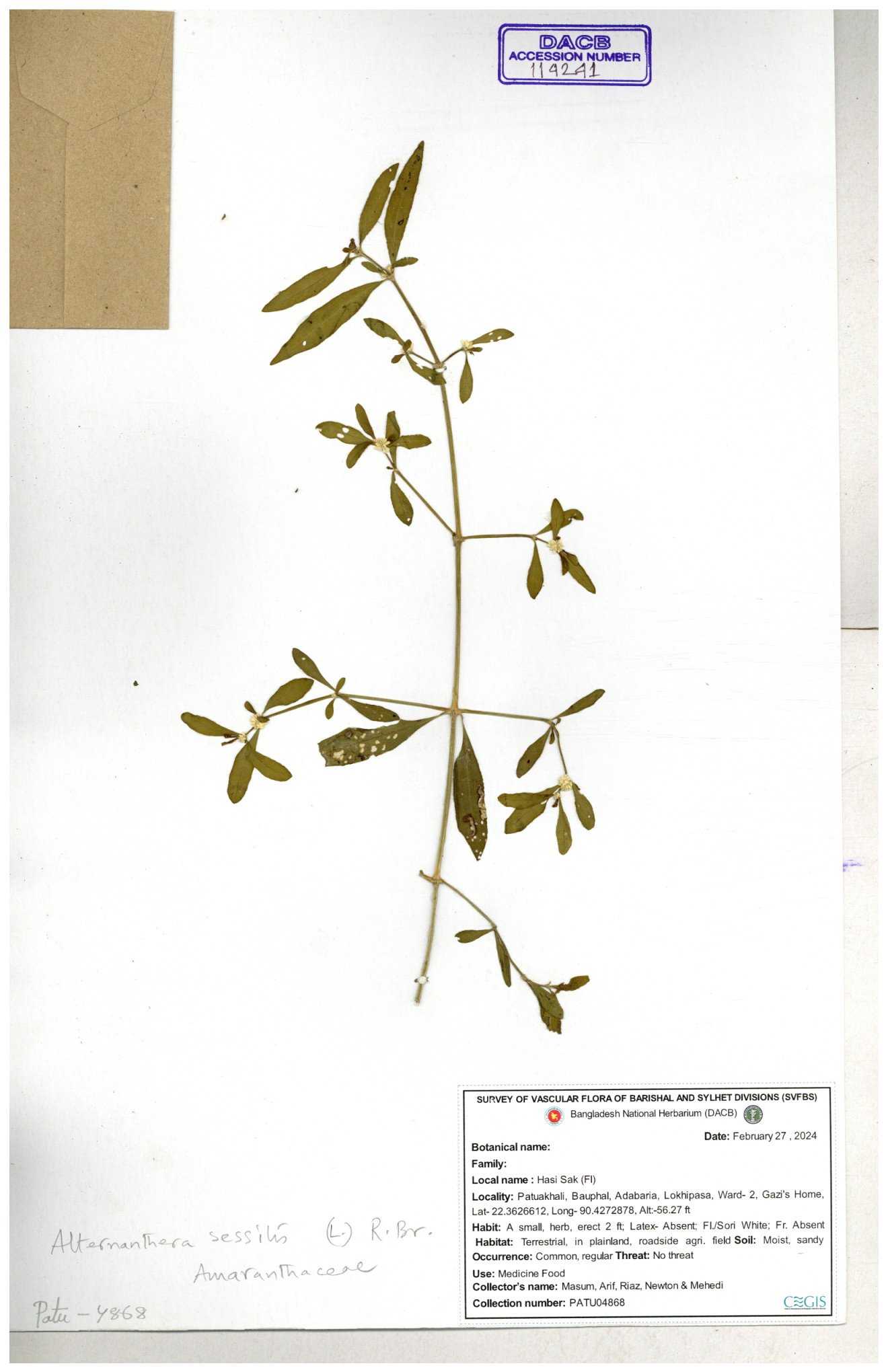 | 80879 | Amaranthaceae | Amaranthus viridis L. | Dr. M. Sultana | DMS-3628 24-03-2021 |