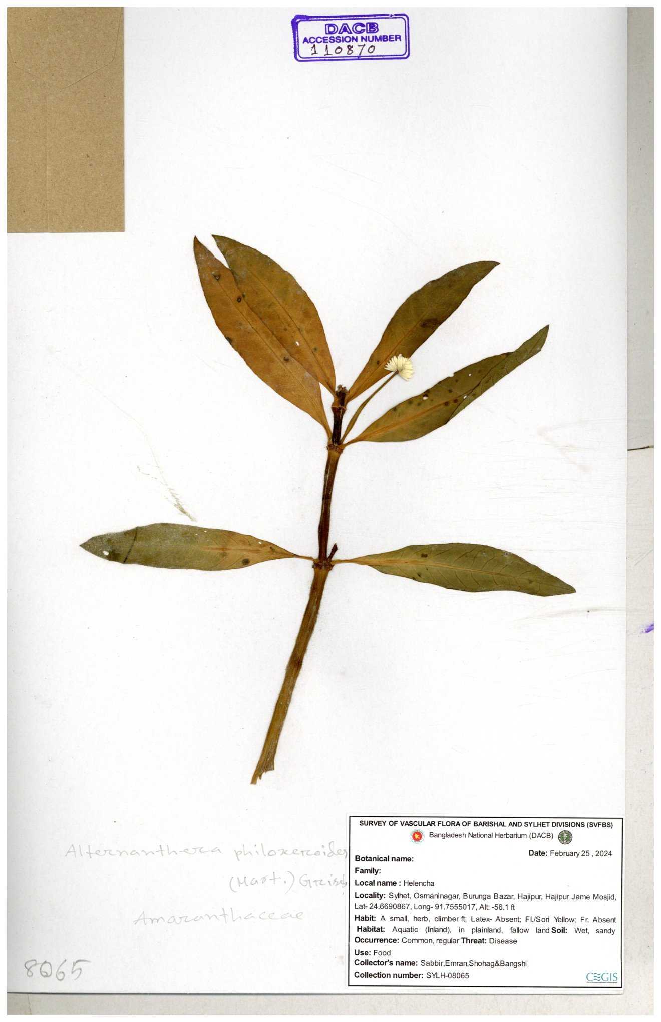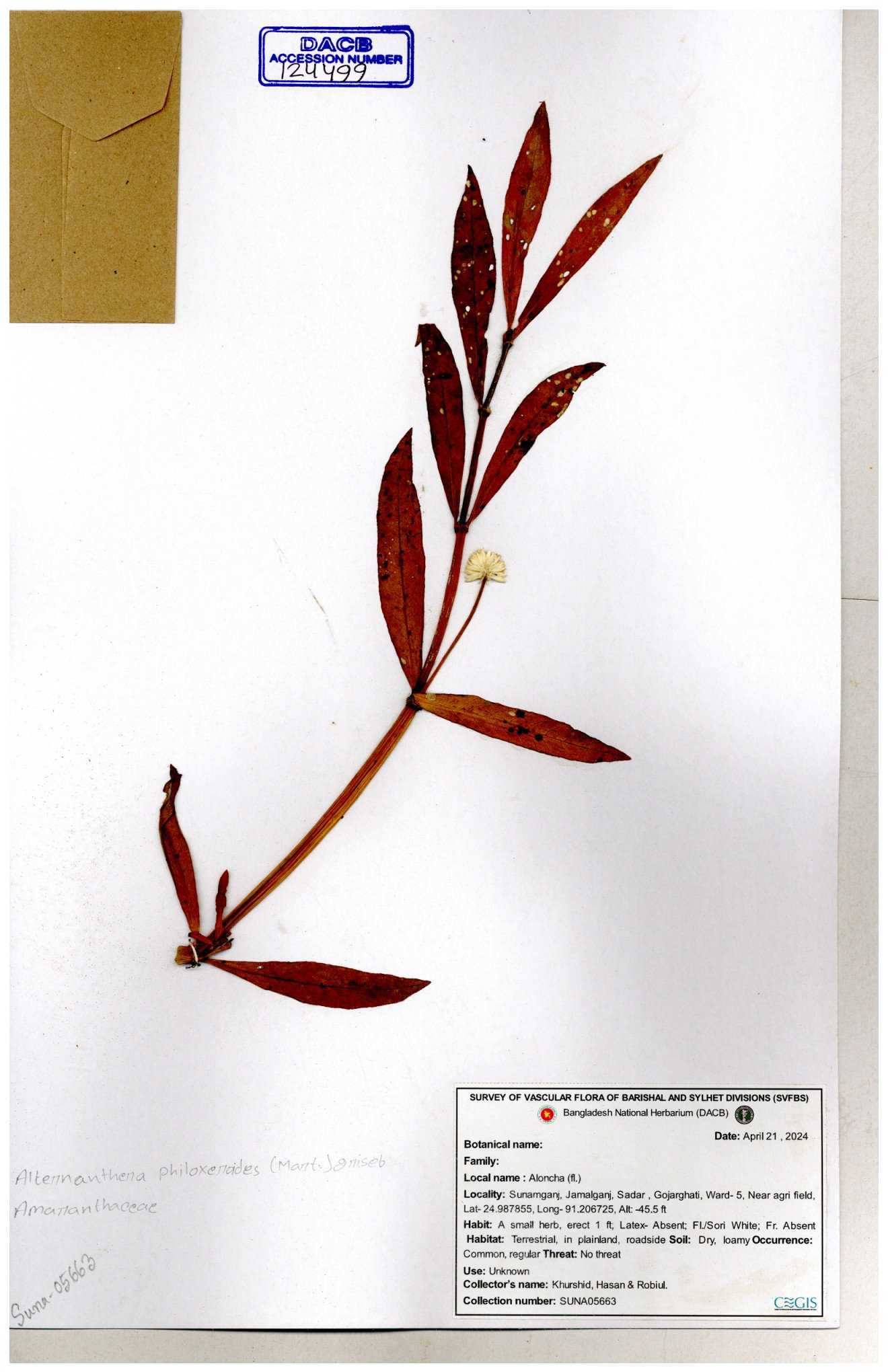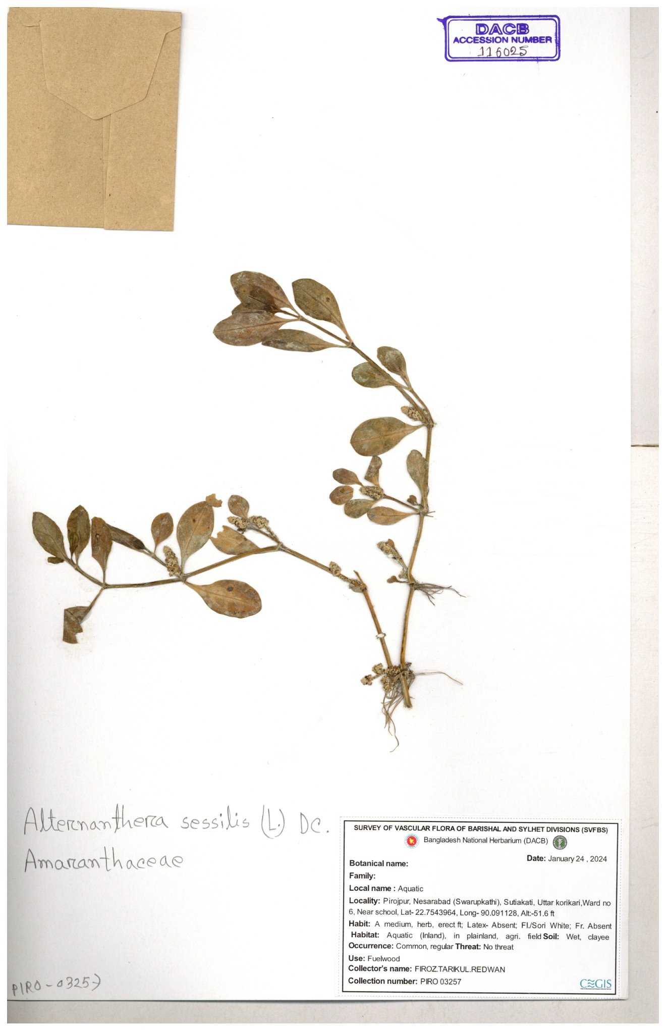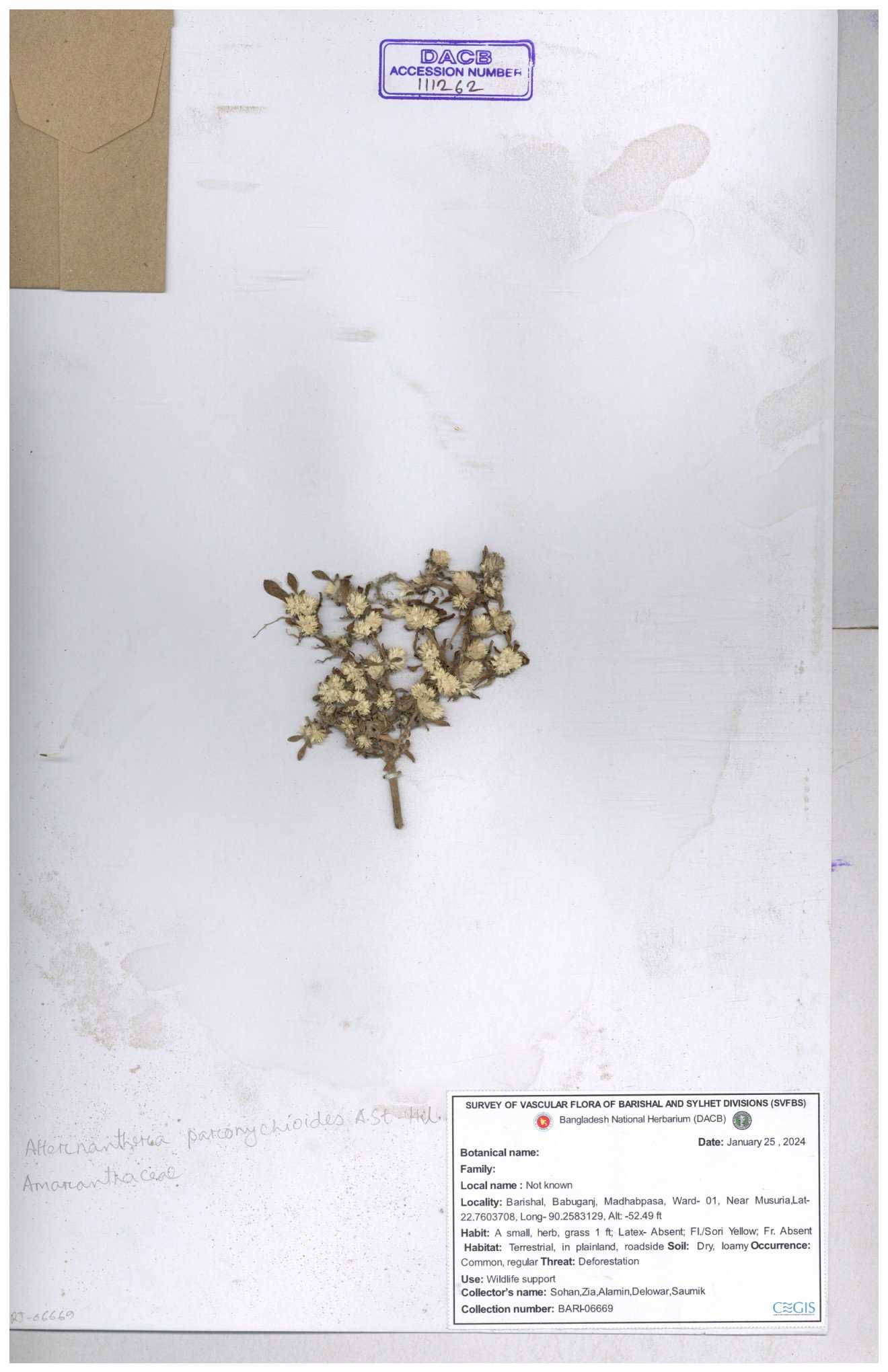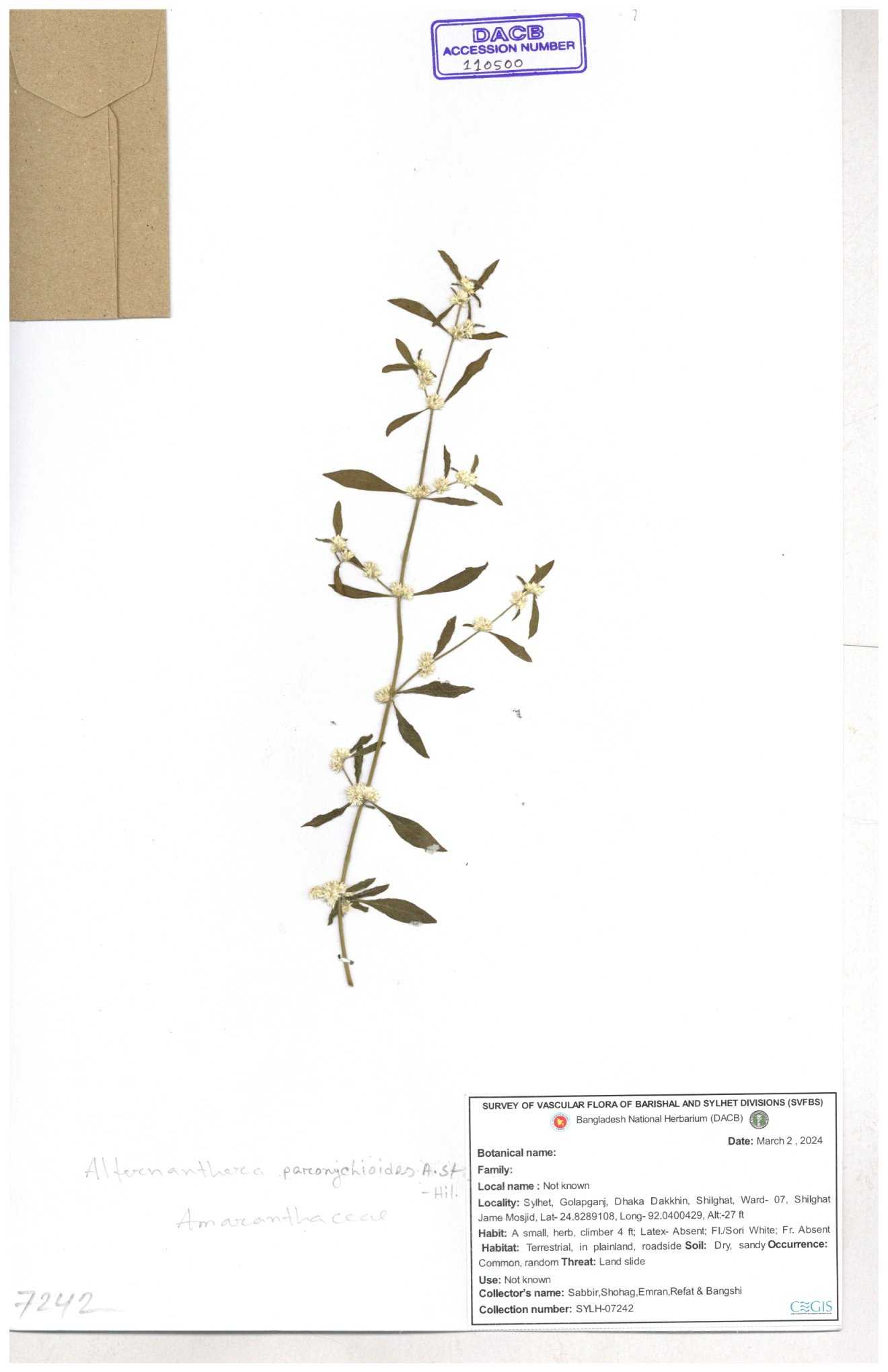 | 80879 | Amaranthaceae | Amaranthus viridis L. | Dr. M. Sultana | DMS-3628 24-03-2021 |