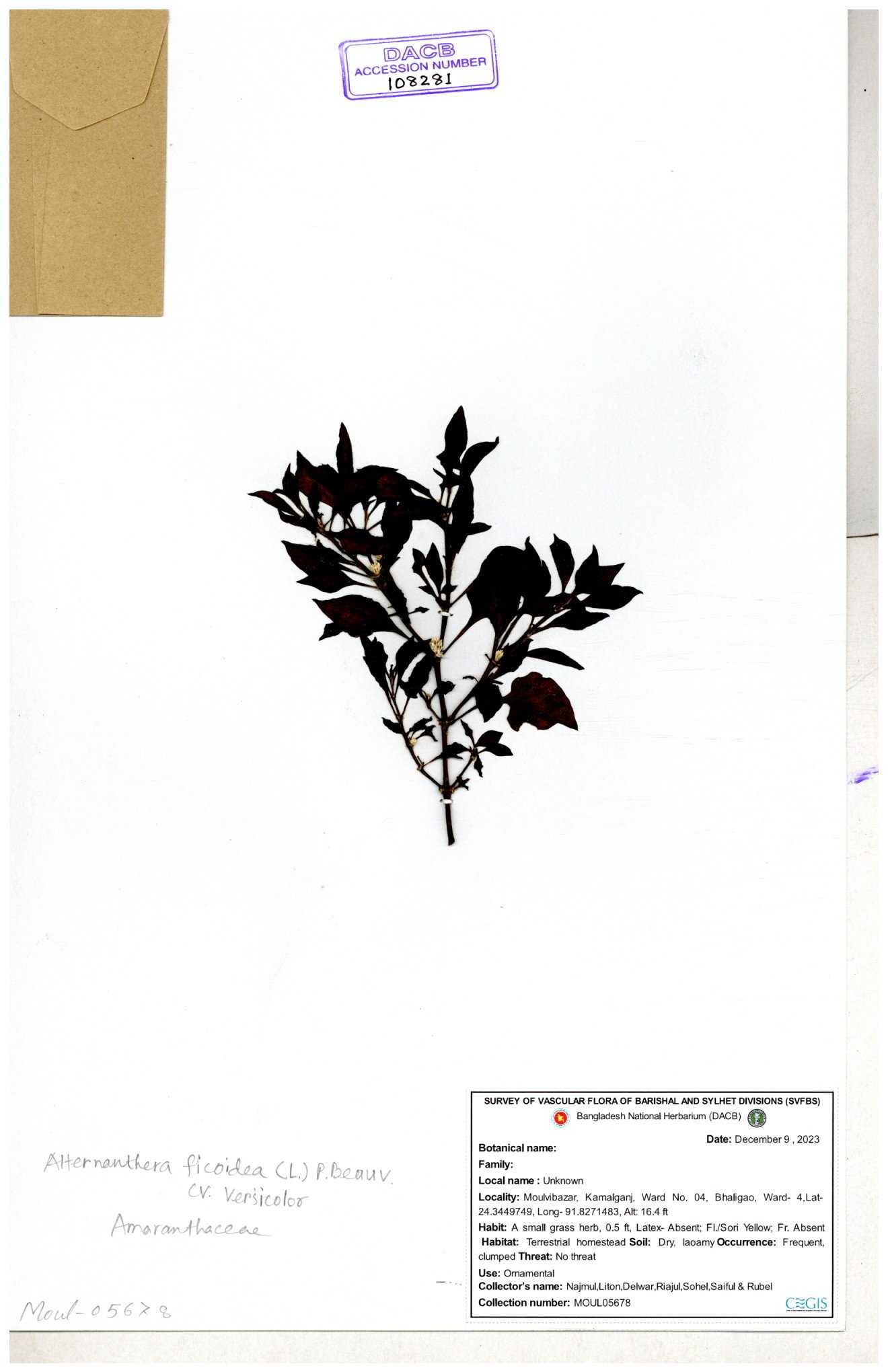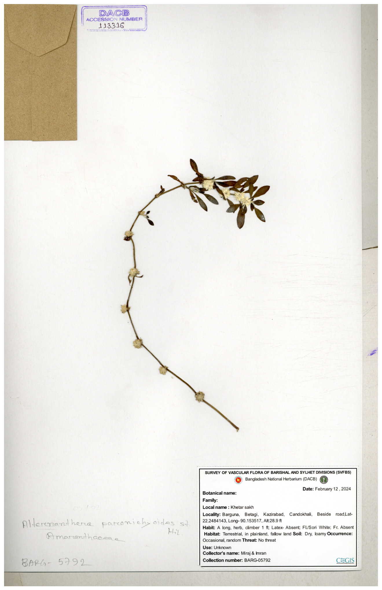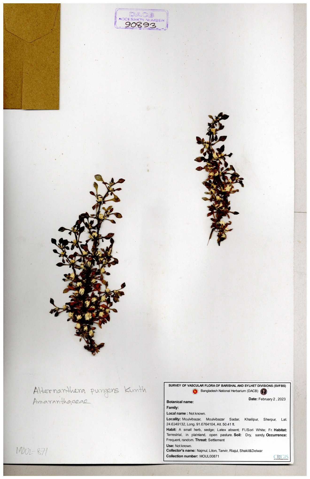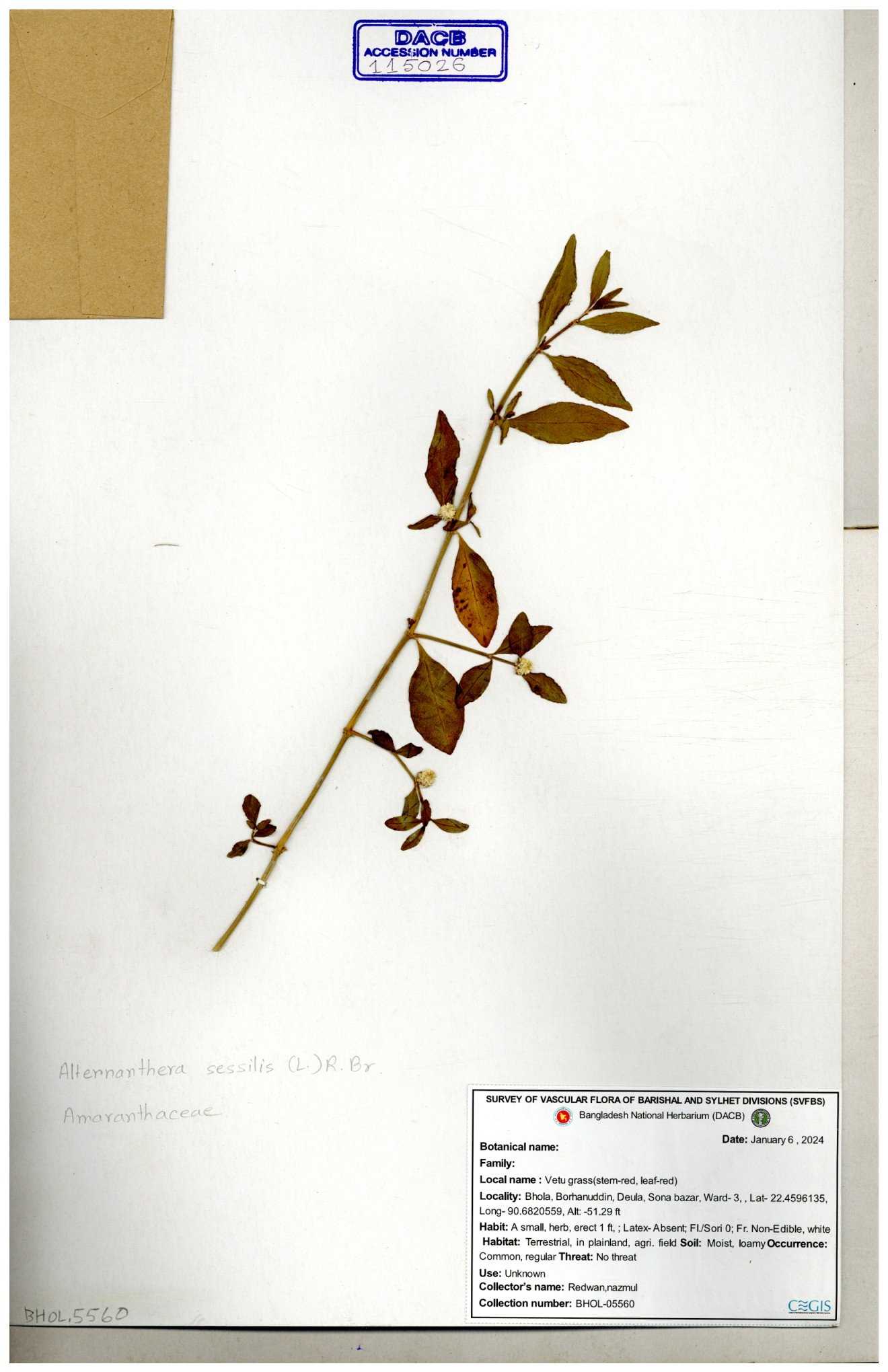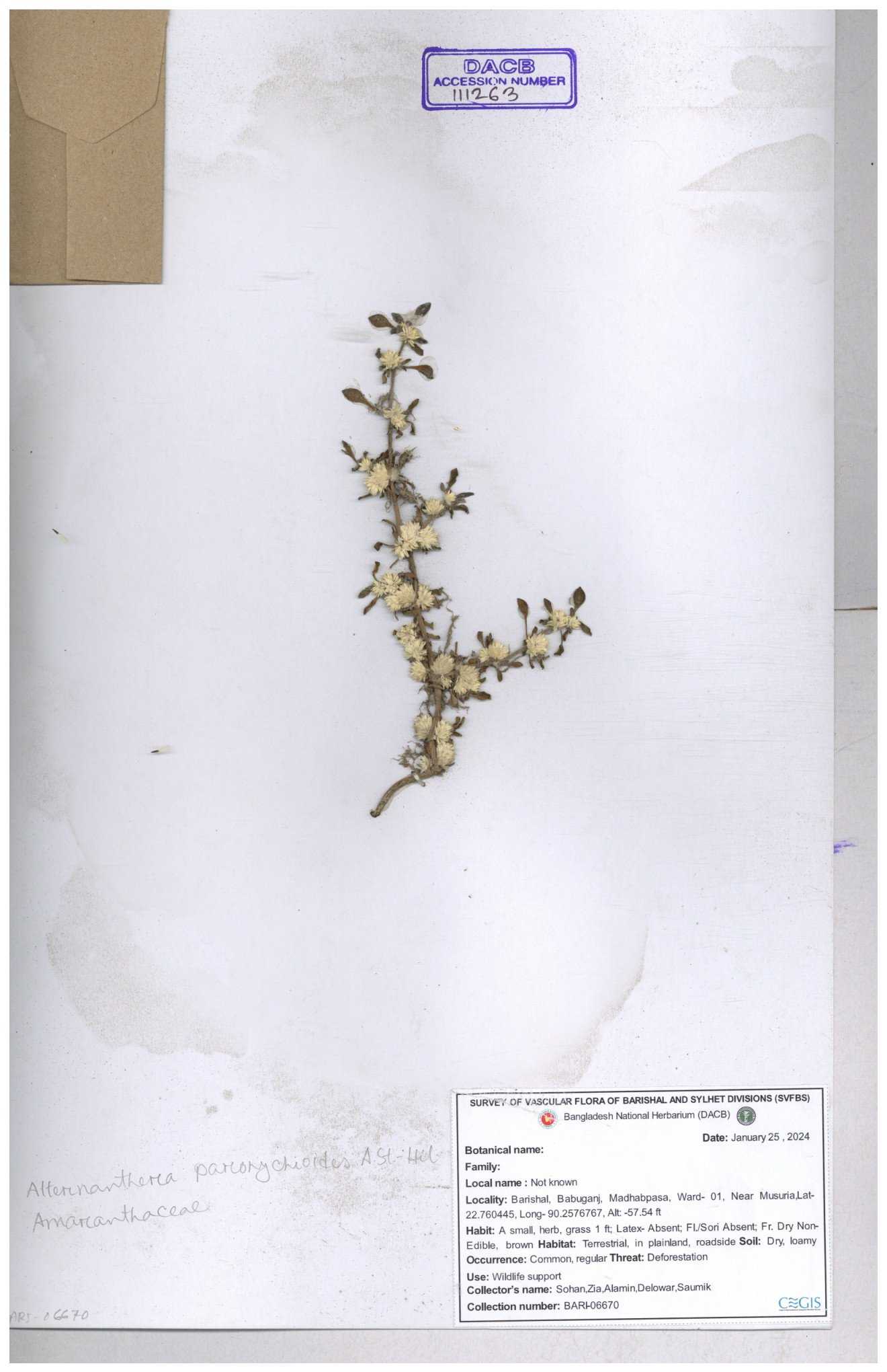| 80879 | Amaranthaceae | Amaranthus viridis L. | Dr. M. Sultana | DMS-3628 24-03-2021 |