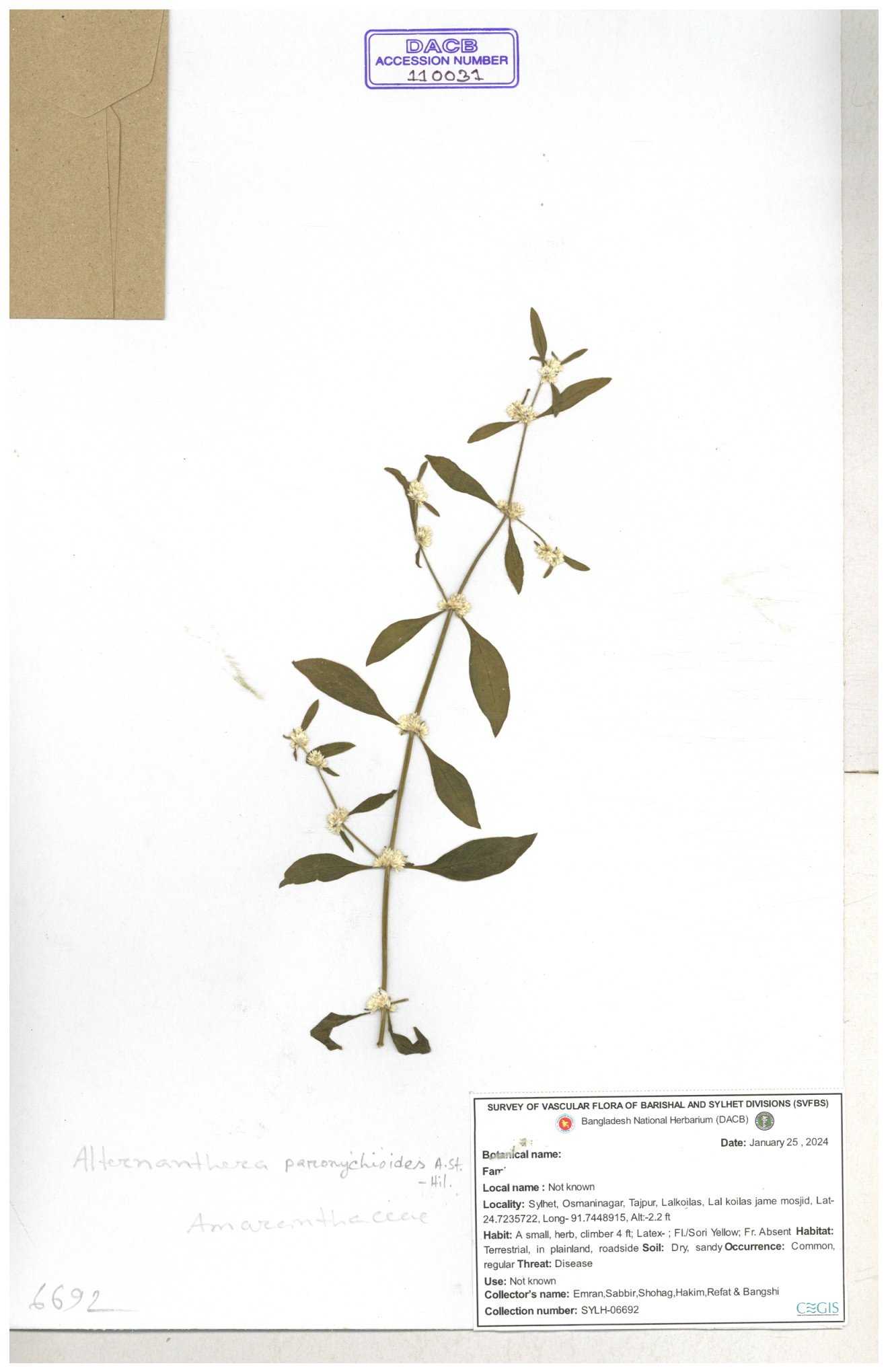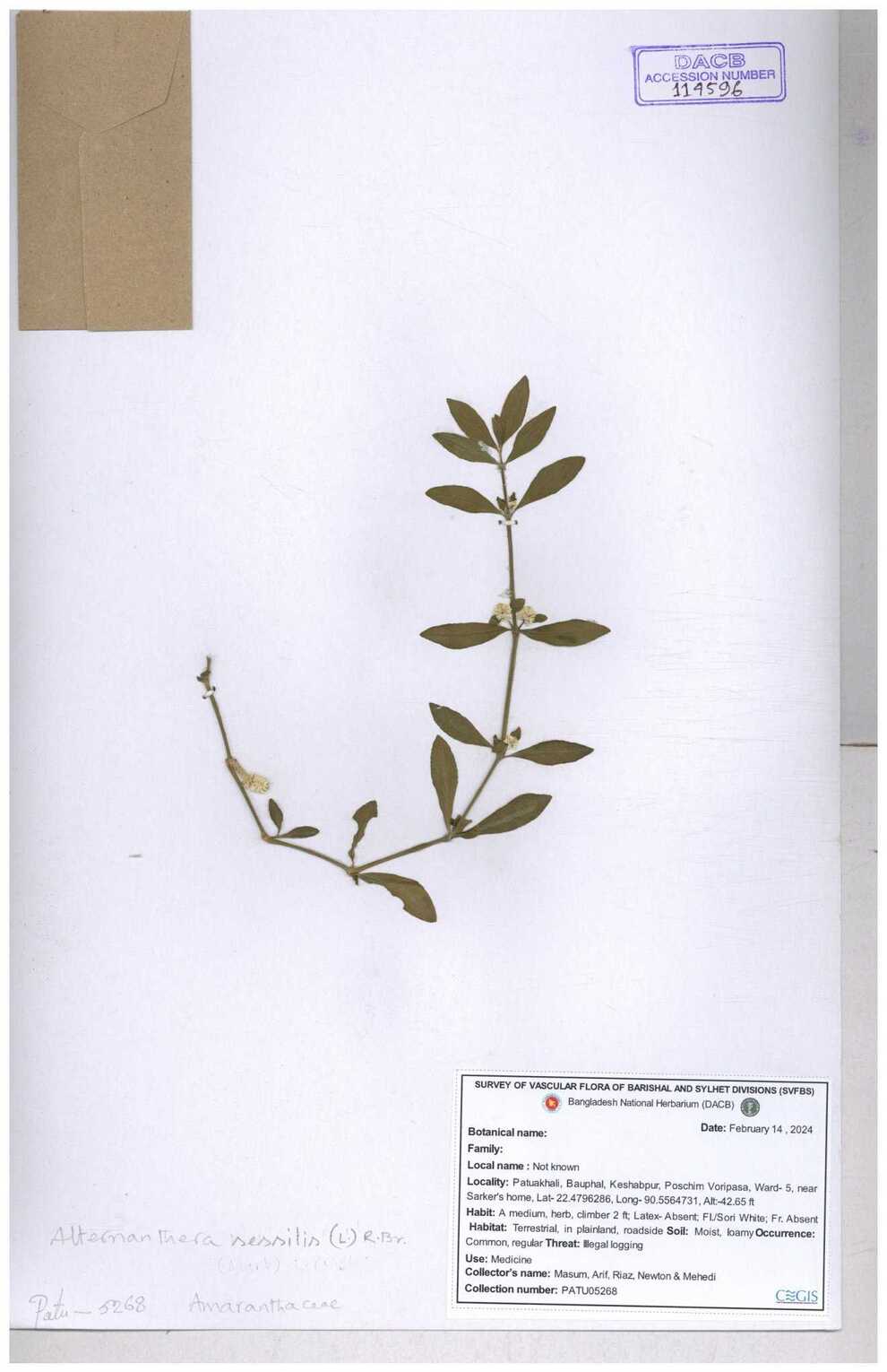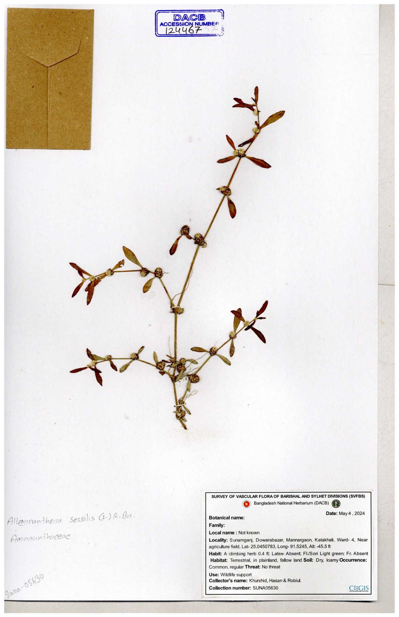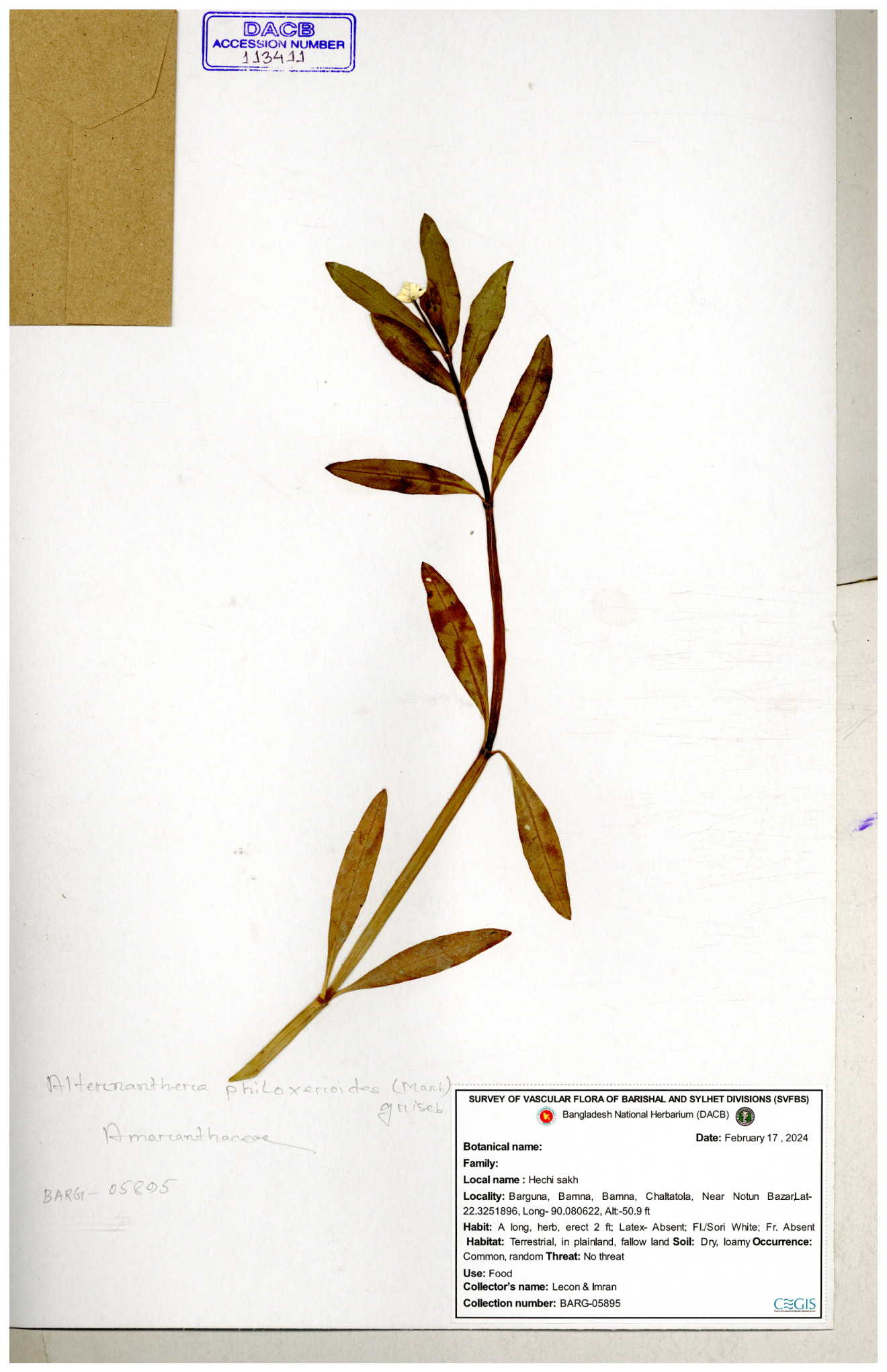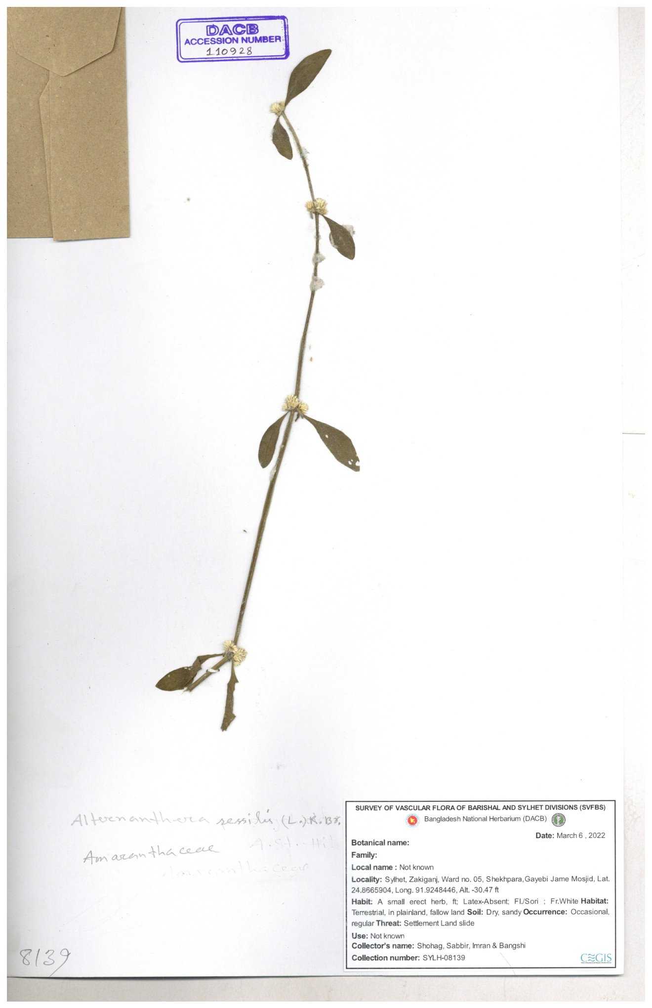 | 80879 | Amaranthaceae | Amaranthus viridis L. | Dr. M. Sultana | DMS-3628 24-03-2021 |