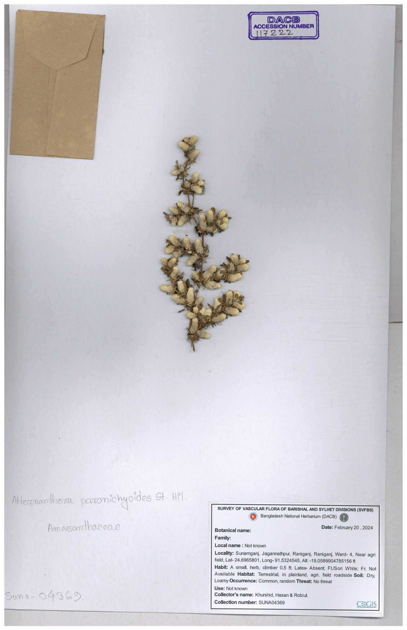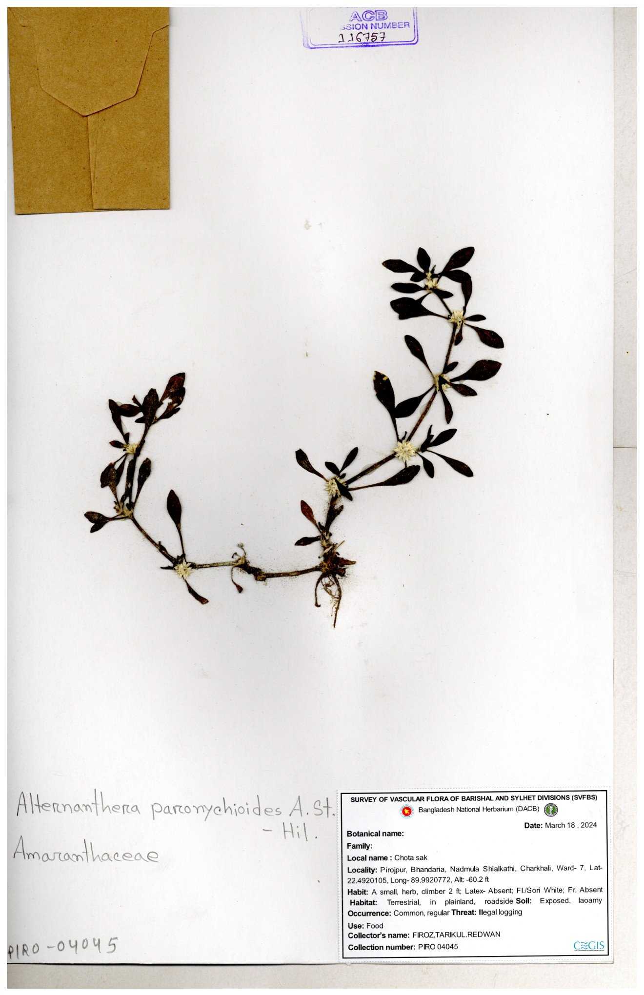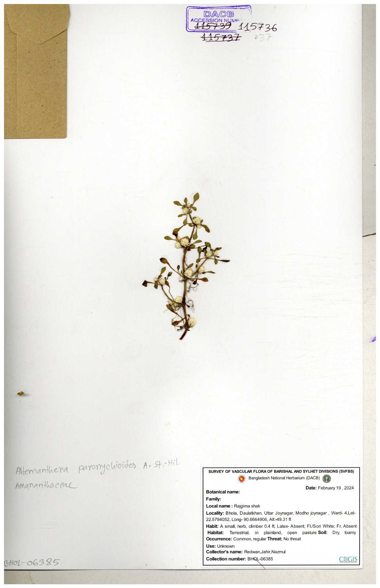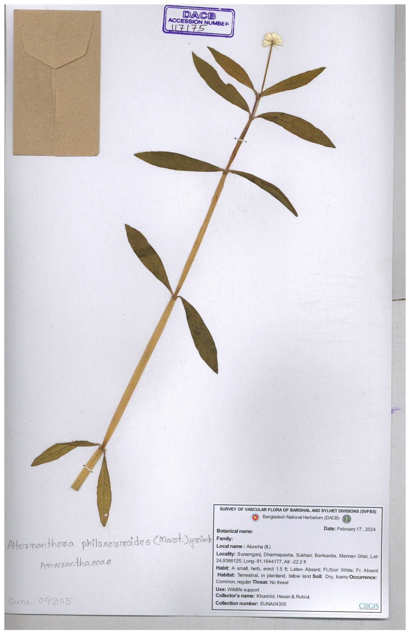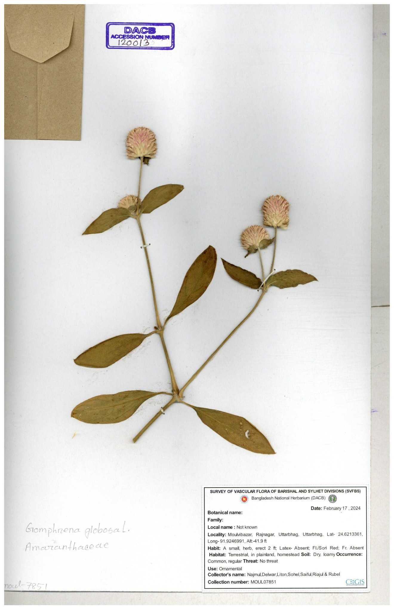 | 80879 | Amaranthaceae | Amaranthus viridis L. | Dr. M. Sultana | DMS-3628 24-03-2021 |
