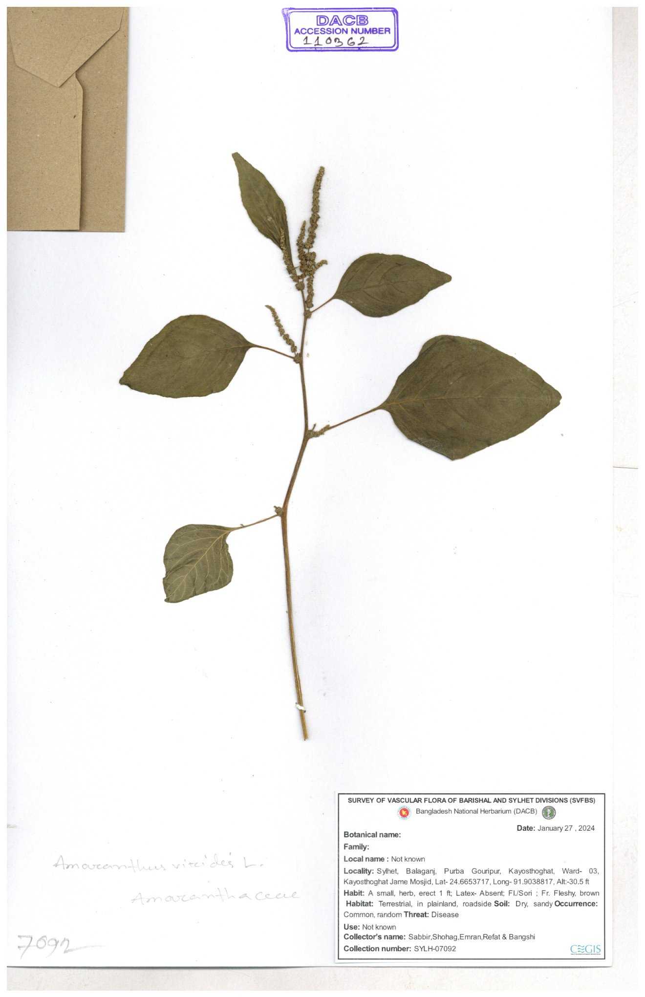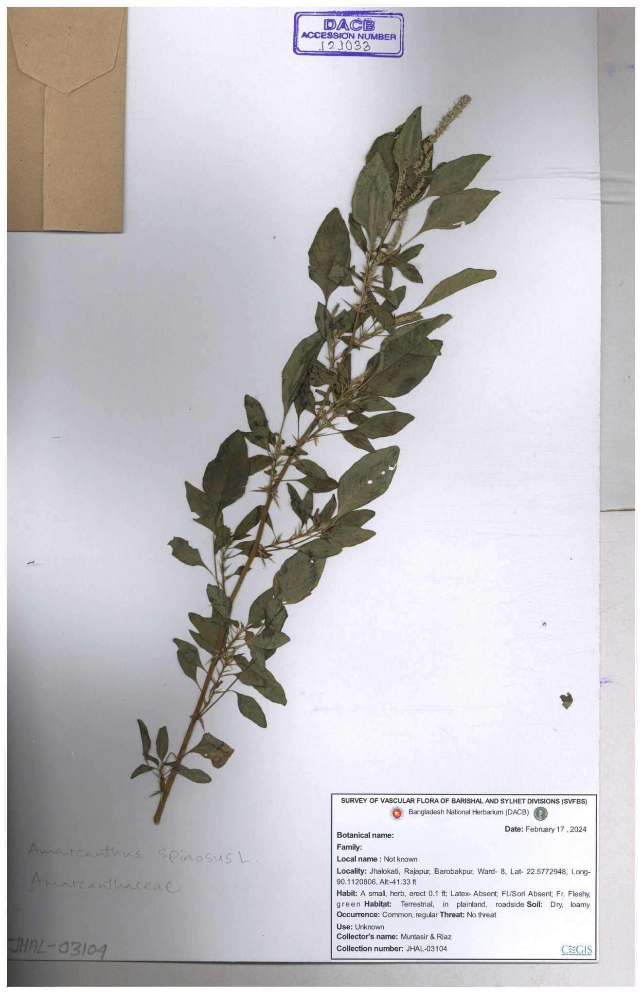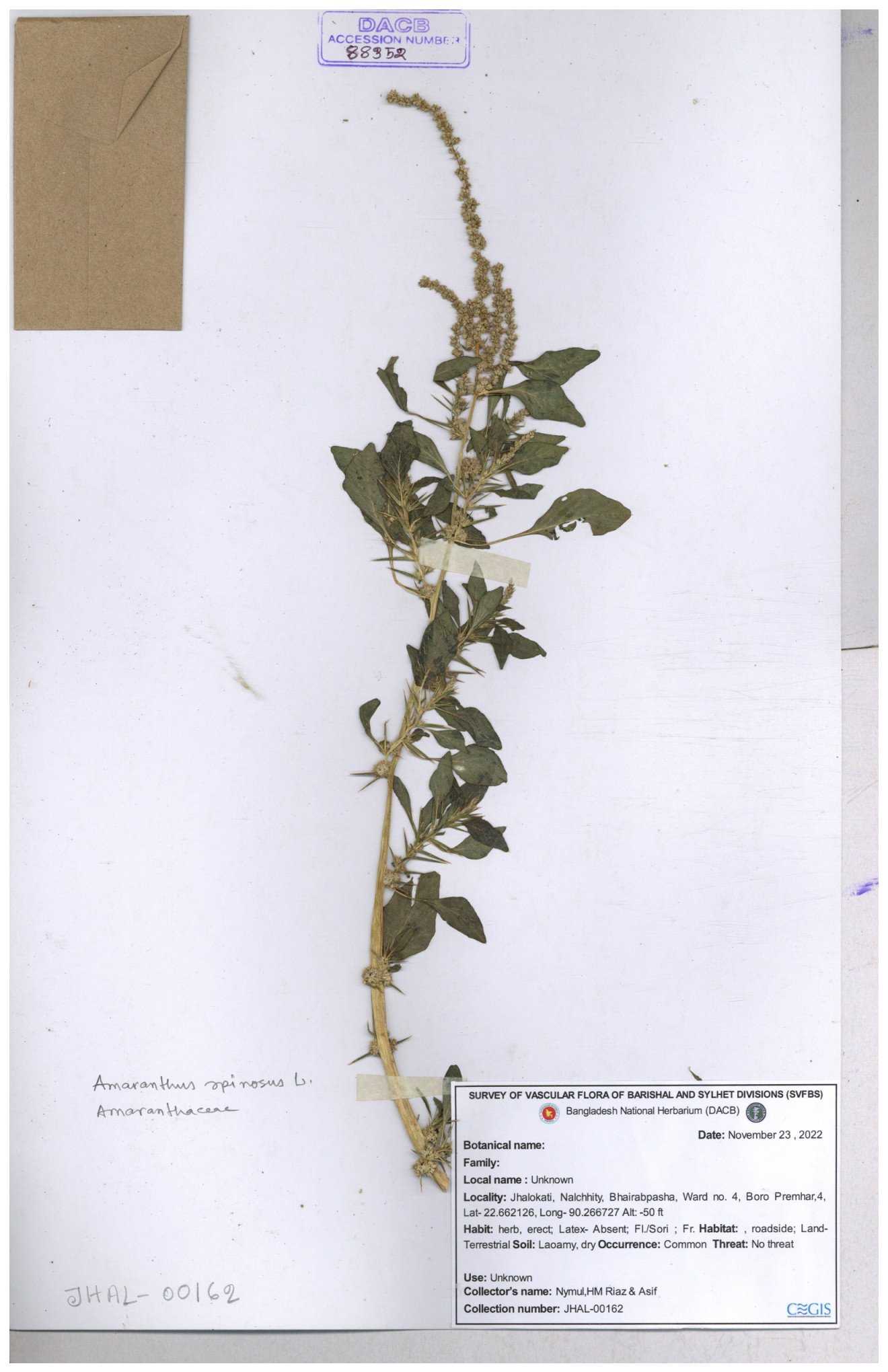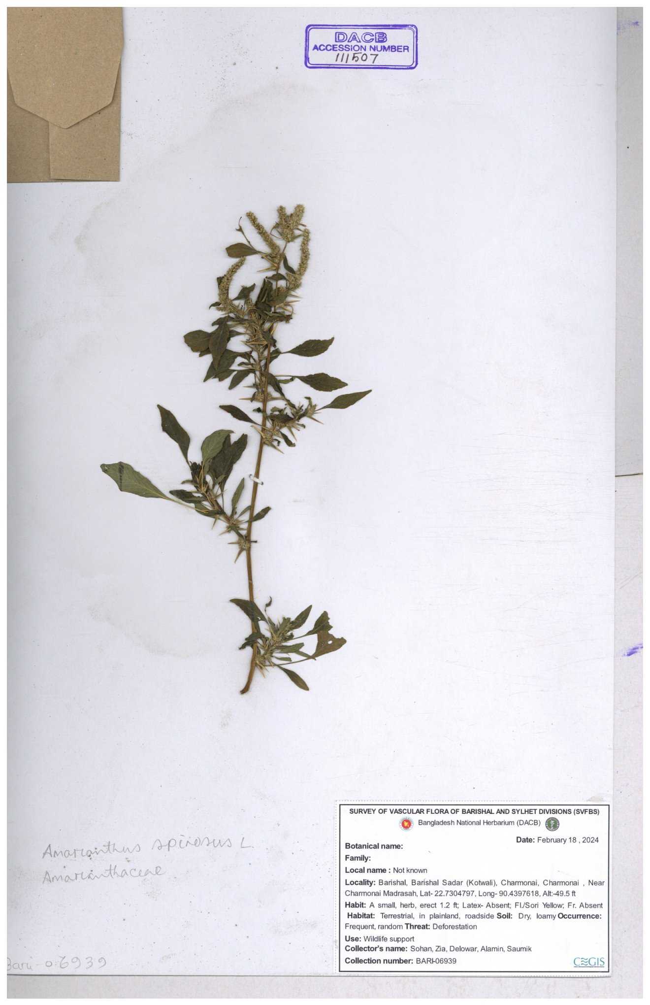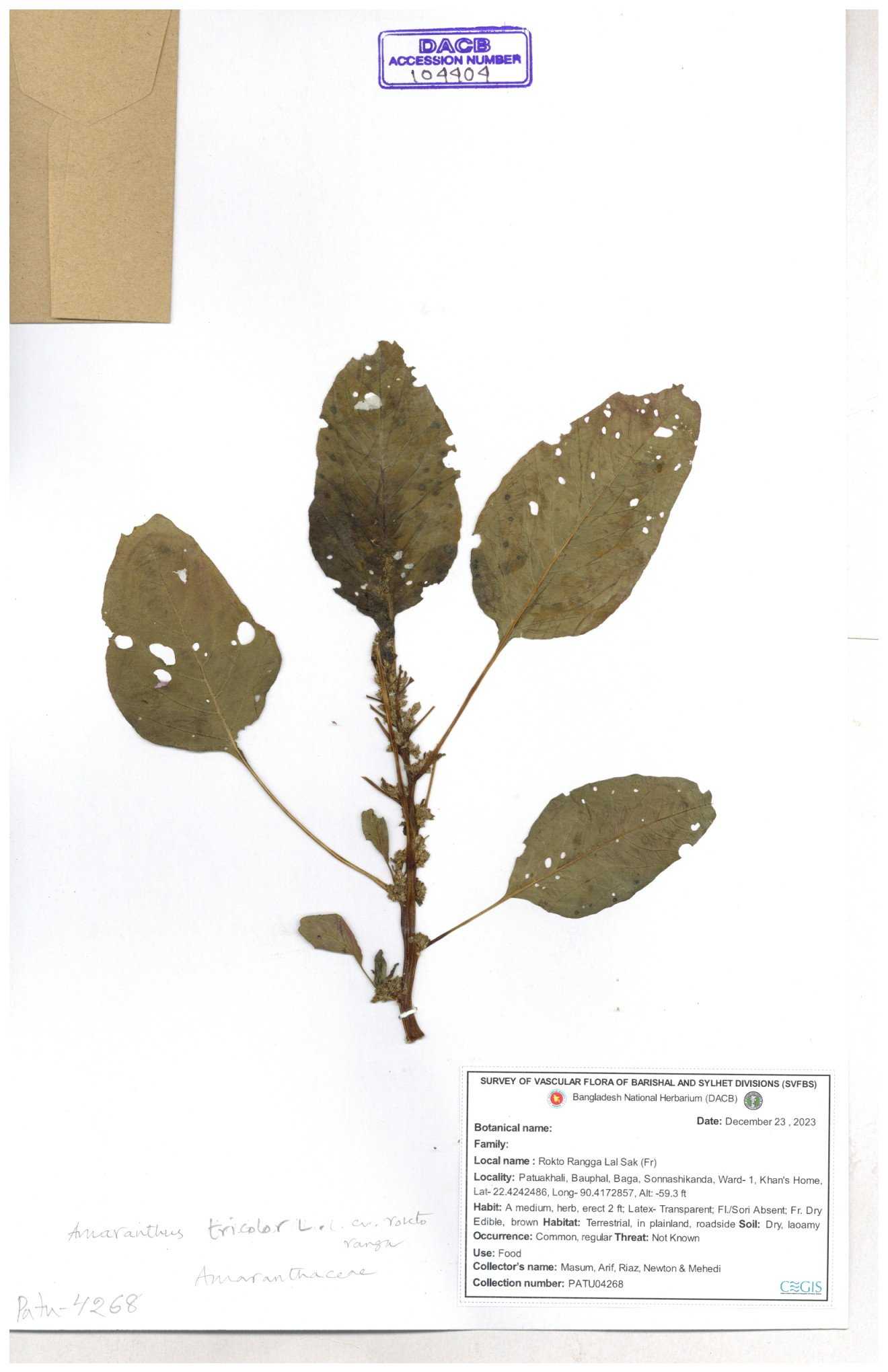 | 64345 | Amaranthaceae | Amaranthus viridis L. | Mominur Rahman, Al amin & Kamrul Islam | JCR-1489 30-11--0001 |