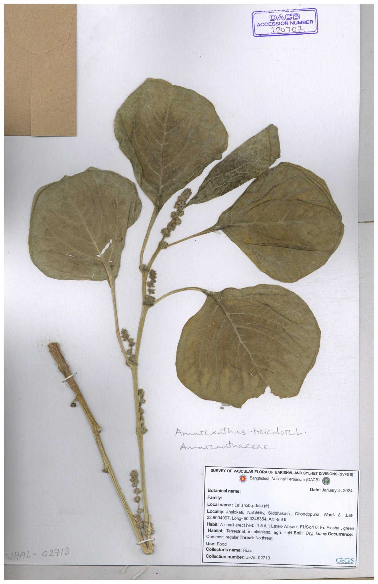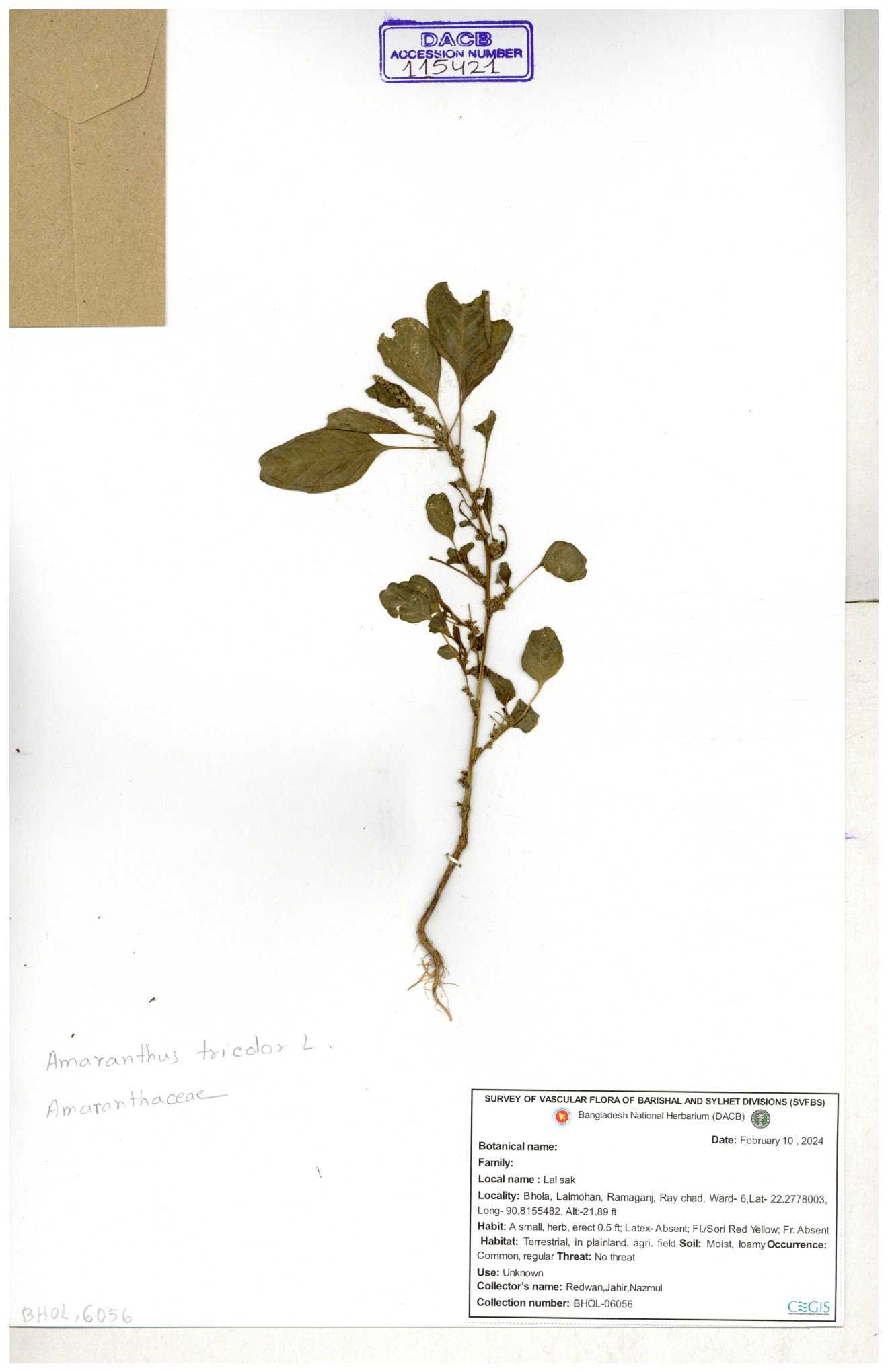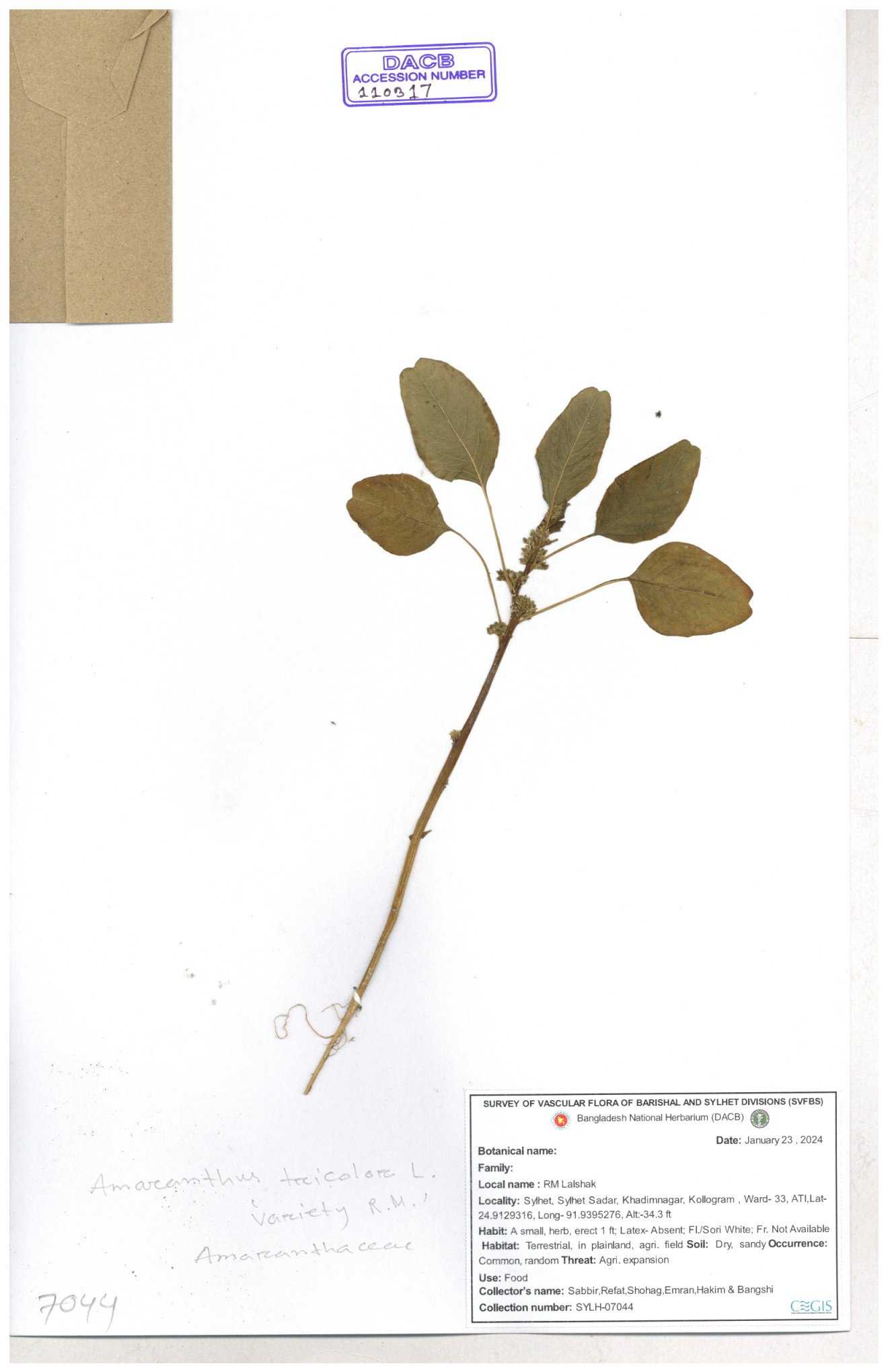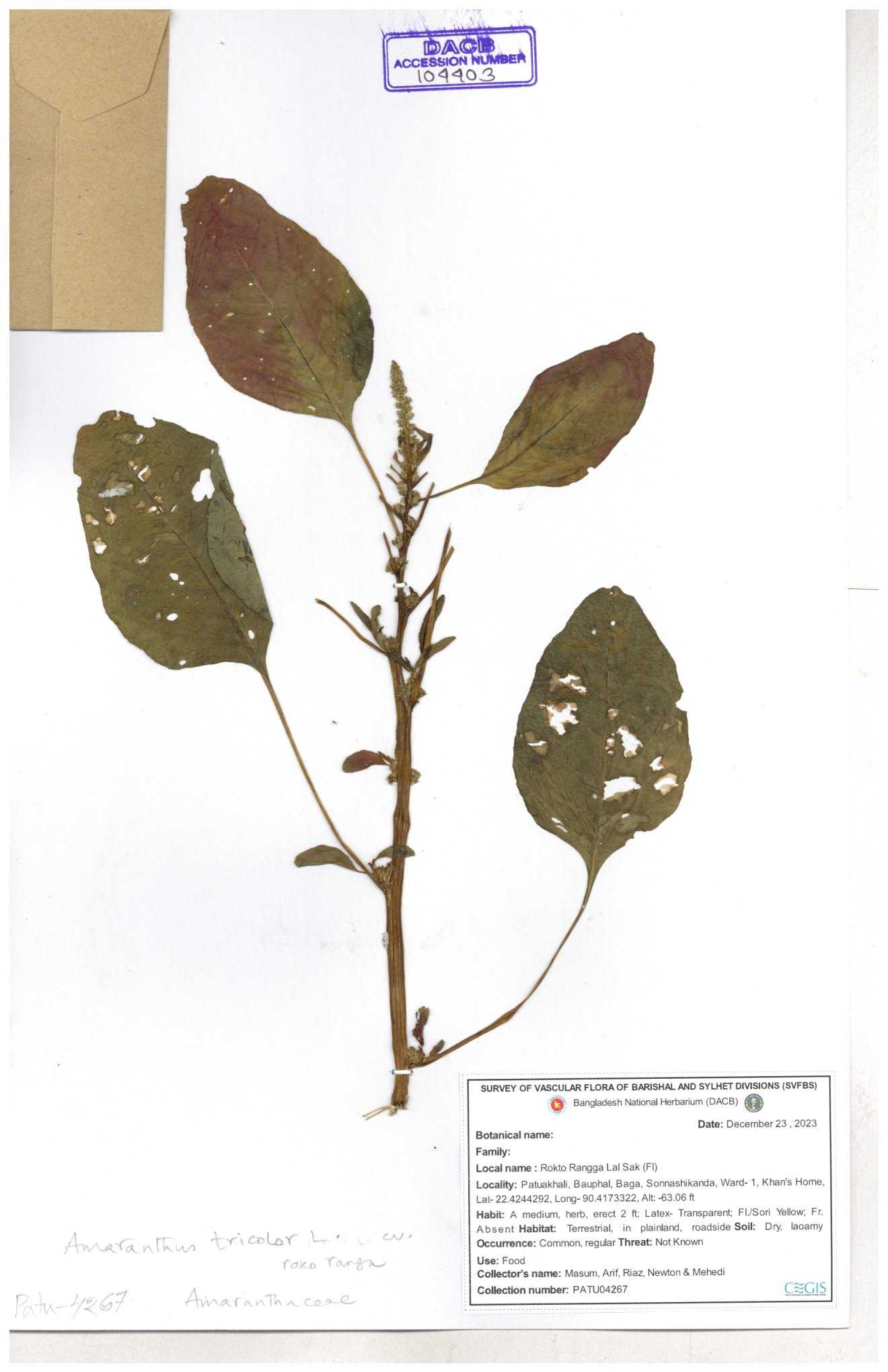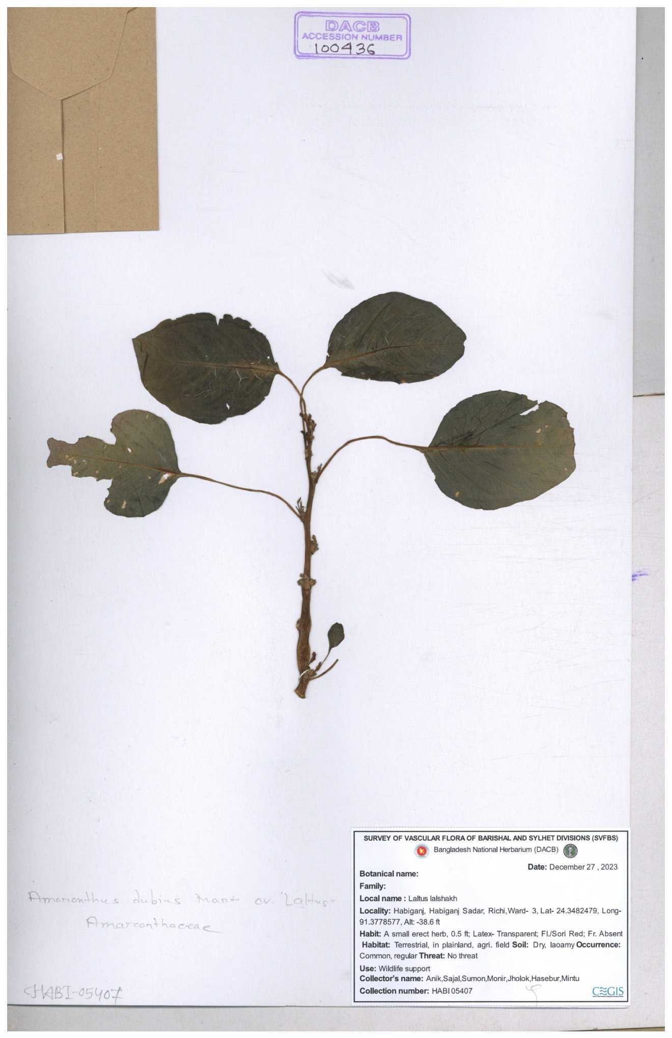 | 64345 | Amaranthaceae | Amaranthus viridis L. | Mominur Rahman, Al amin & Kamrul Islam | JCR-1489 30-11--0001 |