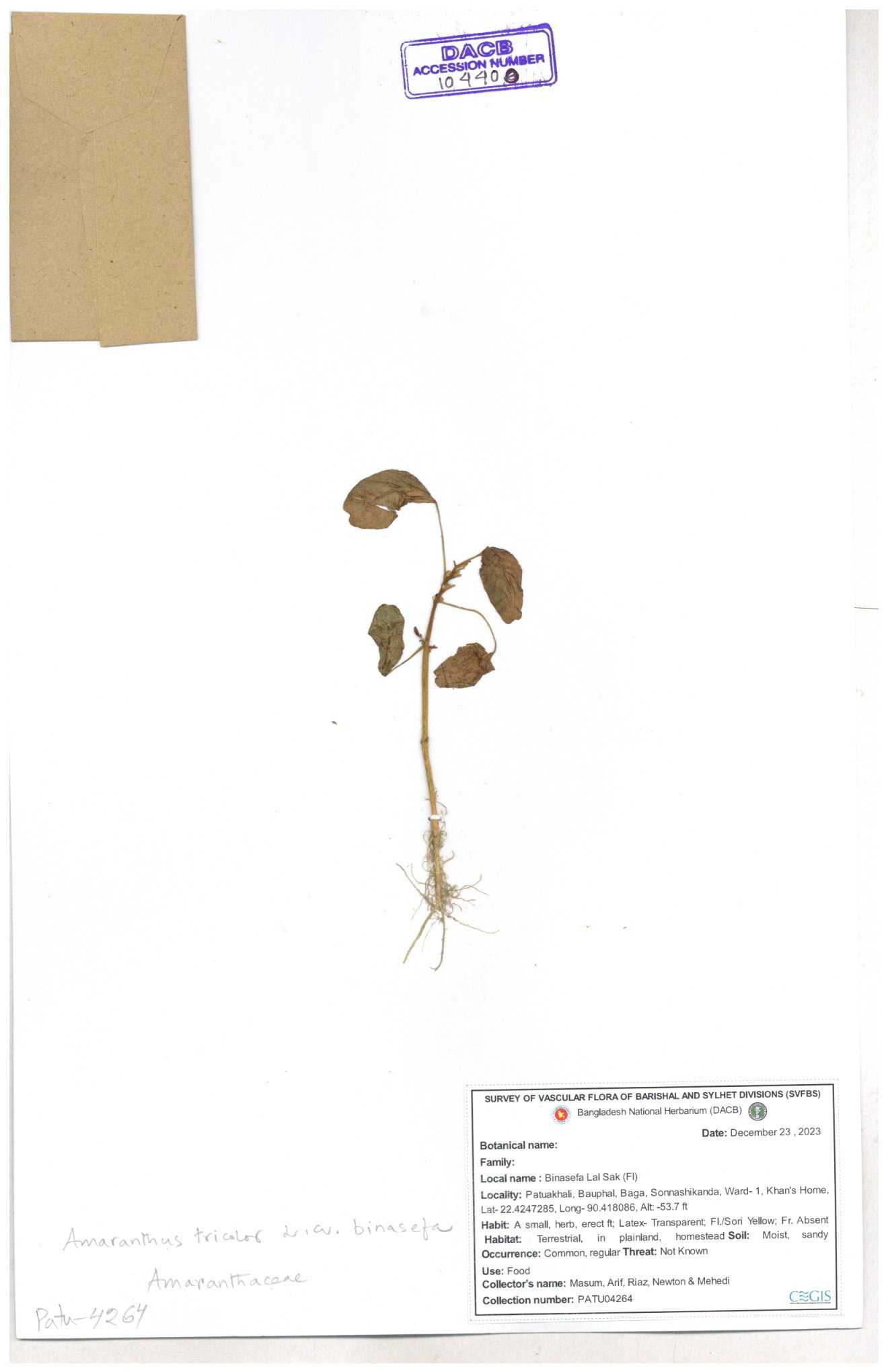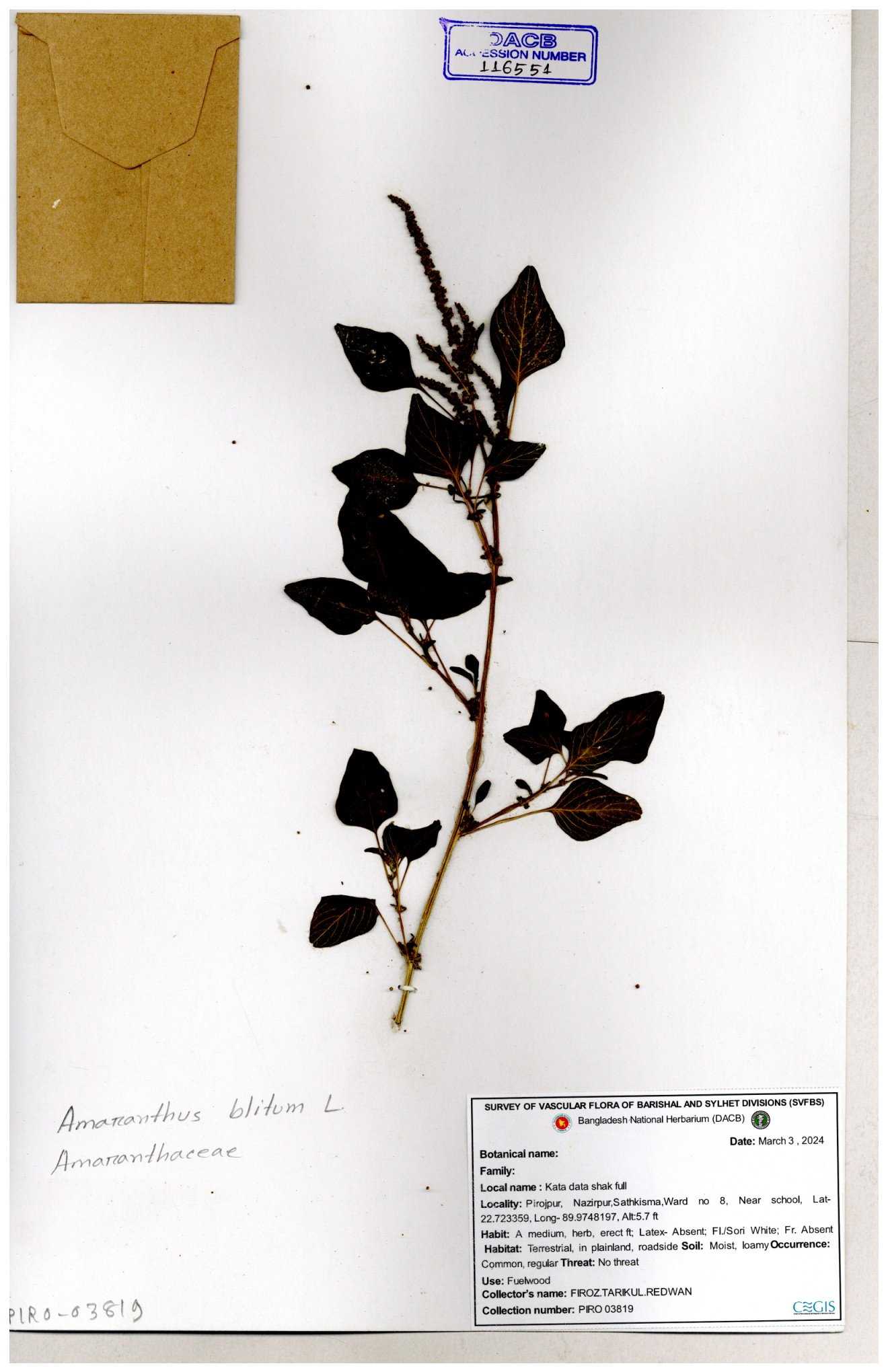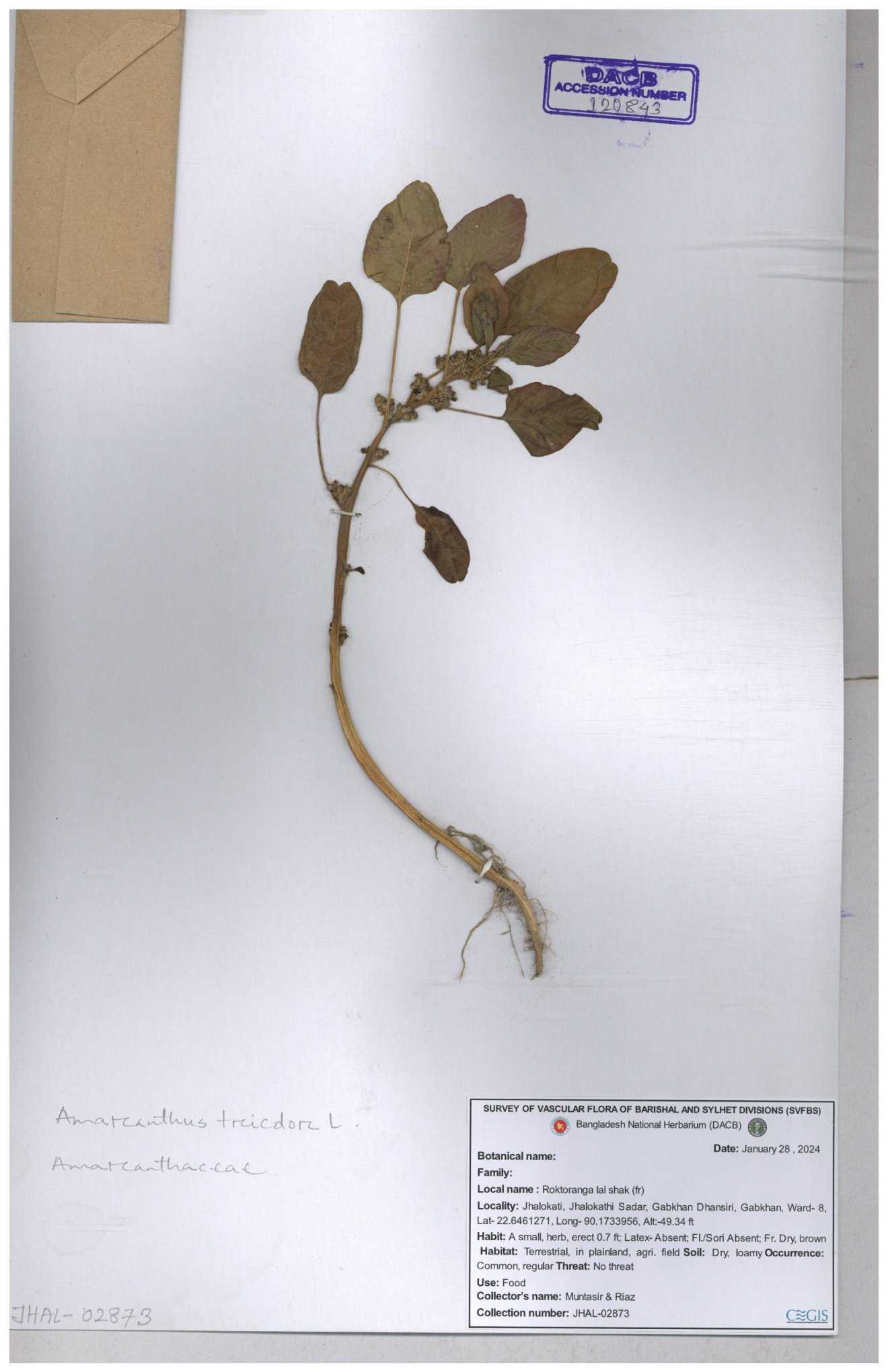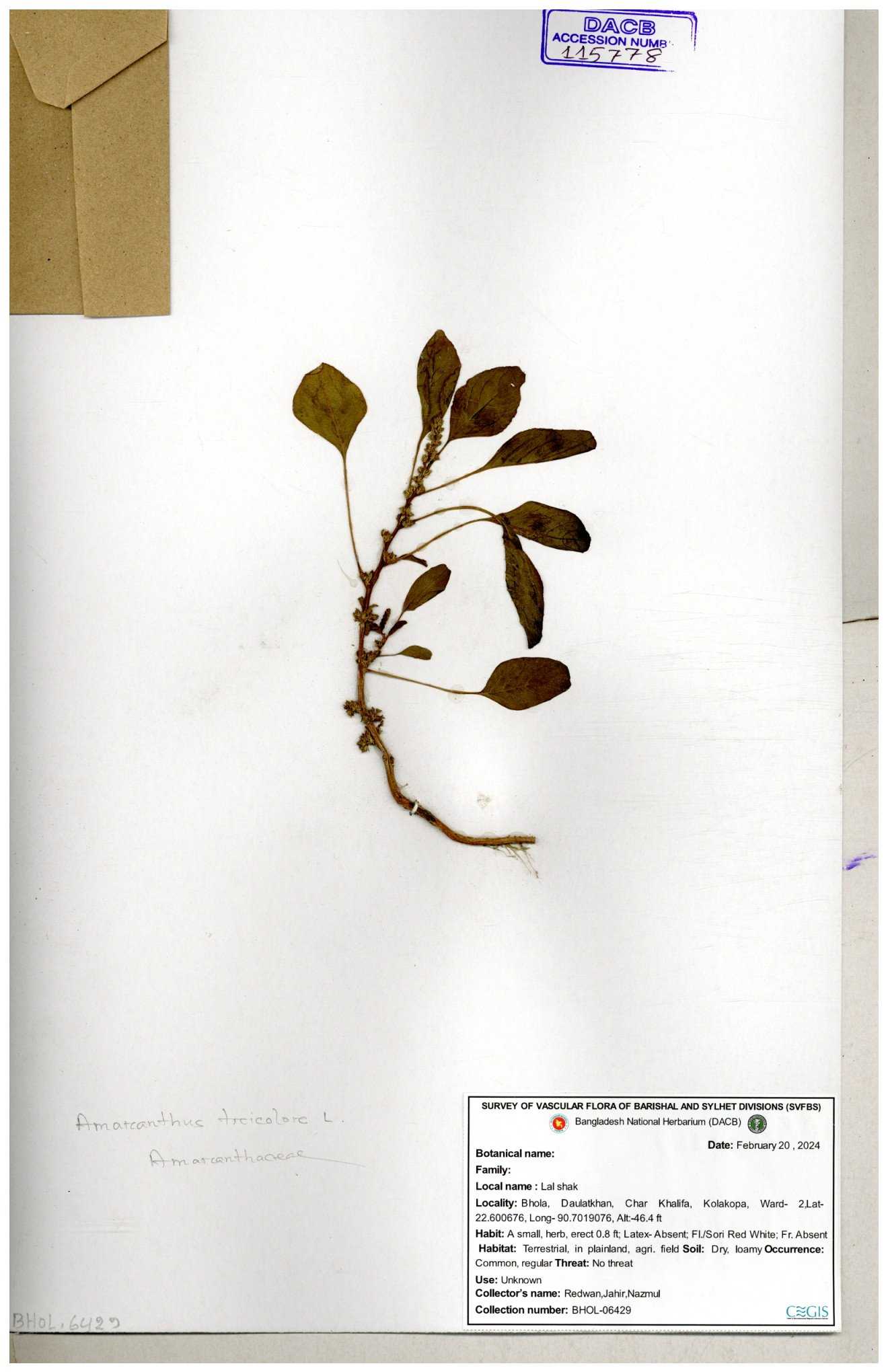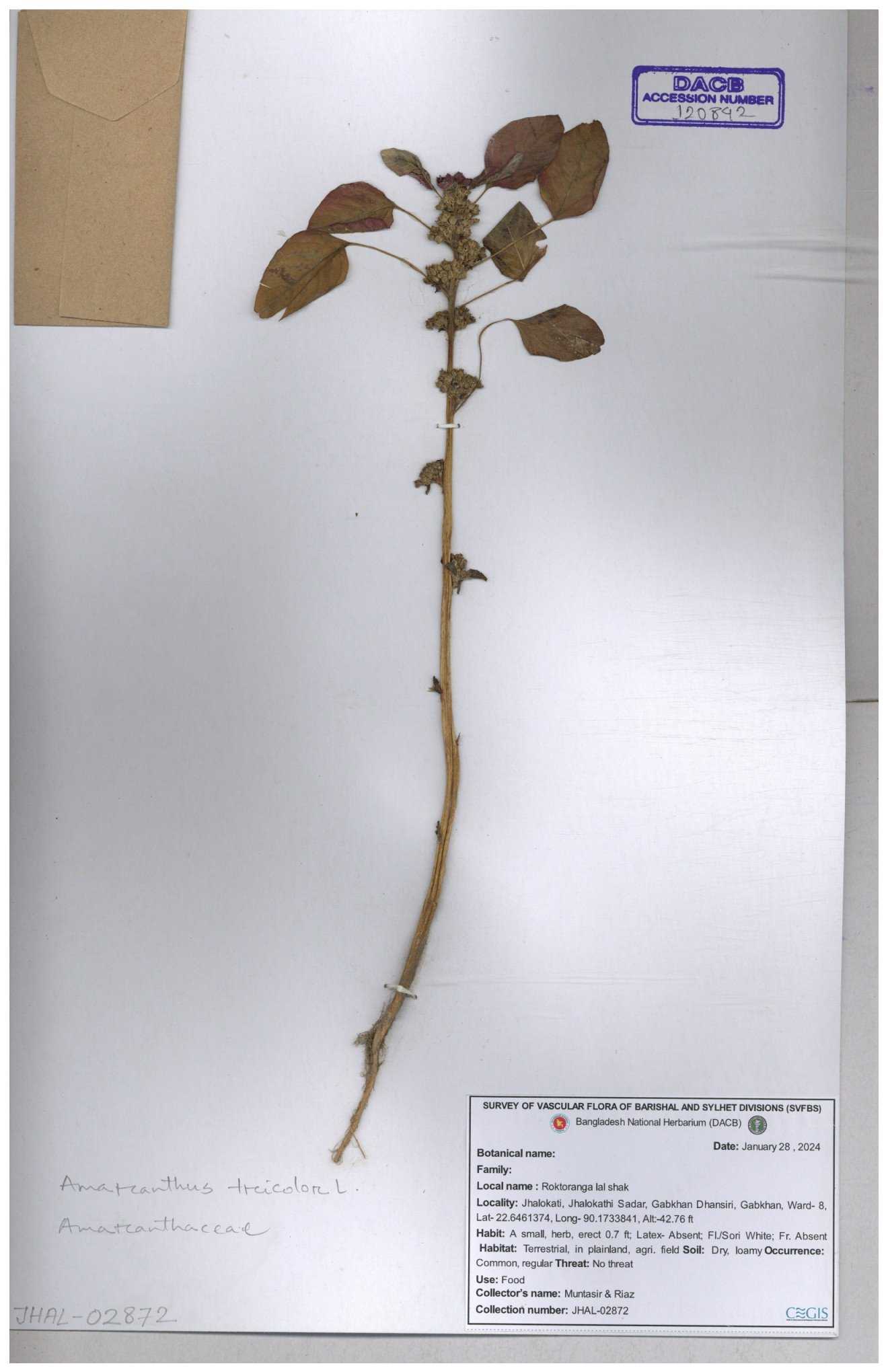 | 64345 | Amaranthaceae | Amaranthus viridis L. | Mominur Rahman, Al amin & Kamrul Islam | JCR-1489 30-11--0001 |