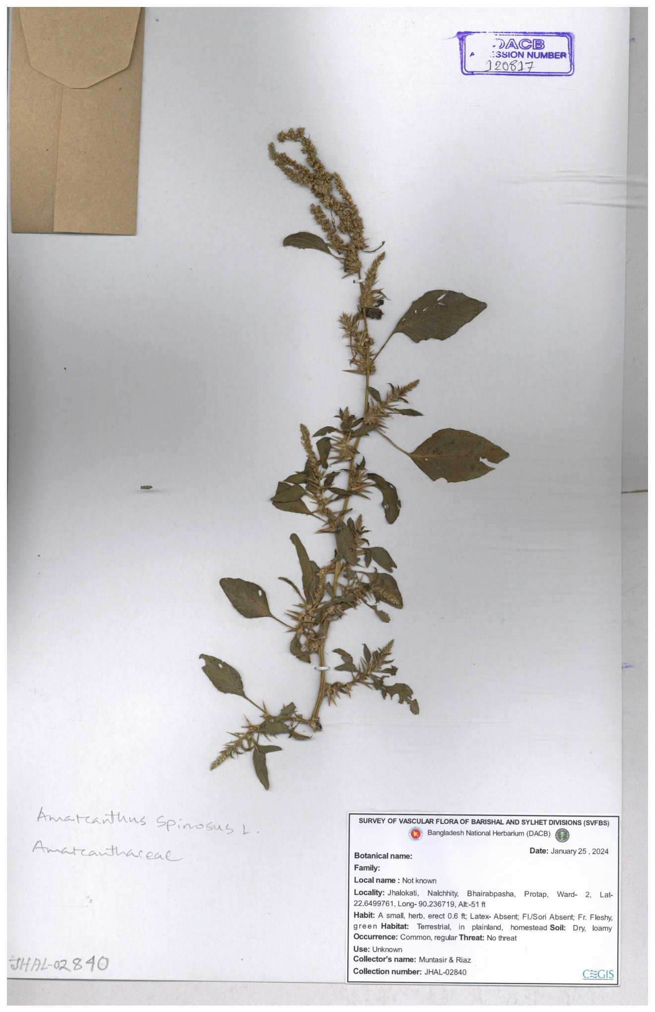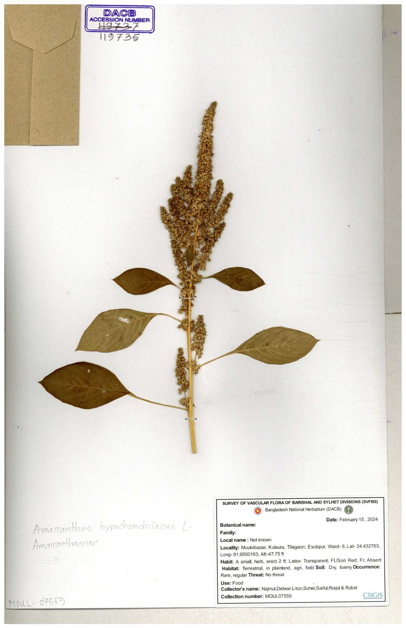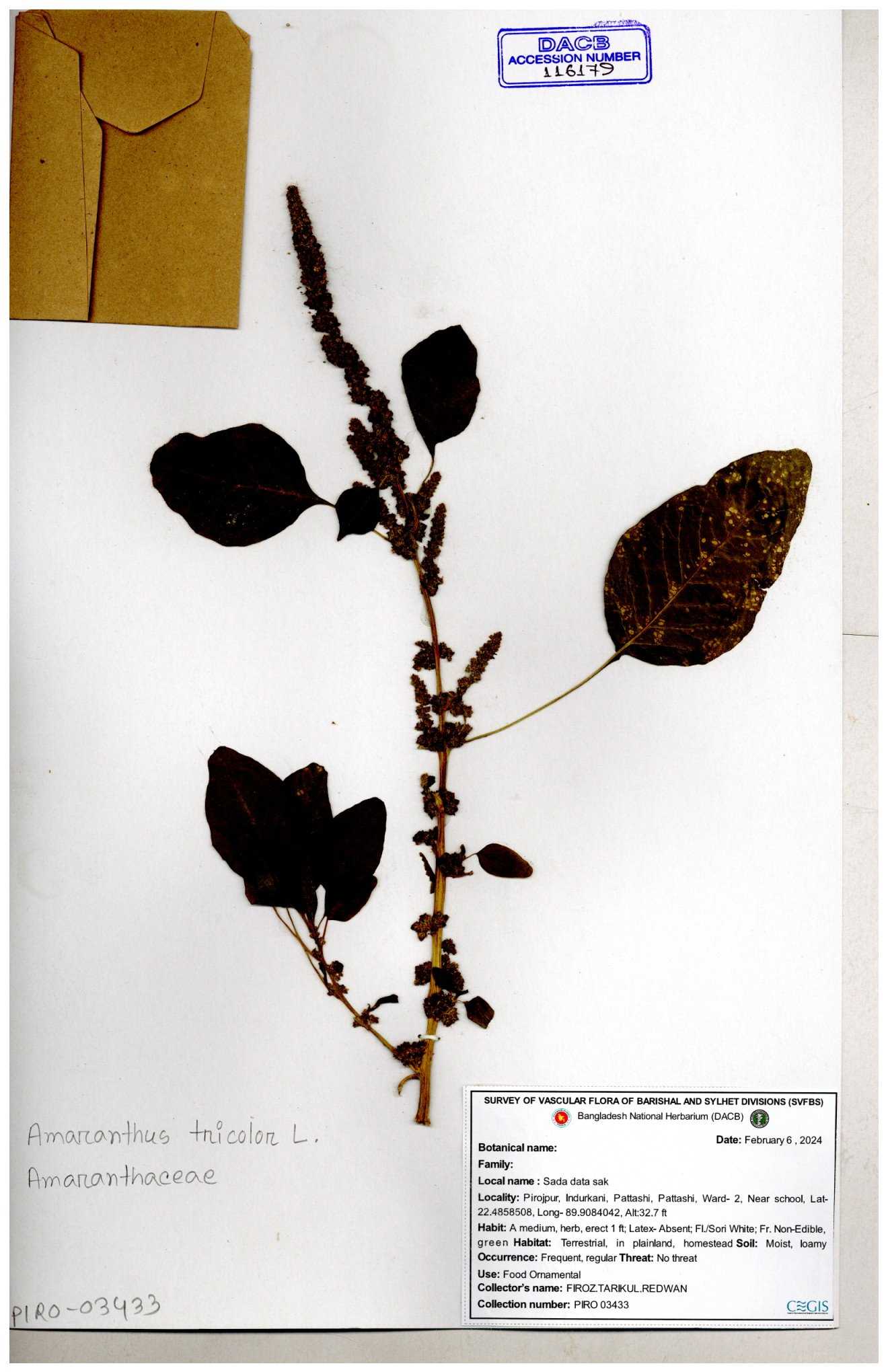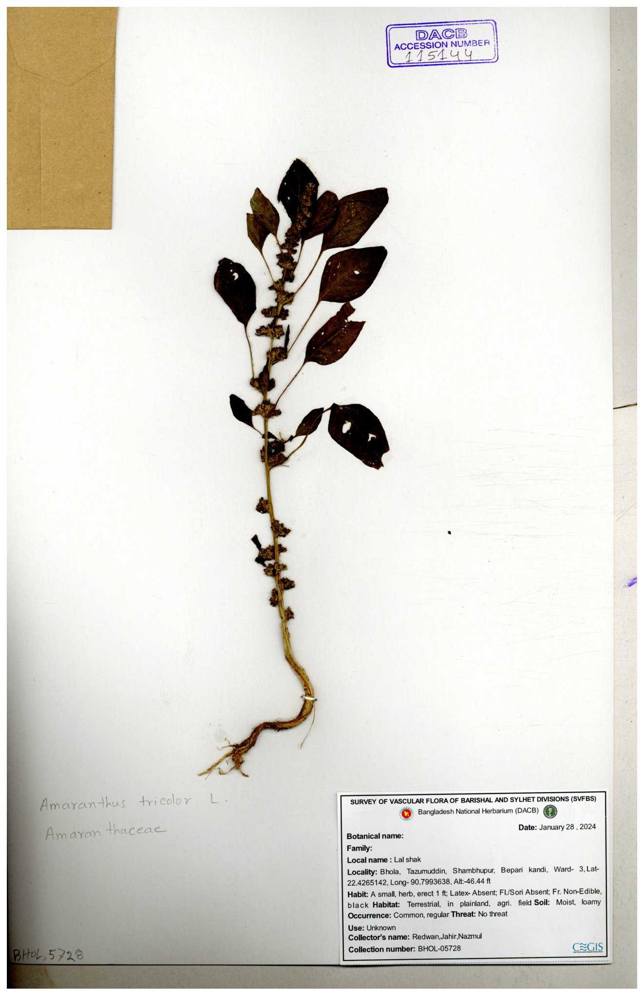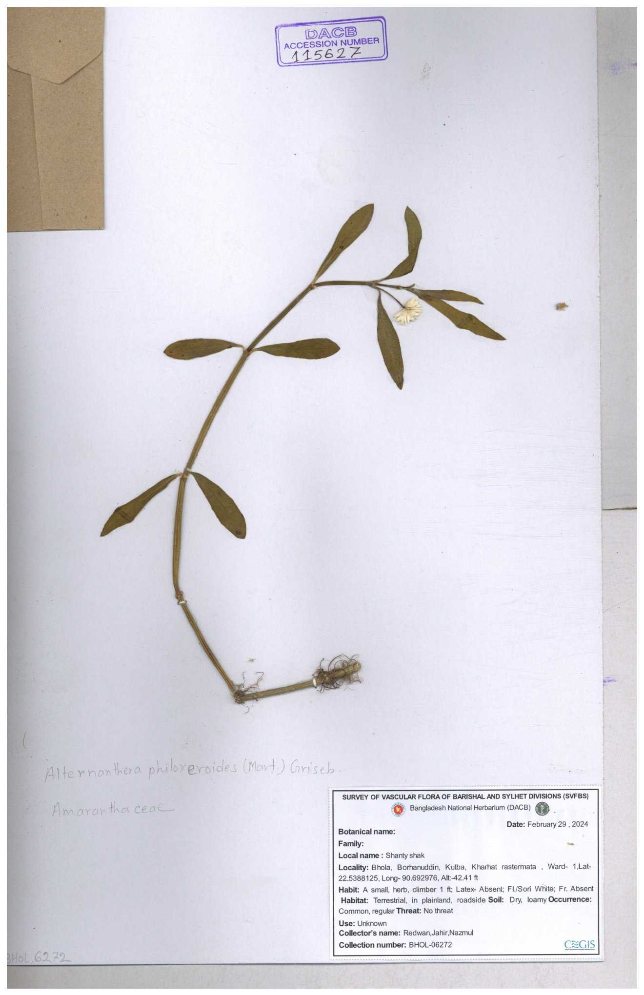 | 64345 | Amaranthaceae | Amaranthus viridis L. | Mominur Rahman, Al amin & Kamrul Islam | JCR-1489 30-11--0001 |