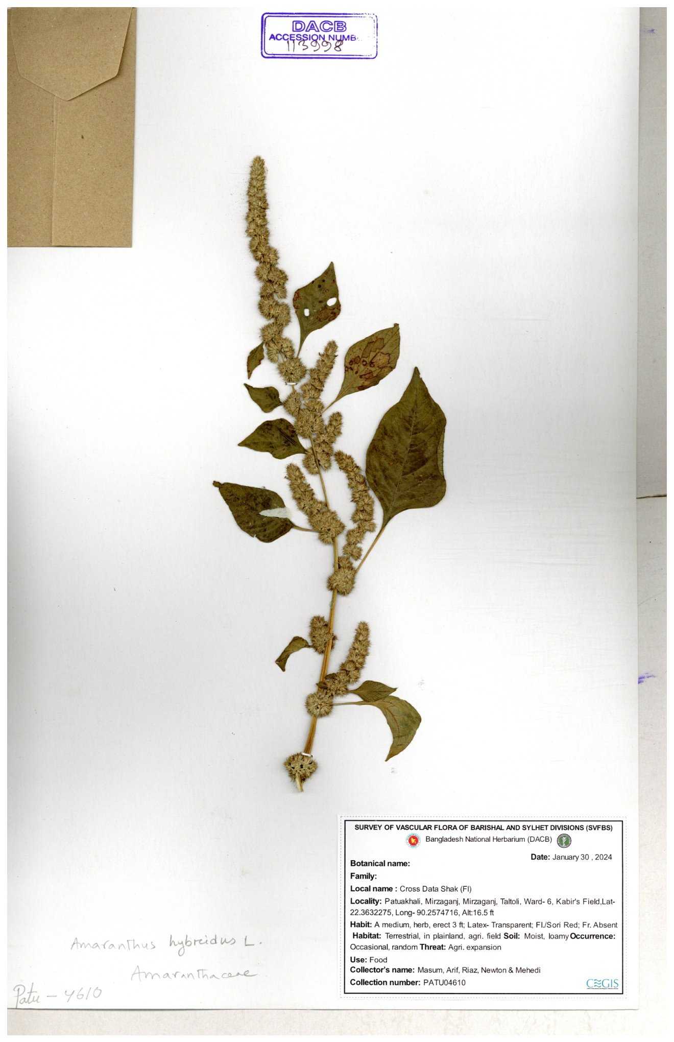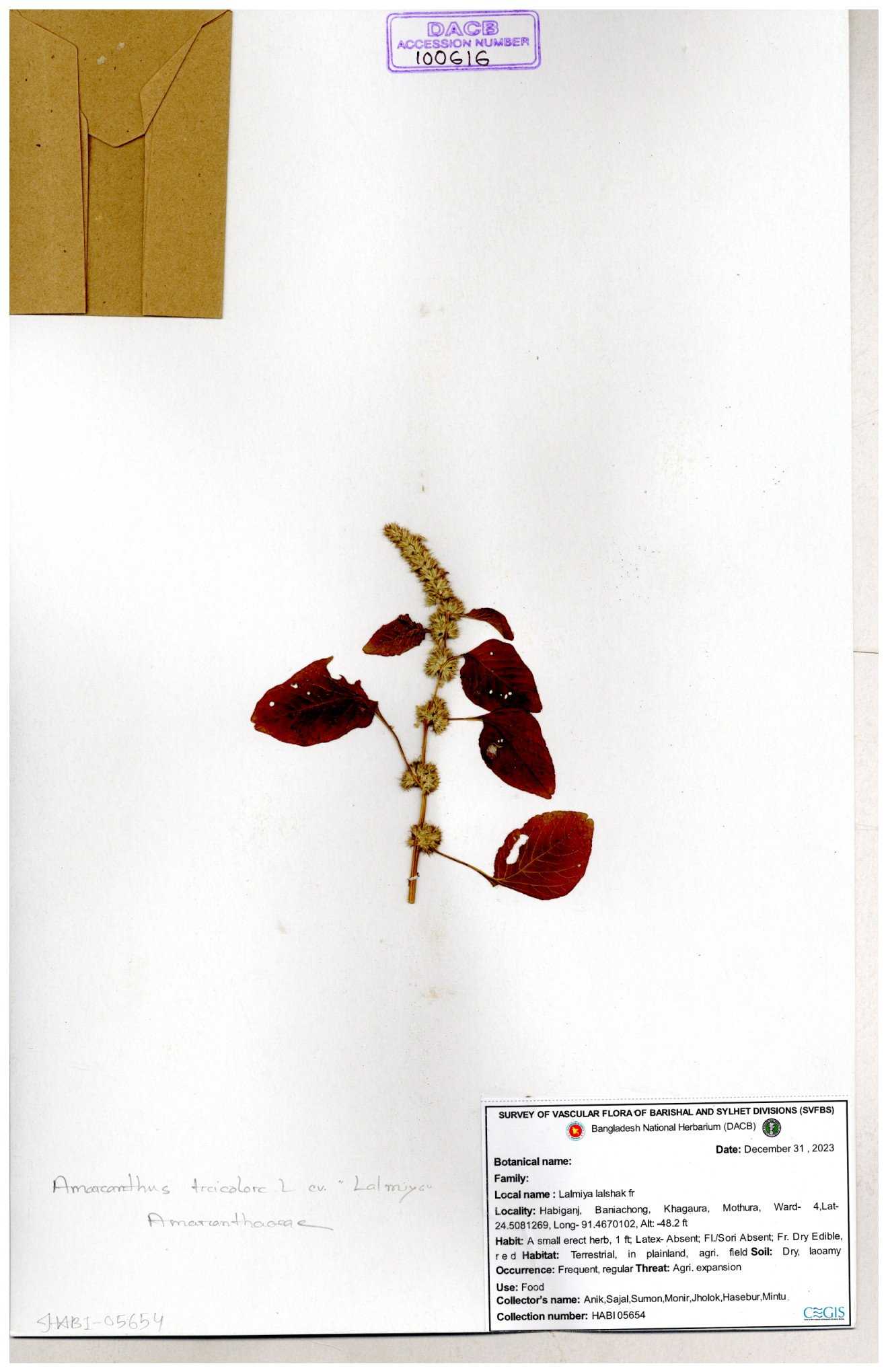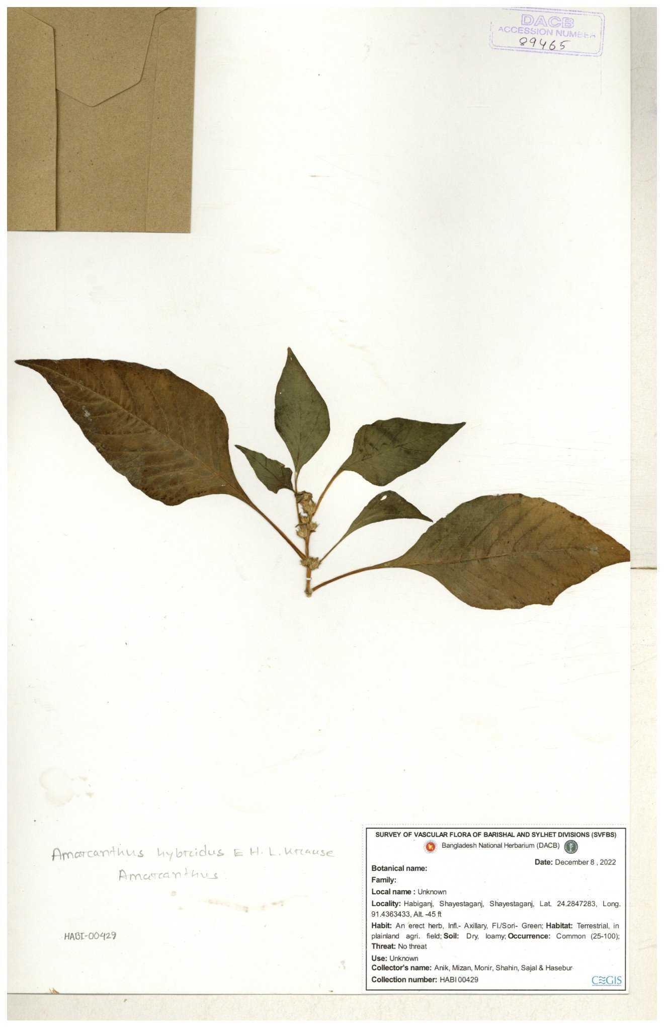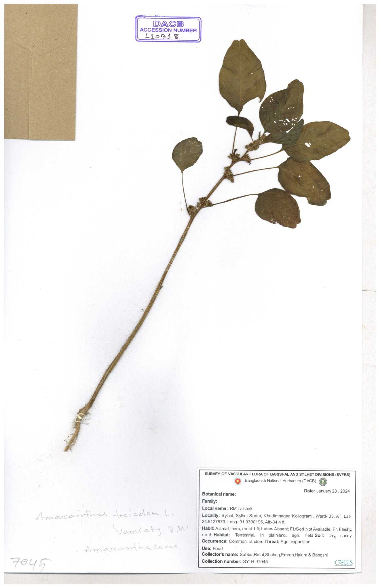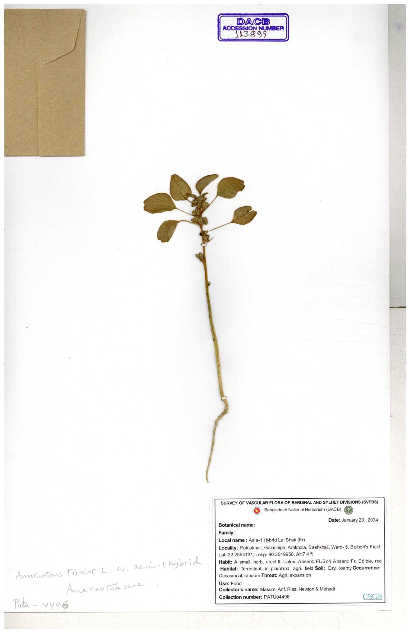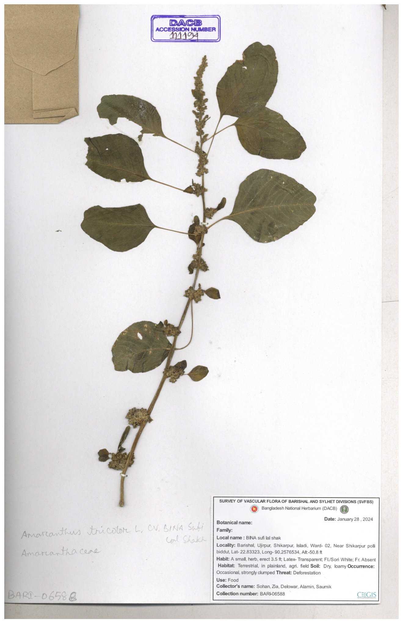 | 64345 | Amaranthaceae | Amaranthus viridis L. | Mominur Rahman, Al amin & Kamrul Islam | JCR-1489 30-11--0001 |