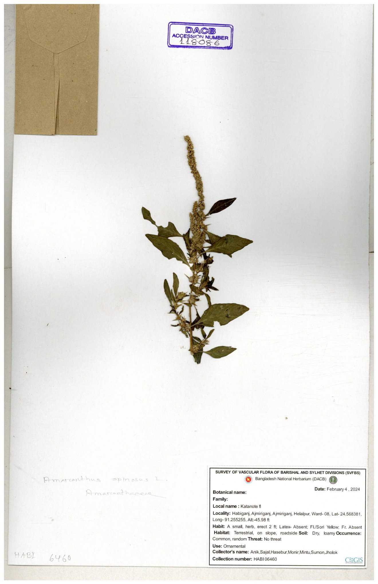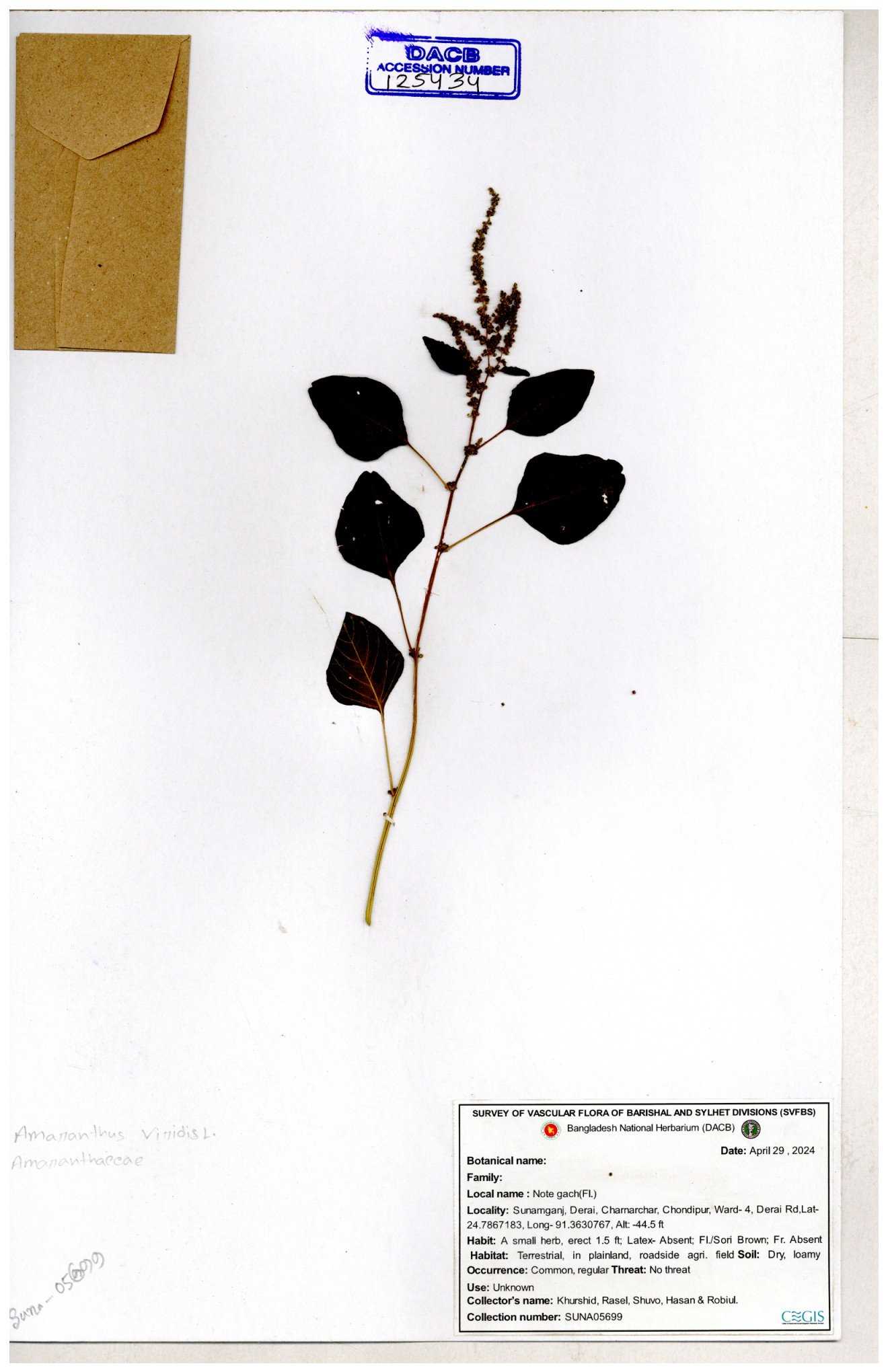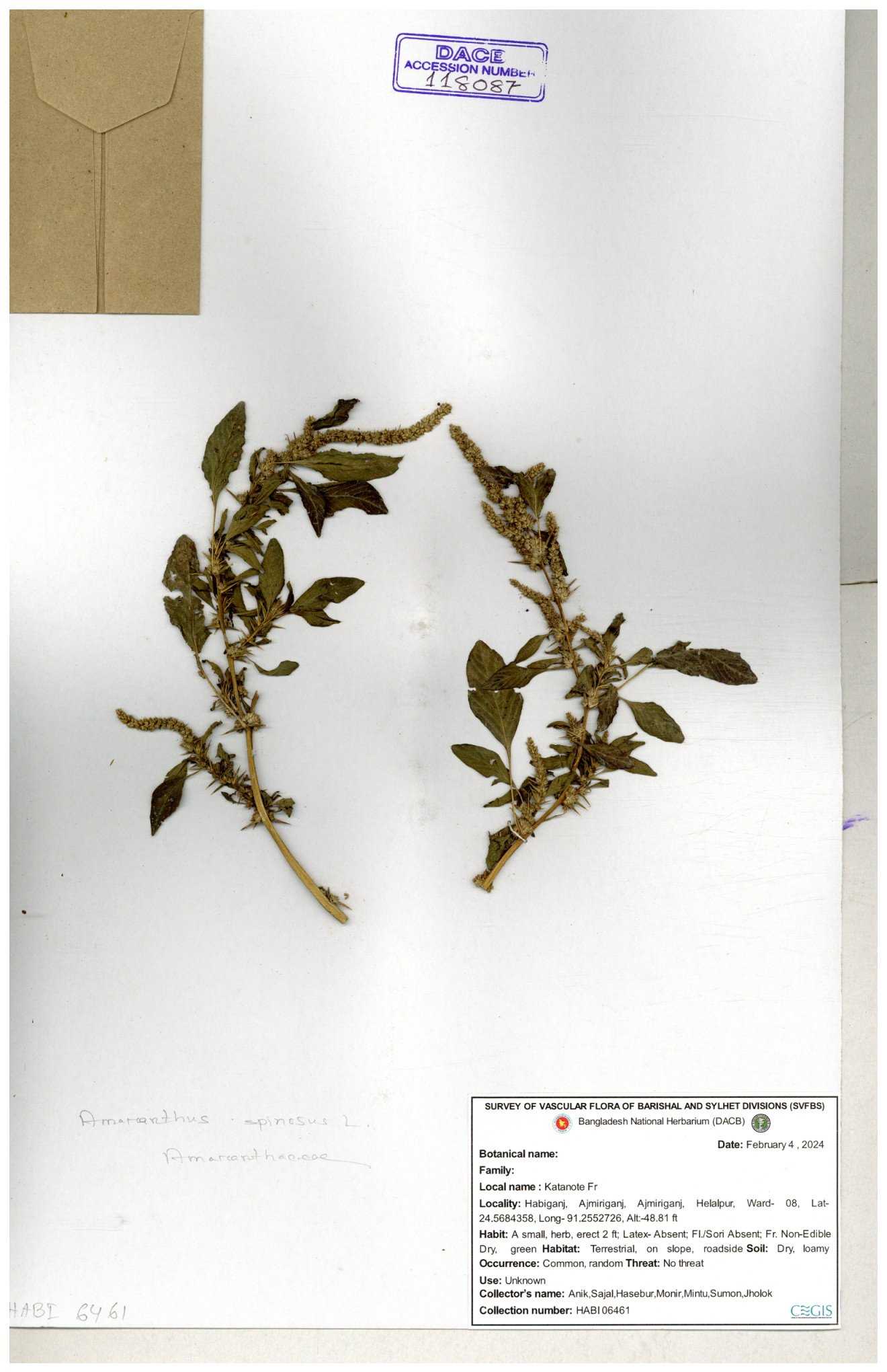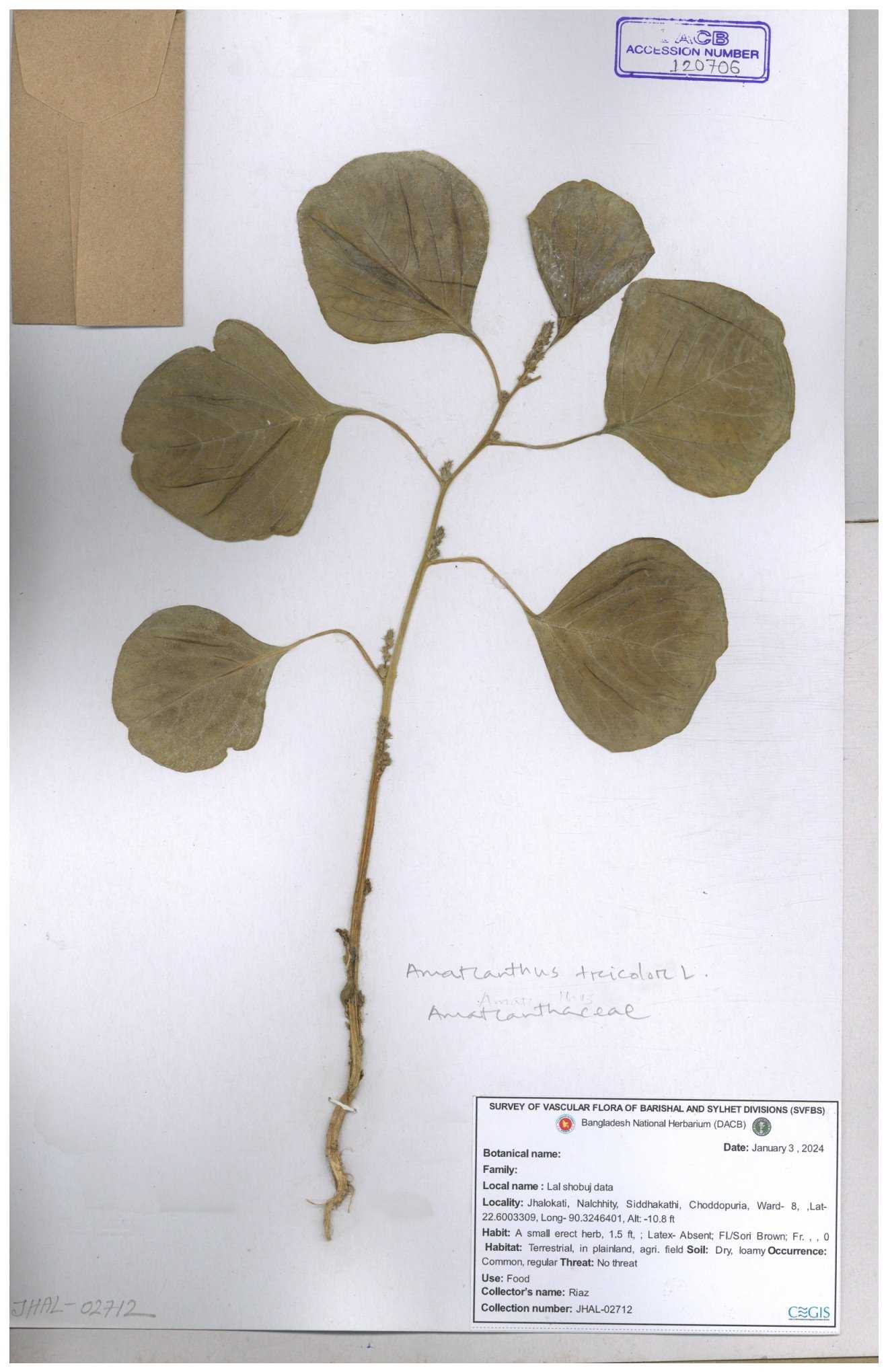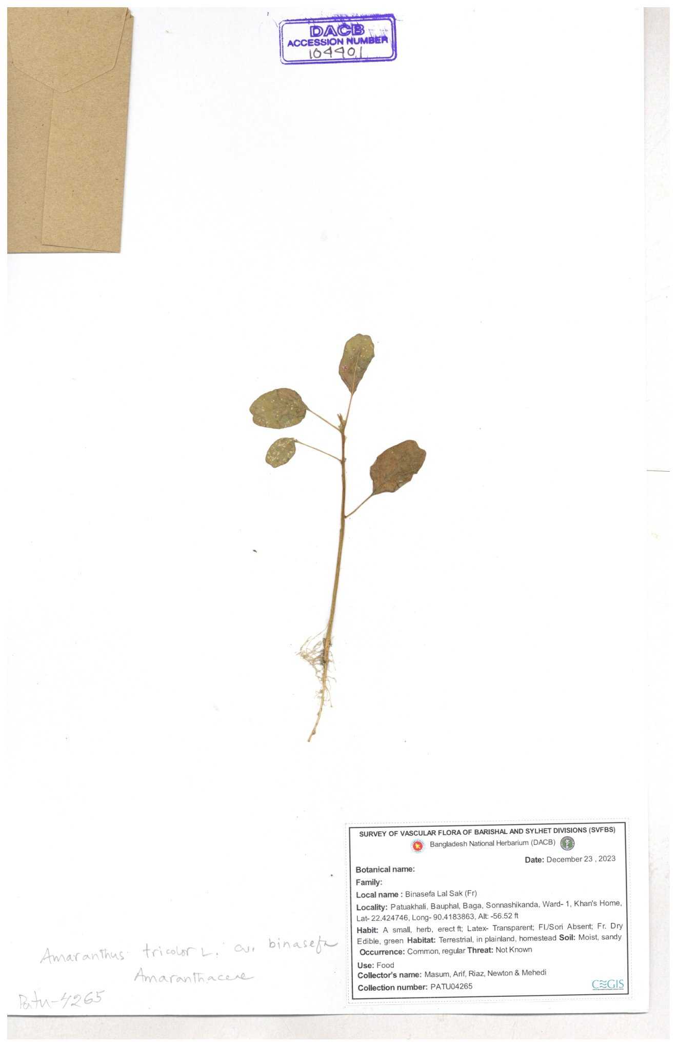 | 64345 | Amaranthaceae | Amaranthus viridis L. | Mominur Rahman, Al amin & Kamrul Islam | JCR-1489 30-11--0001 |