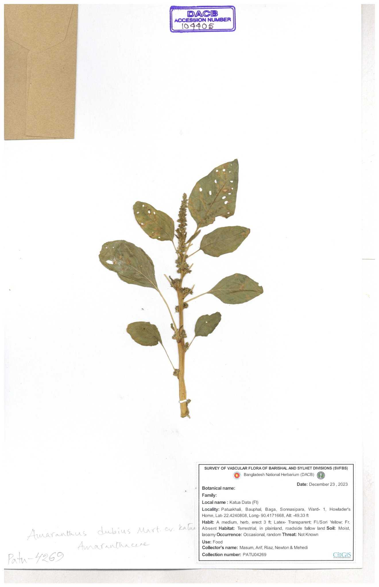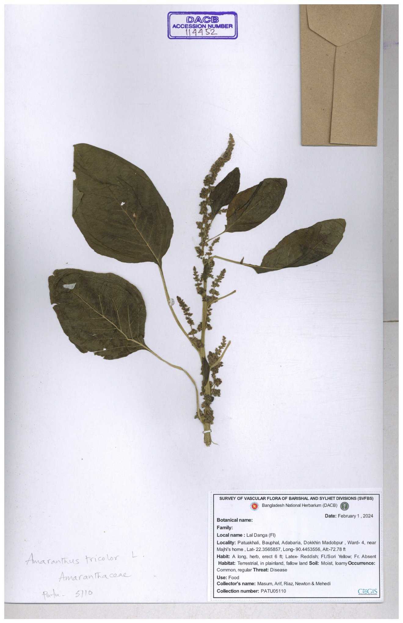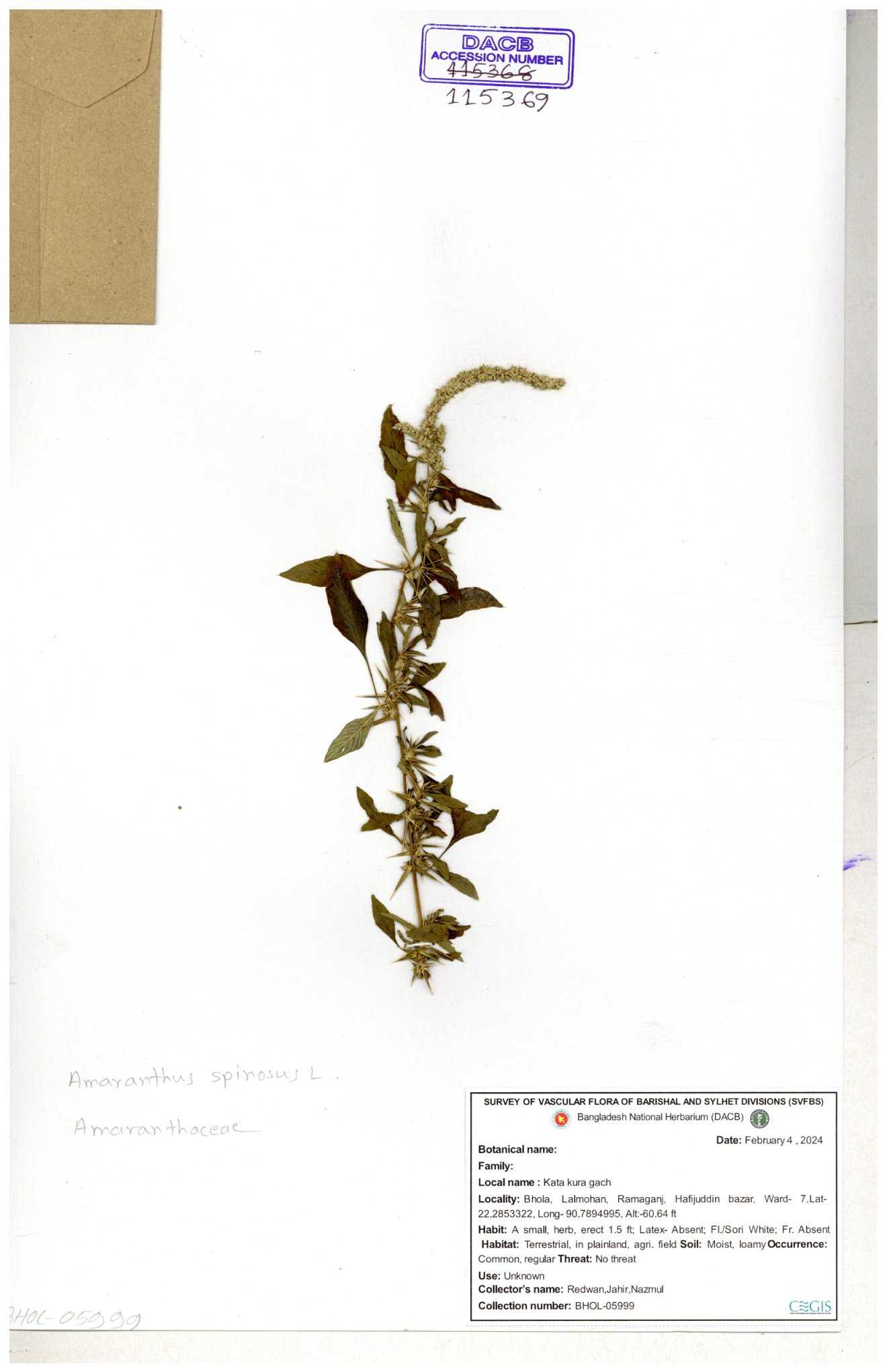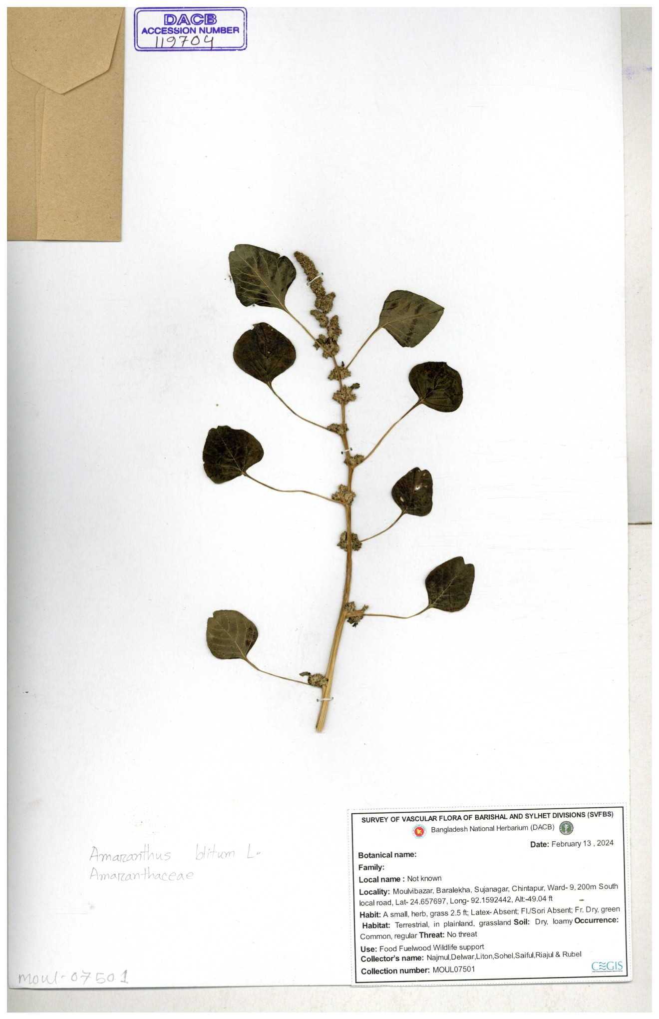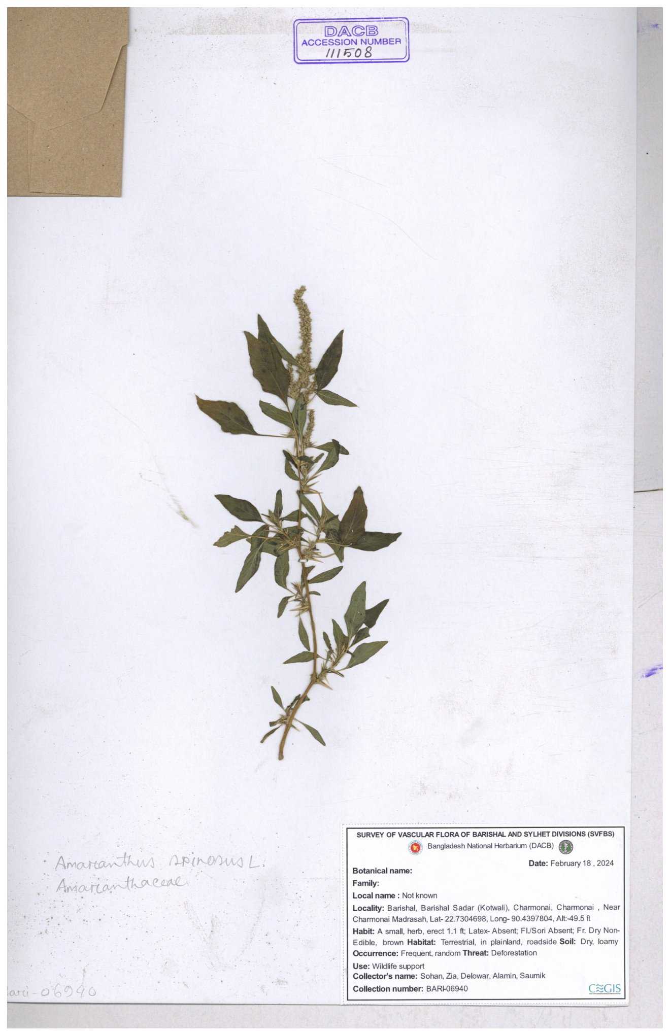 | 64345 | Amaranthaceae | Amaranthus viridis L. | Mominur Rahman, Al amin & Kamrul Islam | JCR-1489 30-11--0001 |