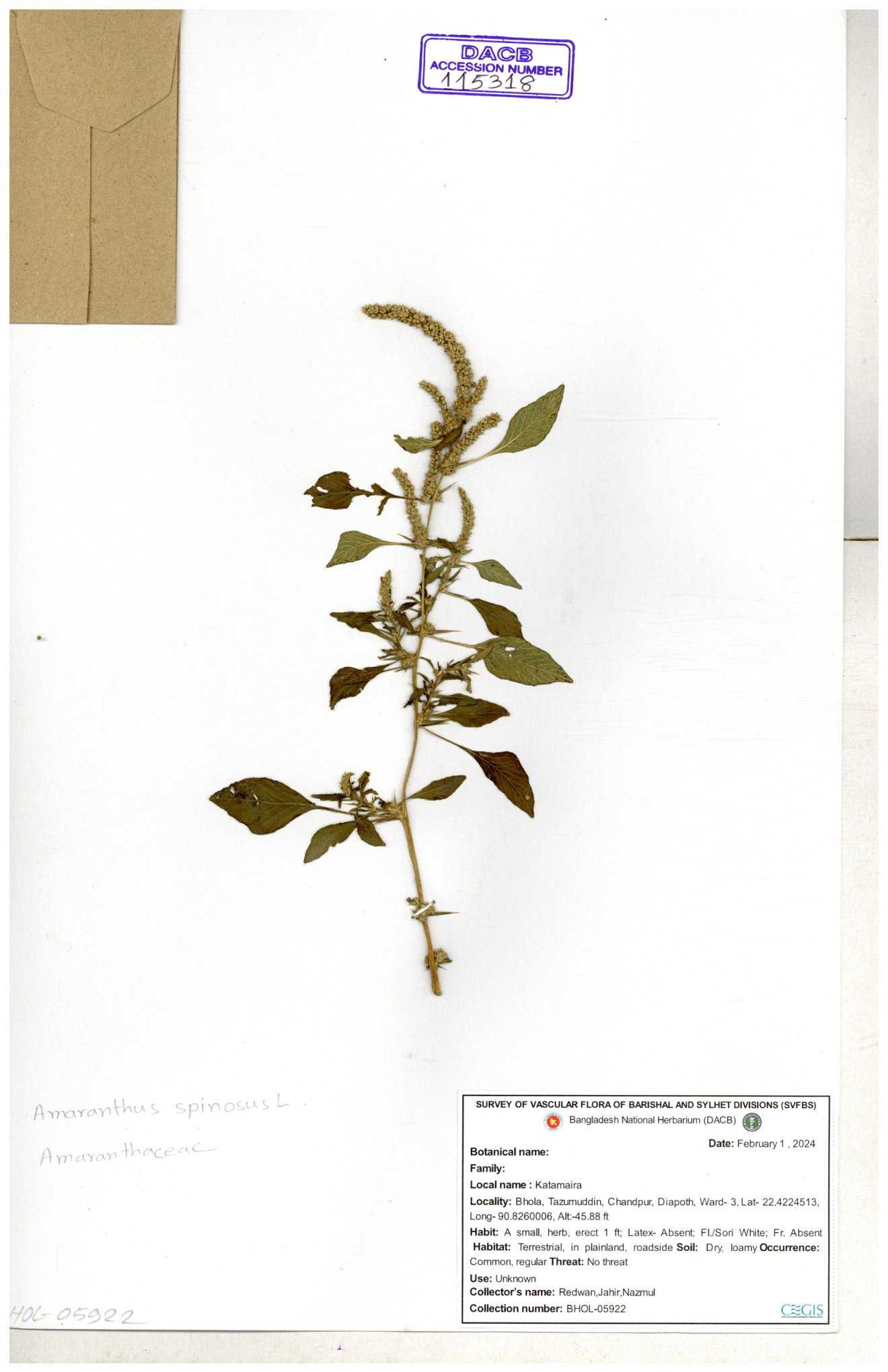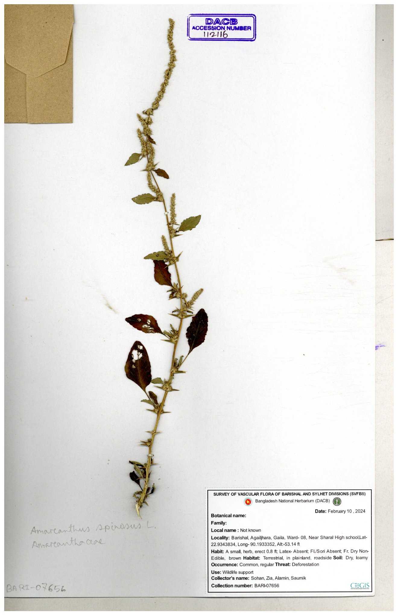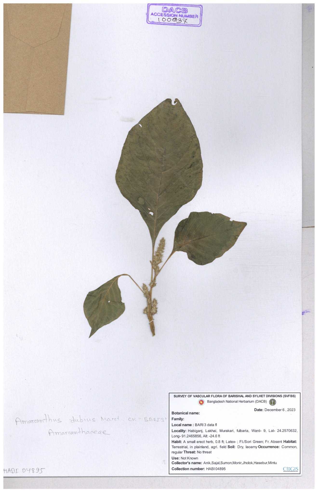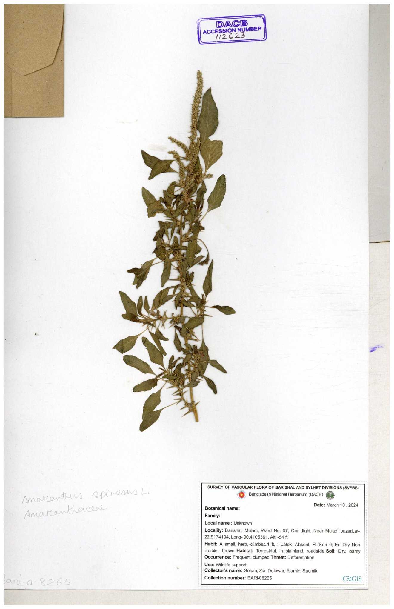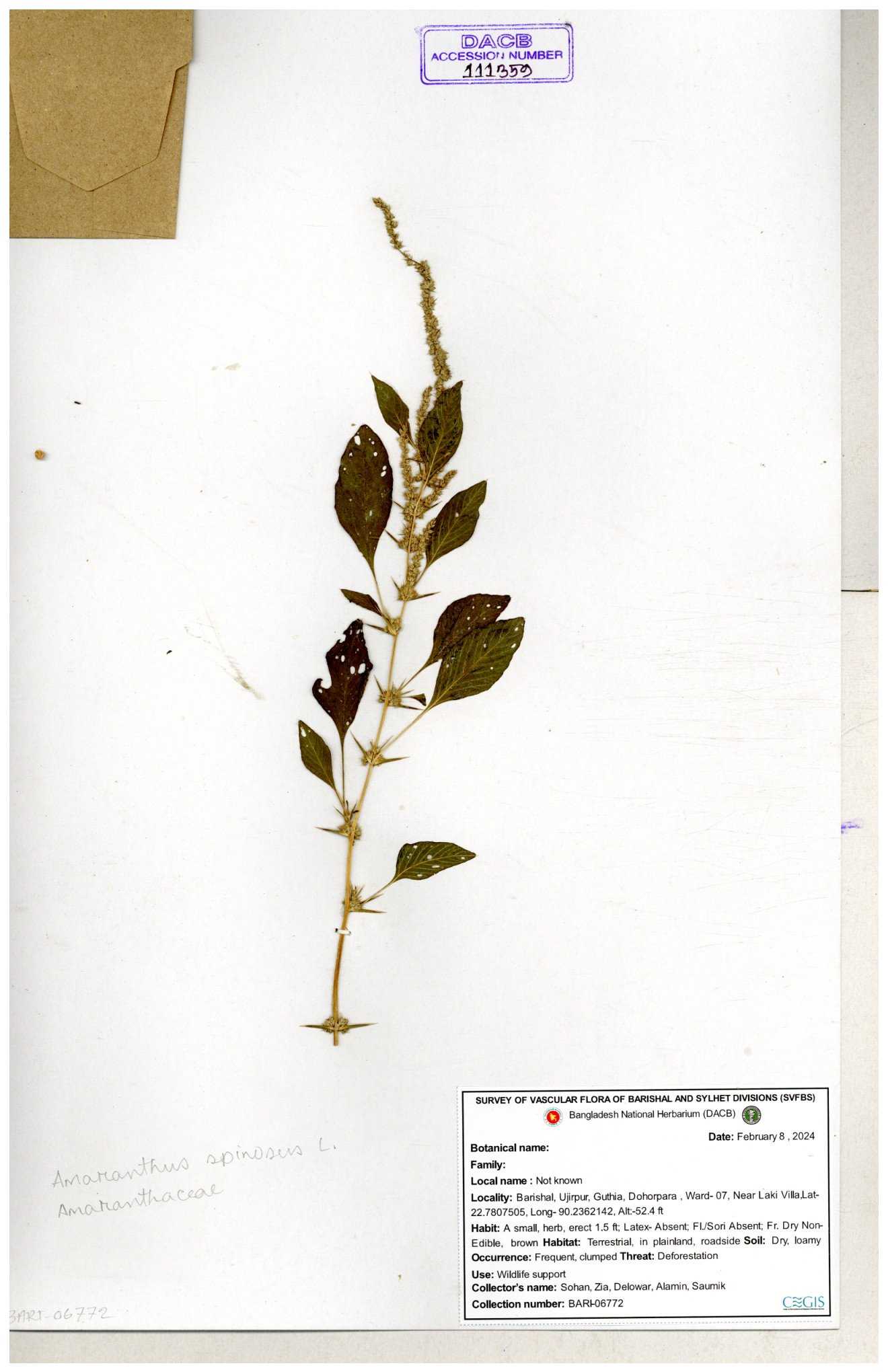| 64345 | Amaranthaceae | Amaranthus viridis L. | Mominur Rahman, Al amin & Kamrul Islam | JCR-1489 30-11--0001 |