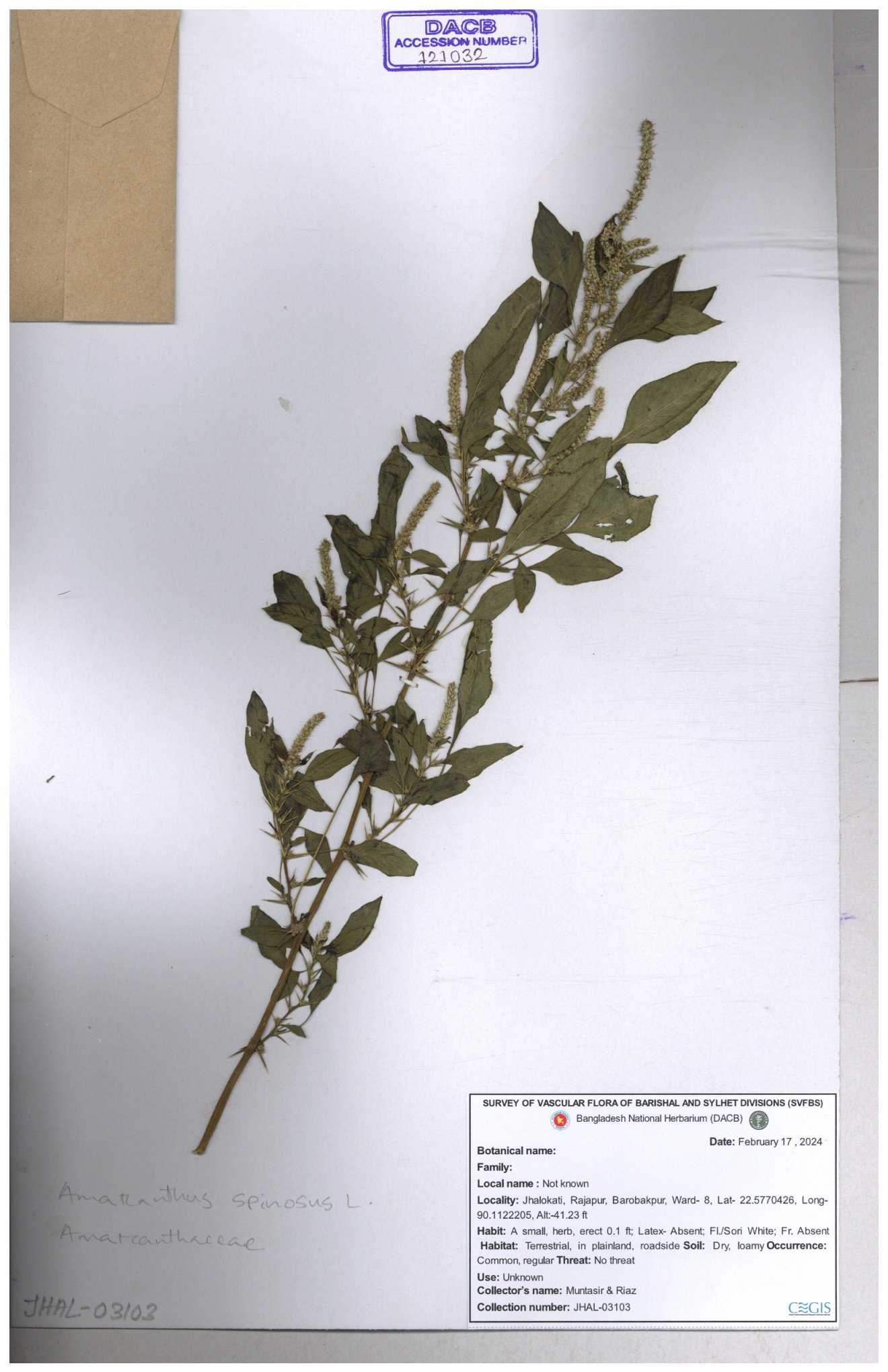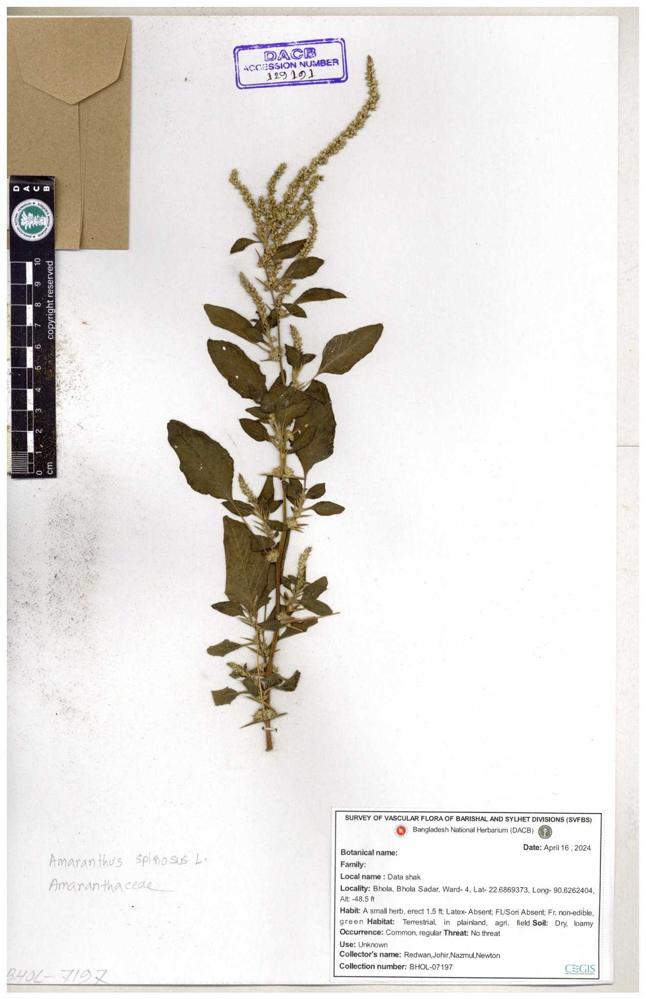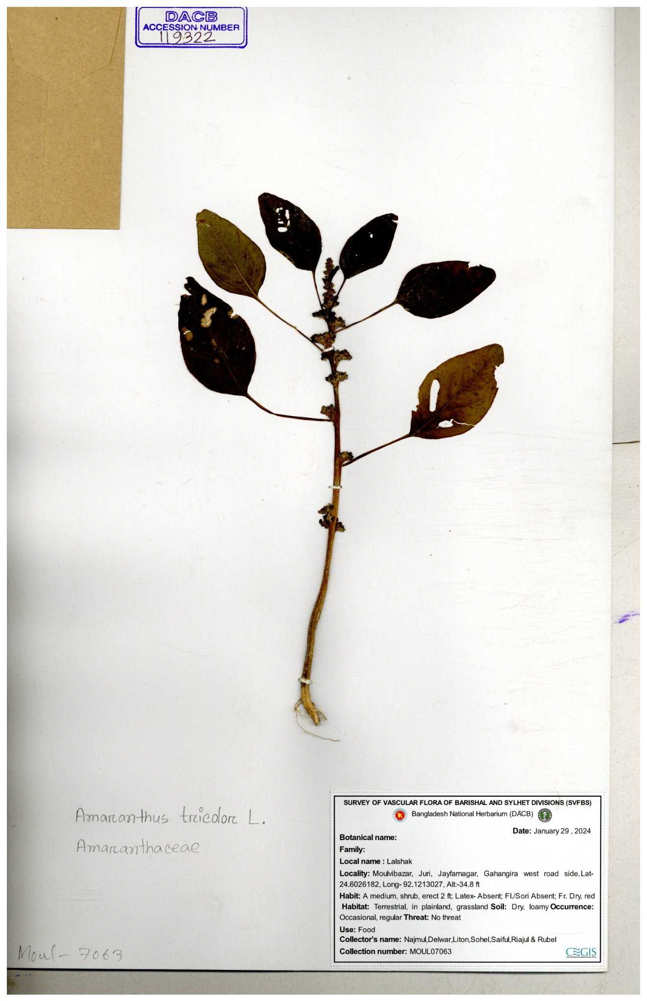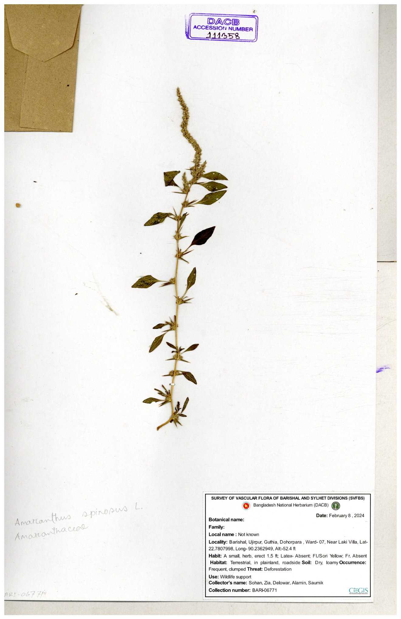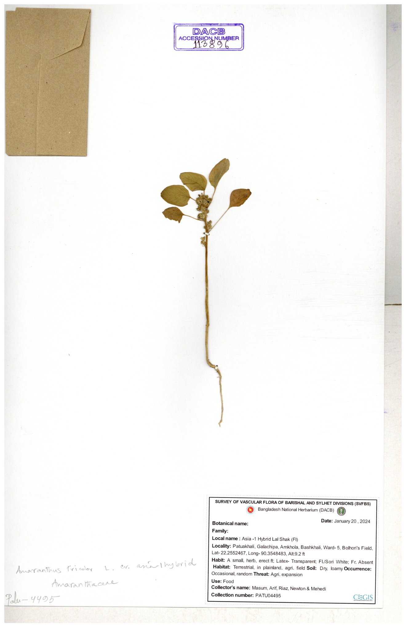 | 64345 | Amaranthaceae | Amaranthus viridis L. | Mominur Rahman, Al amin & Kamrul Islam | JCR-1489 30-11--0001 |
