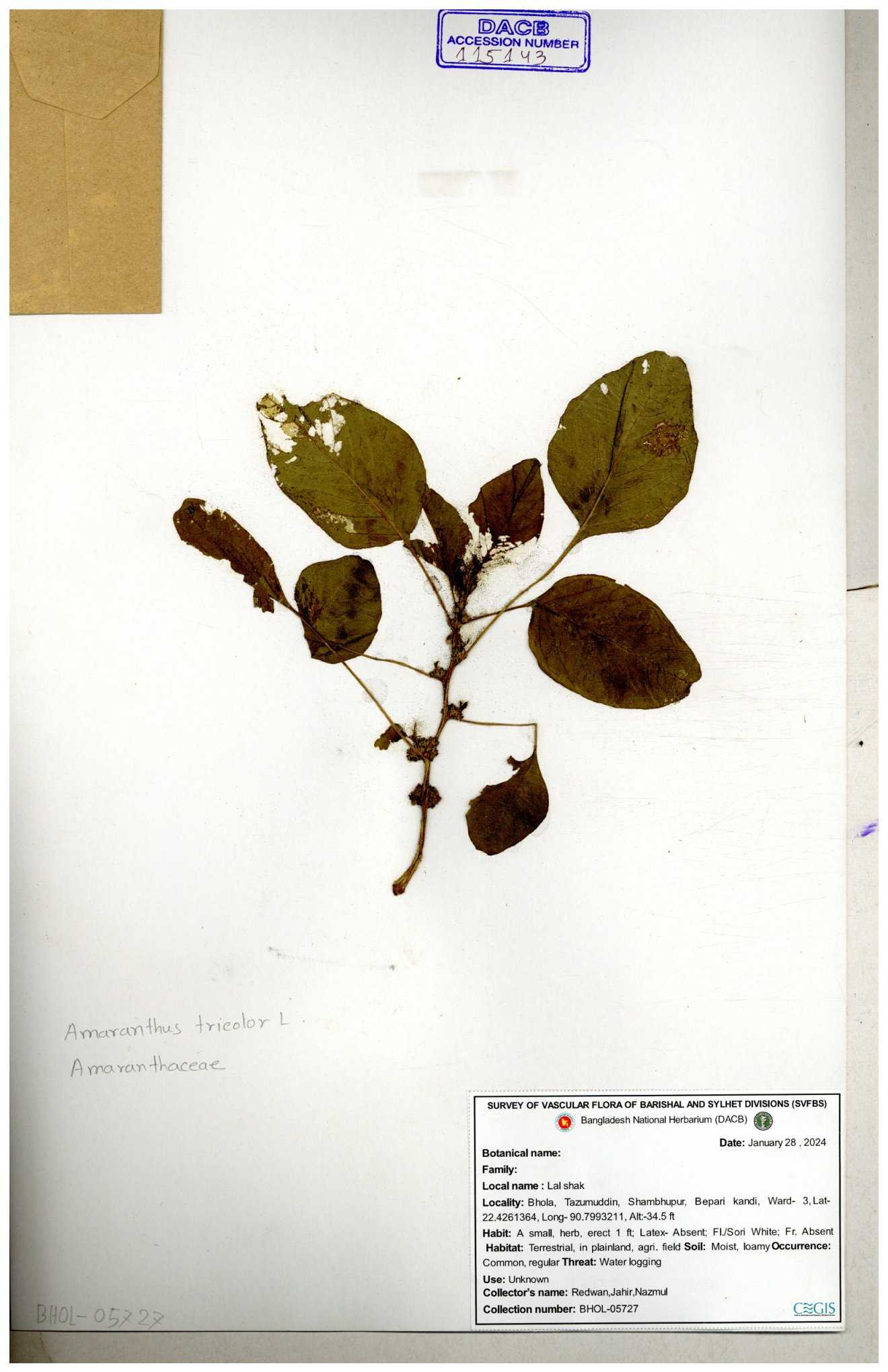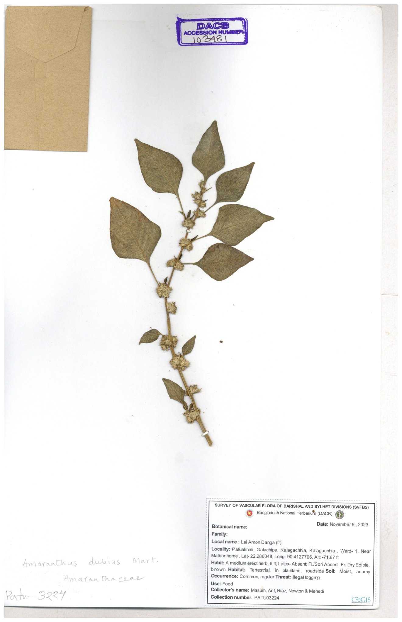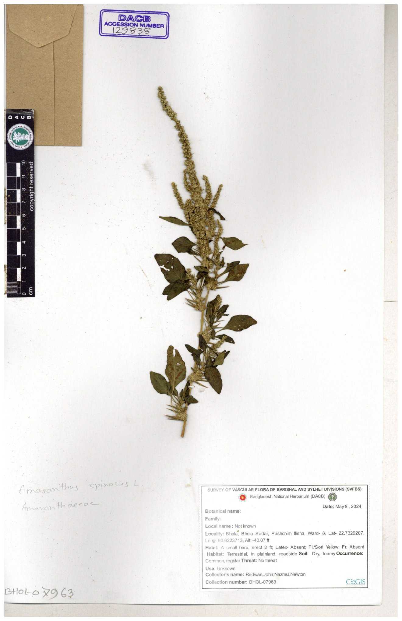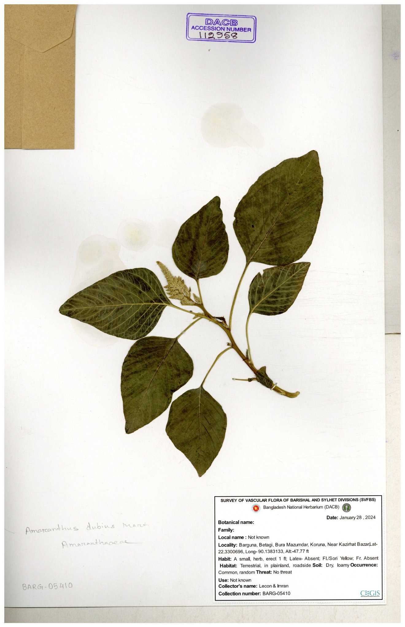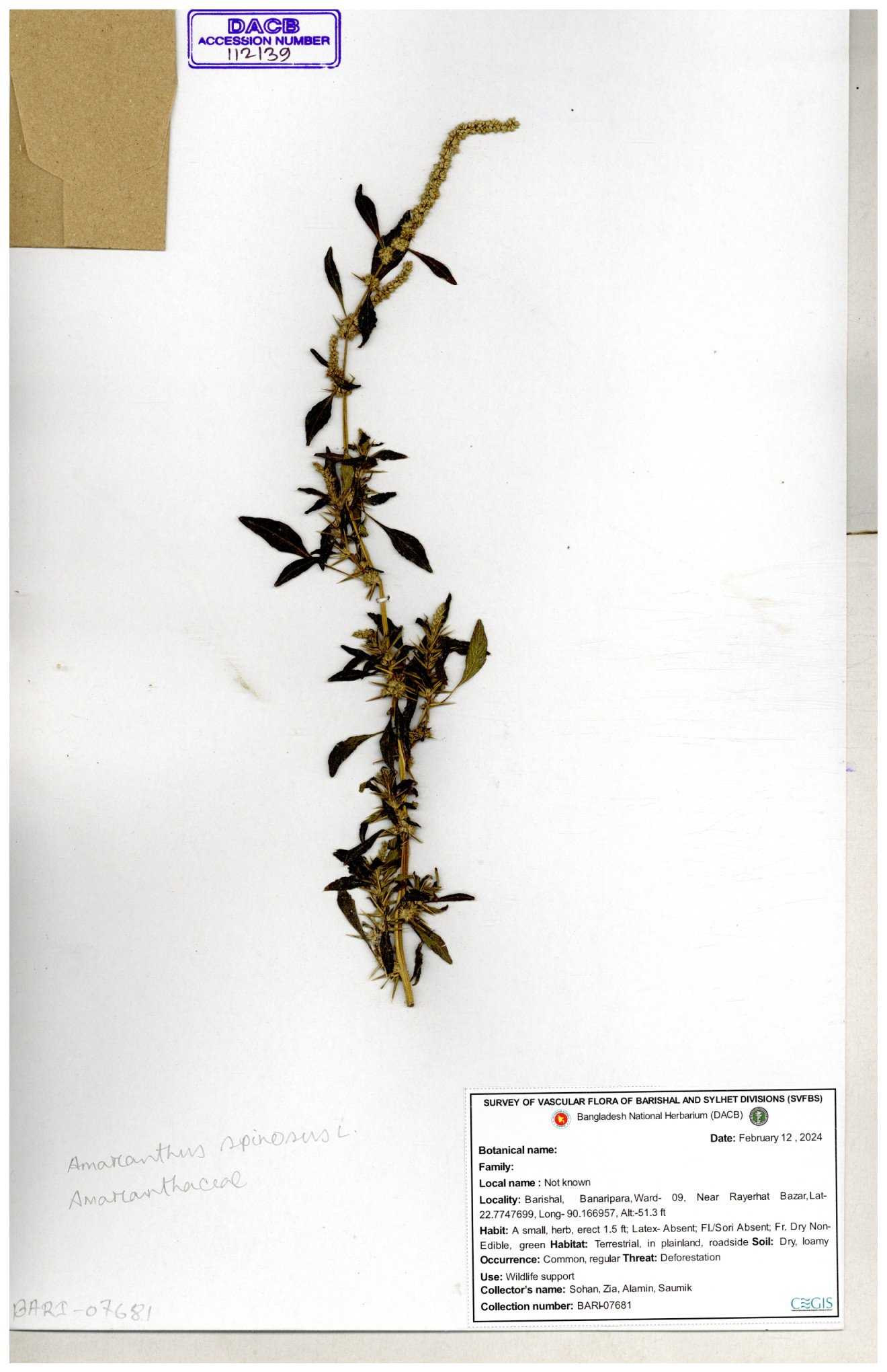 | 64345 | Amaranthaceae | Amaranthus viridis L. | Mominur Rahman, Al amin & Kamrul Islam | JCR-1489 30-11--0001 |
