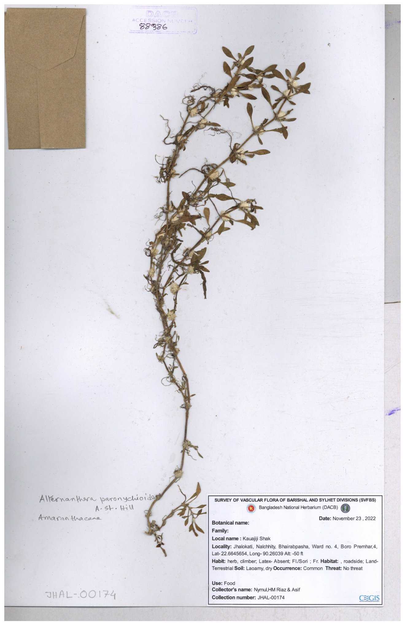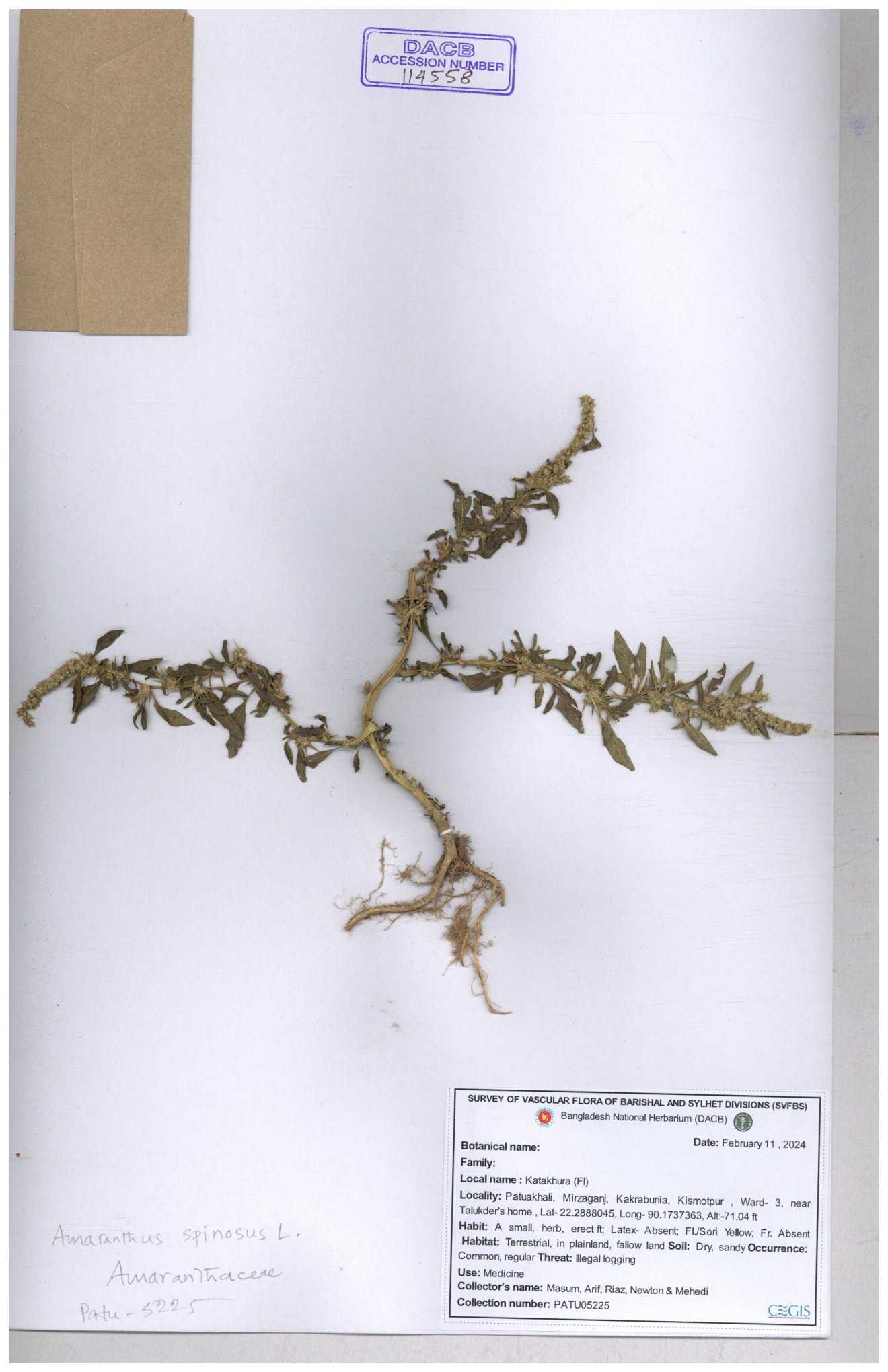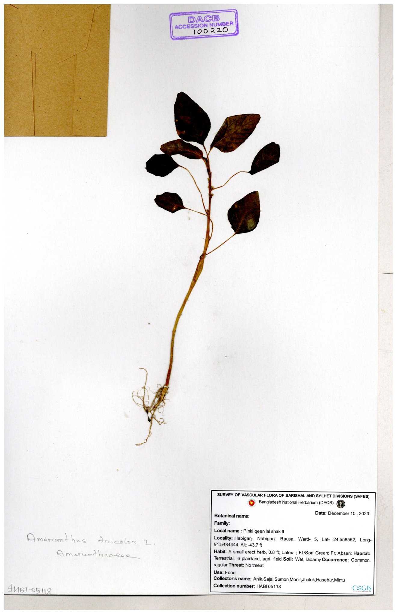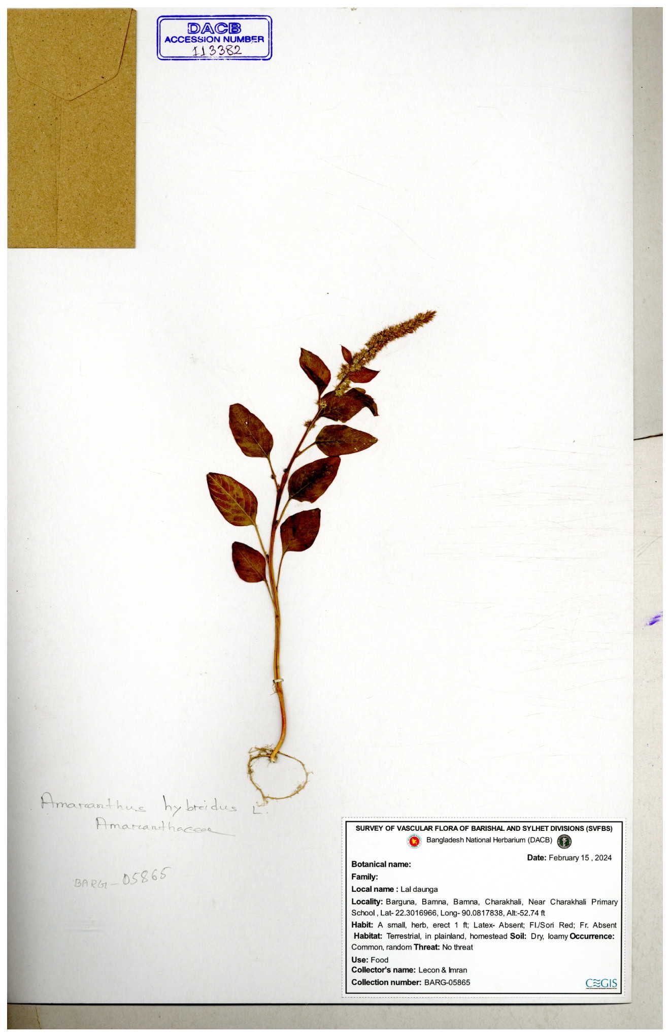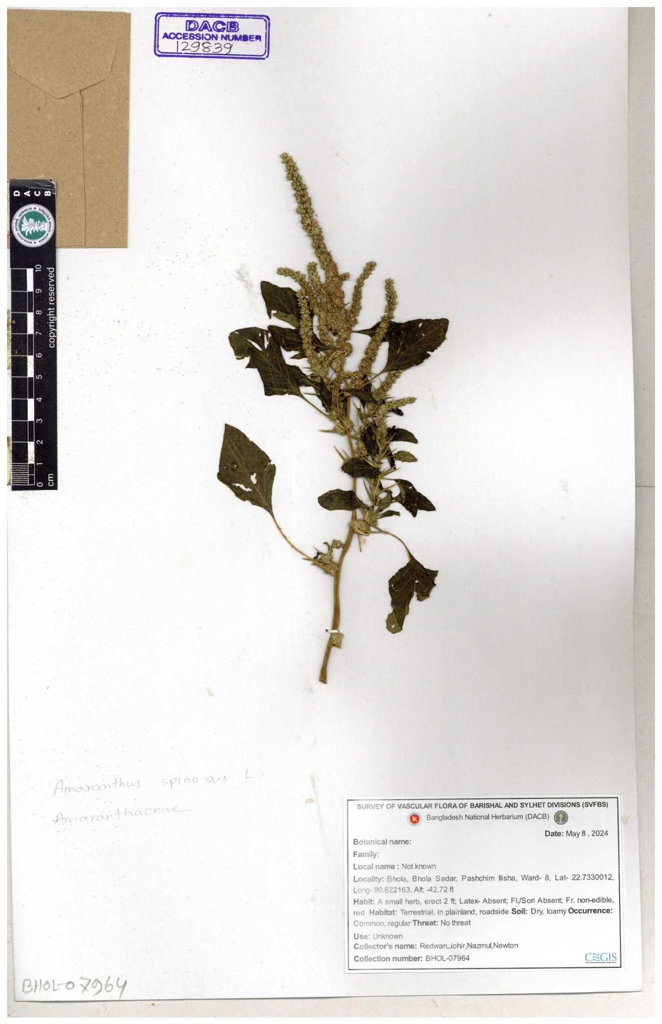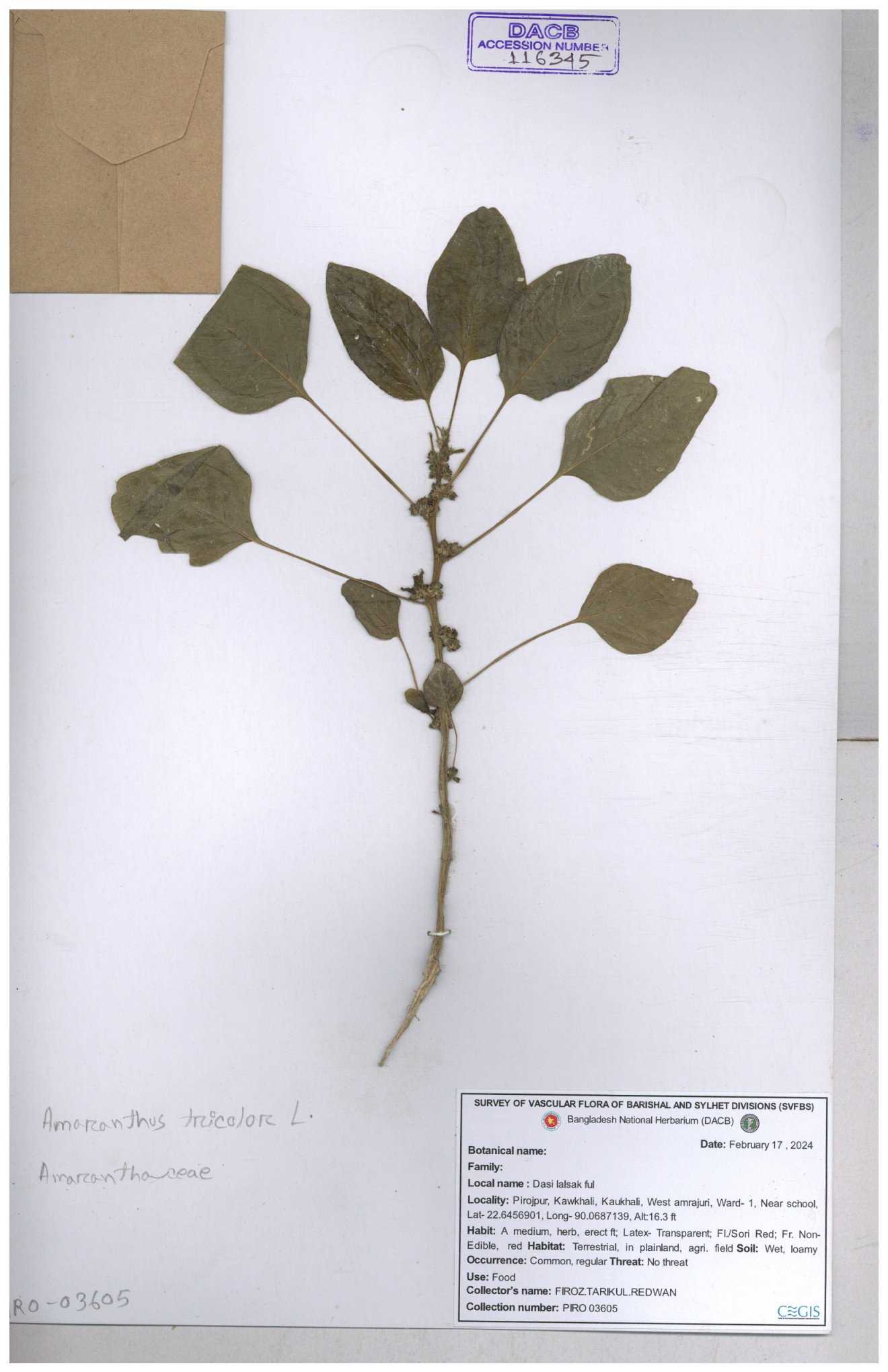 | 64345 | Amaranthaceae | Amaranthus viridis L. | Mominur Rahman, Al amin & Kamrul Islam | JCR-1489 30-11--0001 |