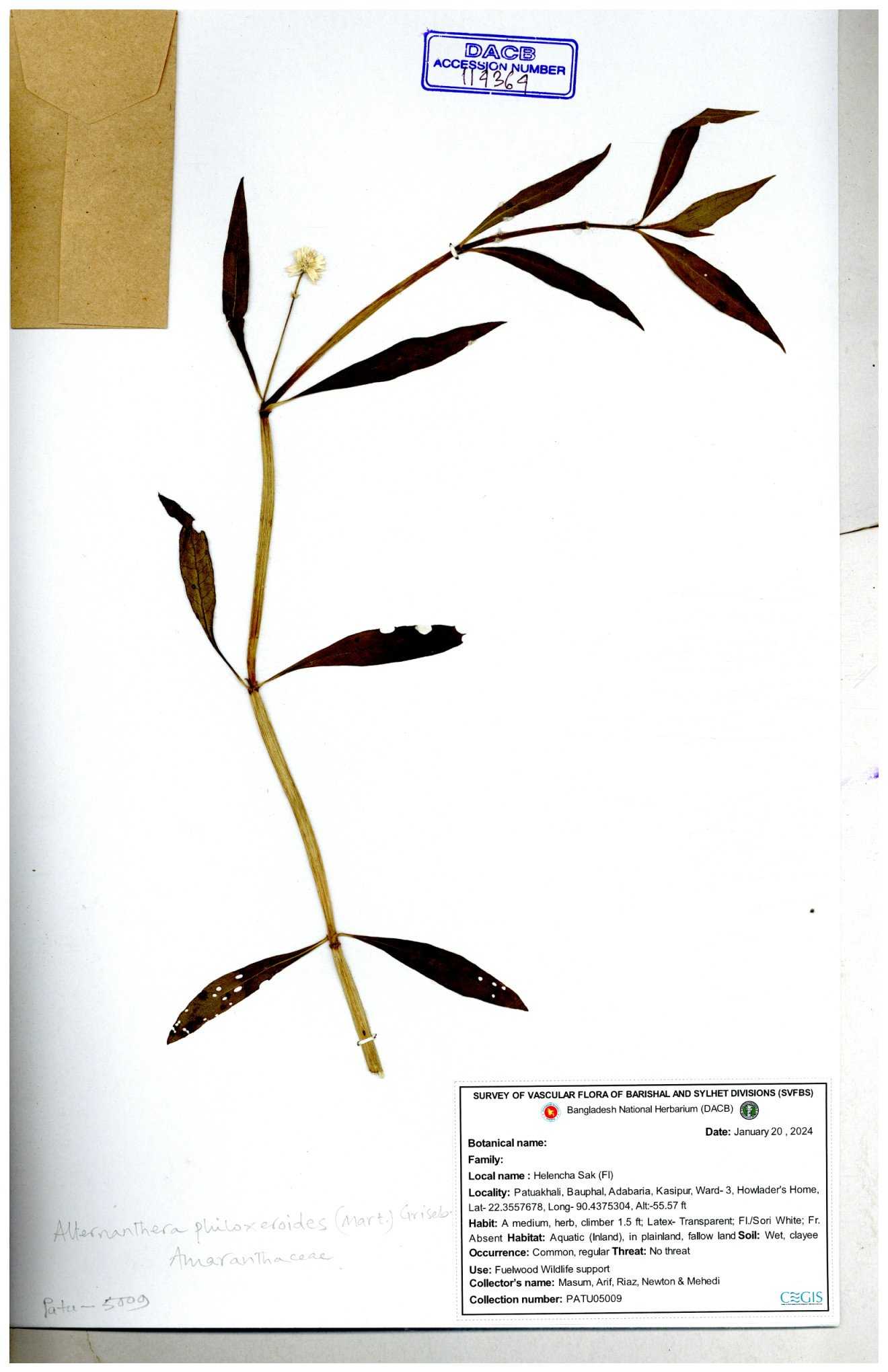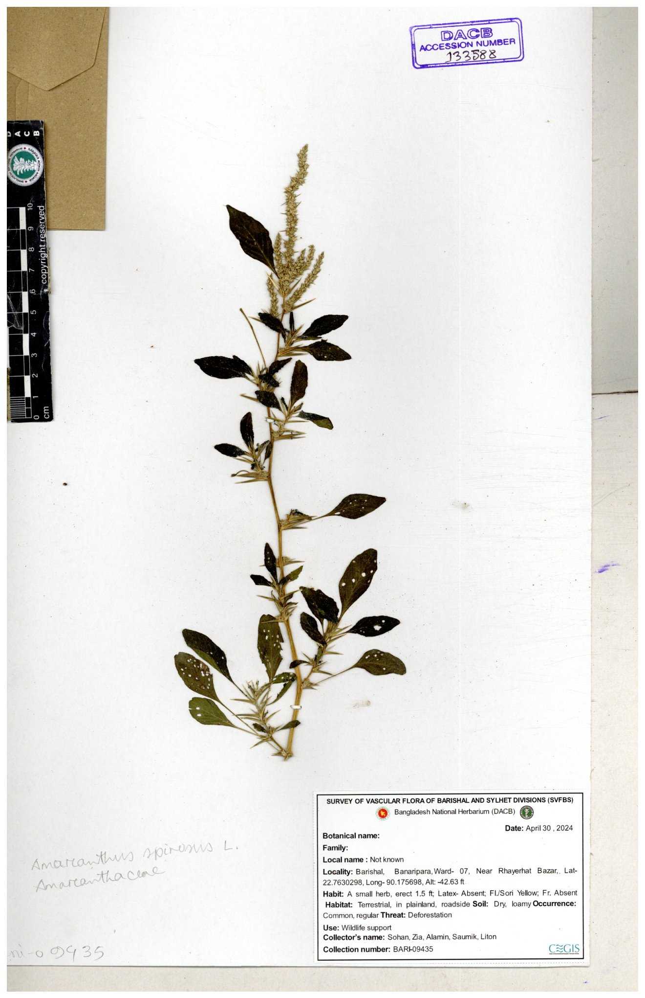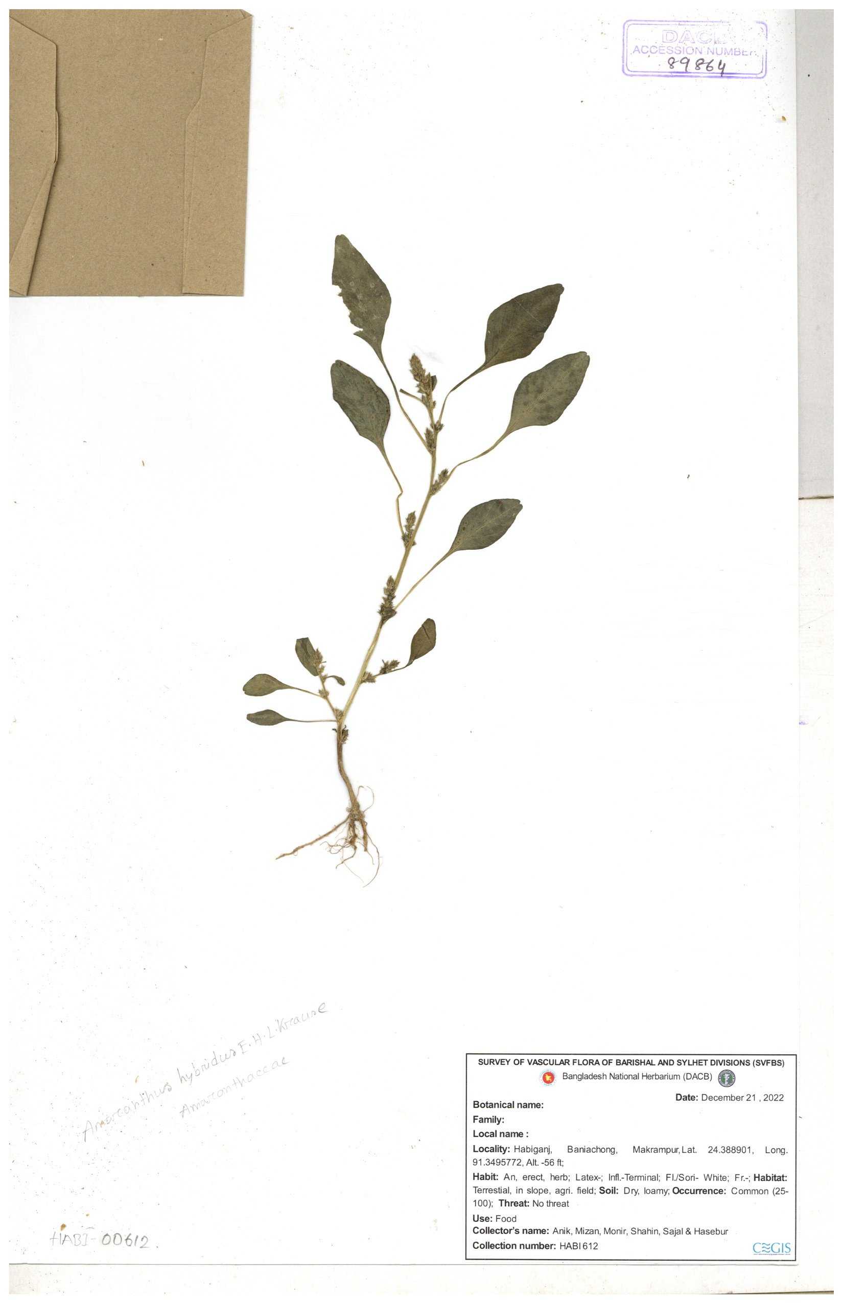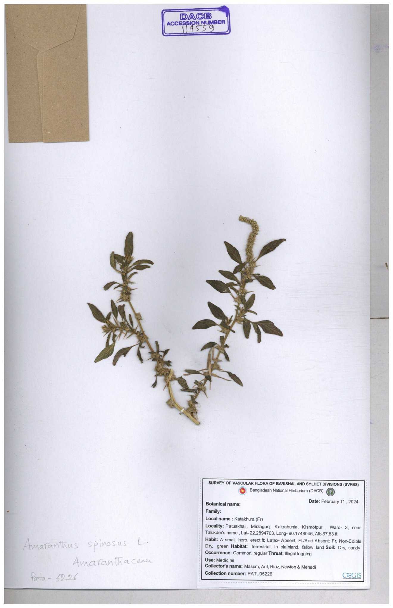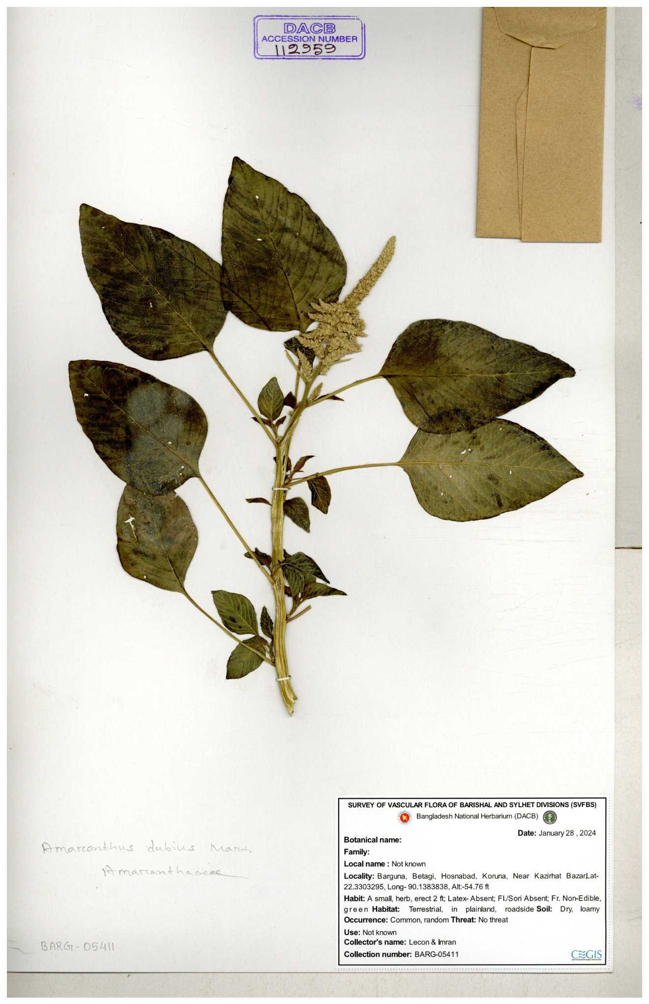 | 64345 | Amaranthaceae | Amaranthus viridis L. | Mominur Rahman, Al amin & Kamrul Islam | JCR-1489 30-11--0001 |