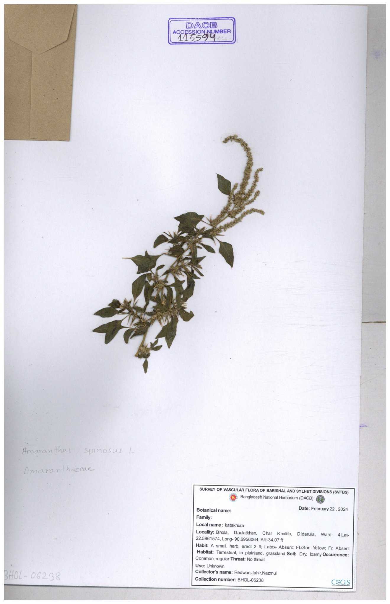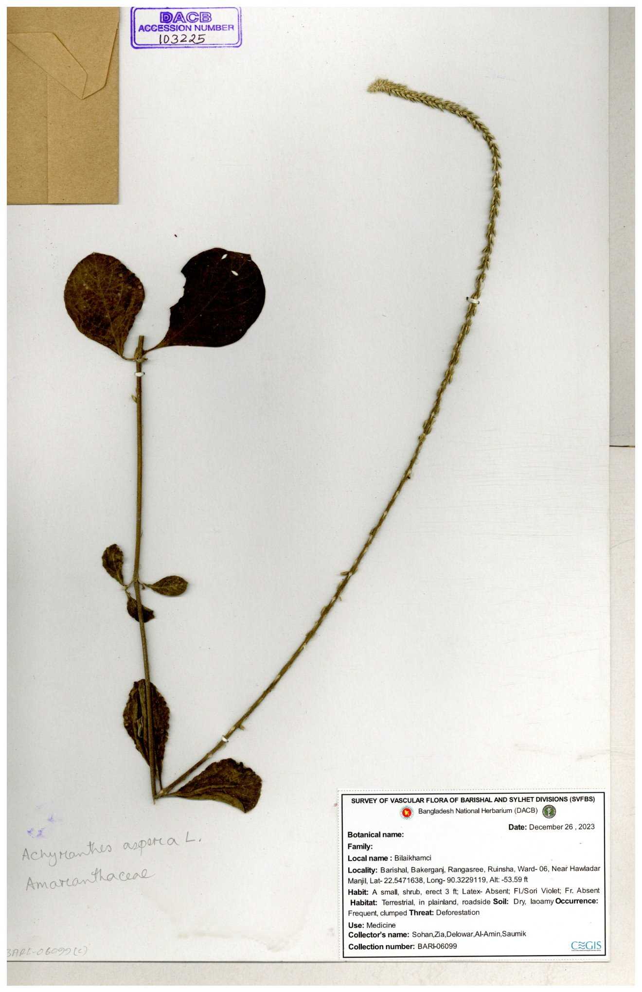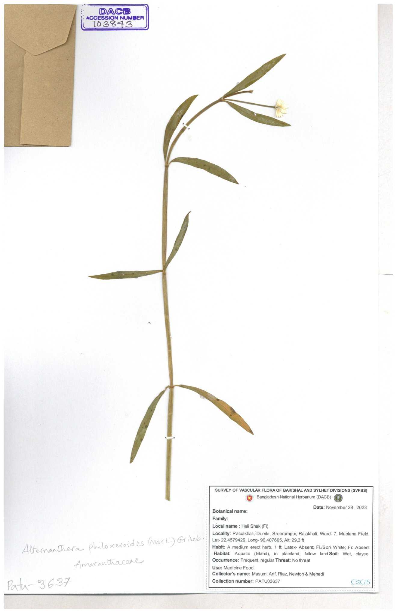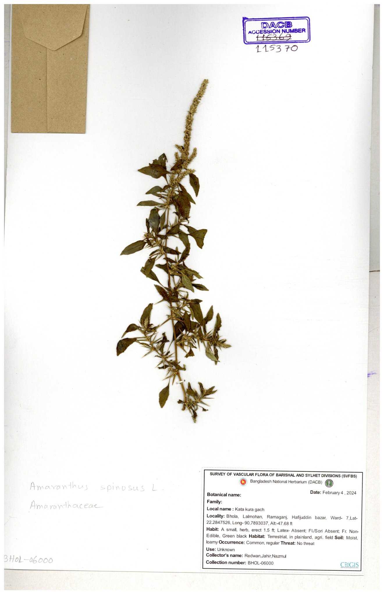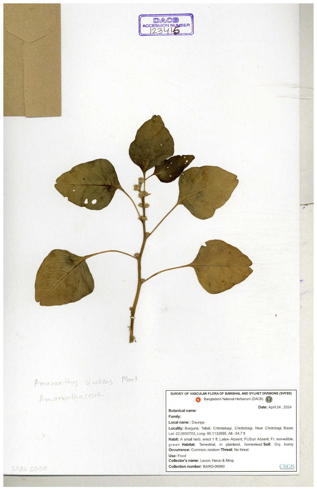 | 64345 | Amaranthaceae | Amaranthus viridis L. | Mominur Rahman, Al amin & Kamrul Islam | JCR-1489 30-11--0001 |