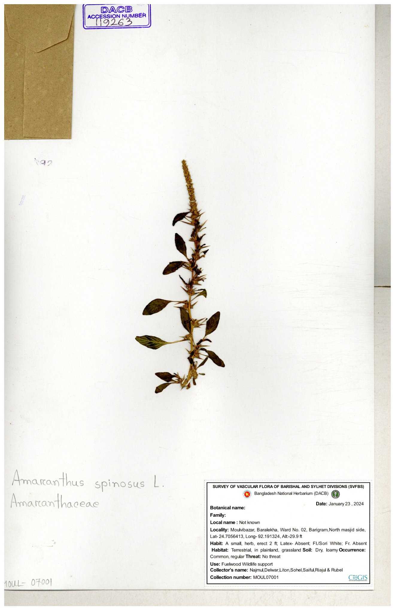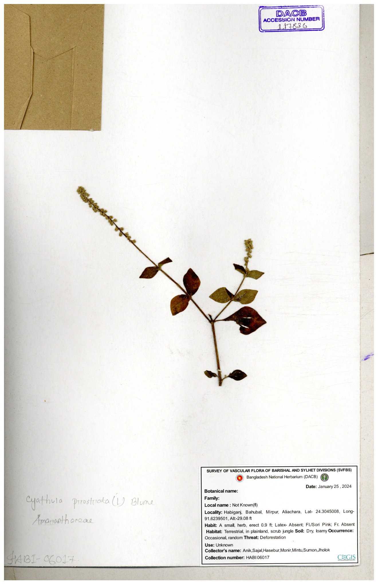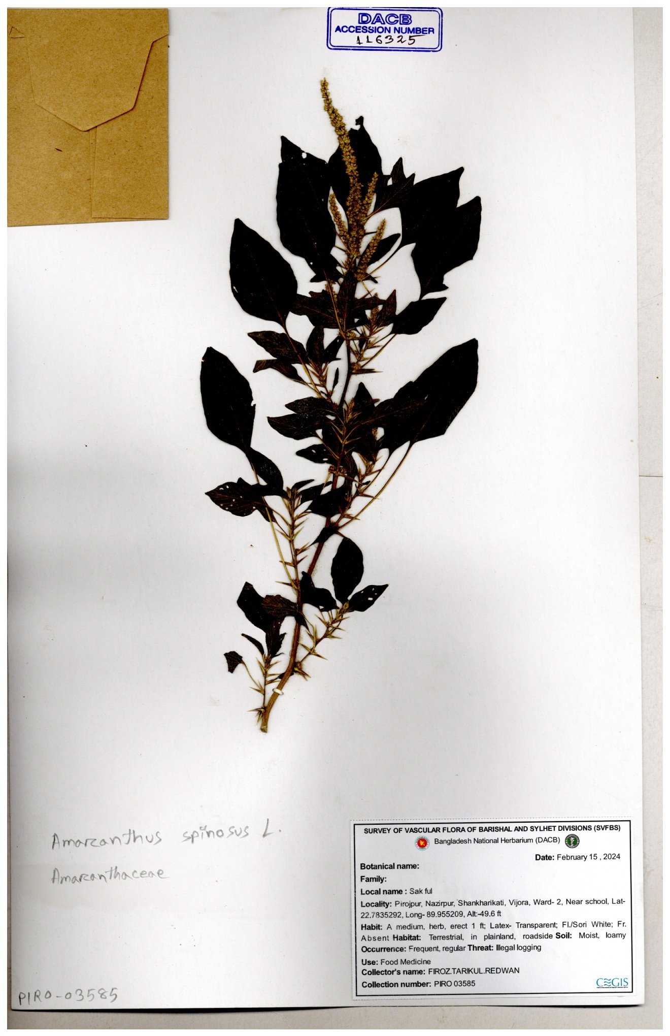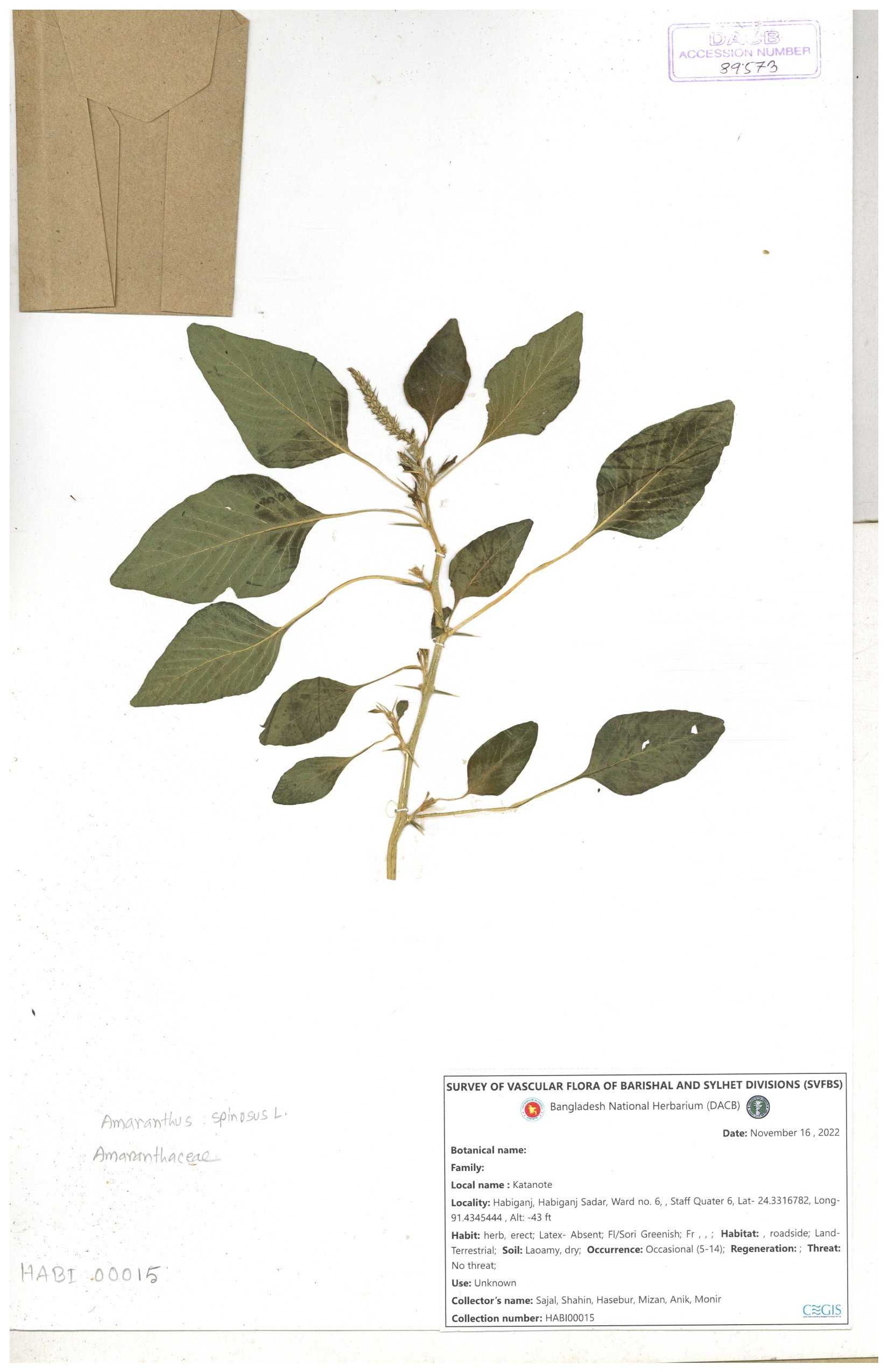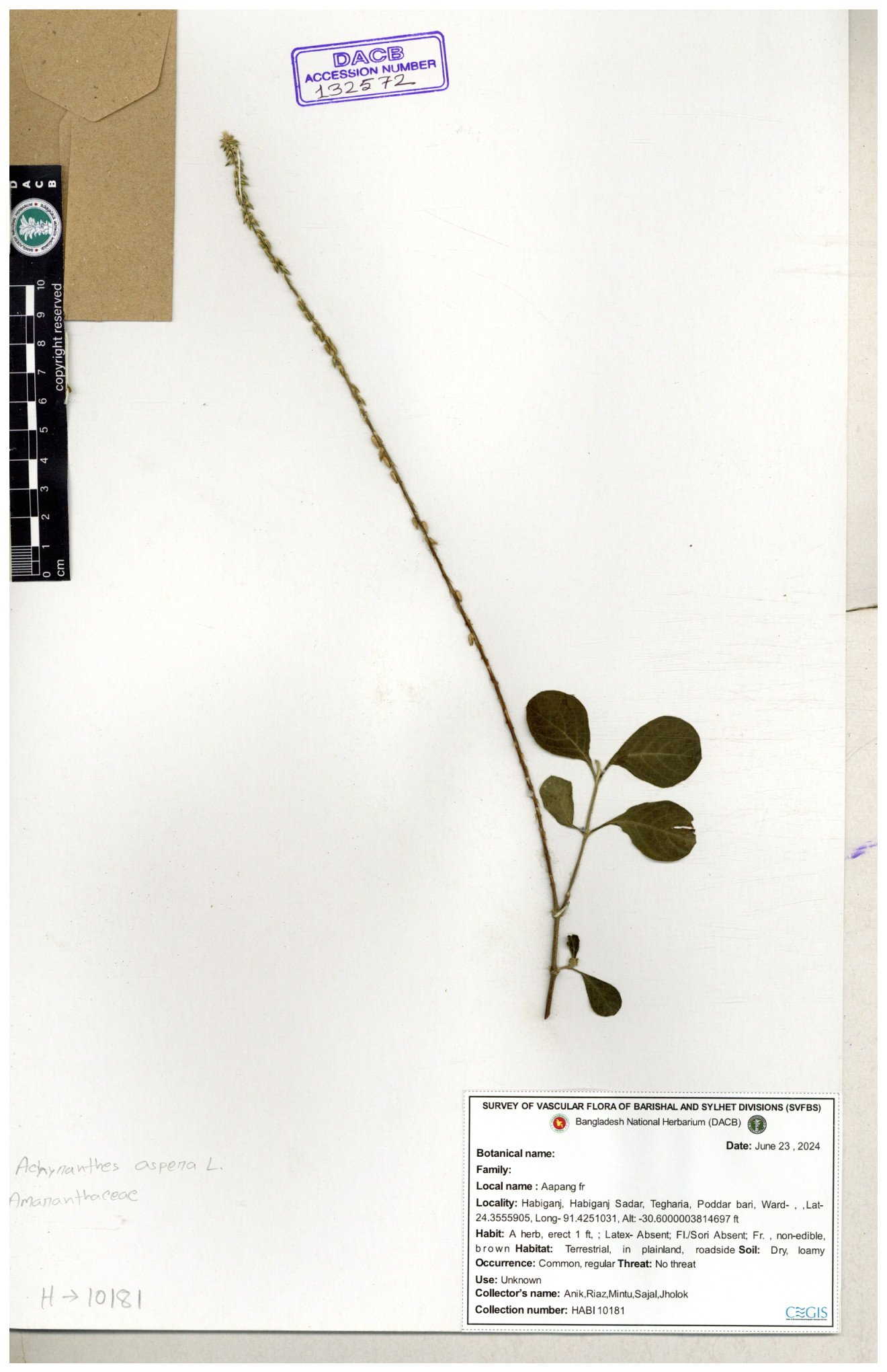 | 64345 | Amaranthaceae | Amaranthus viridis L. | Mominur Rahman, Al amin & Kamrul Islam | JCR-1489 30-11--0001 |
