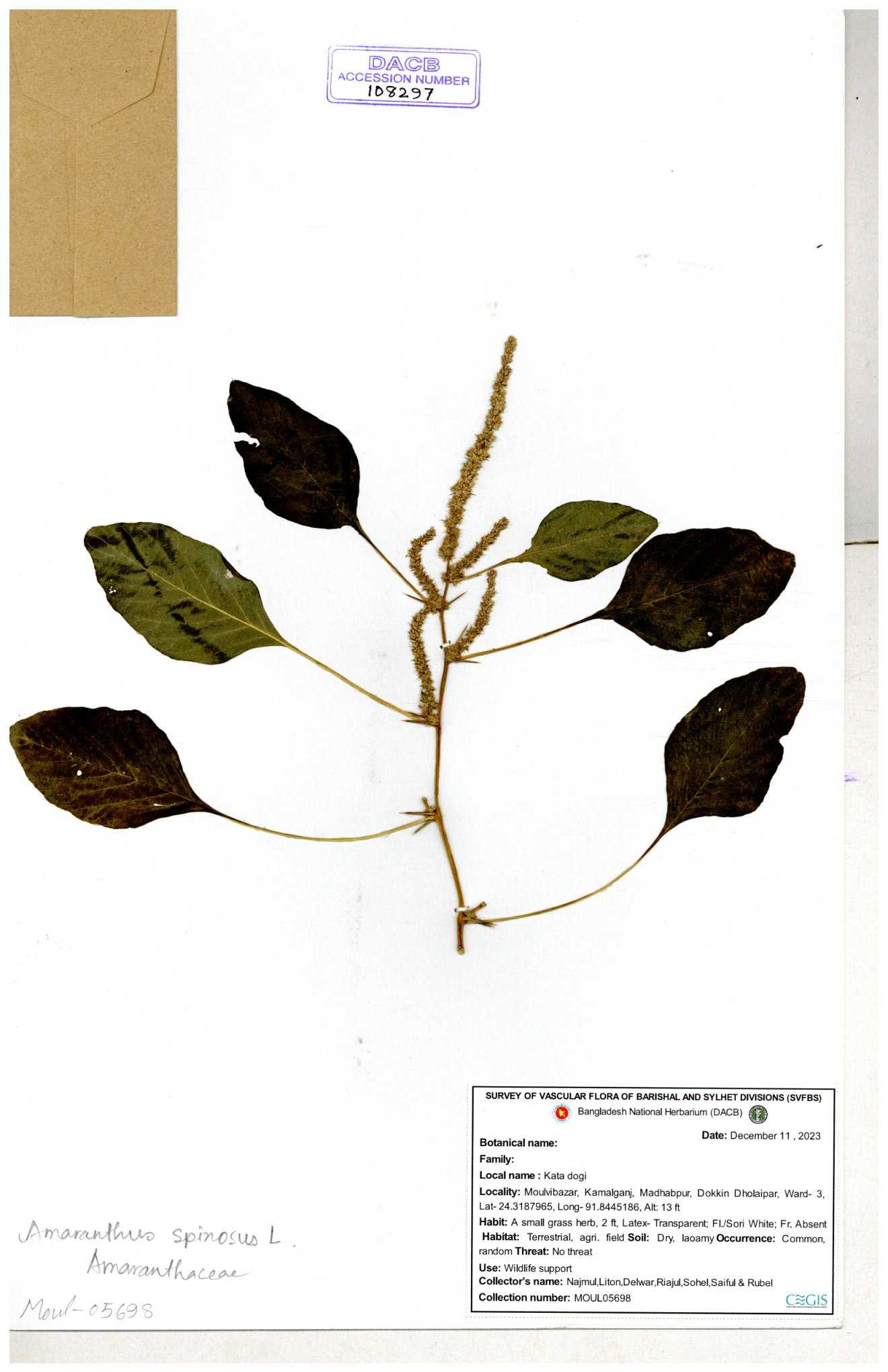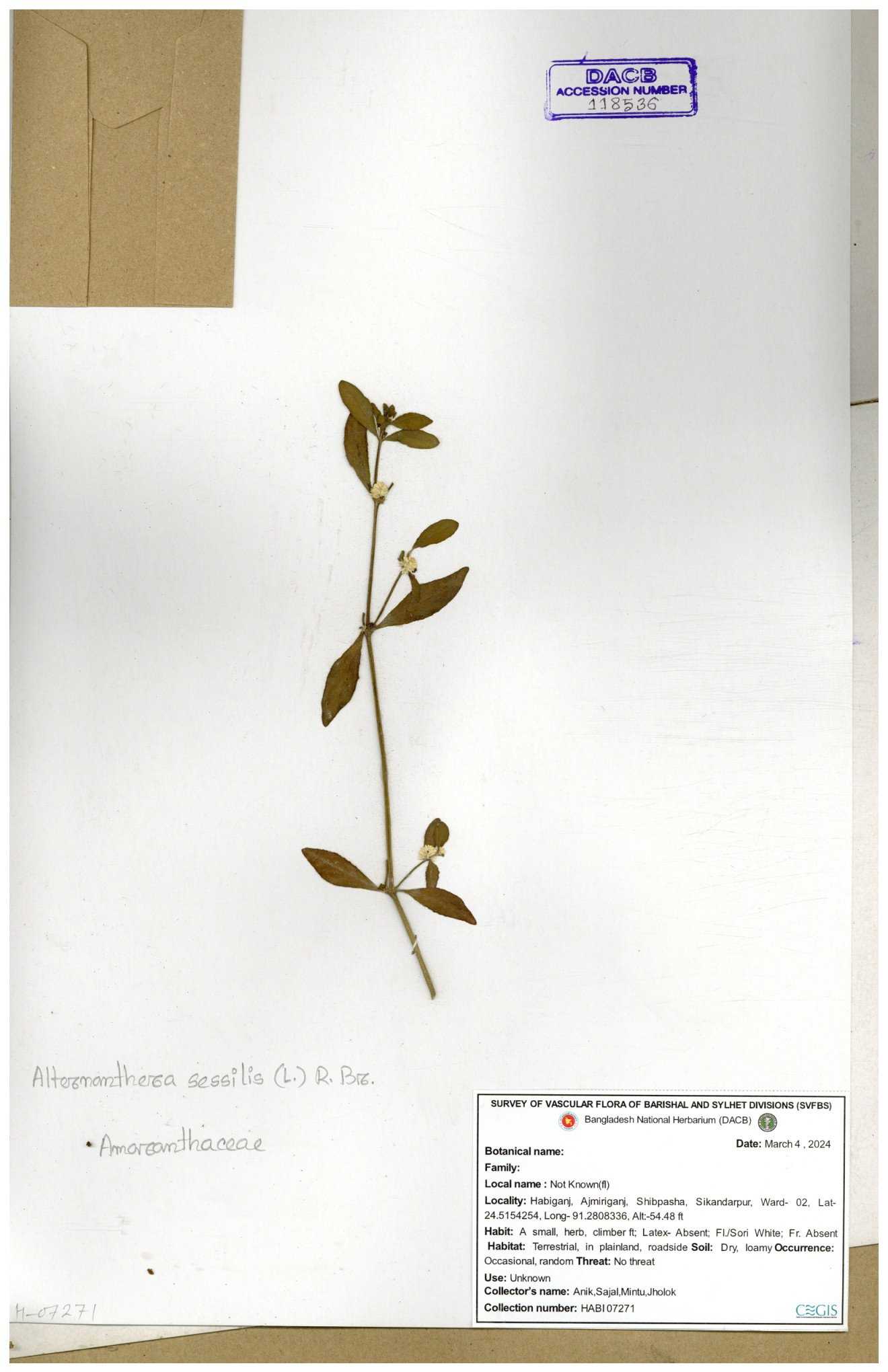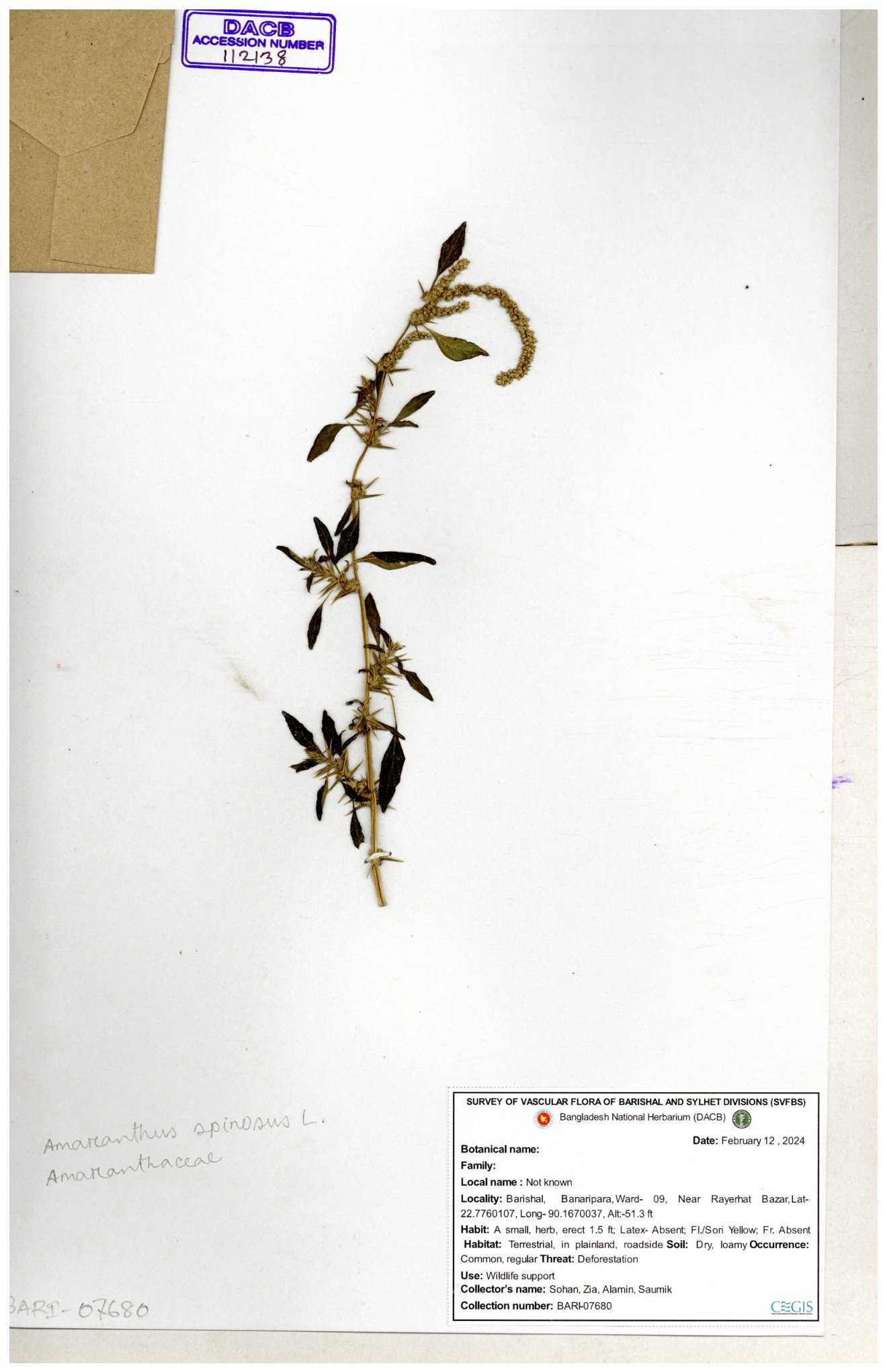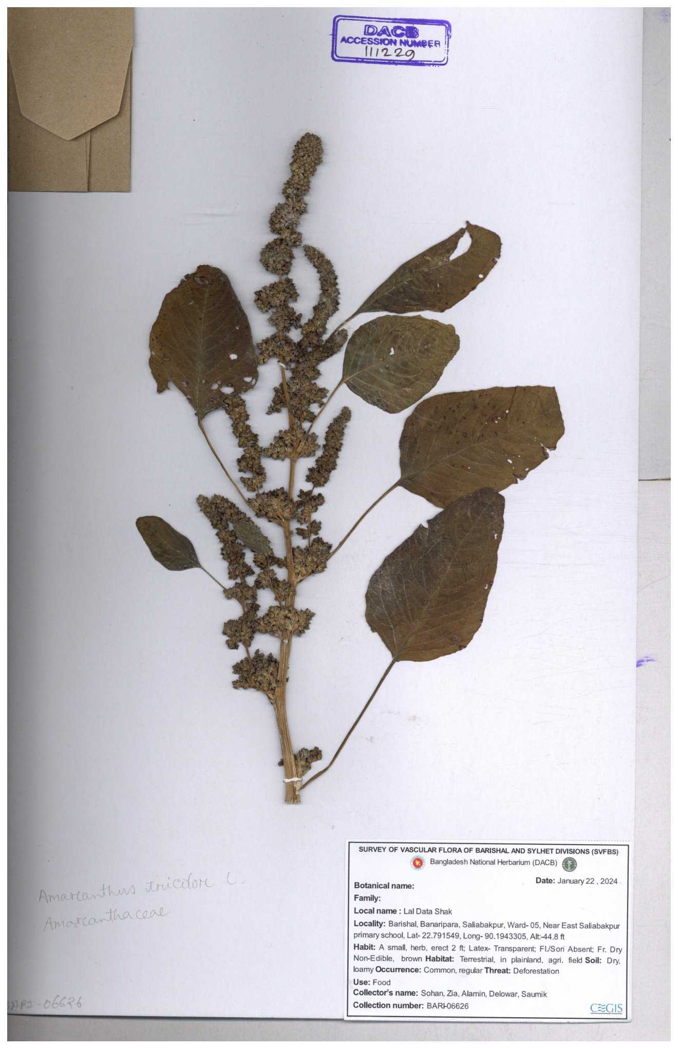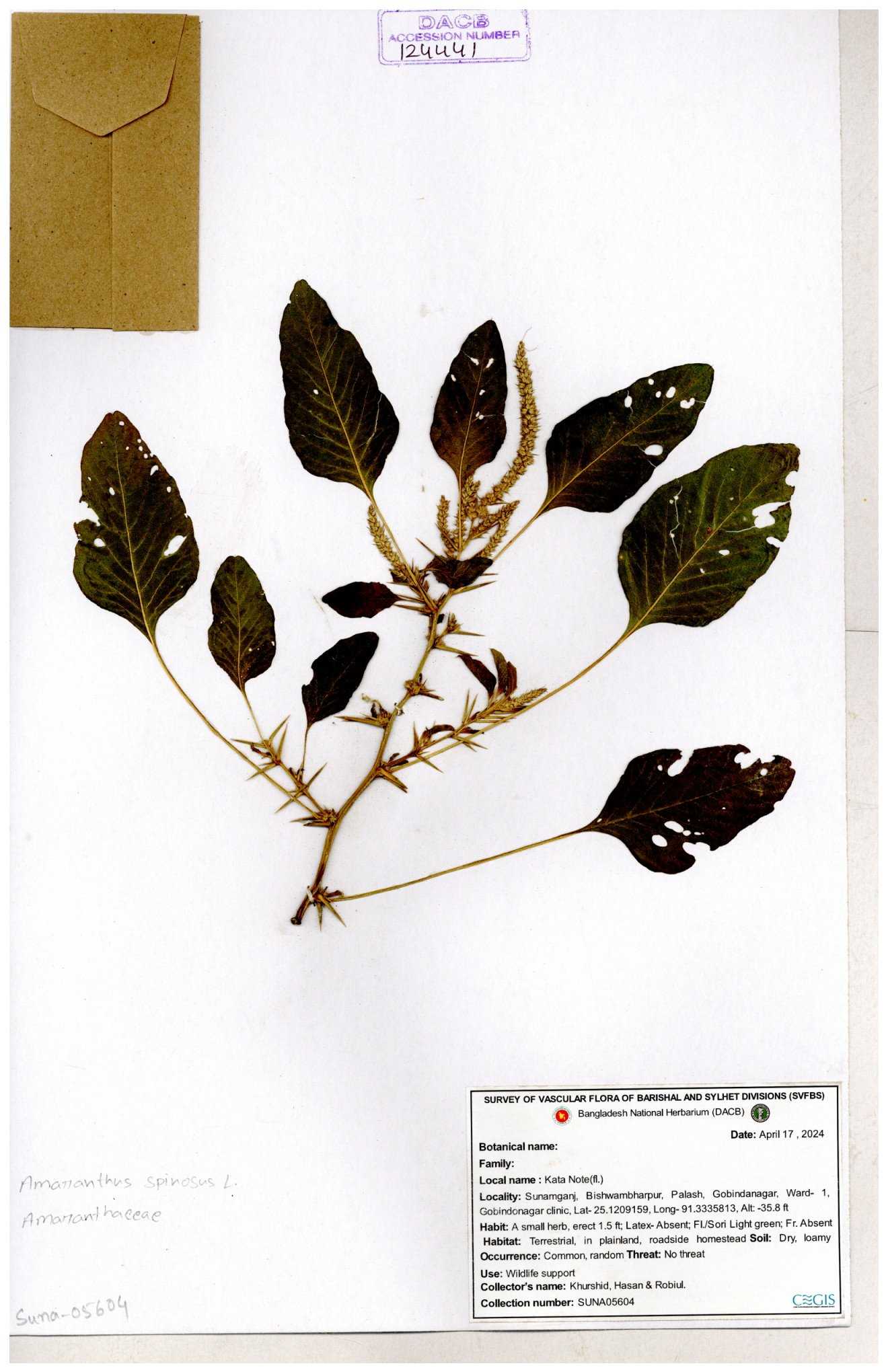 | 64345 | Amaranthaceae | Amaranthus viridis L. | Mominur Rahman, Al amin & Kamrul Islam | JCR-1489 30-11--0001 |