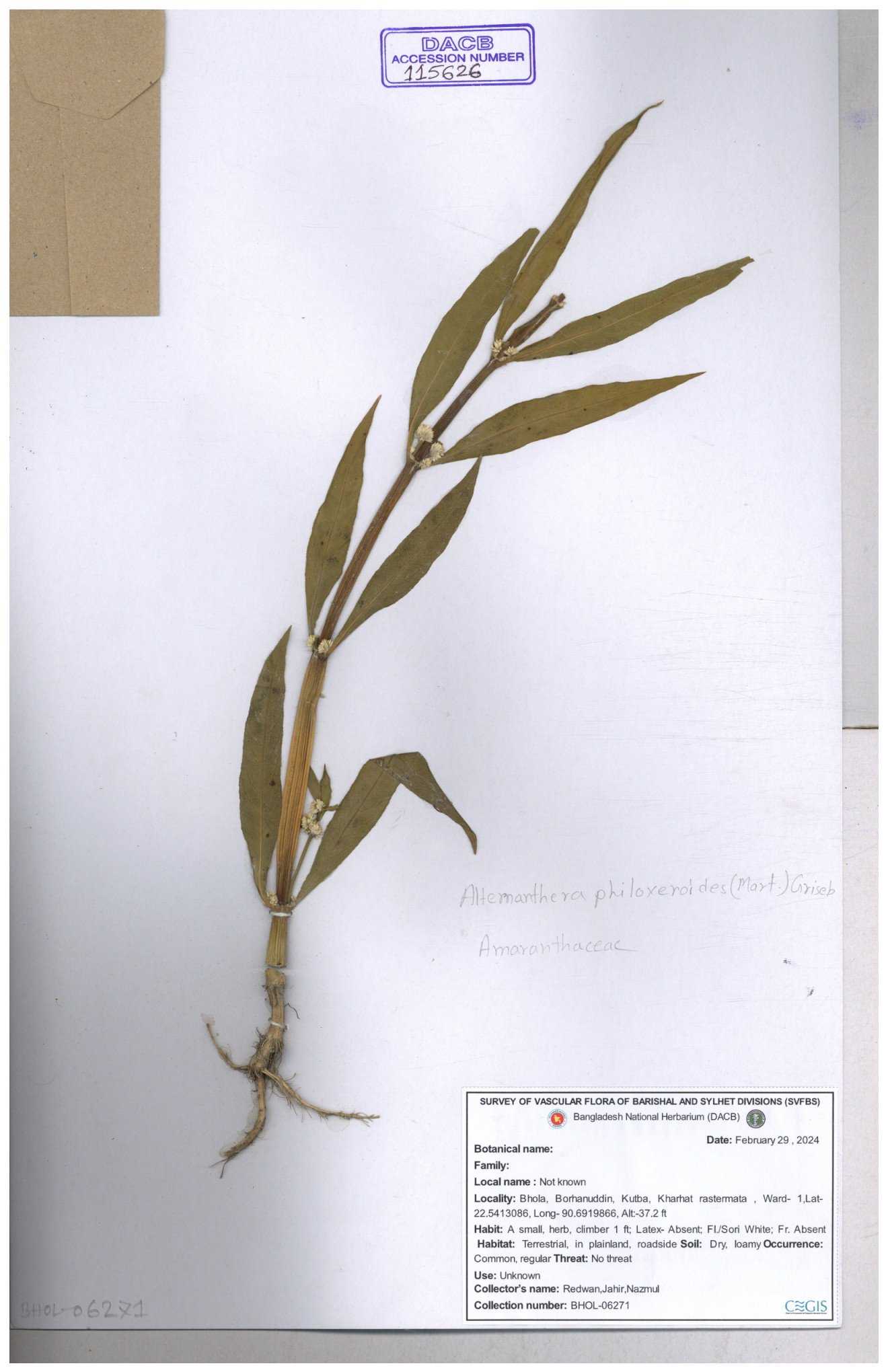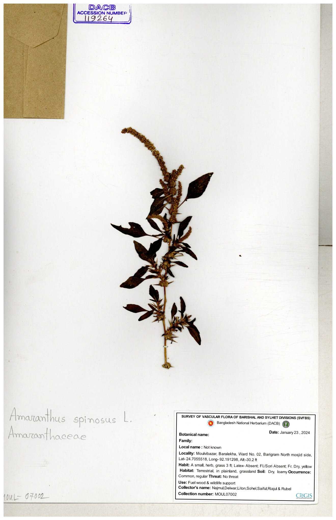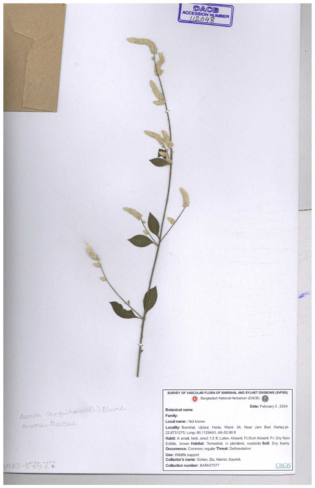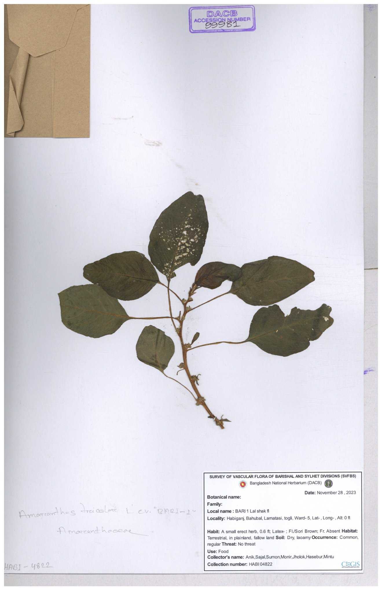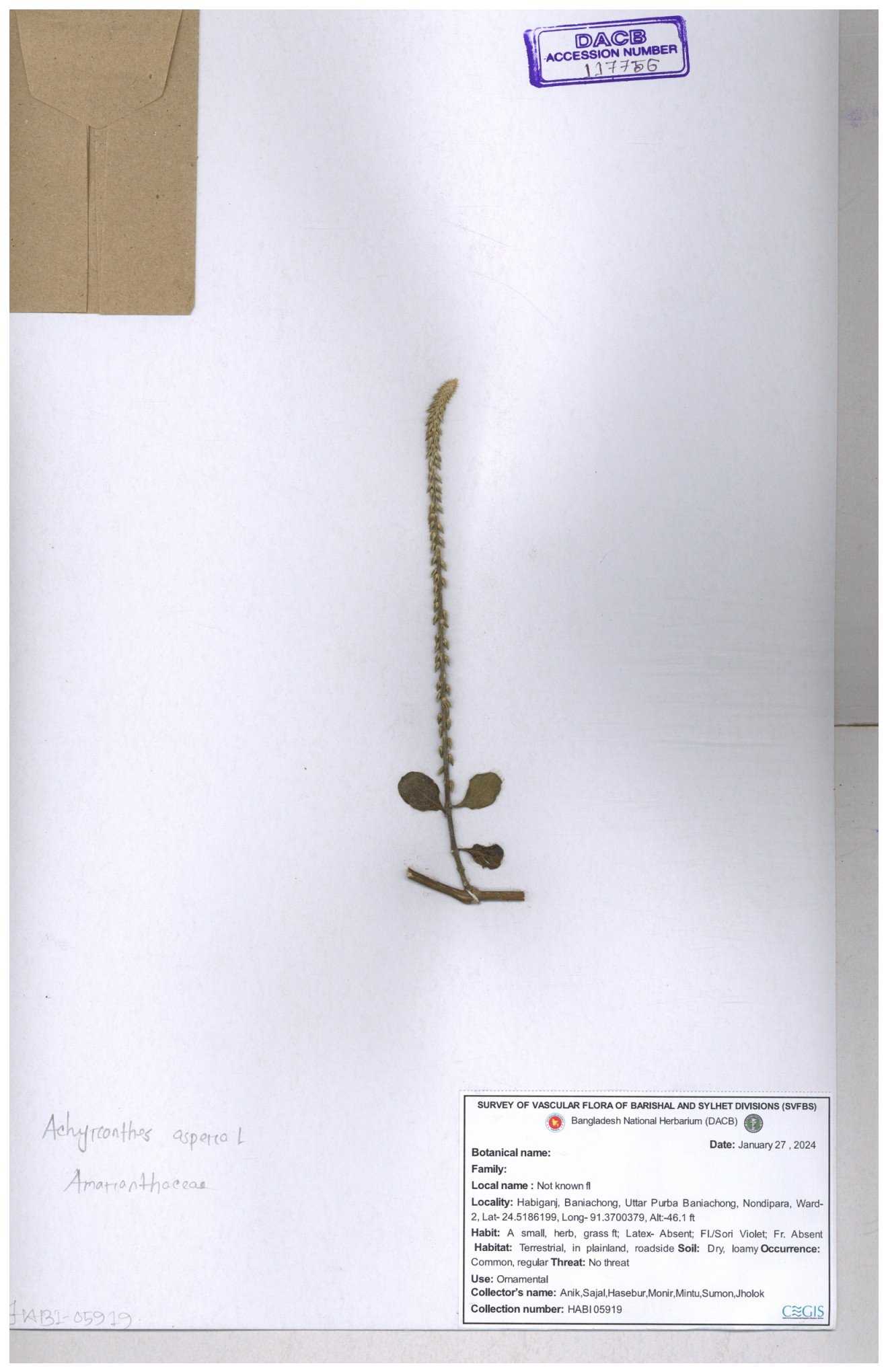 | 64345 | Amaranthaceae | Amaranthus viridis L. | Mominur Rahman, Al amin & Kamrul Islam | JCR-1489 30-11--0001 |