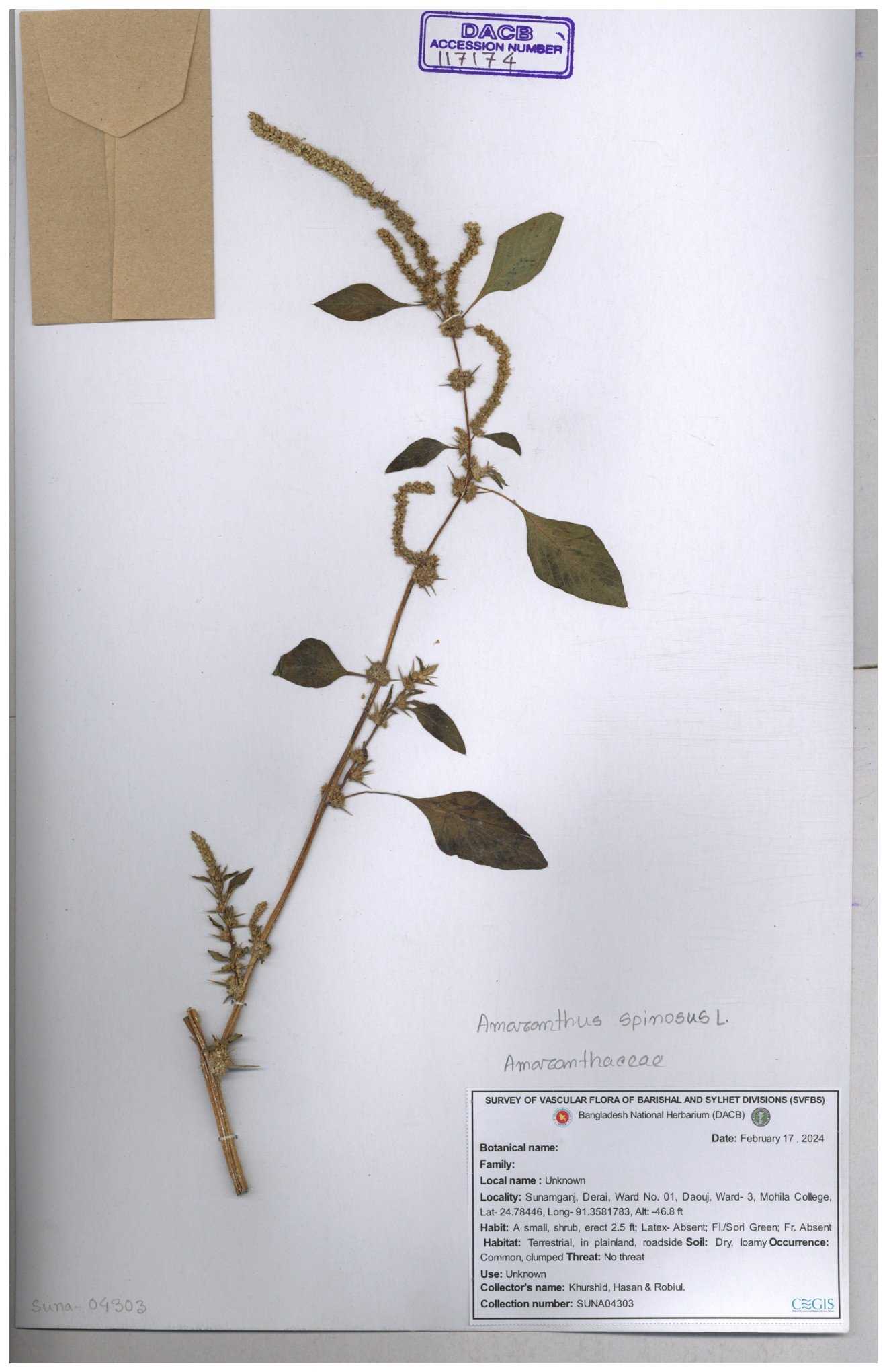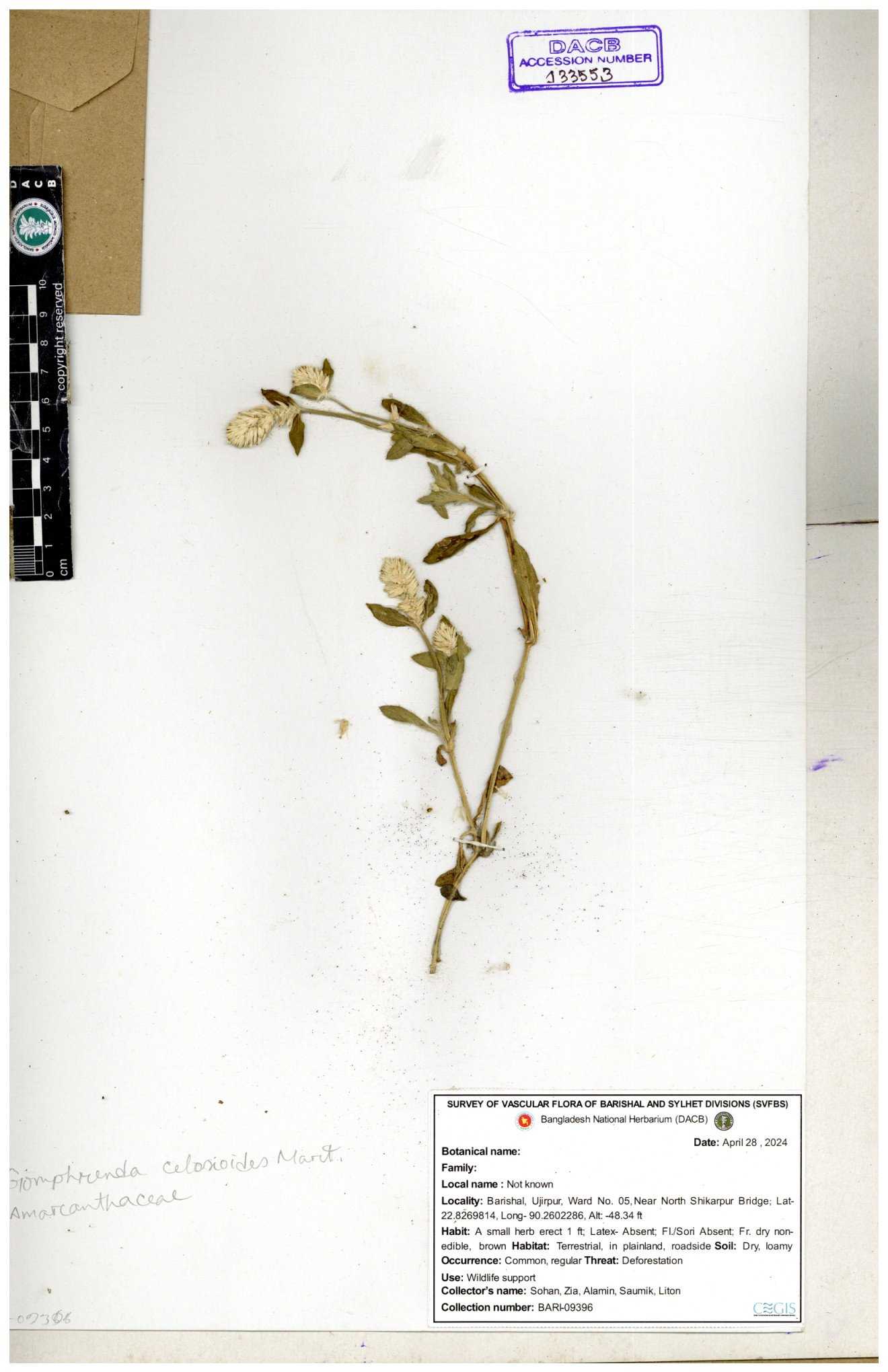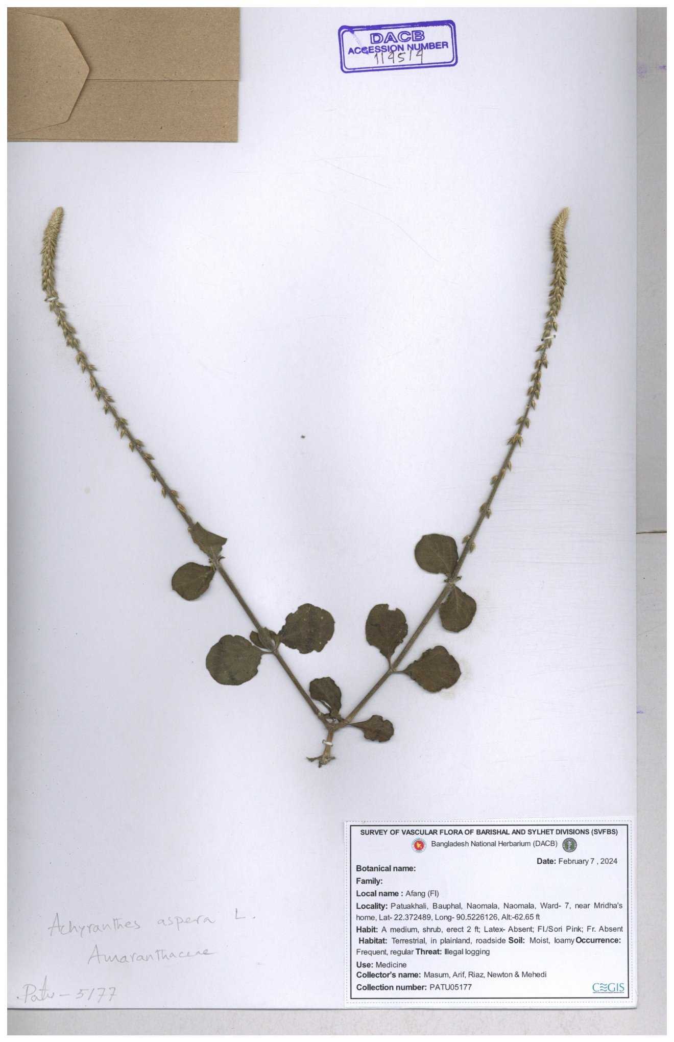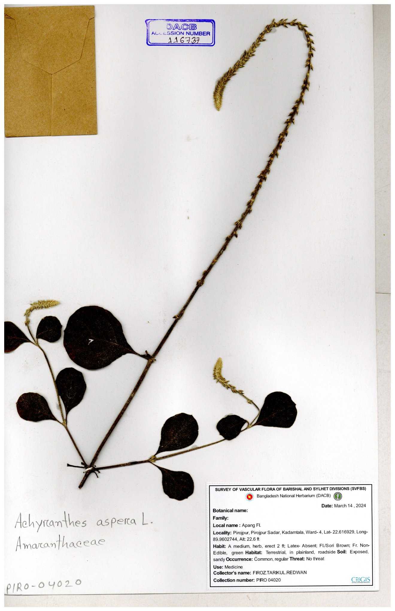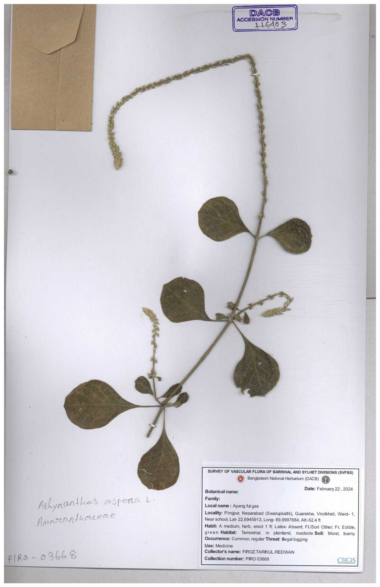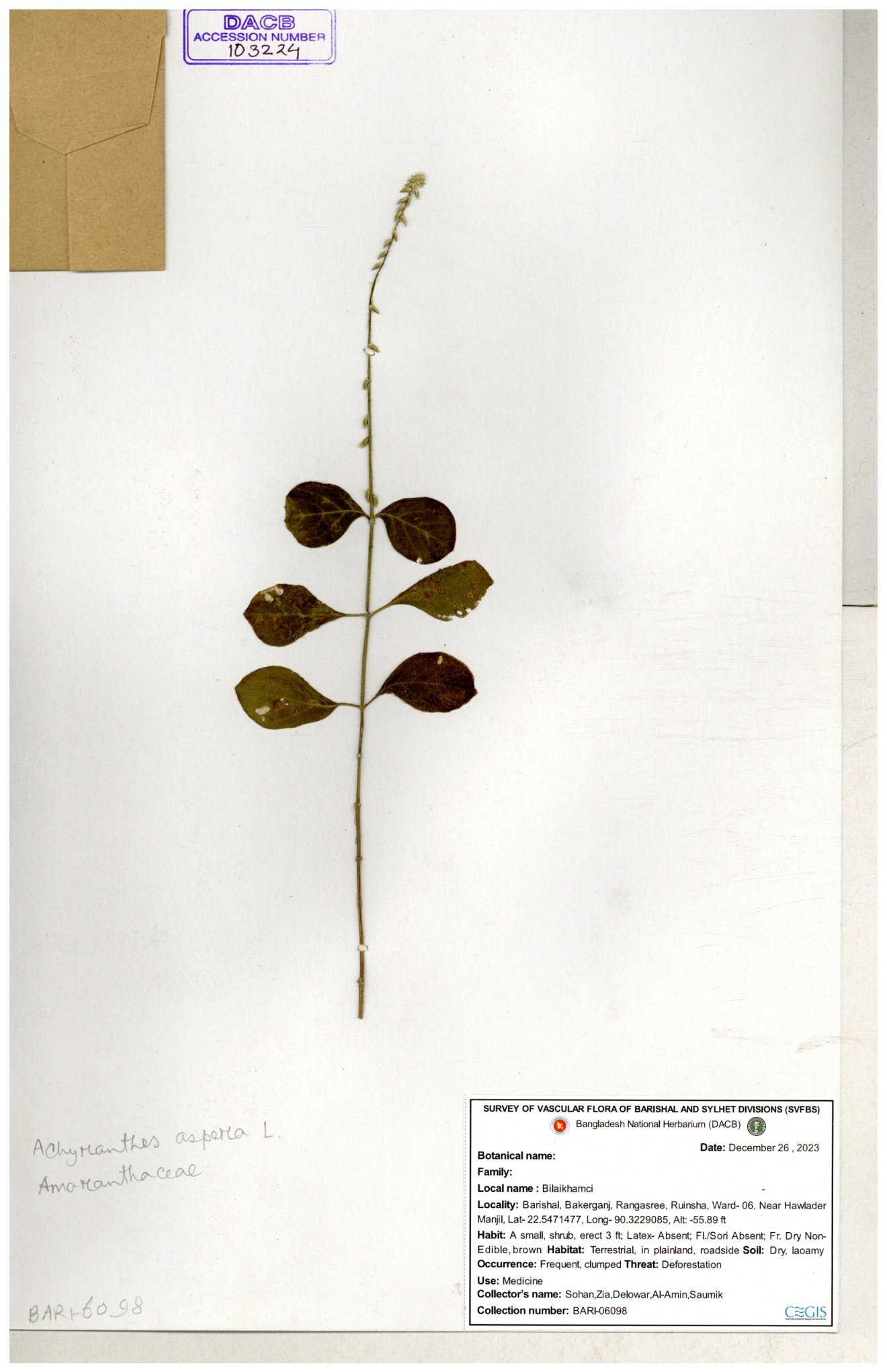 | 64345 | Amaranthaceae | Amaranthus viridis L. | Mominur Rahman, Al amin & Kamrul Islam | JCR-1489 30-11--0001 |