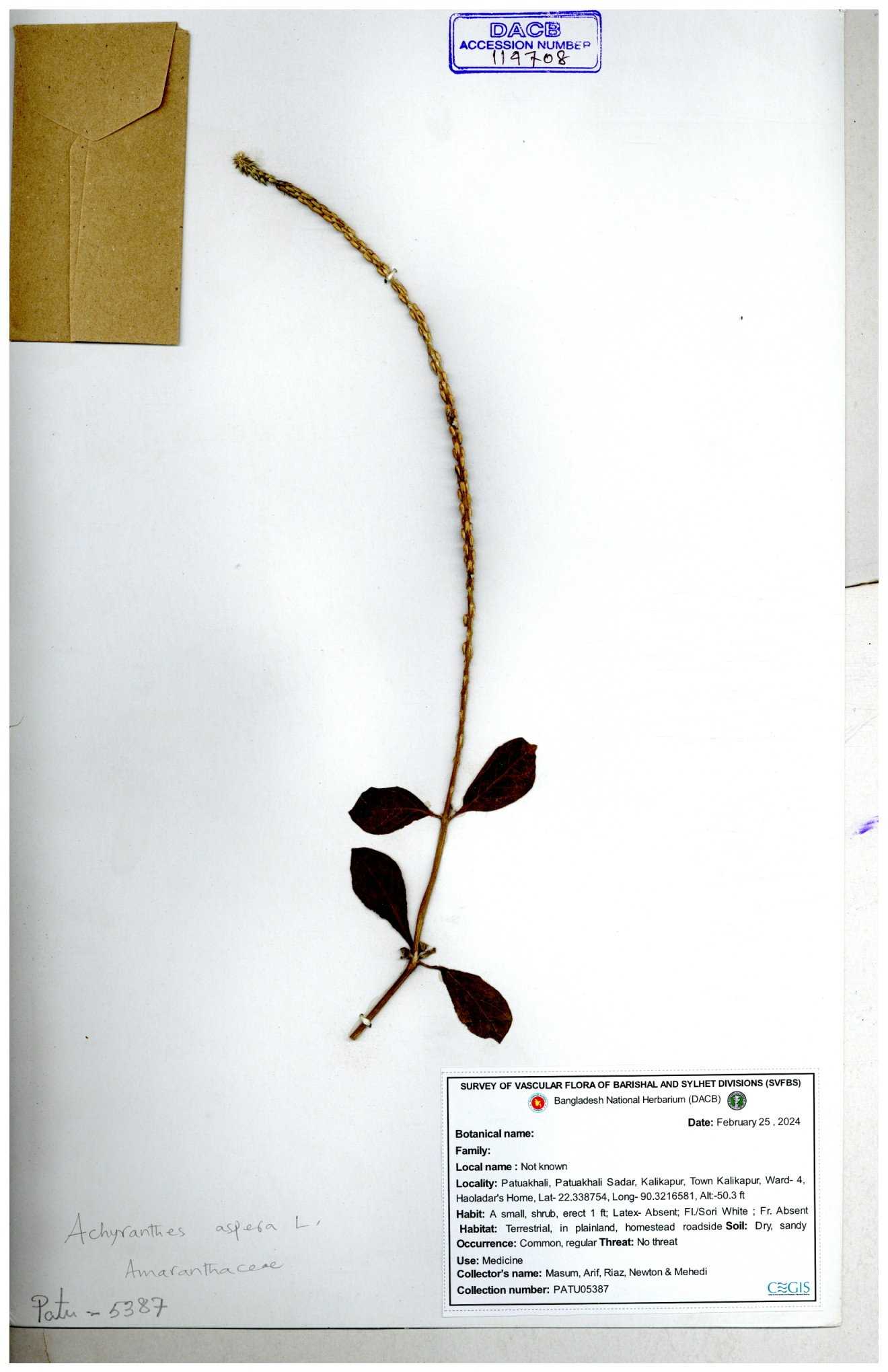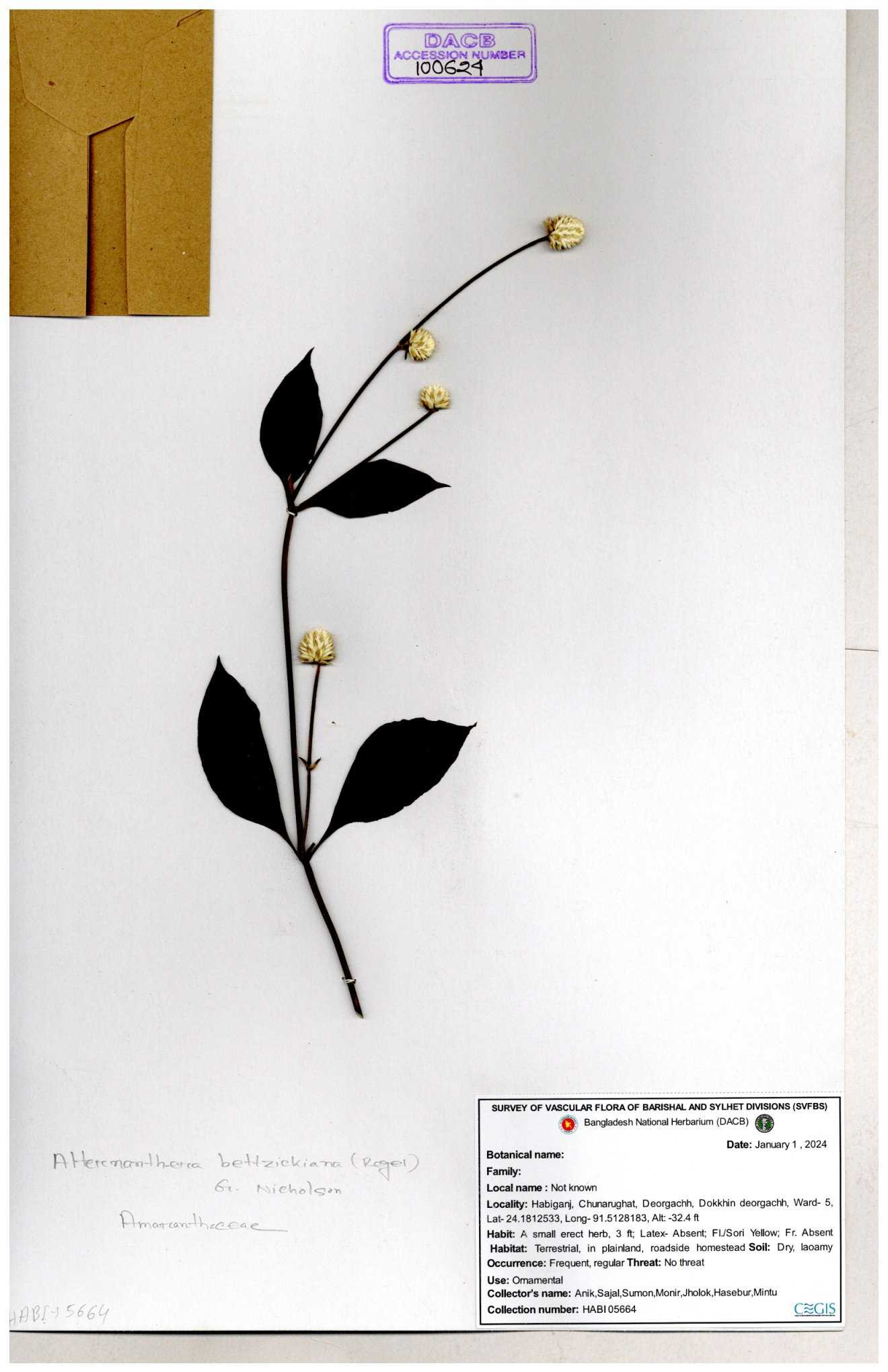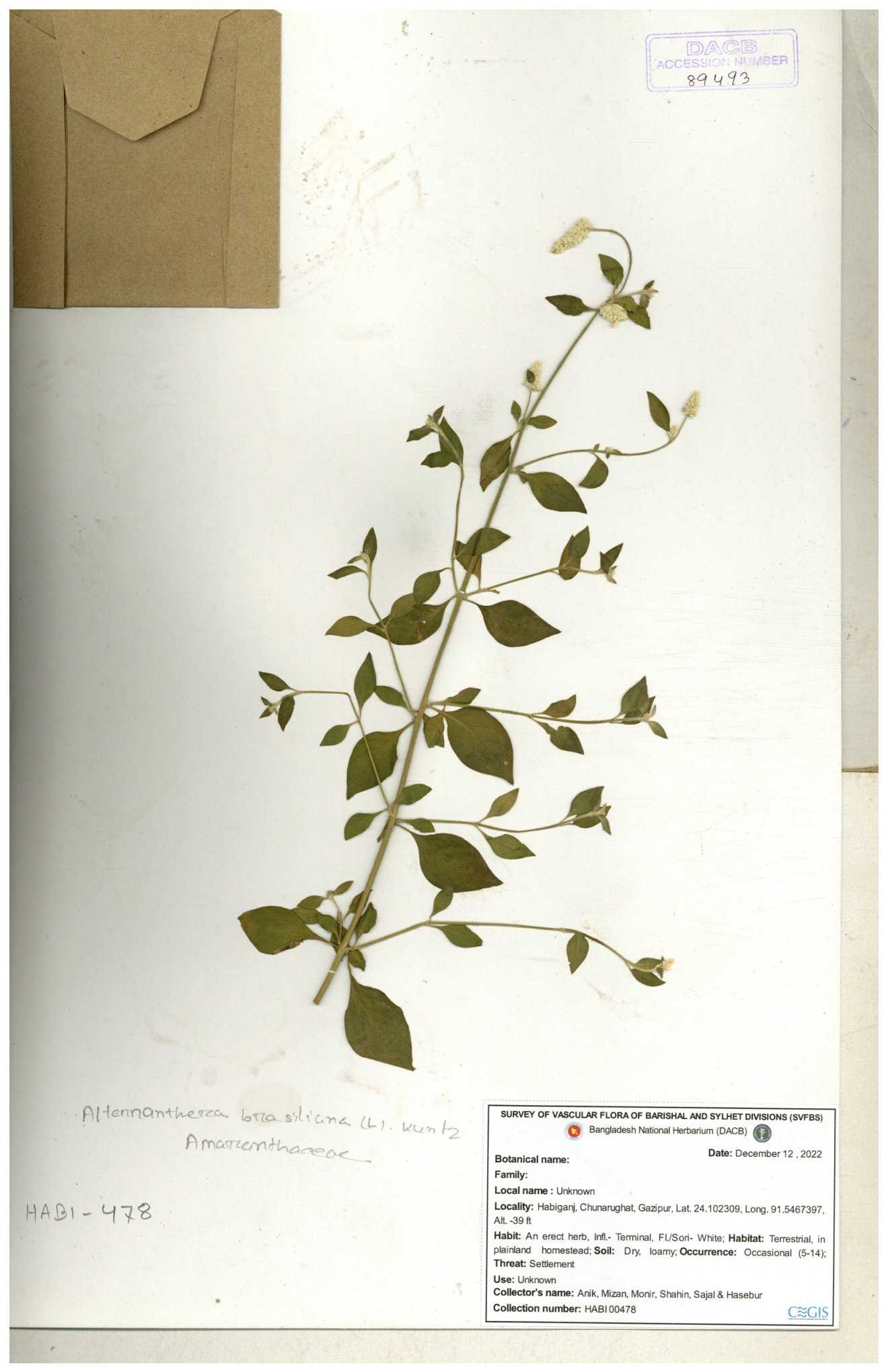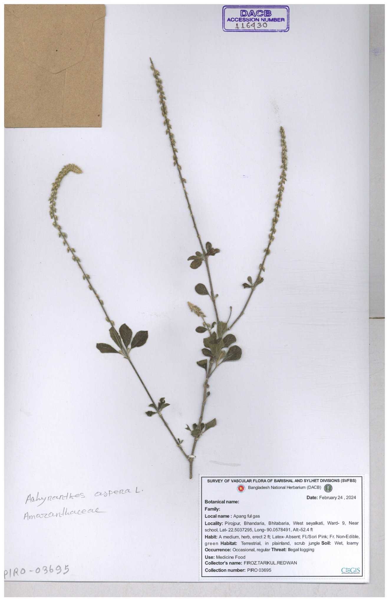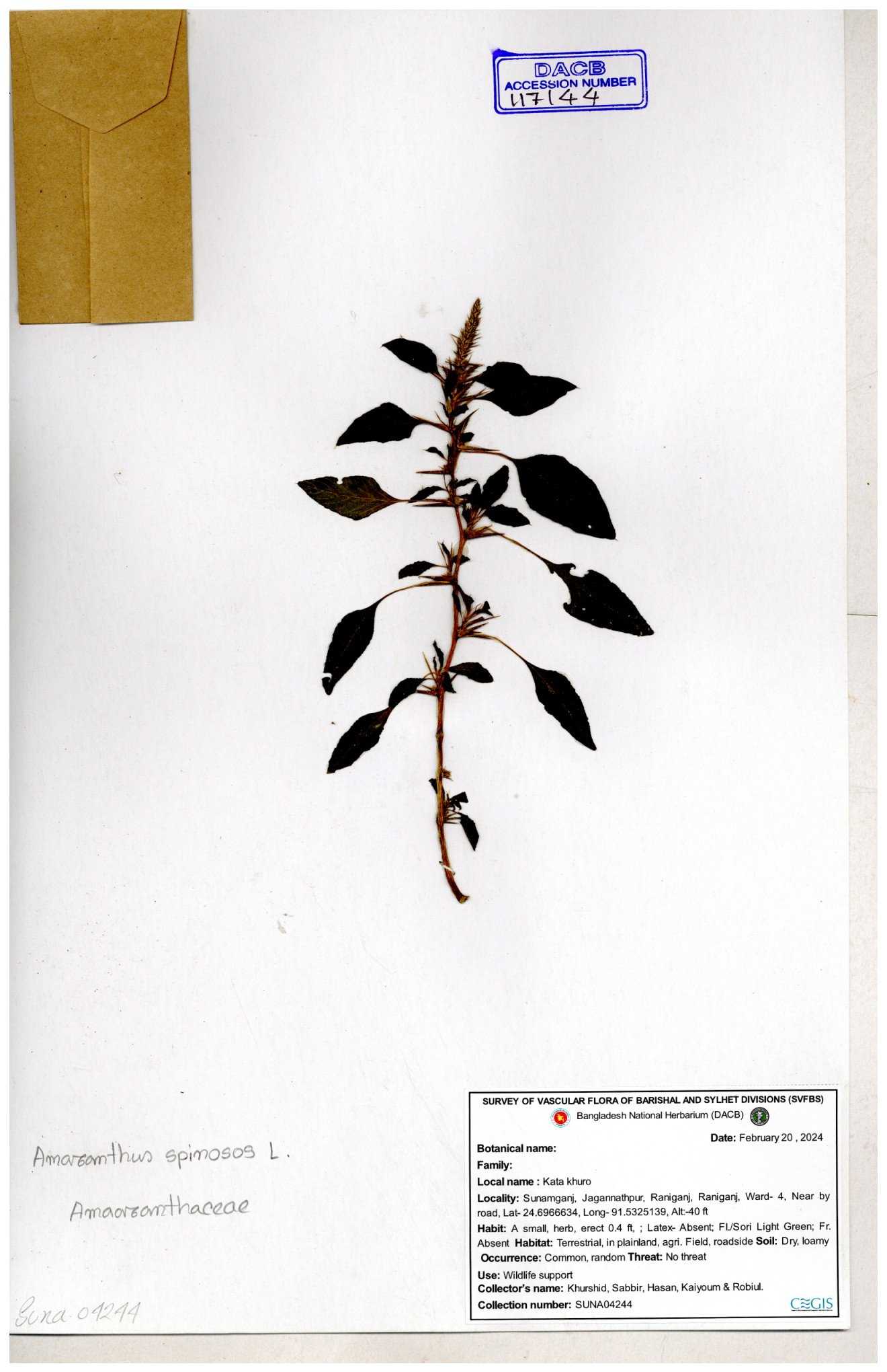 | 64345 | Amaranthaceae | Amaranthus viridis L. | Mominur Rahman, Al amin & Kamrul Islam | JCR-1489 30-11--0001 |