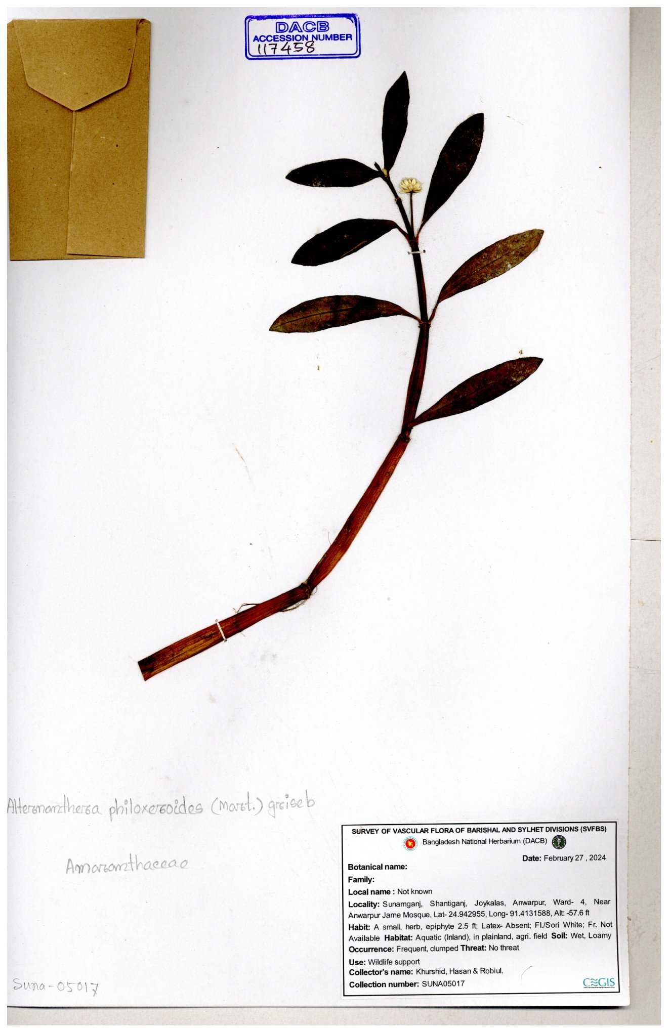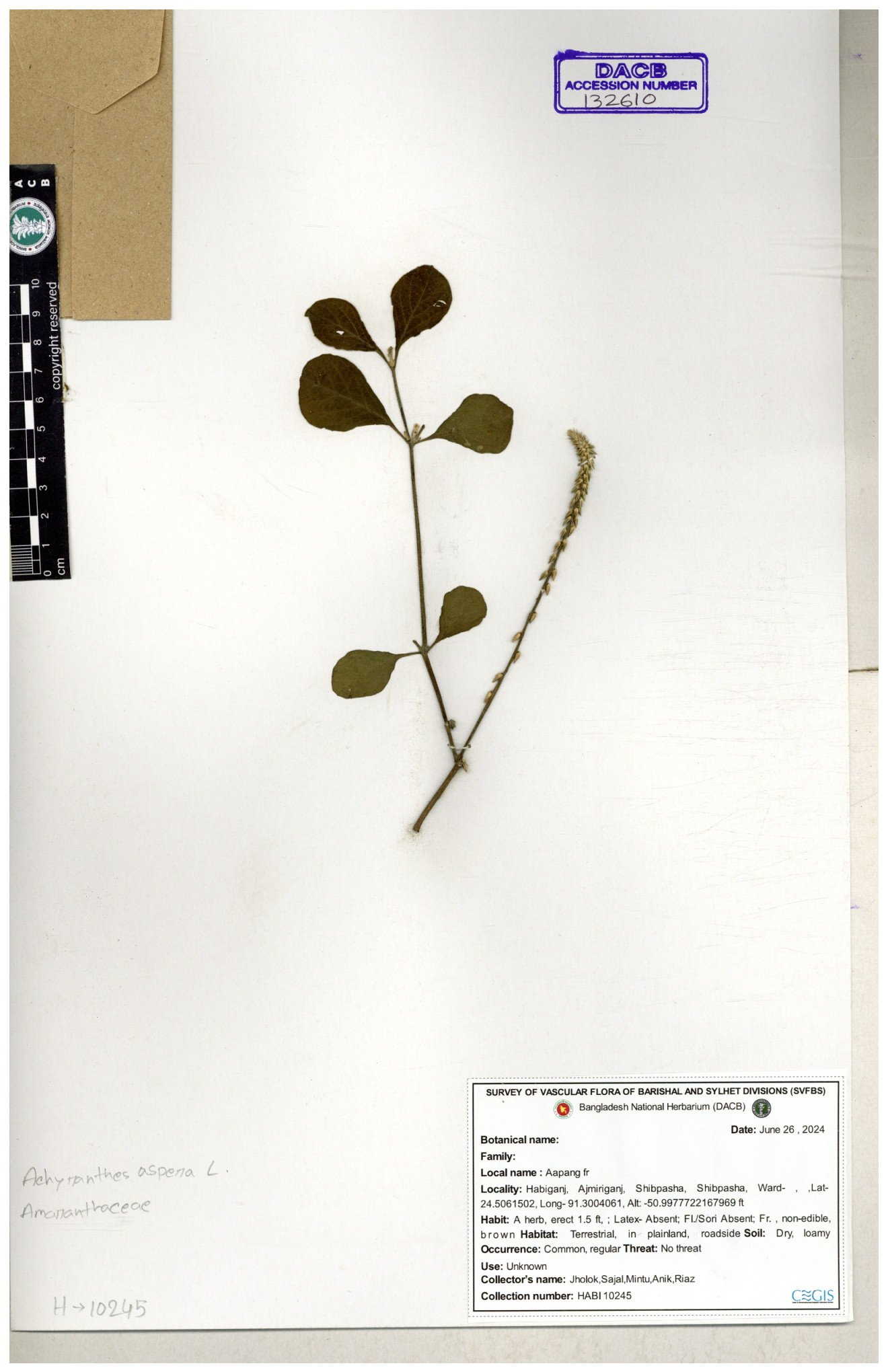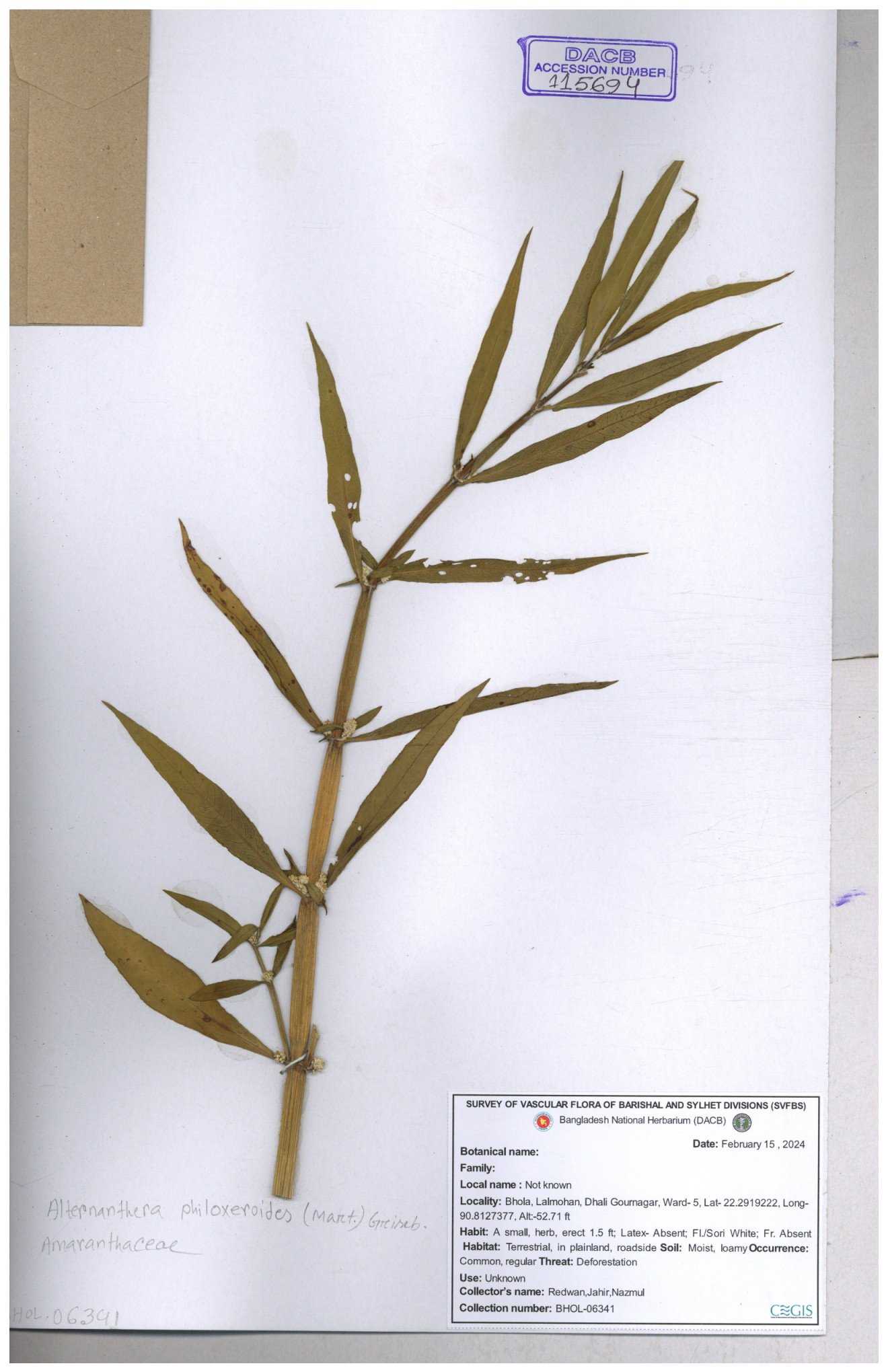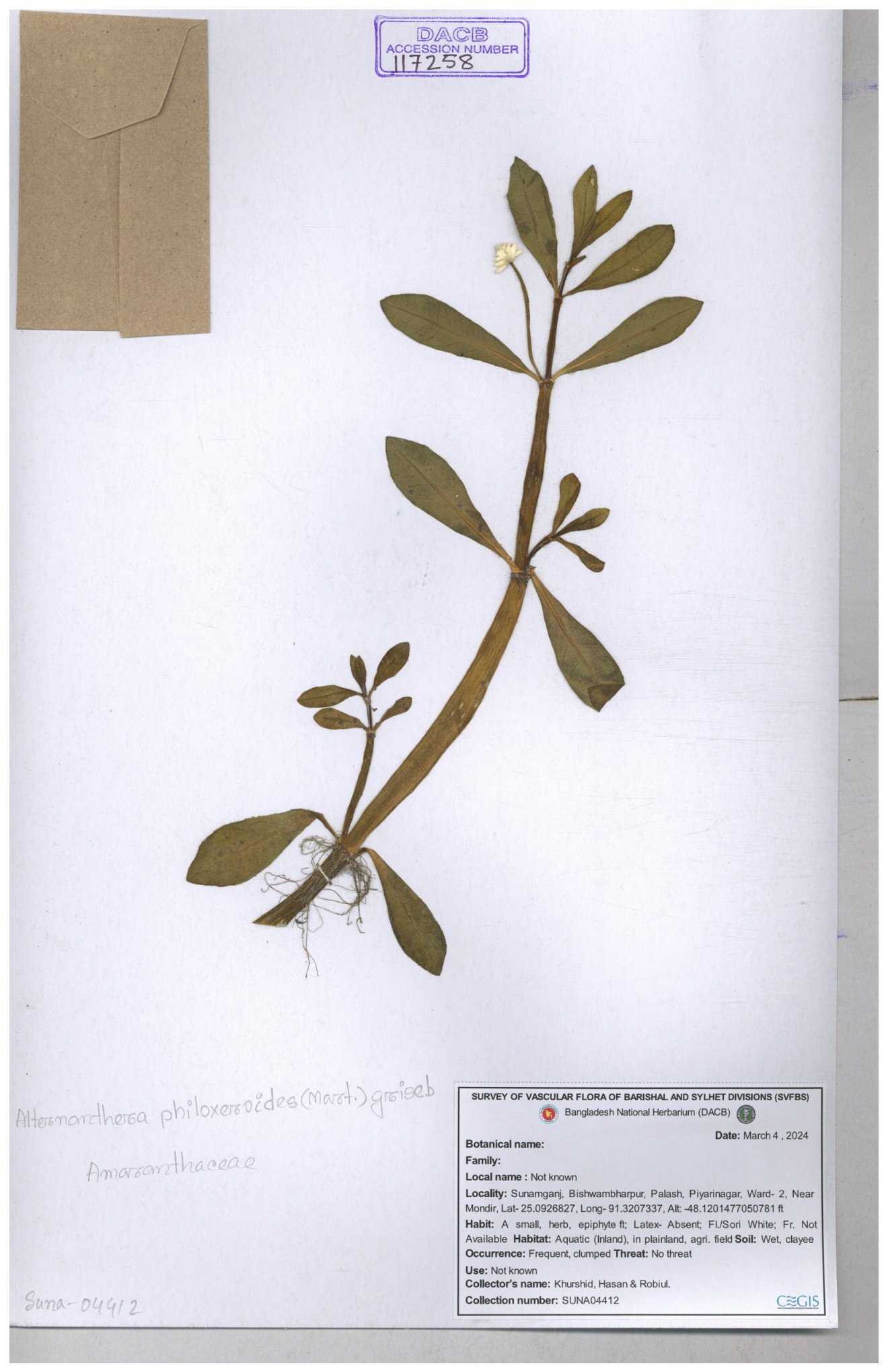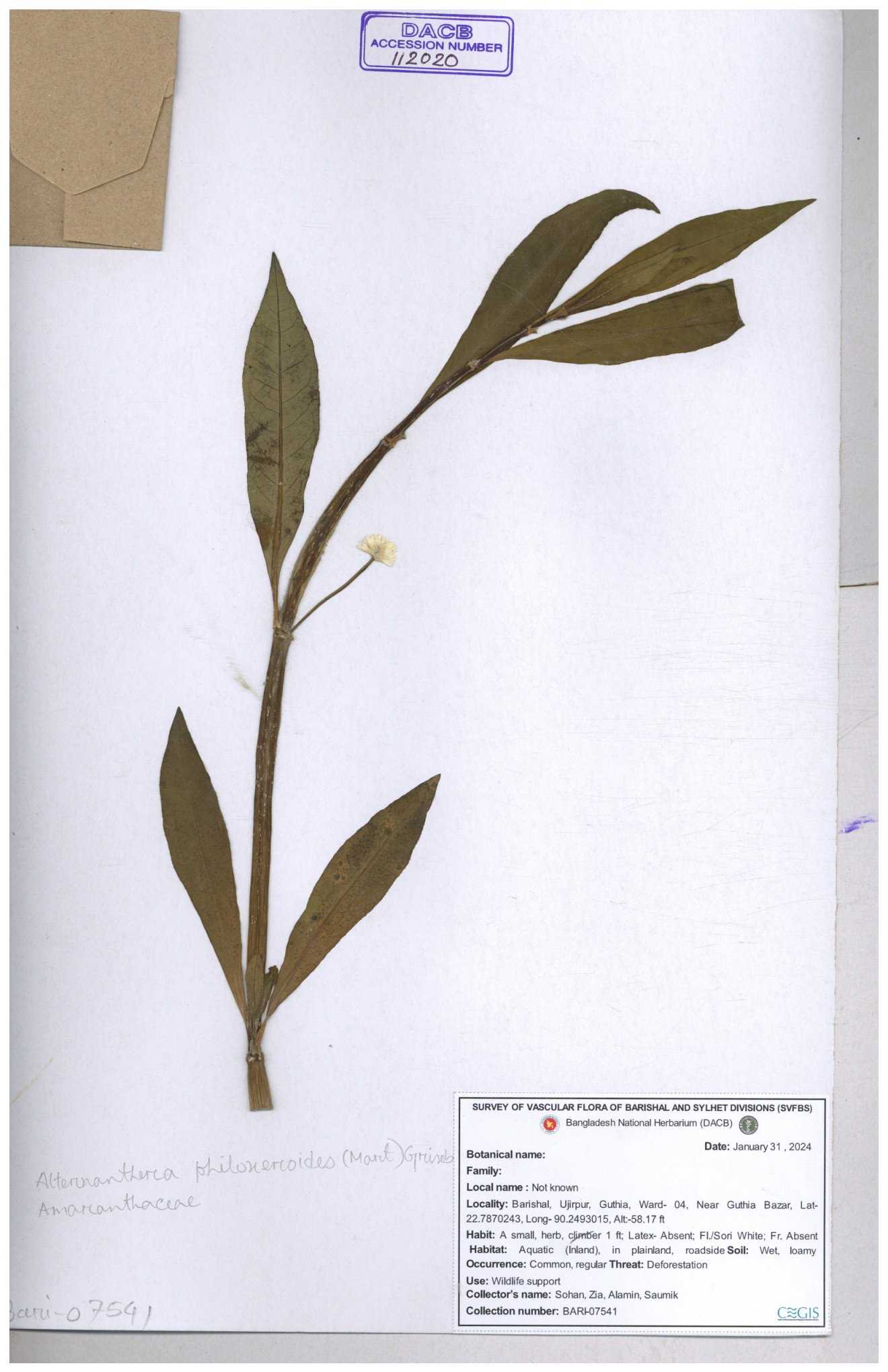 | 64345 | Amaranthaceae | Amaranthus viridis L. | Mominur Rahman, Al amin & Kamrul Islam | JCR-1489 30-11--0001 |